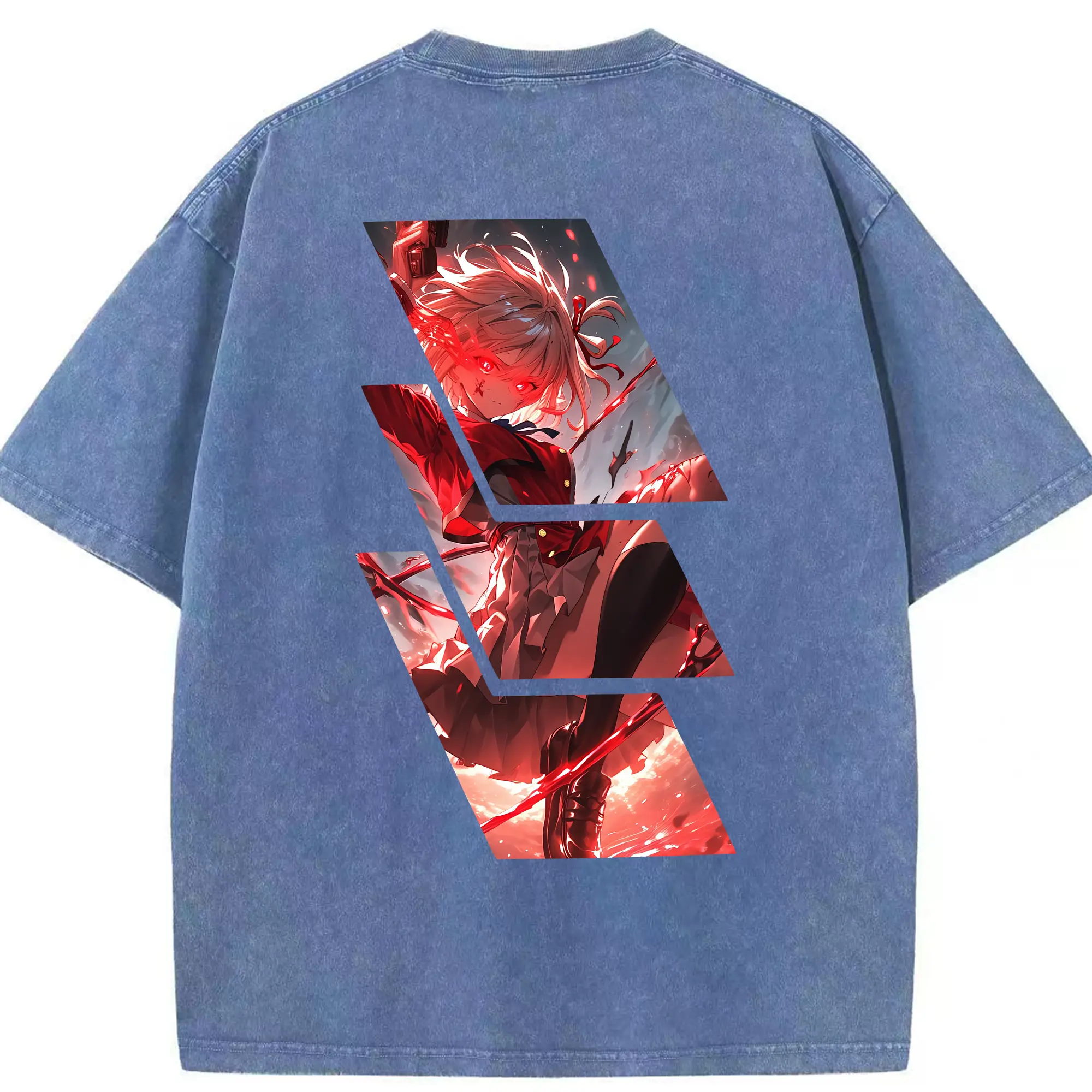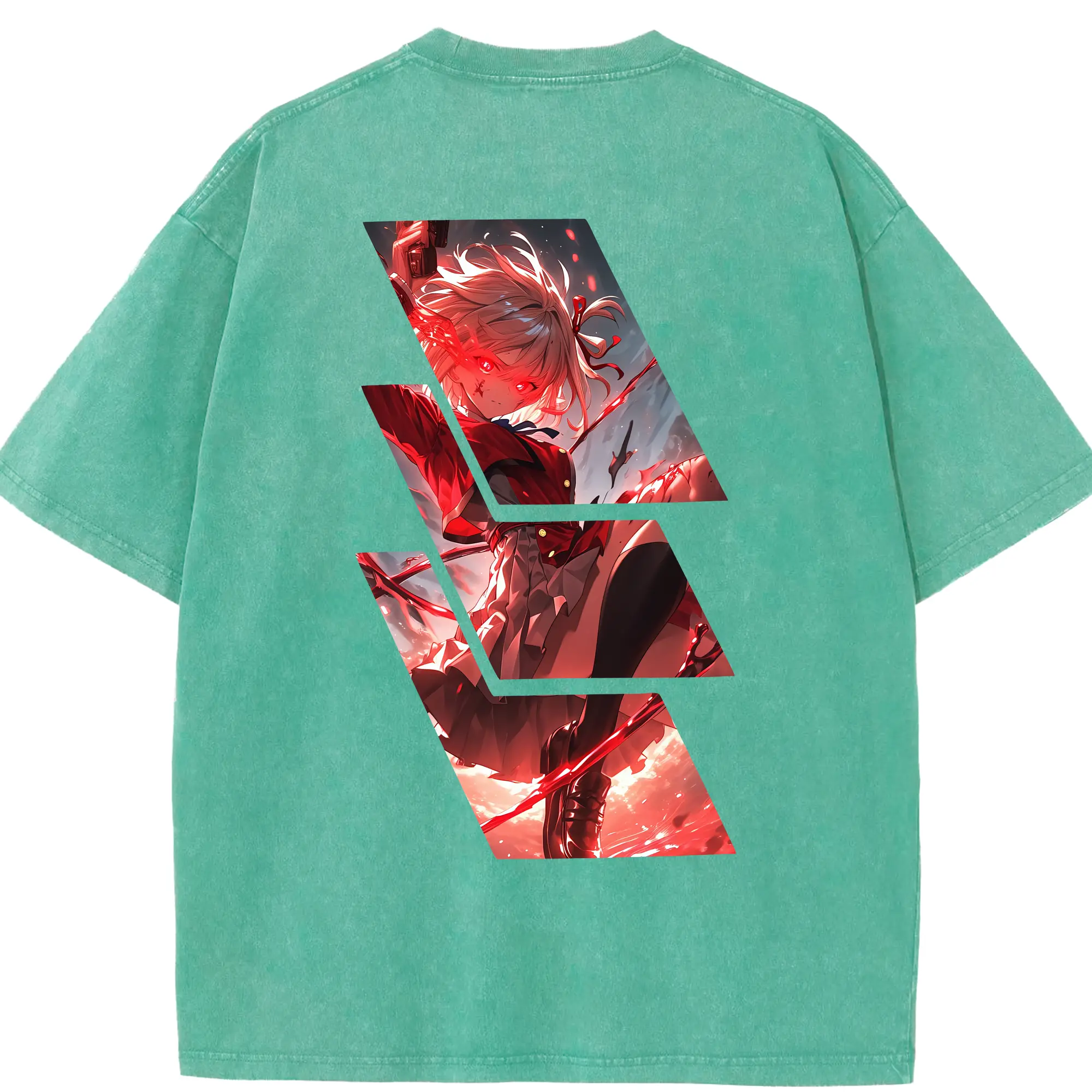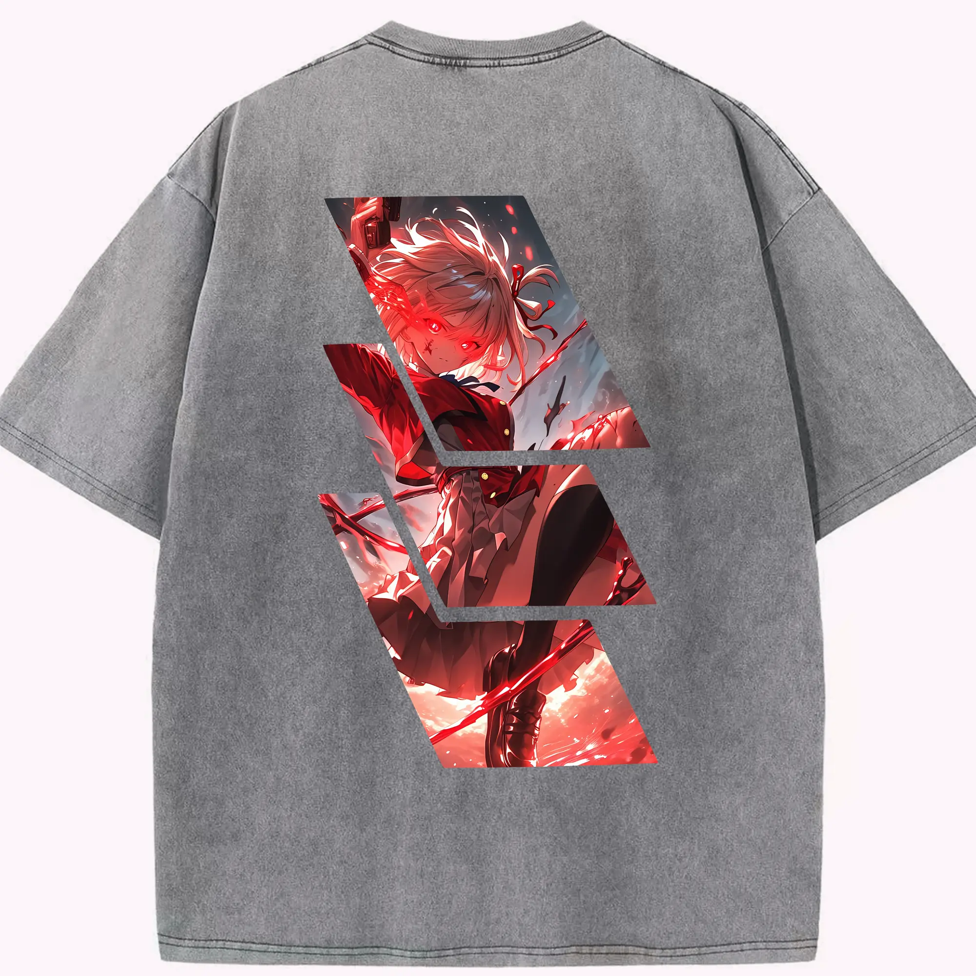 フェアリーテイル グッズ ウェンディ・マーベル - 綿100% ヴィンテージ風 半袖Tシャツ ・ 背面プリント ・ 柔らか肌触り ・ 通気性 快適 ・ スポーツ カジュアル 外出用