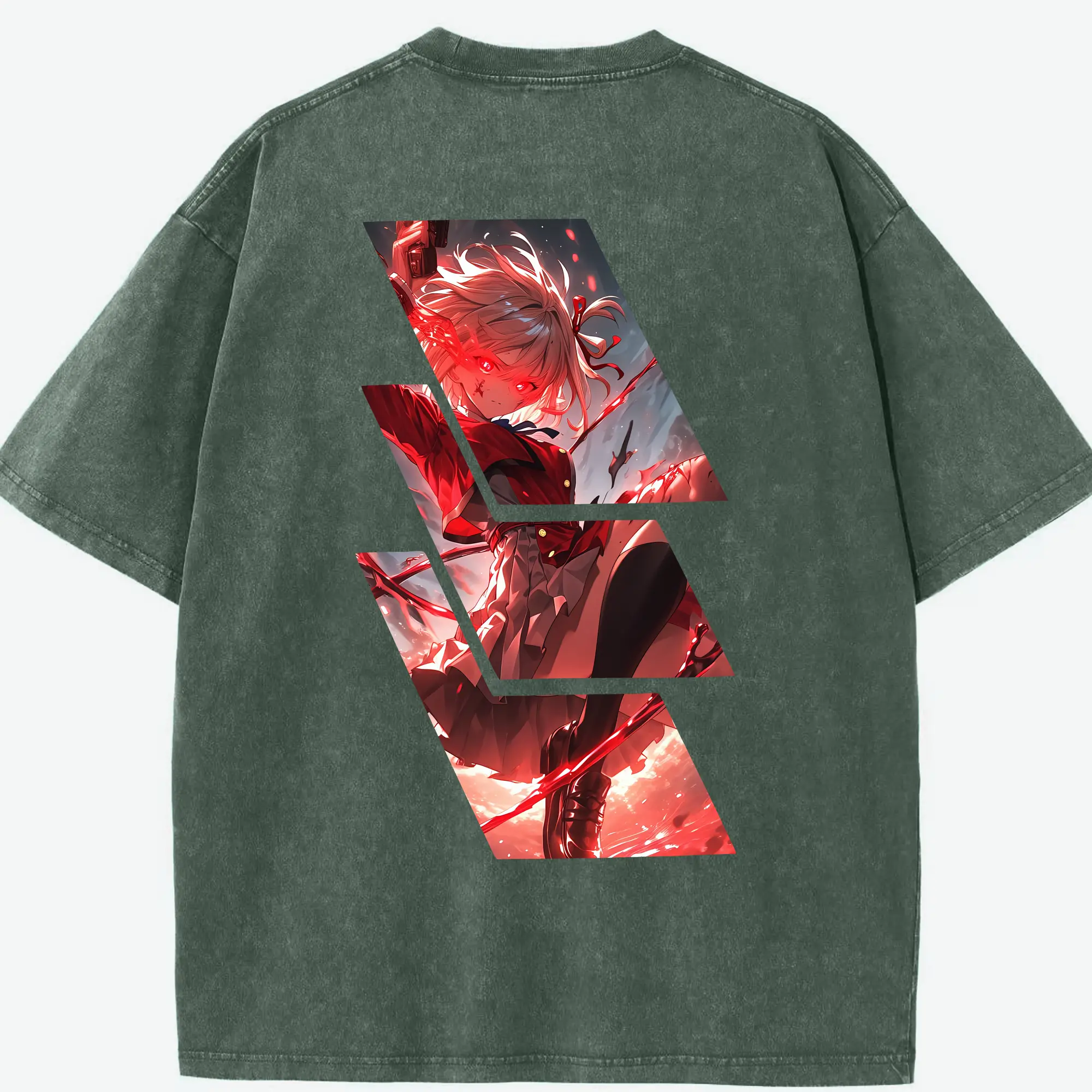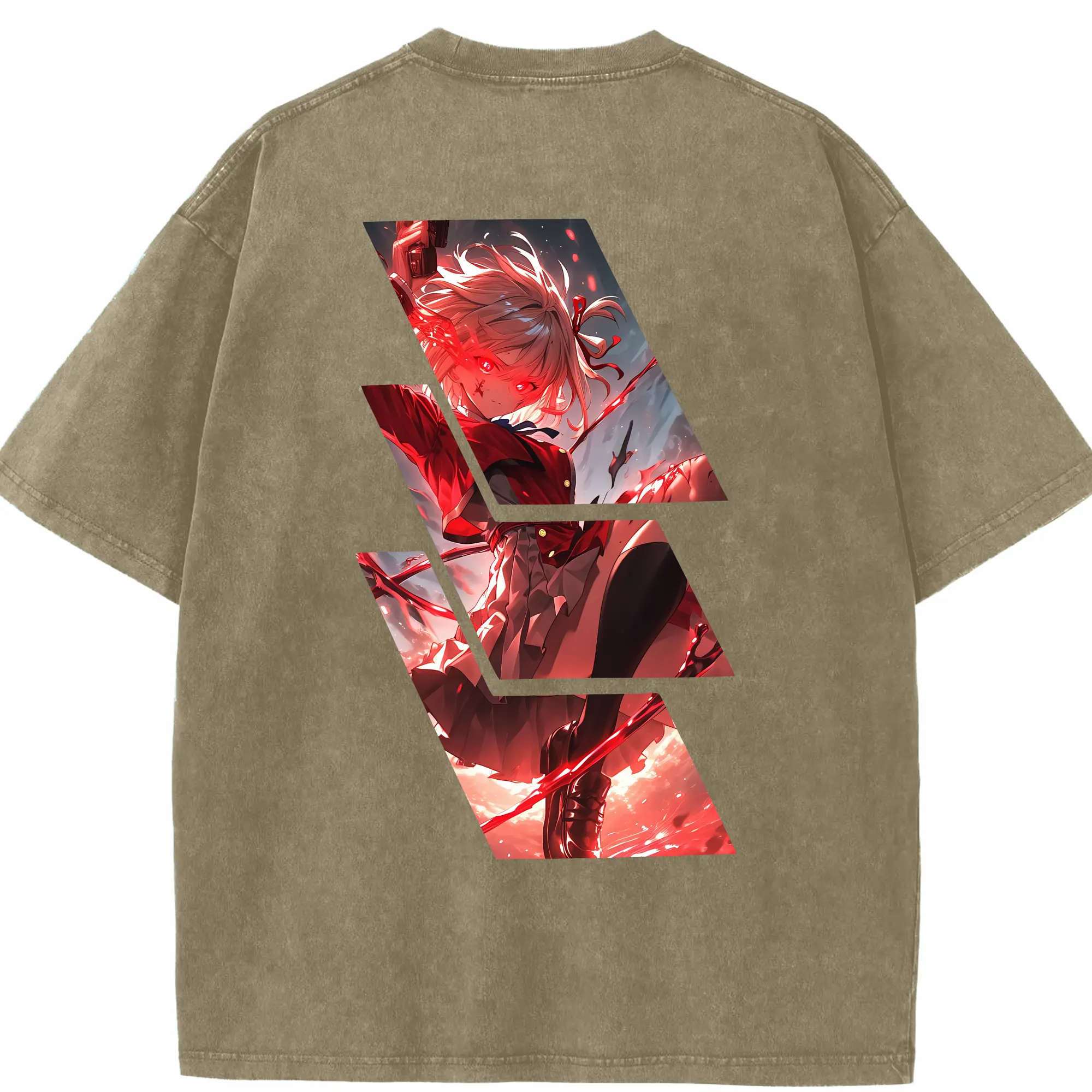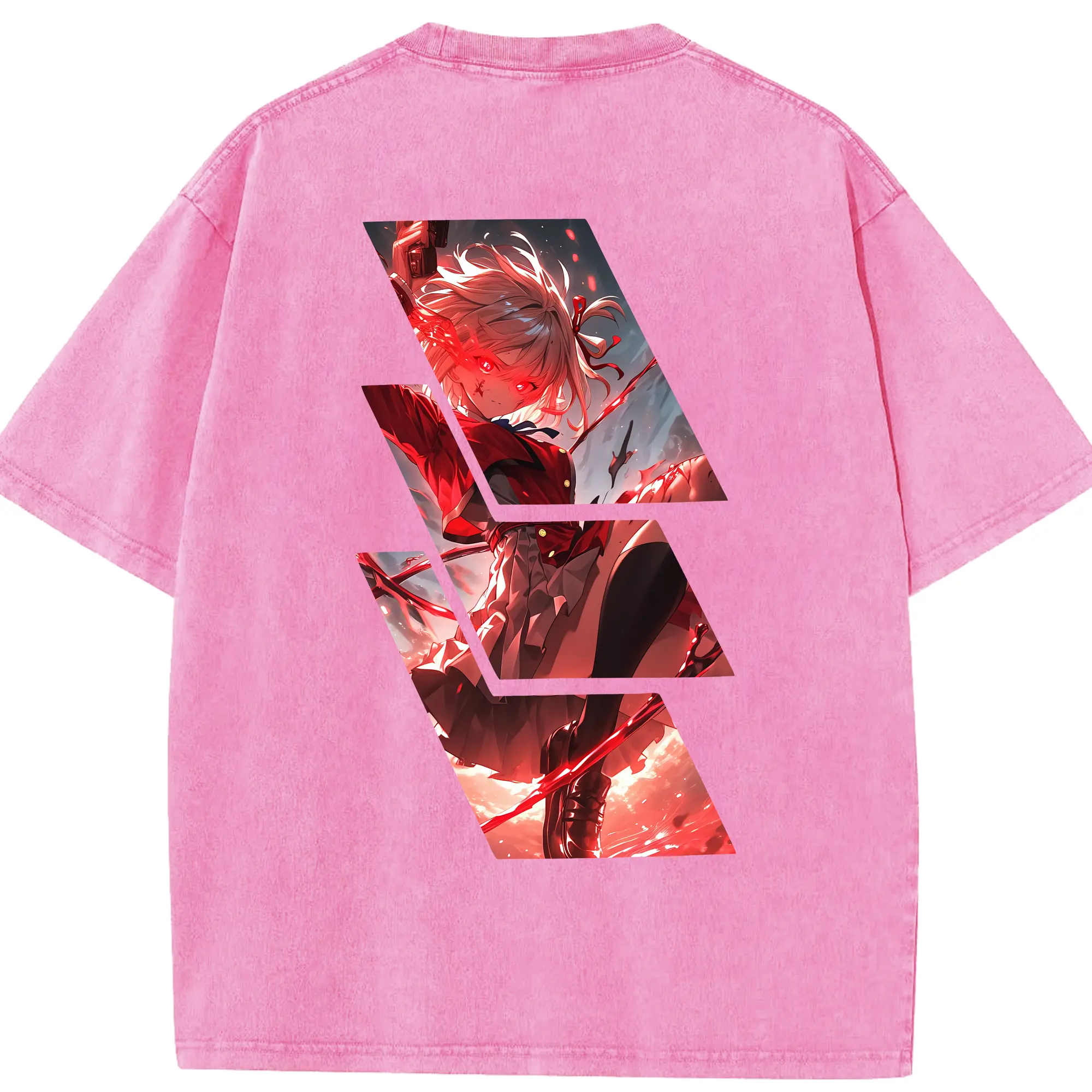 フェアリーテイル グッズ ウェンディ・マーベル - 綿100% ヴィンテージ風 半袖Tシャツ ・ 背面プリント ・ 柔らか肌触り ・ 通気性 快適 ・ スポーツ カジュアル 外出用