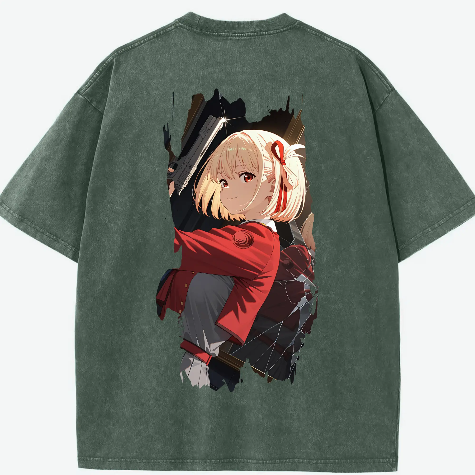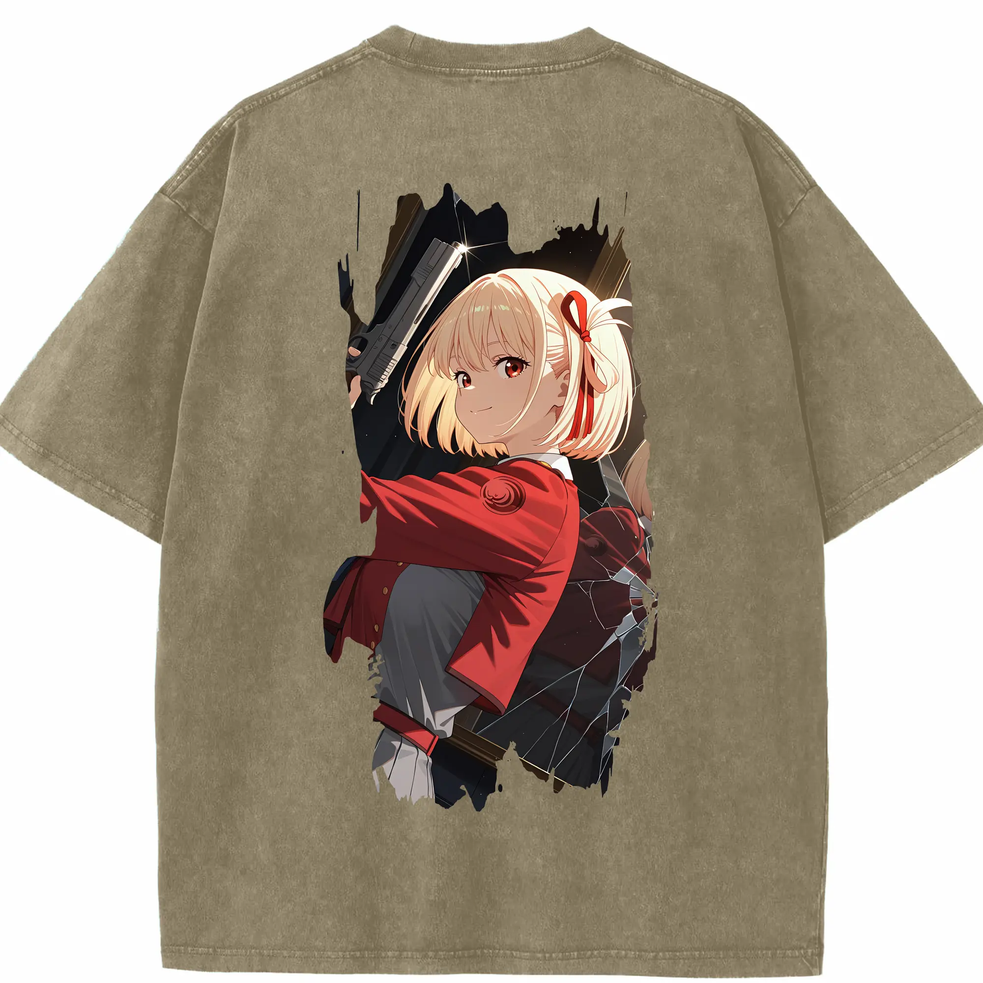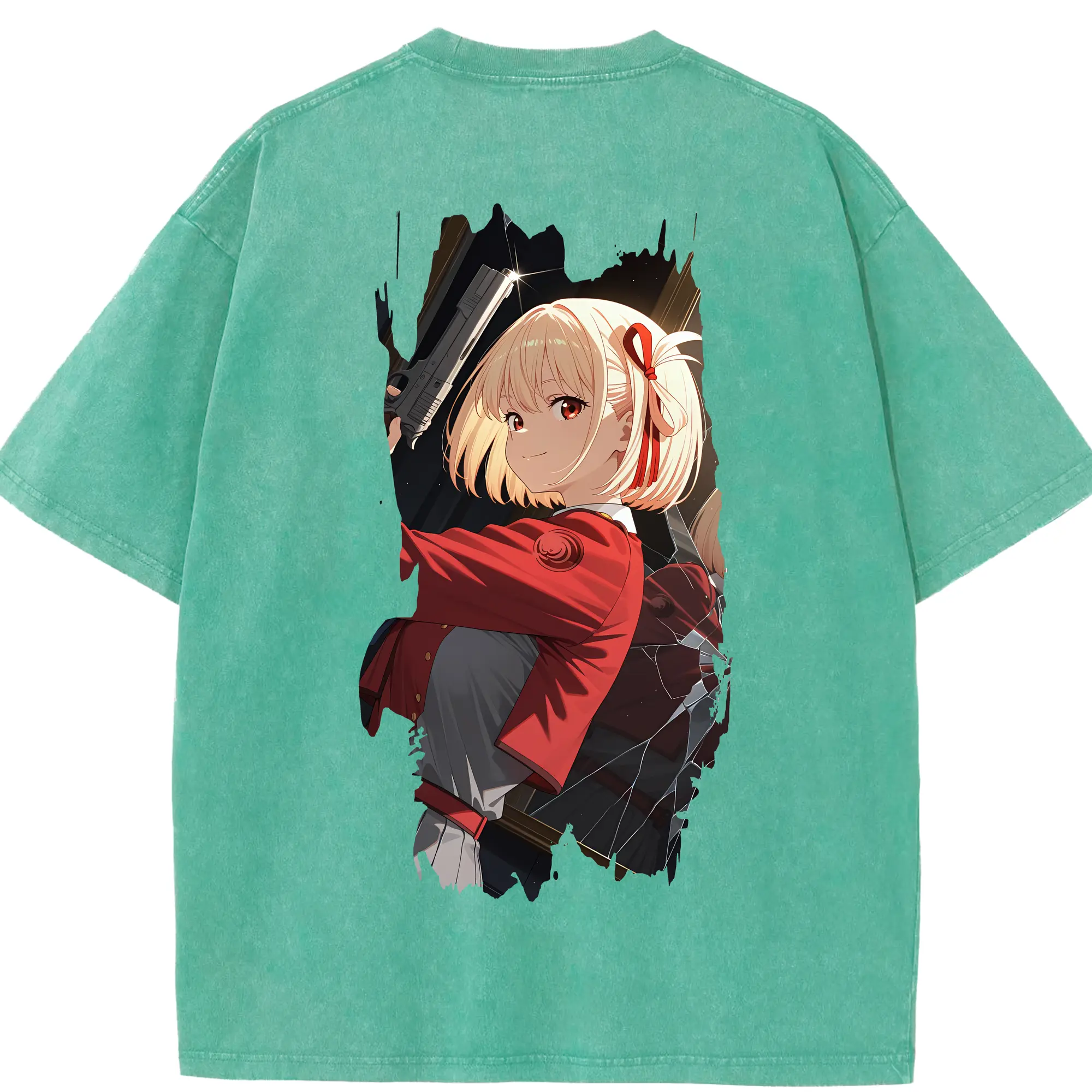 リコリス・リコイル グッズ,錦木千束 - 綿100% ヴィンテージ風 半袖Tシャツ ・ フロントプリント ・ 柔らか肌触り ・ 通気性 快適 ・ スポーツ カジュアル 外出用