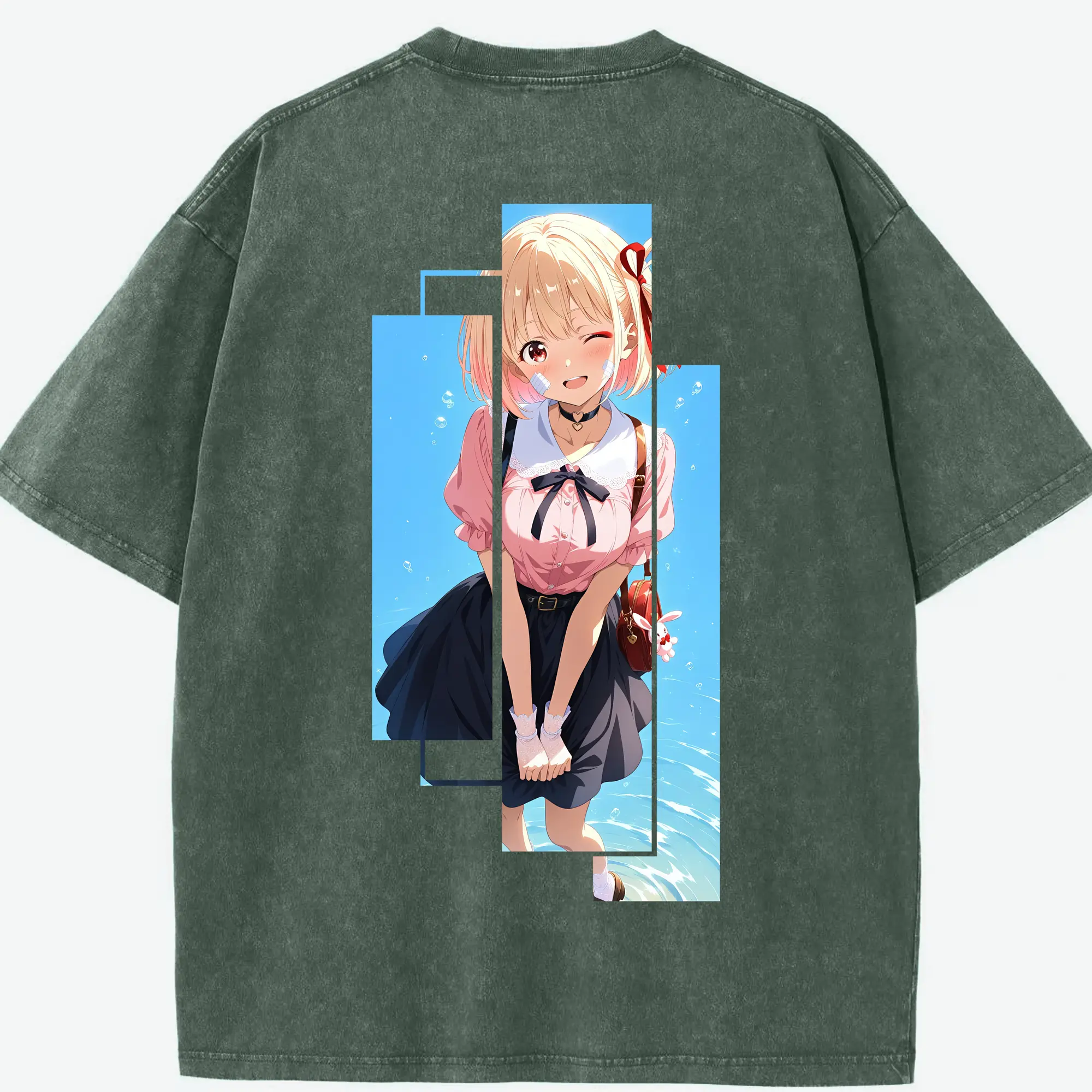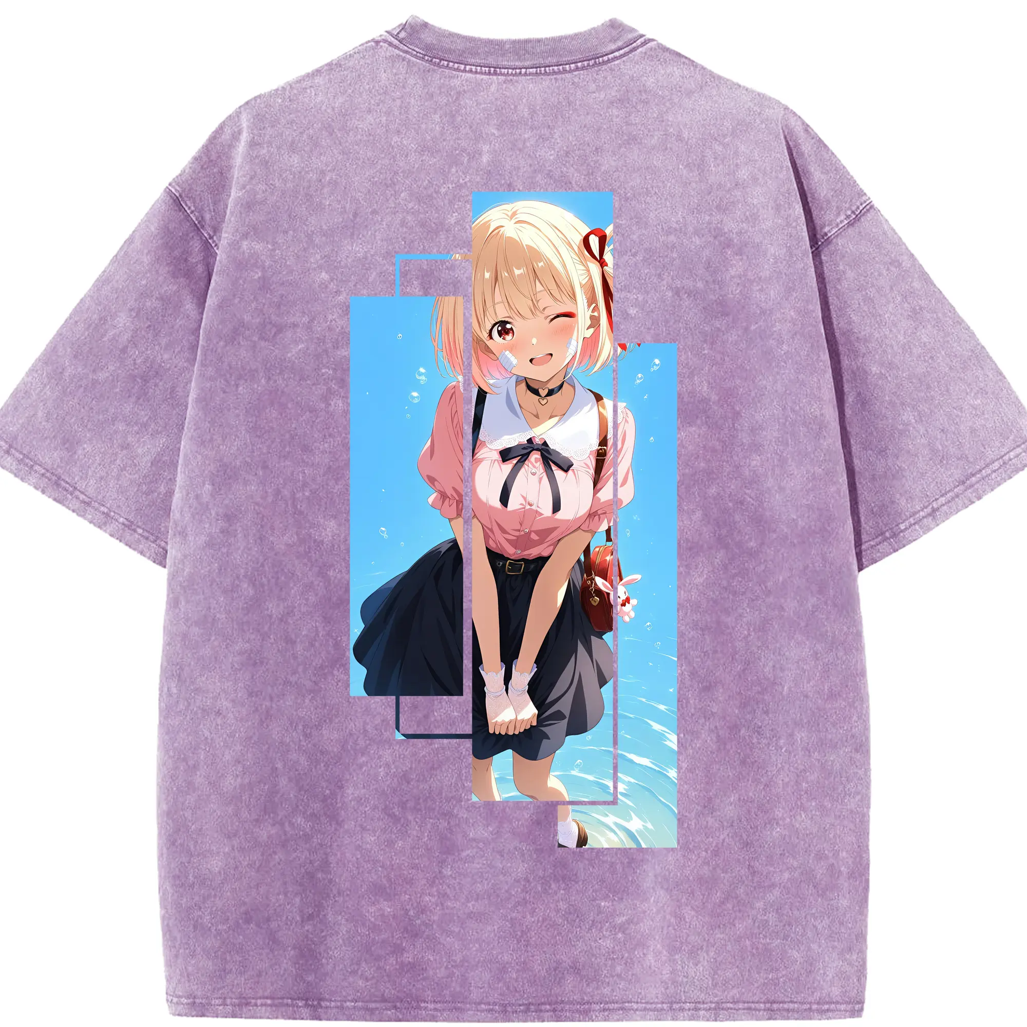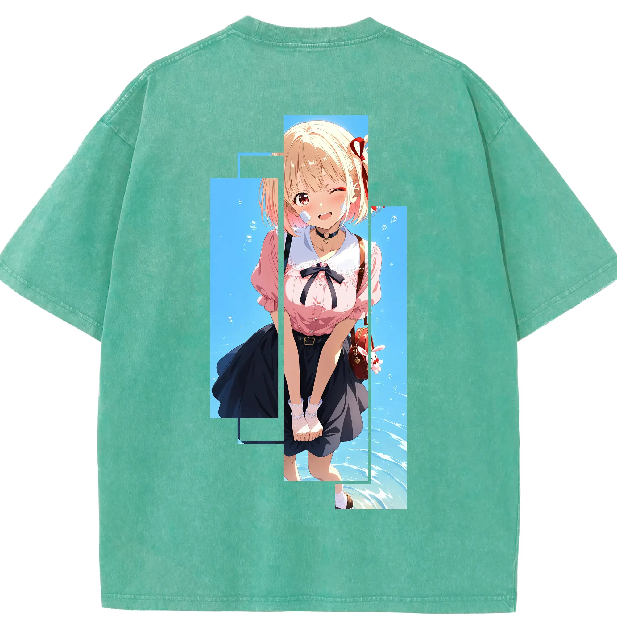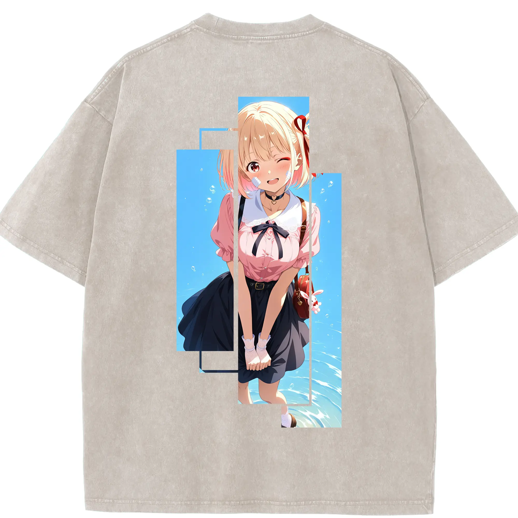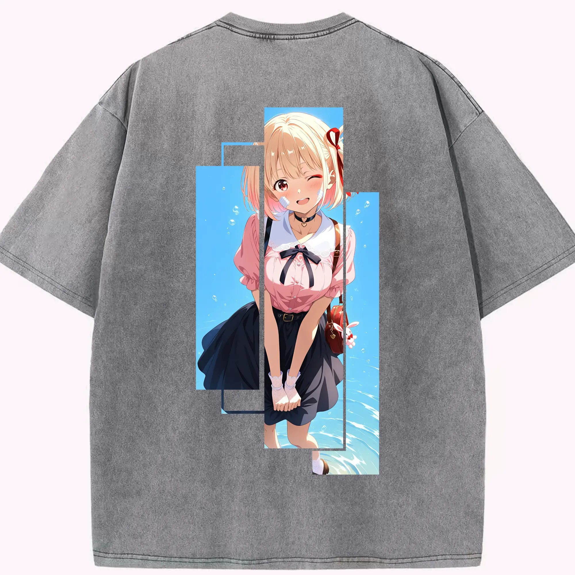 リコリス・リコイル グッズ,錦木千束 - 綿100% ヴィンテージ風 半袖Tシャツ ・ フロントプリント ・ 柔らか肌触り ・ 通気性 快適 ・ スポーツ カジュアル 外出用