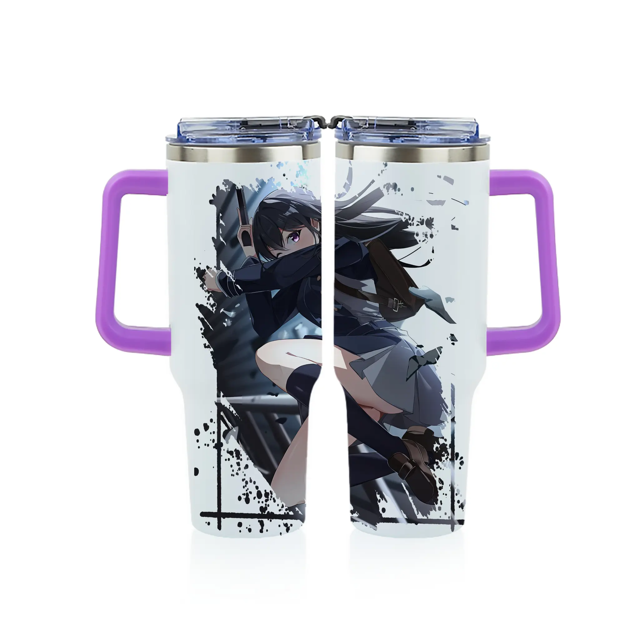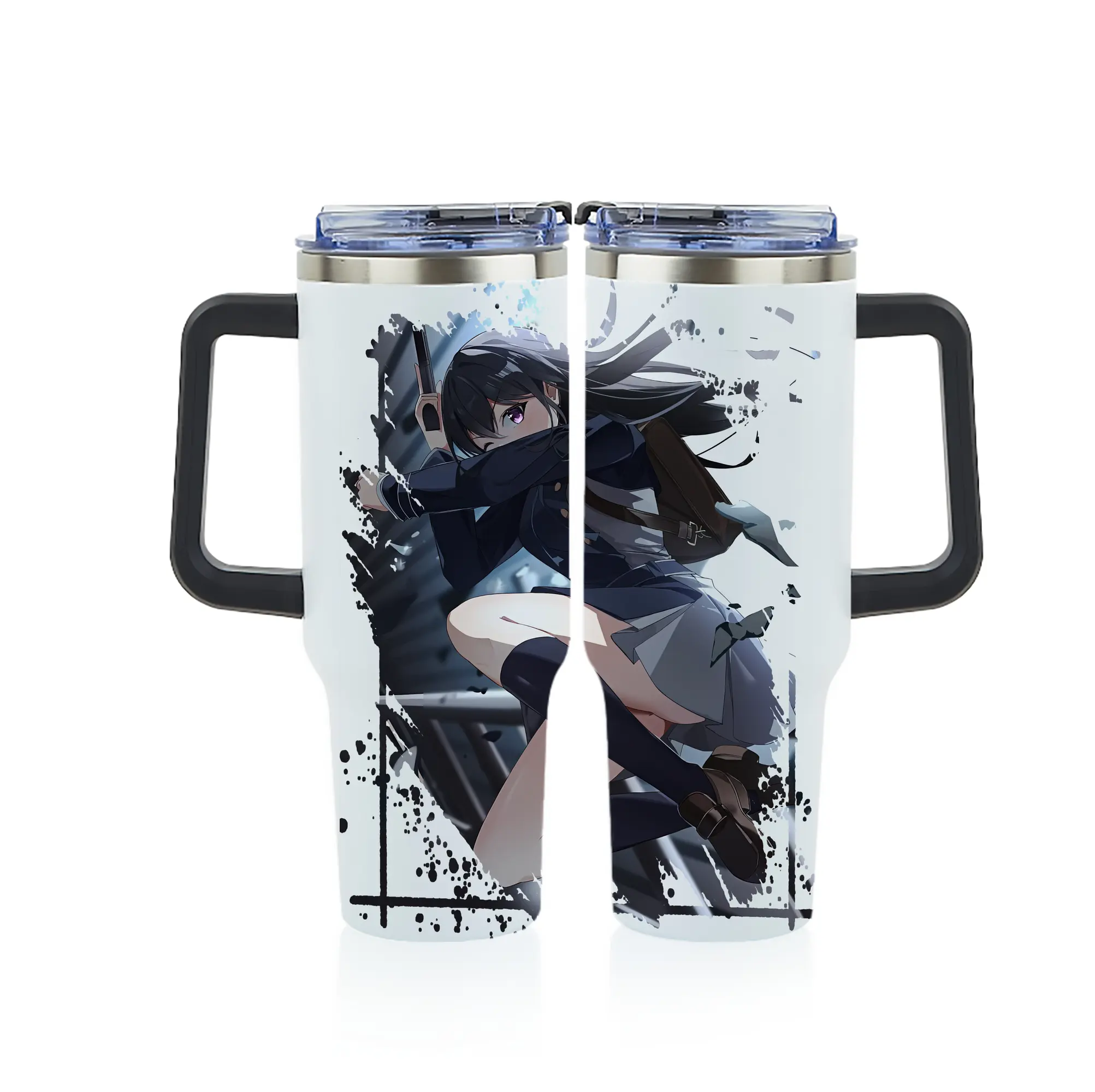 リコリス・リコイル グッズ,井ノ上たきな - 1200mL フルプリント車用タンブラー ・ 304ステンレス 内側 ・ 201ステンレス 外側 ・ 保温 保冷 ・ 通勤 ドライブ アウトドア用
