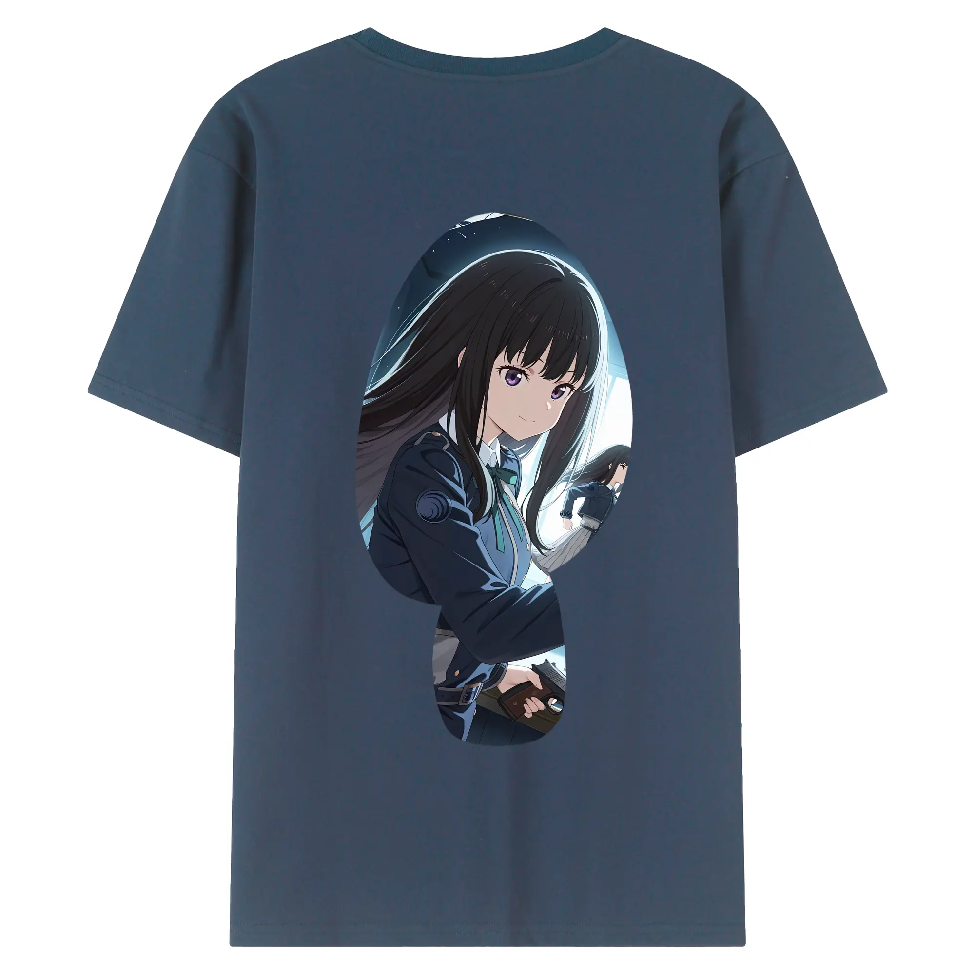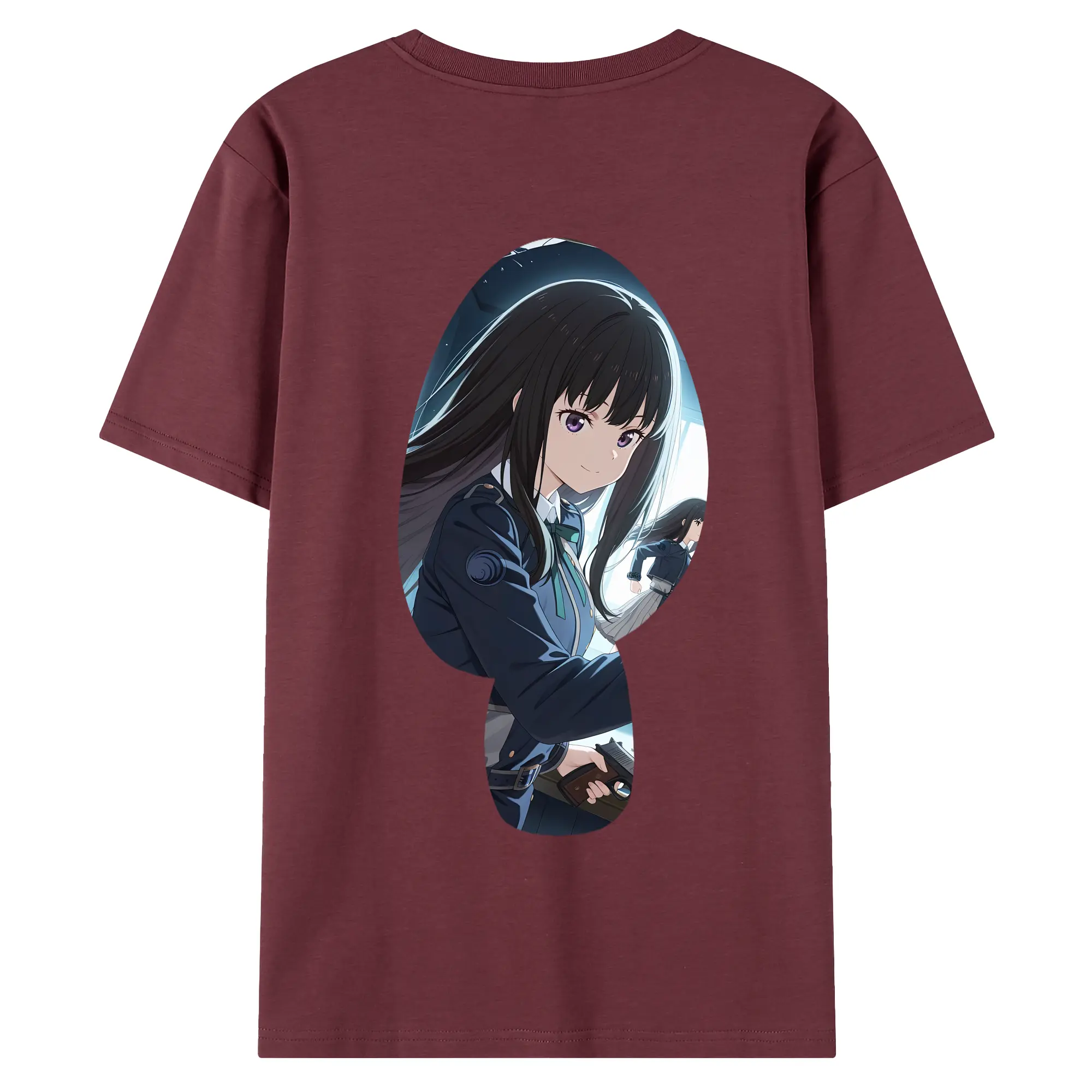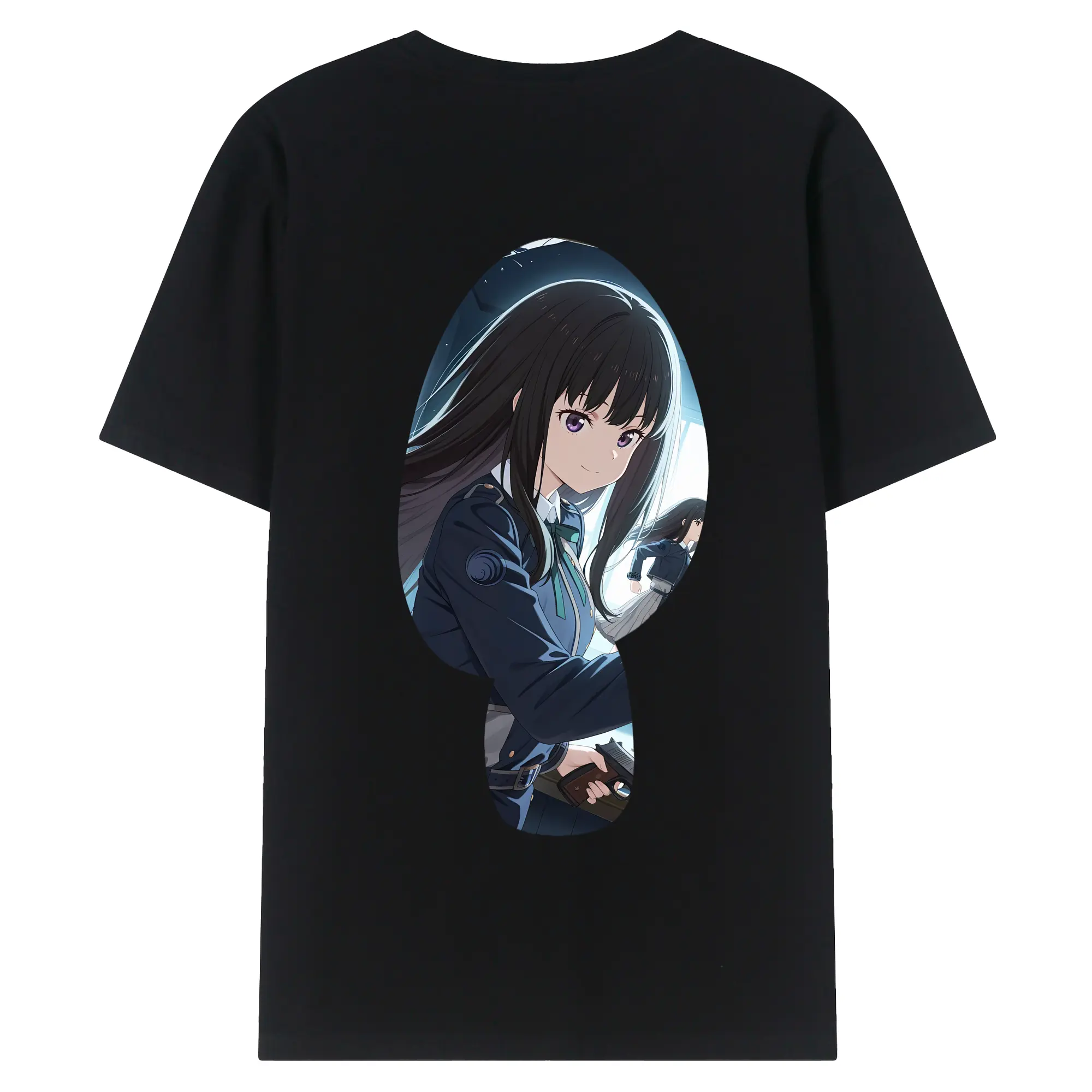 リコリス・リコイル グッズ,井ノ上たきな - 綿100% ヴィンテージ風 半袖Tシャツ ・ 背面プリント ・ 柔らか肌触り ・ 通気性 快適 ・ スポーツ カジュアル 外出用