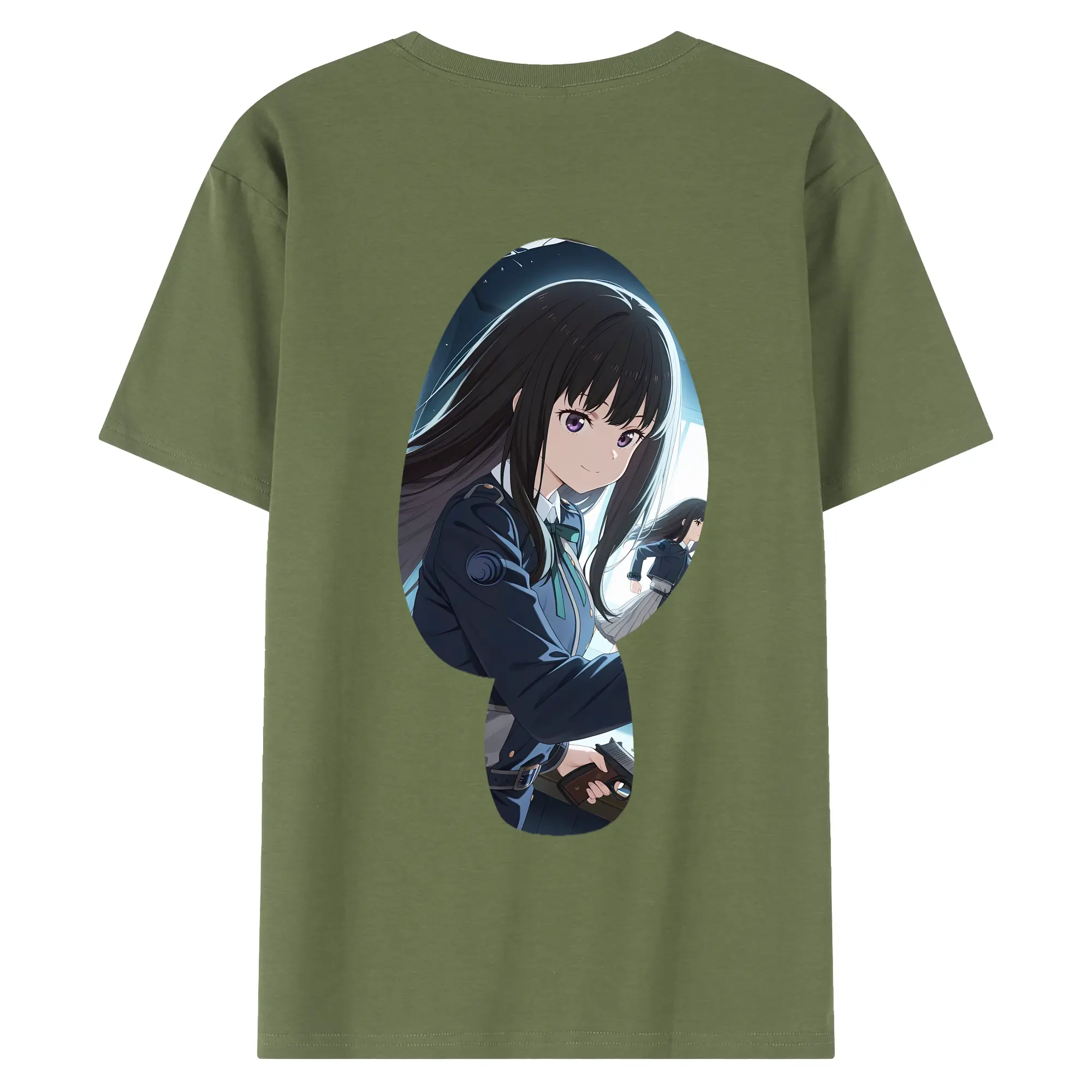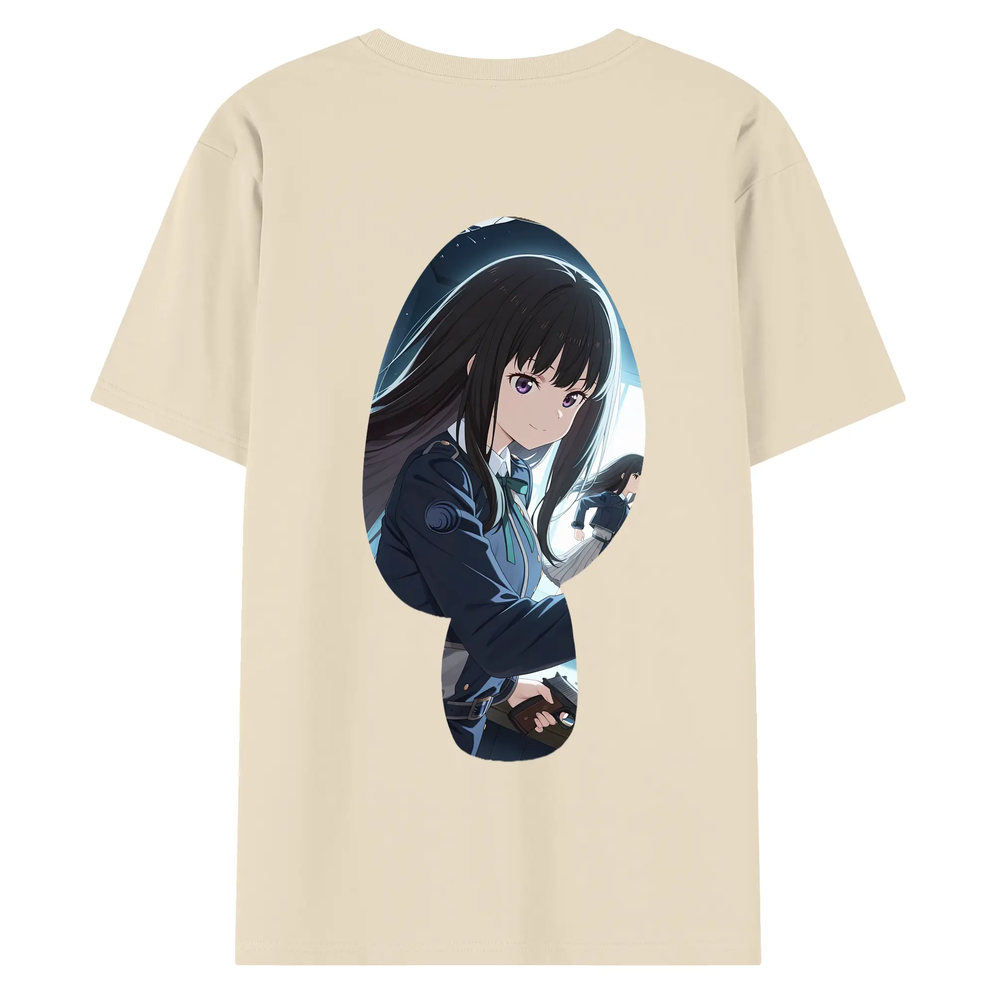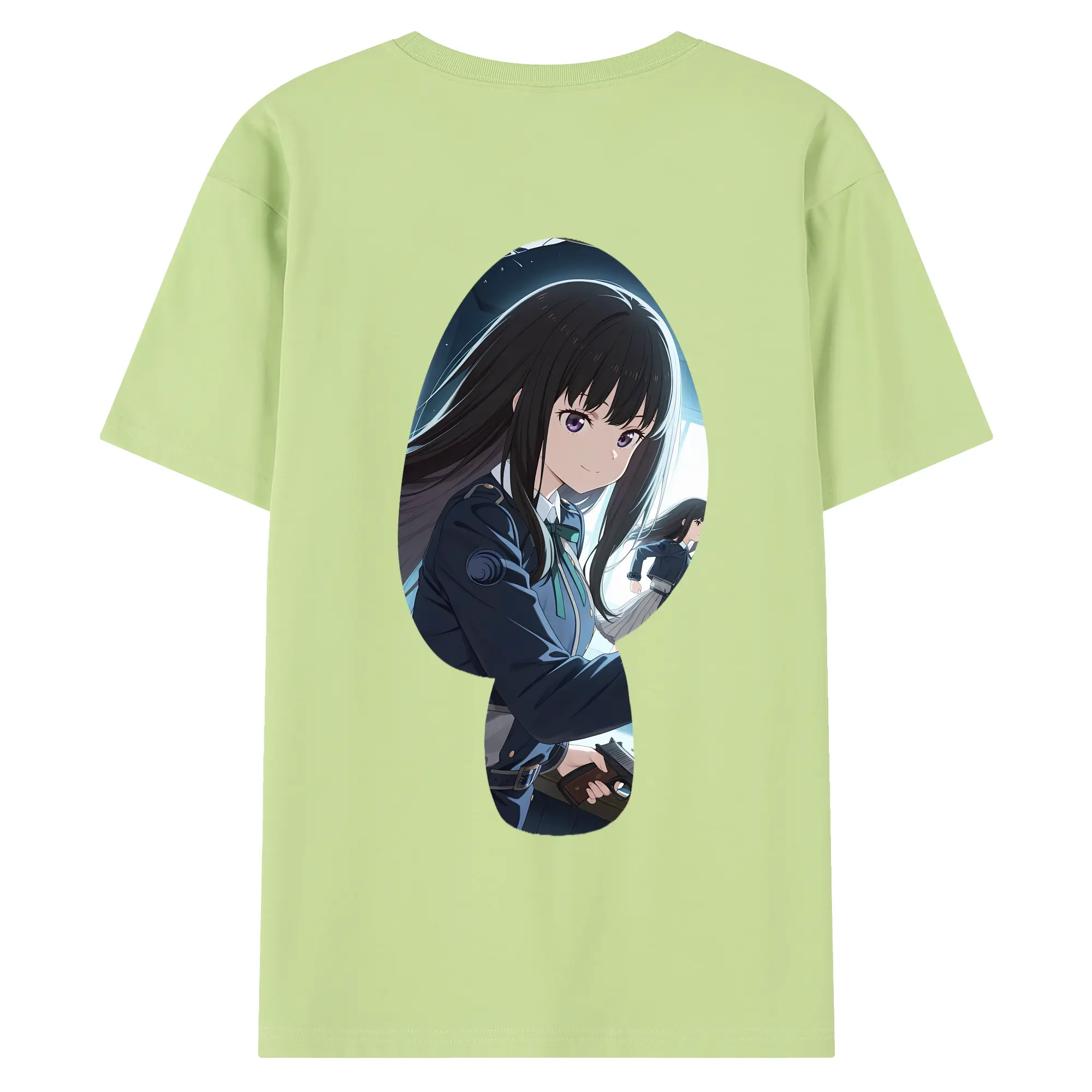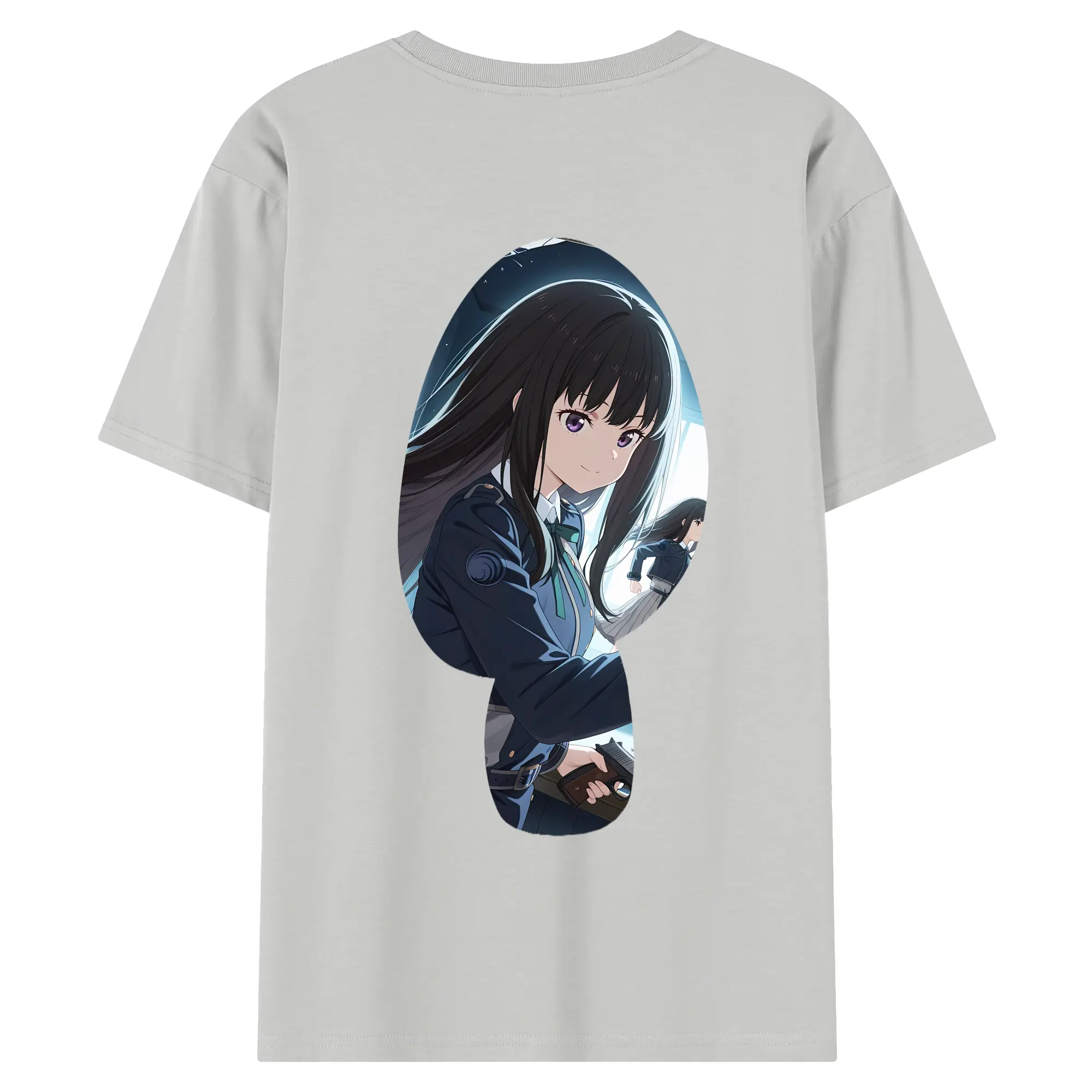 リコリス・リコイル グッズ,井ノ上たきな - 綿100% ヴィンテージ風 半袖Tシャツ ・ 背面プリント ・ 柔らか肌触り ・ 通気性 快適 ・ スポーツ カジュアル 外出用