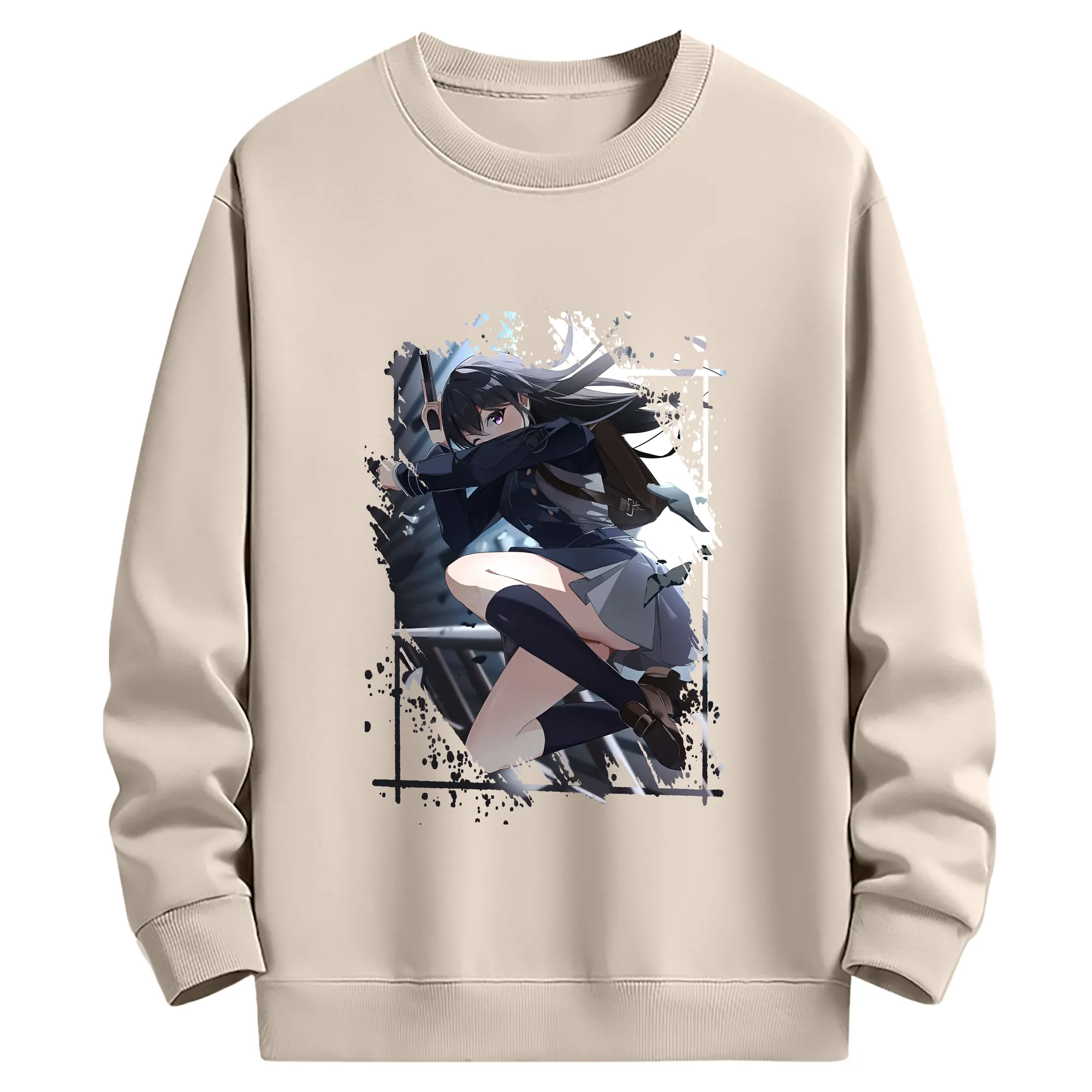 リコリス・リコイル グッズ,井ノ上たきな - 薄手 クルーネック スウェット 裏毛260g · ポリエステル 春秋向け カジュアル 男女兼用 · トレーナー デイリー スポーツ 散歩に最適