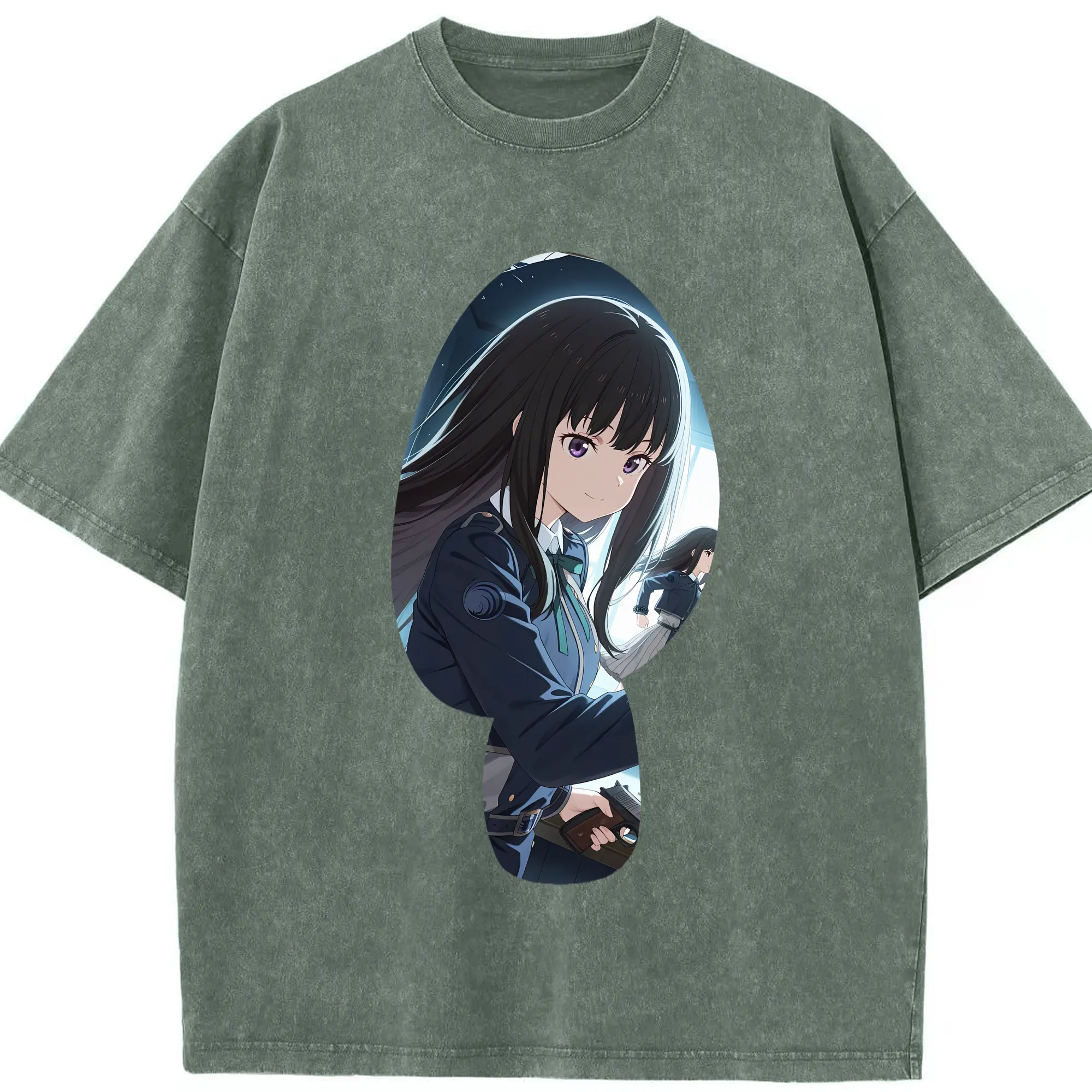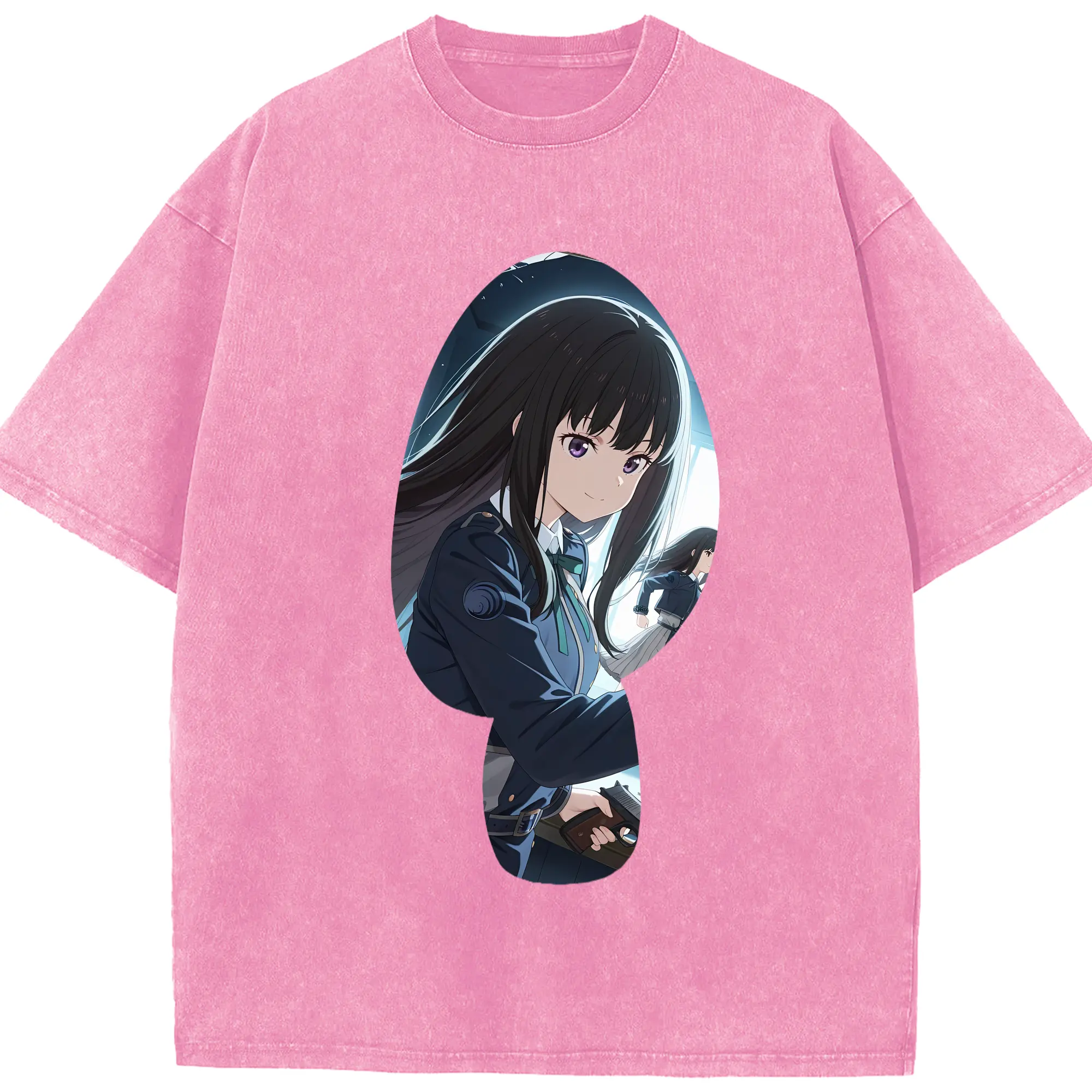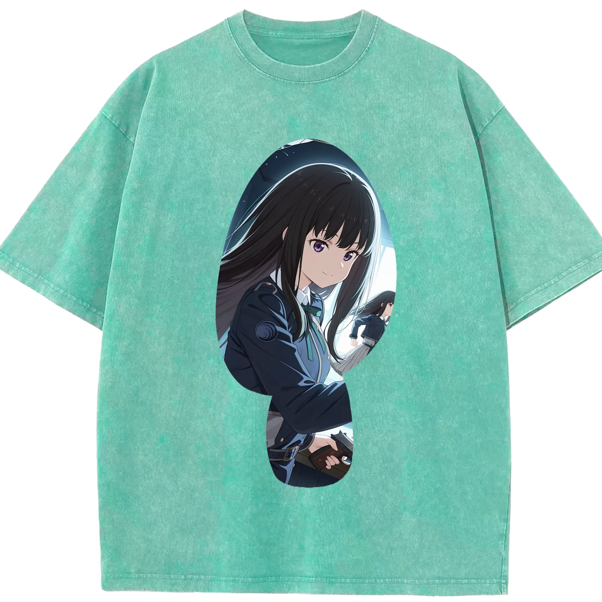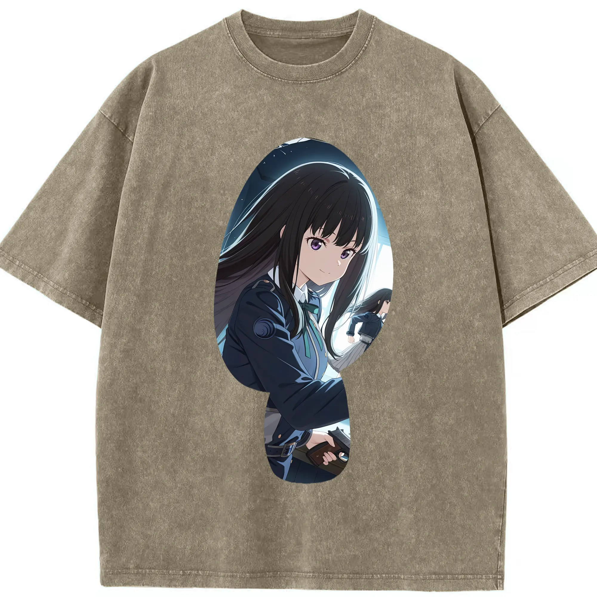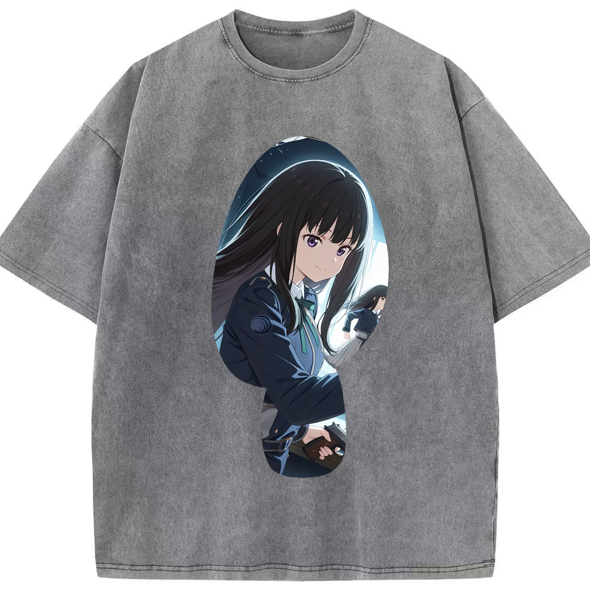 リコリス・リコイル グッズ,井ノ上たきな - 綿100% ヴィンテージ風 半袖Tシャツ ・ 背面プリント ・ 柔らか肌触り ・ 通気性 快適 ・ スポーツ カジュアル 外出用