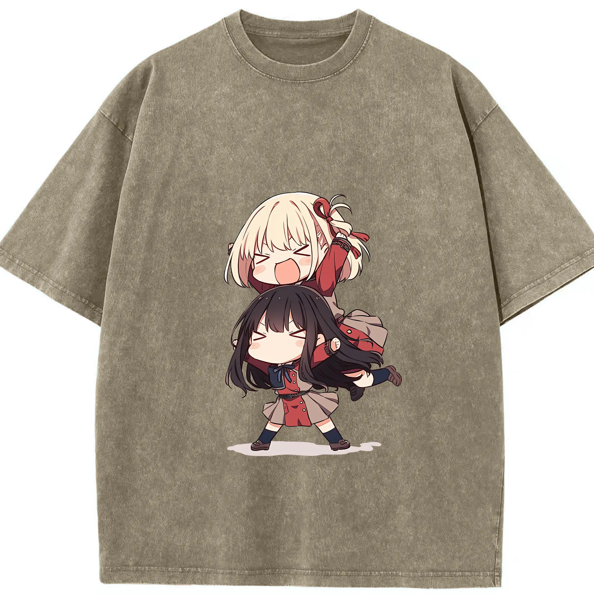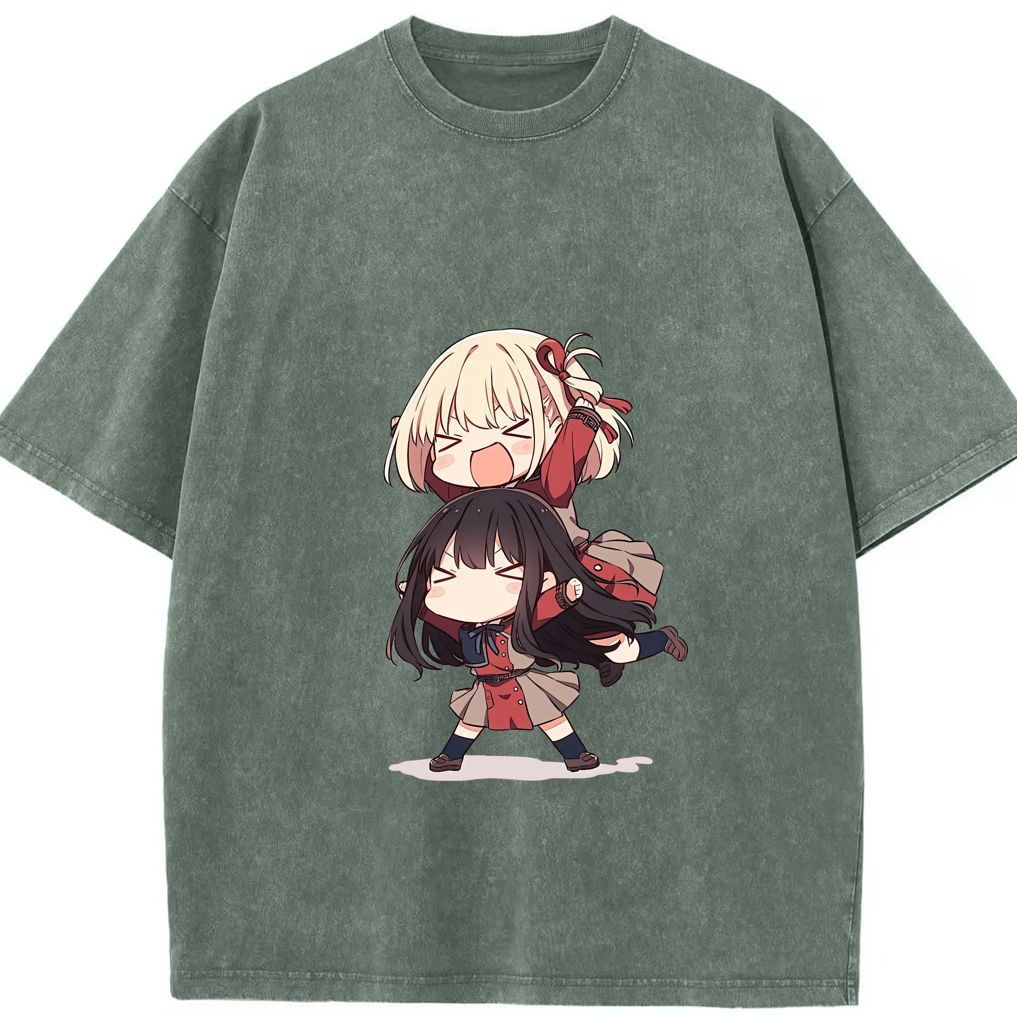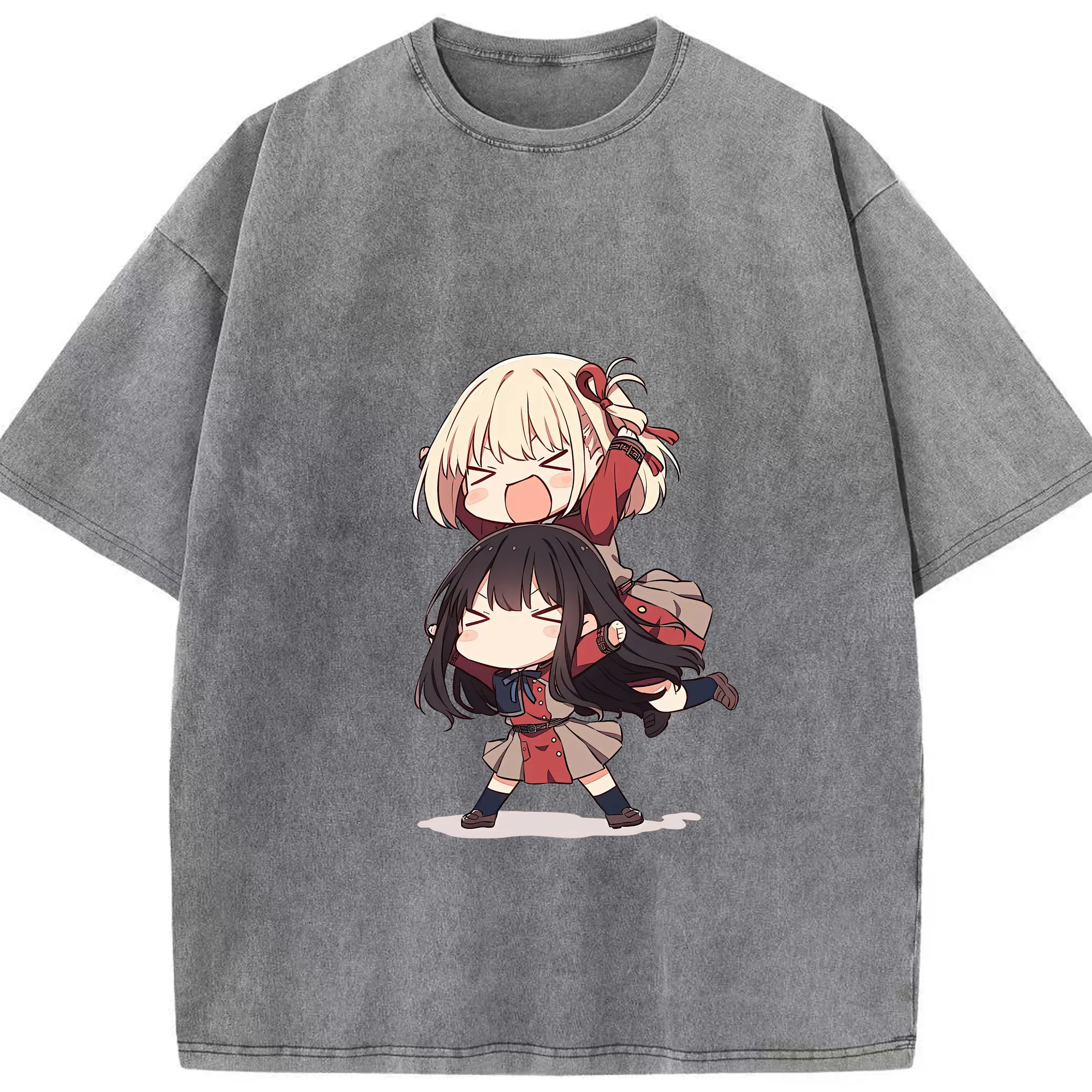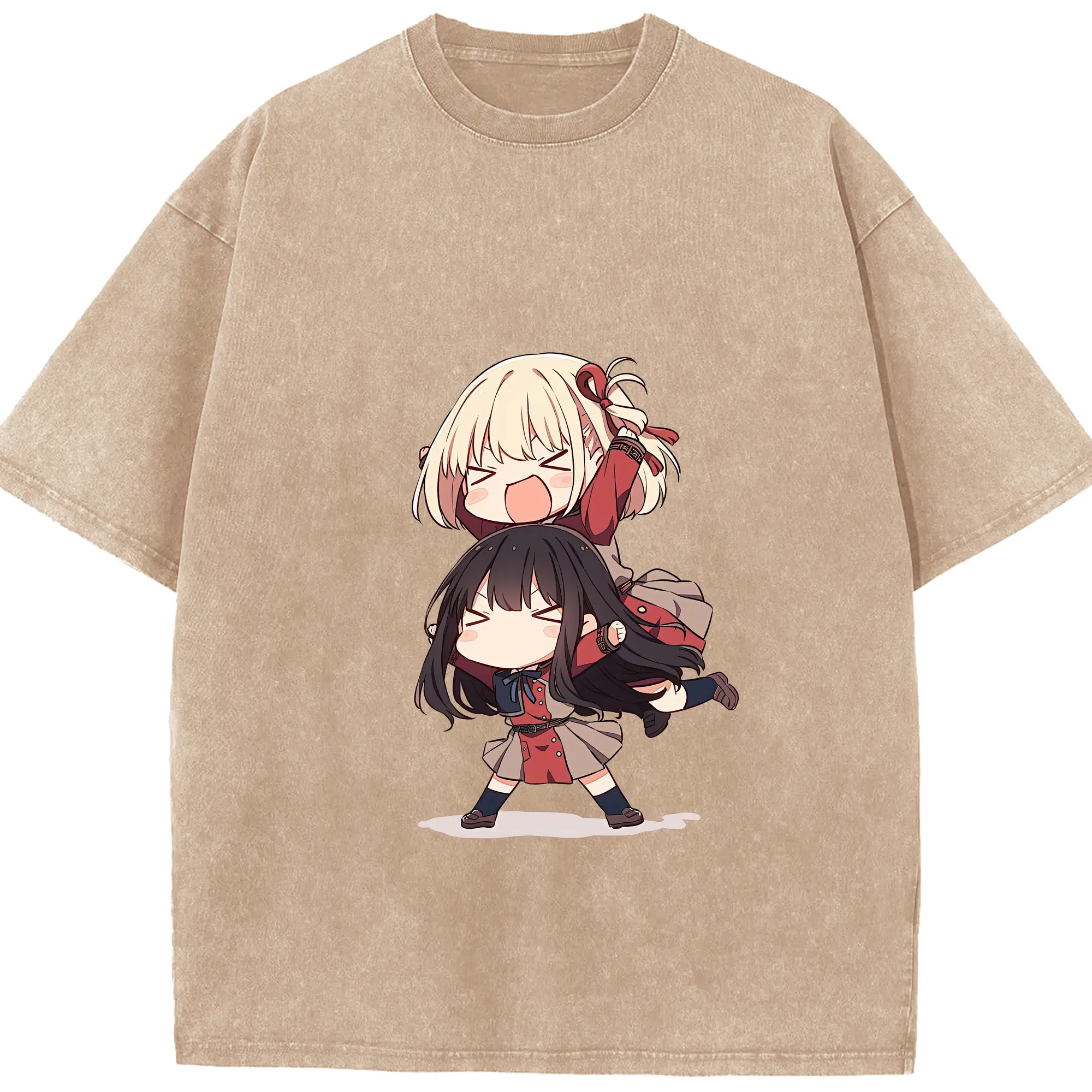 リコリス・リコイル グッズ,井ノ上たきな - 綿100% ヴィンテージ風 半袖Tシャツ ・ 背面プリント ・ 柔らか肌触り ・ 通気性 快適 ・ スポーツ カジュアル 外出用