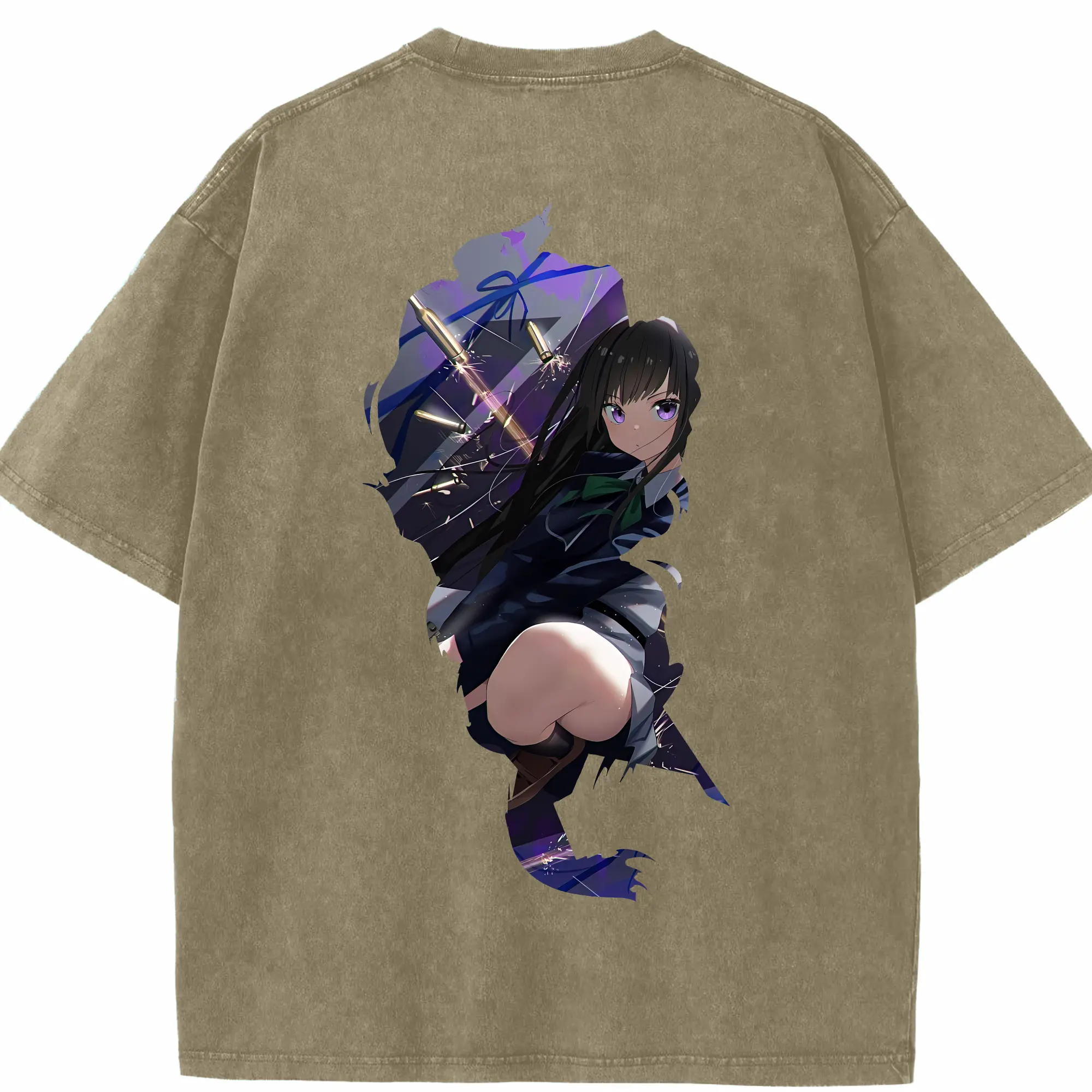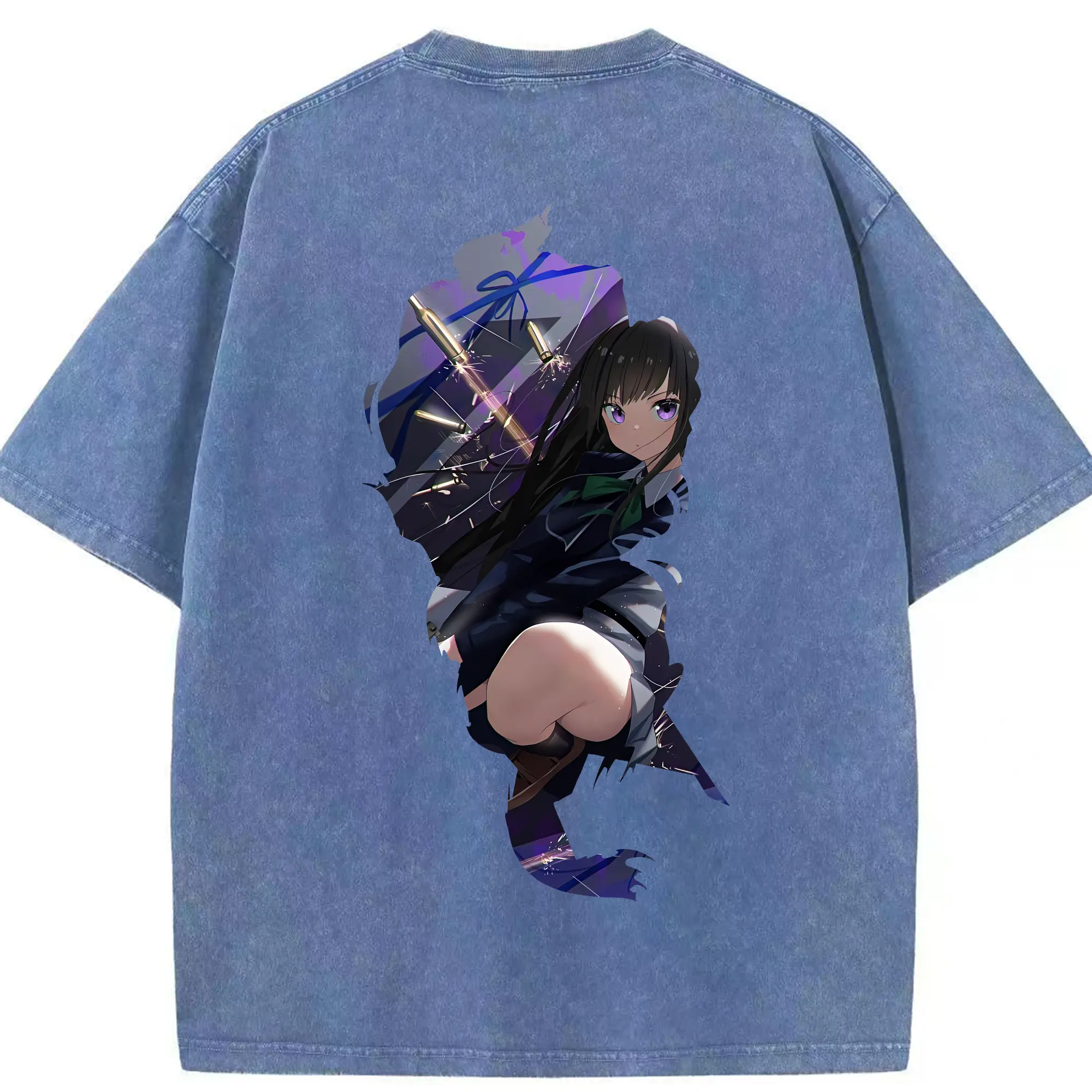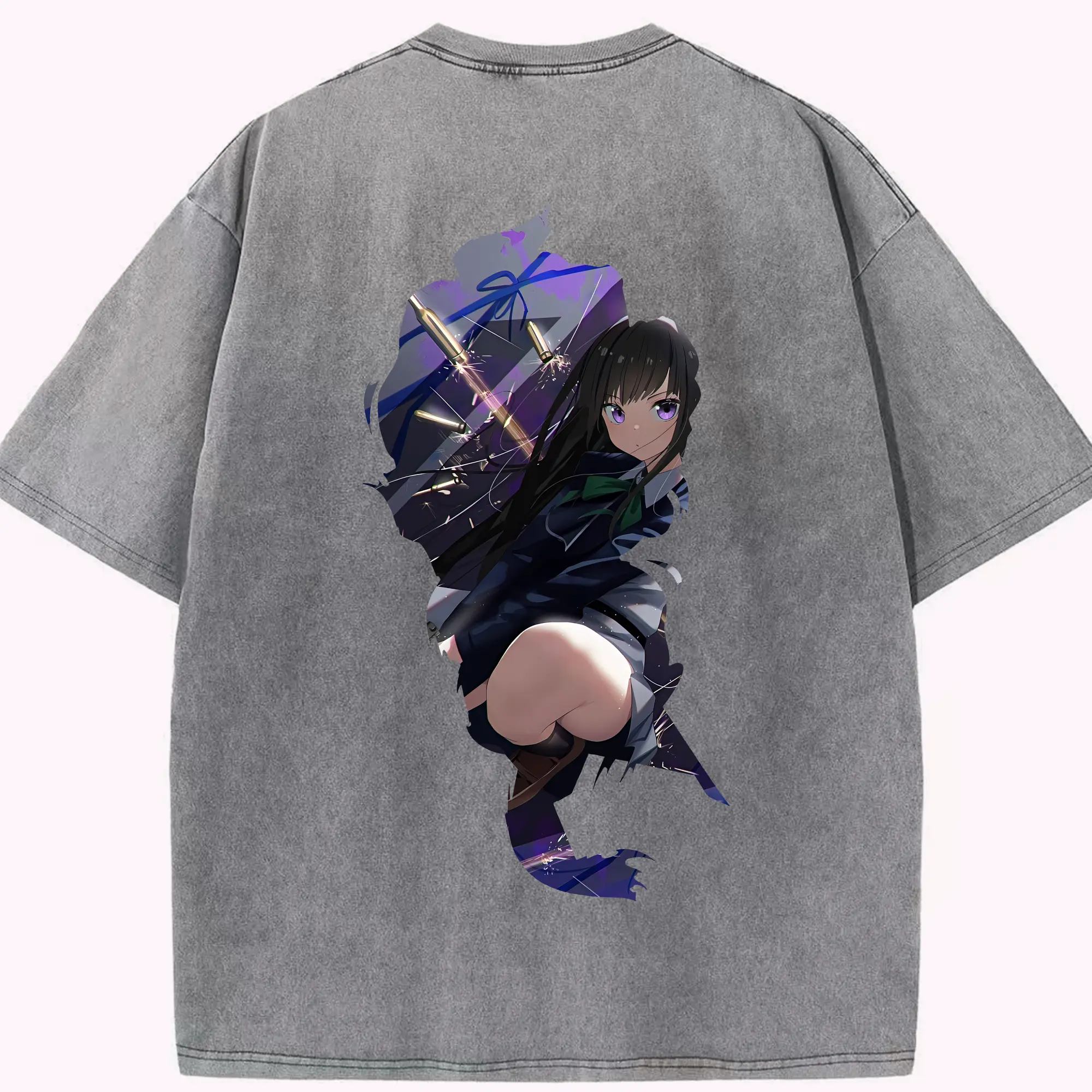 リコリス・リコイル グッズ,井ノ上たきな - 綿100% ヴィンテージ風 半袖Tシャツ ・ フロントプリント ・ 柔らか肌触り ・ 通気性 快適 ・ スポーツ カジュアル 外出用