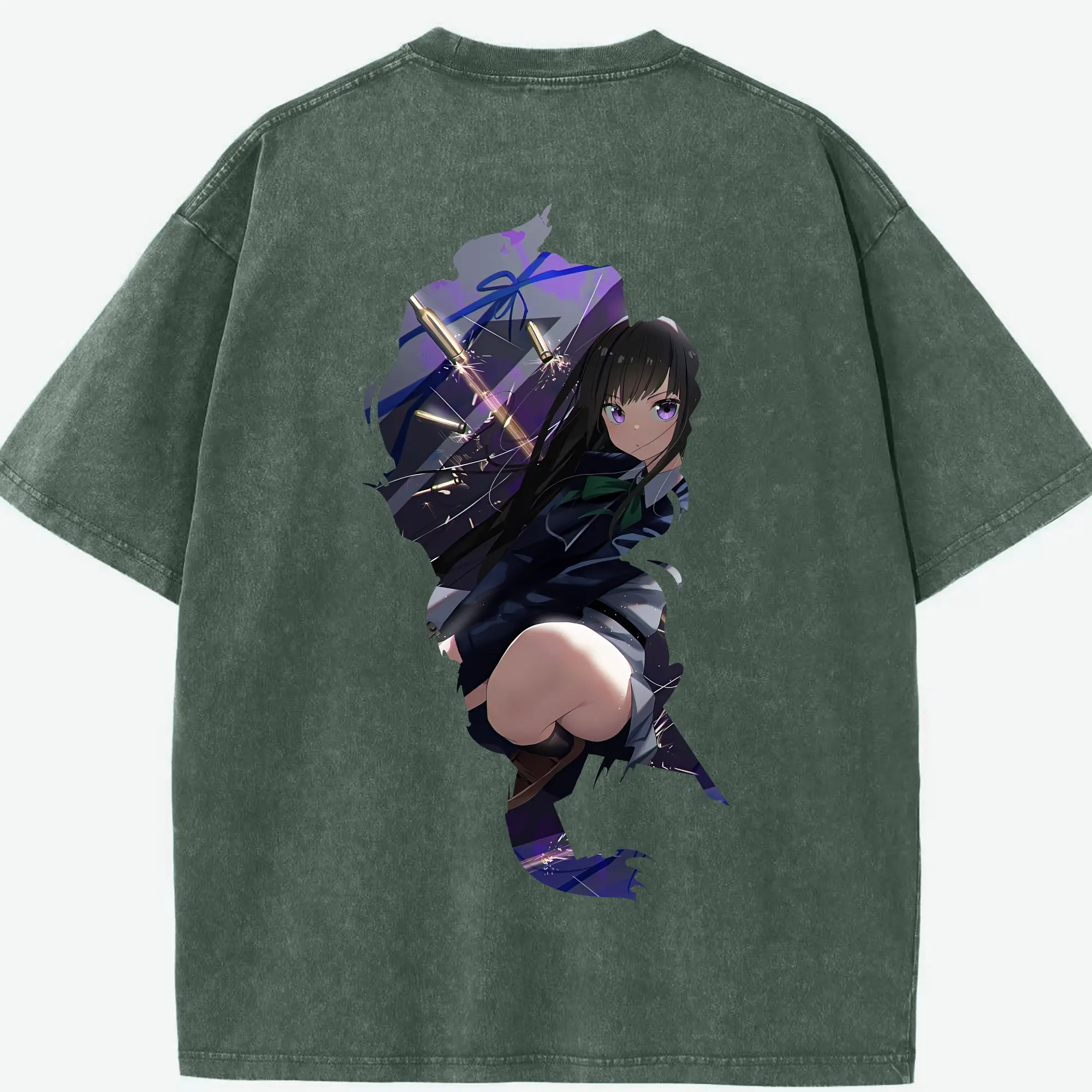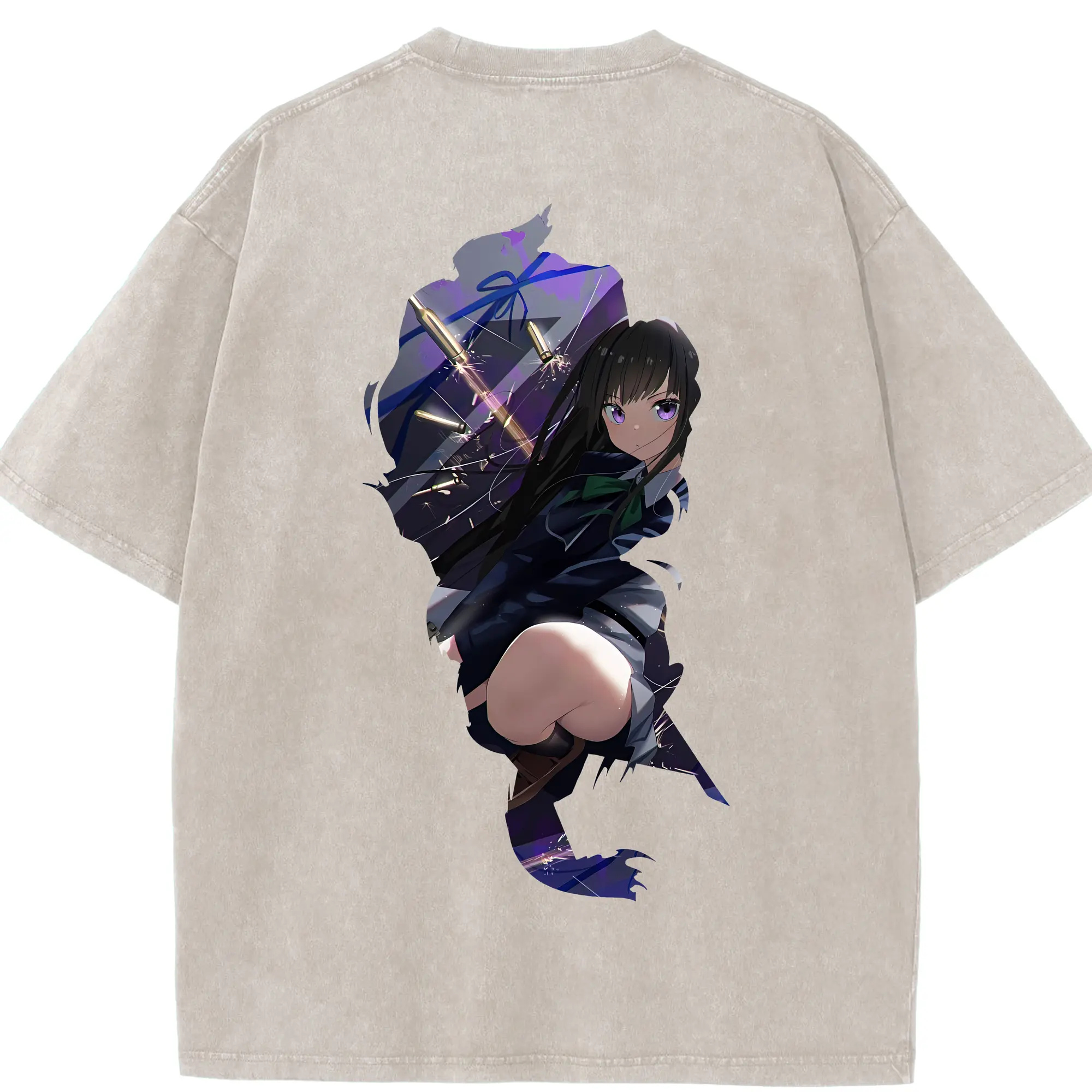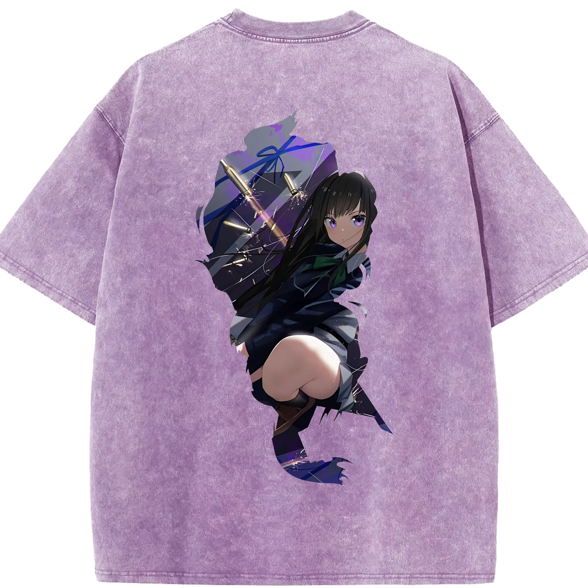 リコリス・リコイル グッズ,井ノ上たきな - 綿100% ヴィンテージ風 半袖Tシャツ ・ フロントプリント ・ 柔らか肌触り ・ 通気性 快適 ・ スポーツ カジュアル 外出用