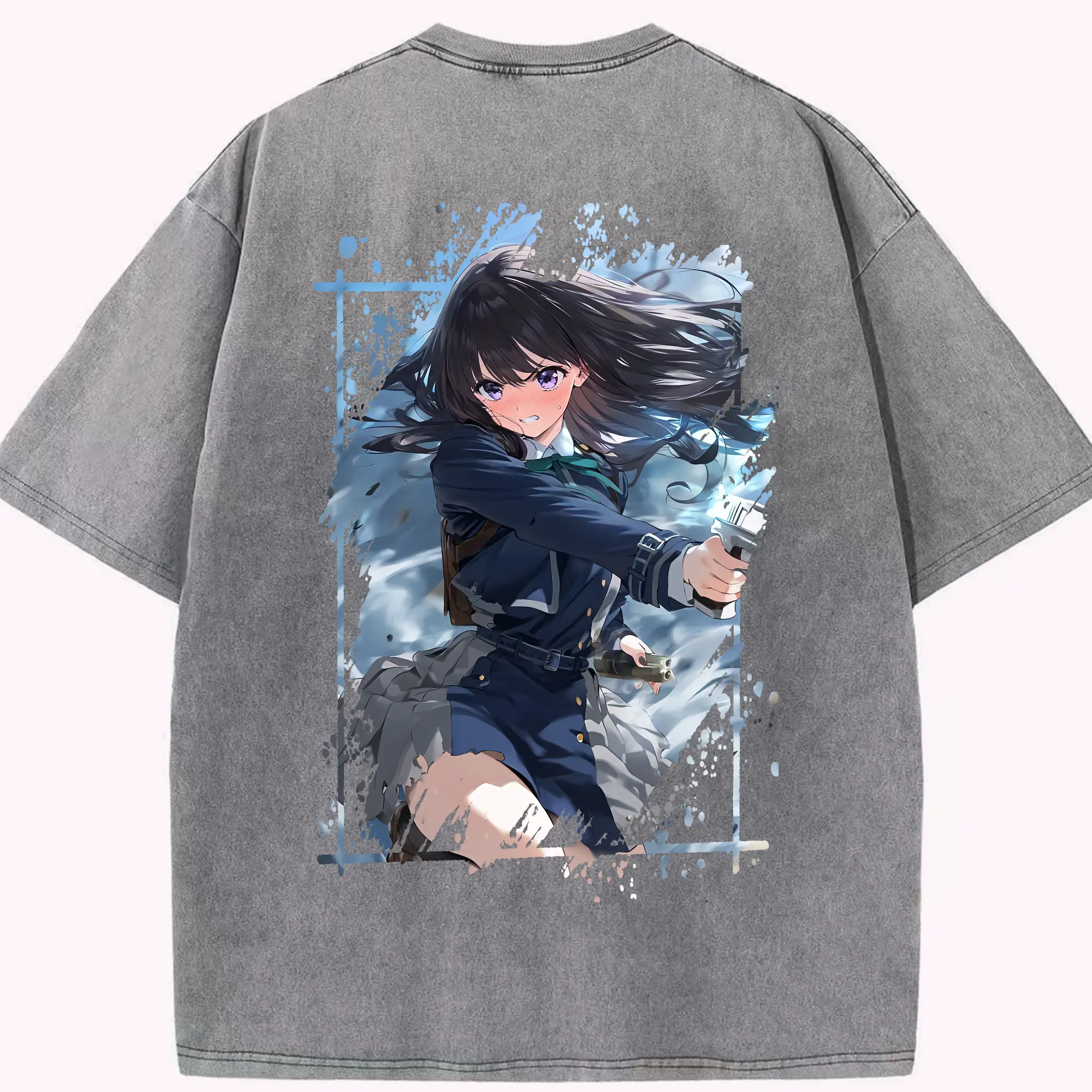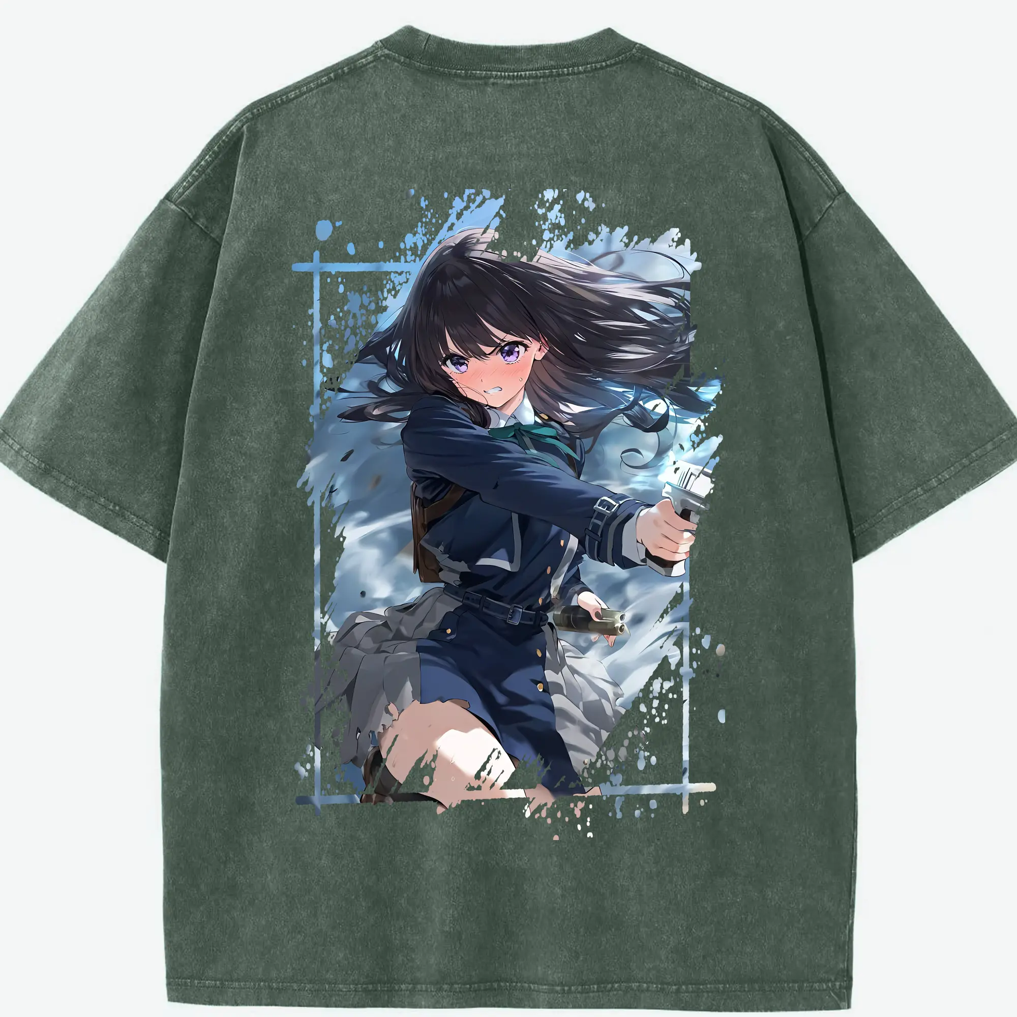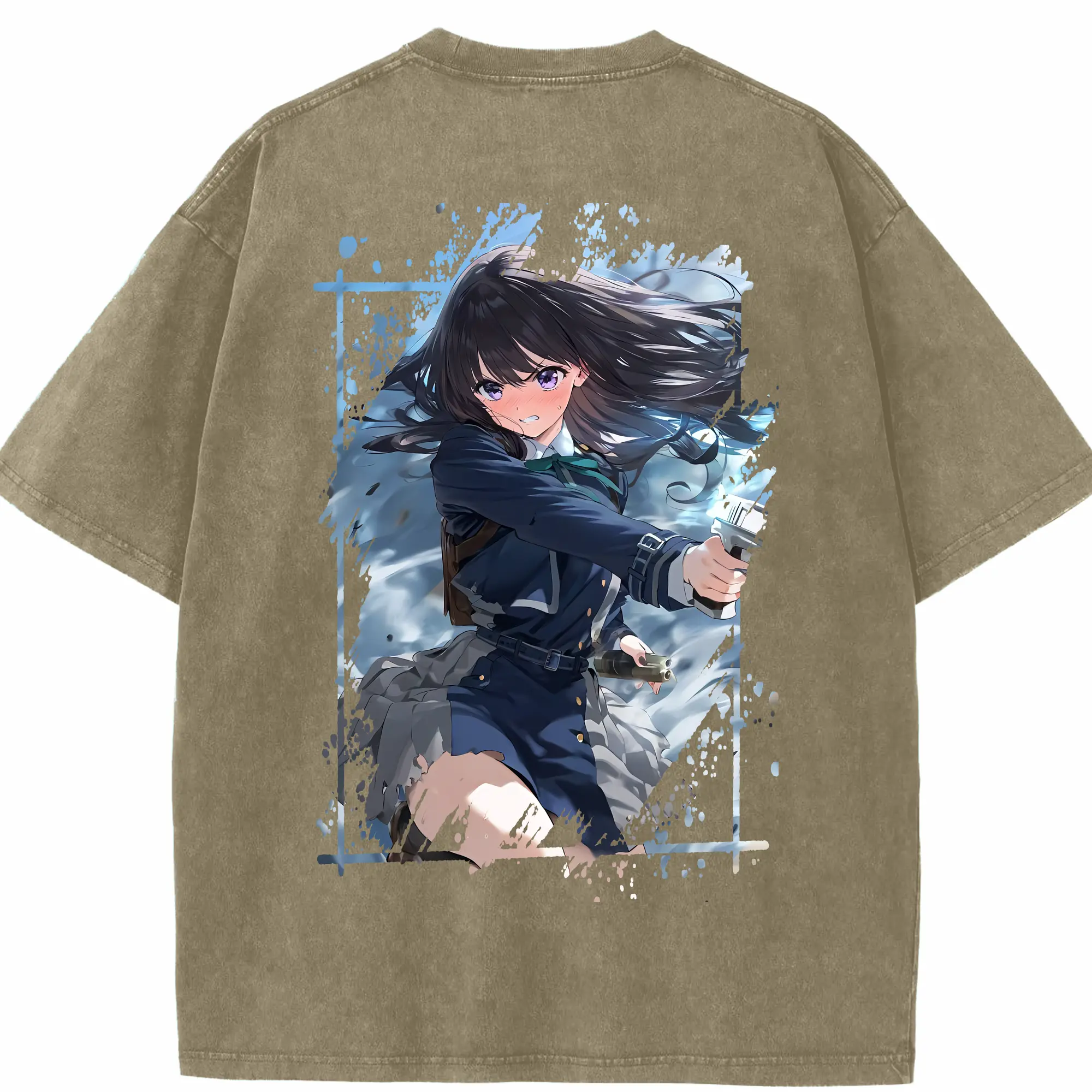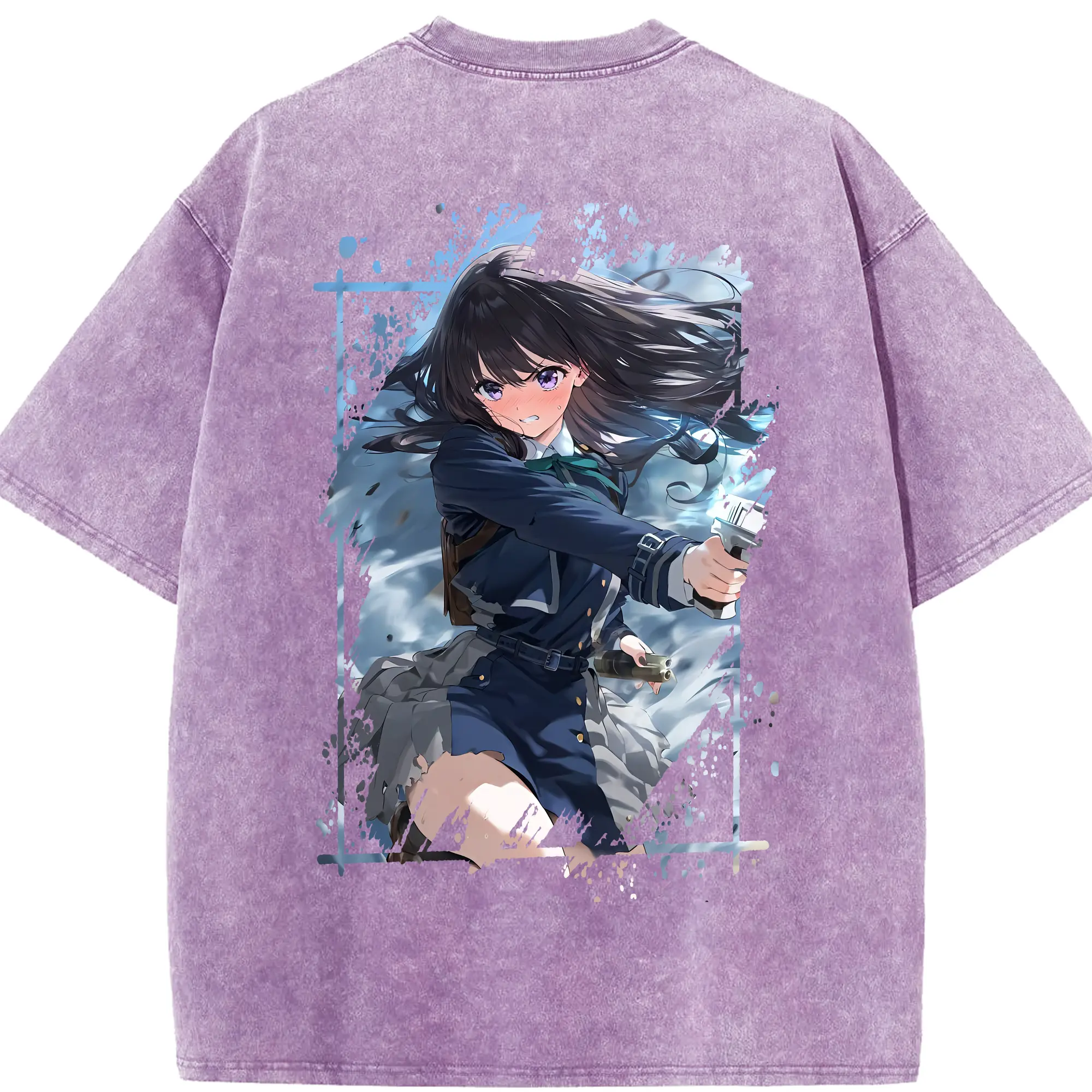 リコリス・リコイル グッズ,井ノ上たきな - 綿100% ヴィンテージ風 半袖Tシャツ ・ フロントプリント ・ 柔らか肌触り ・ 通気性 快適 ・ スポーツ カジュアル 外出用