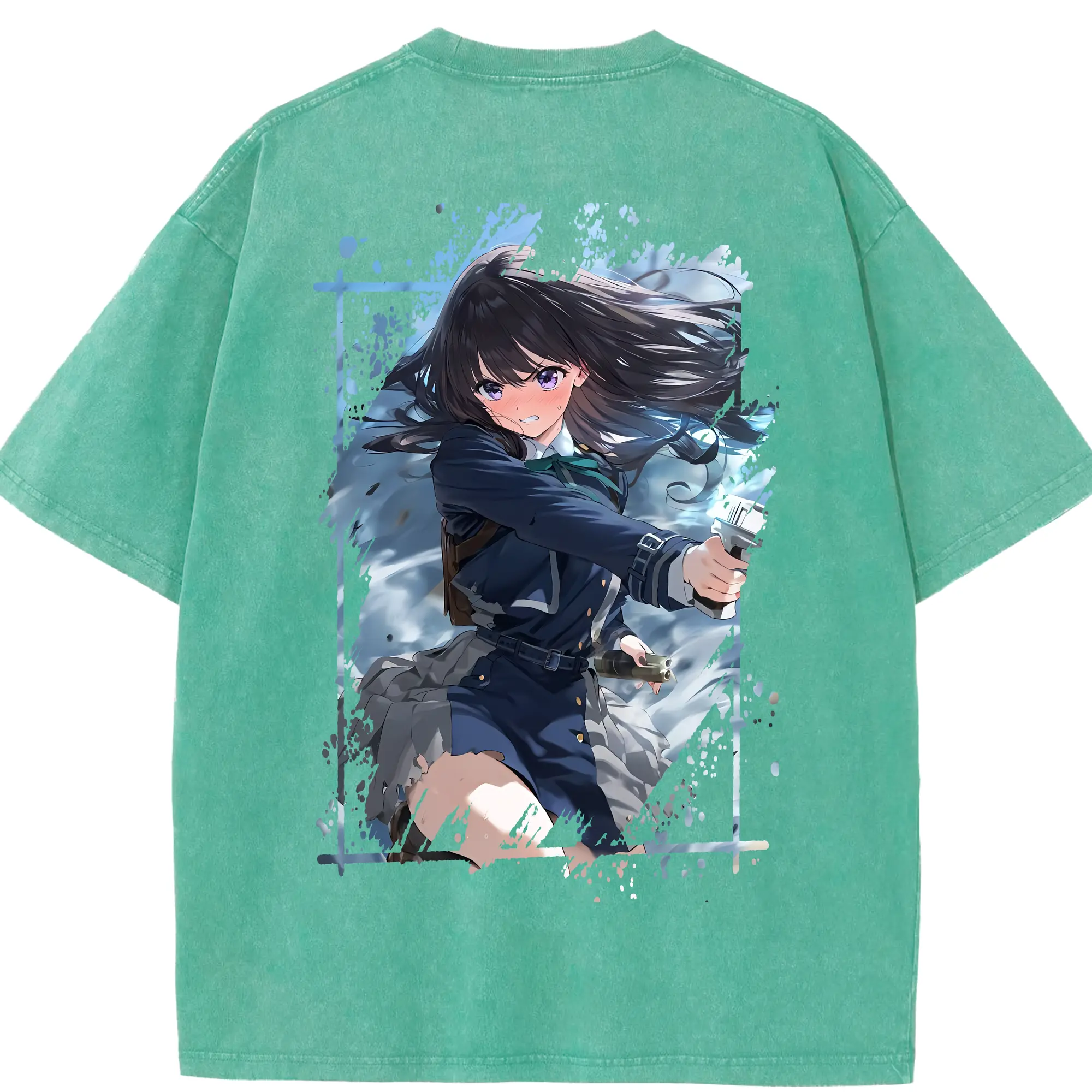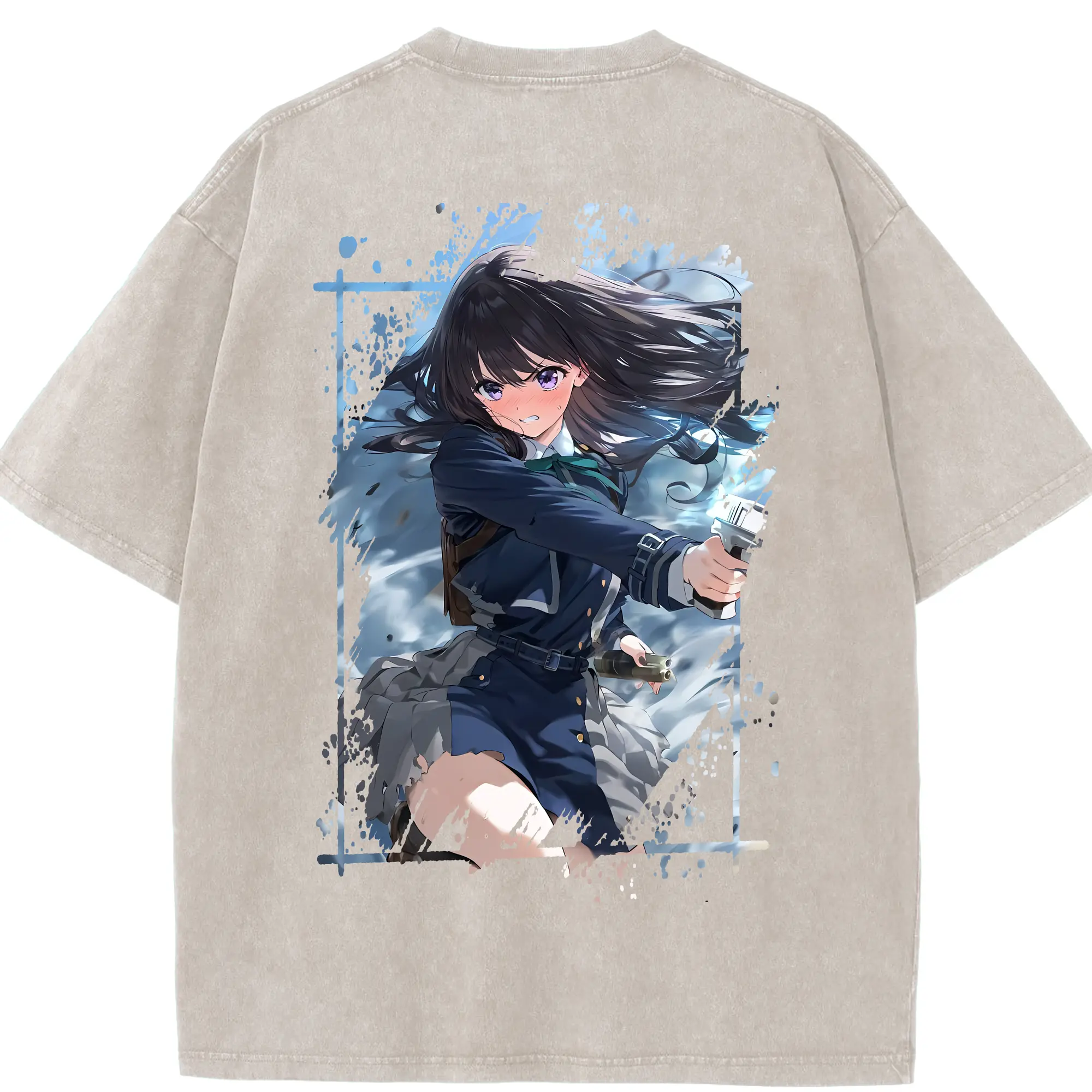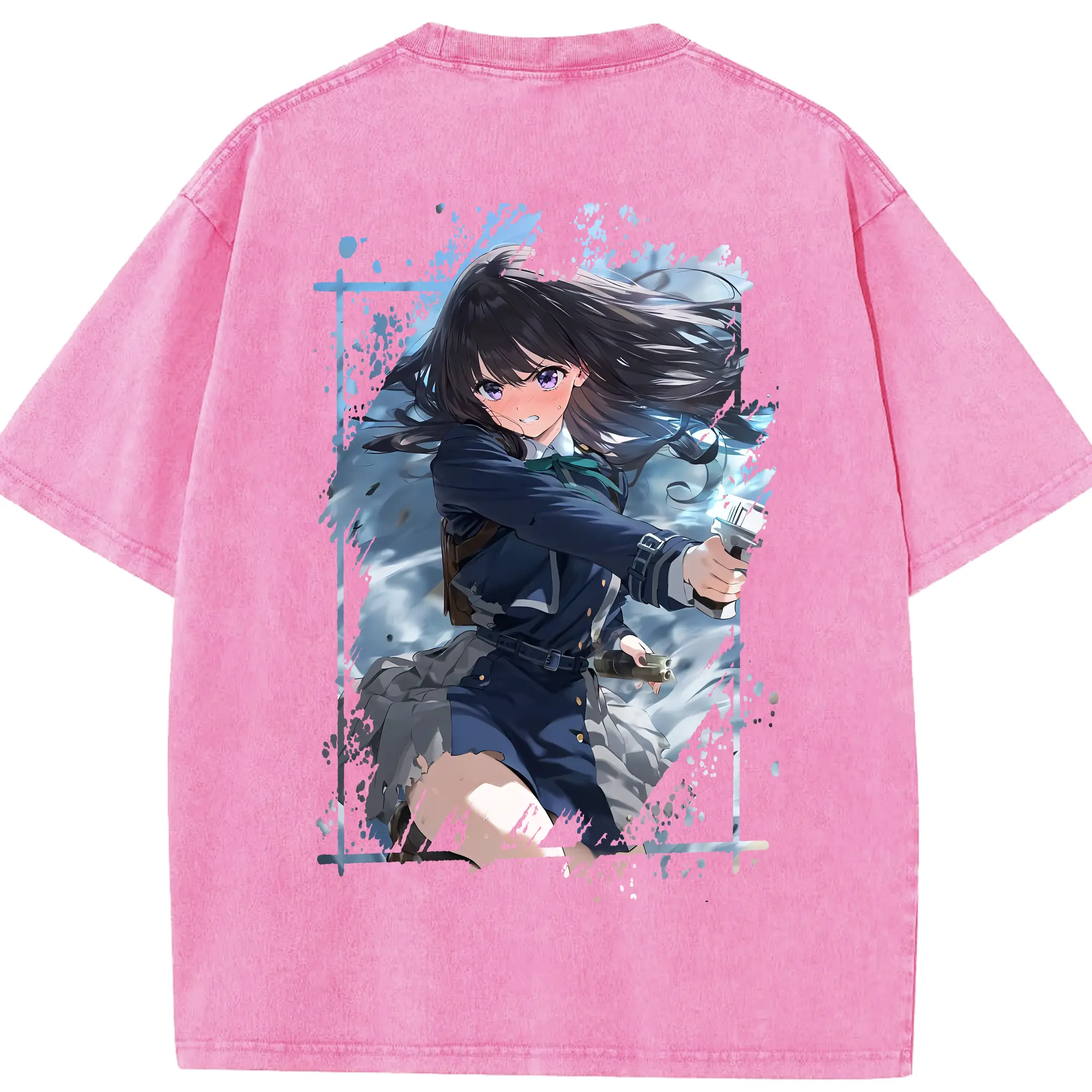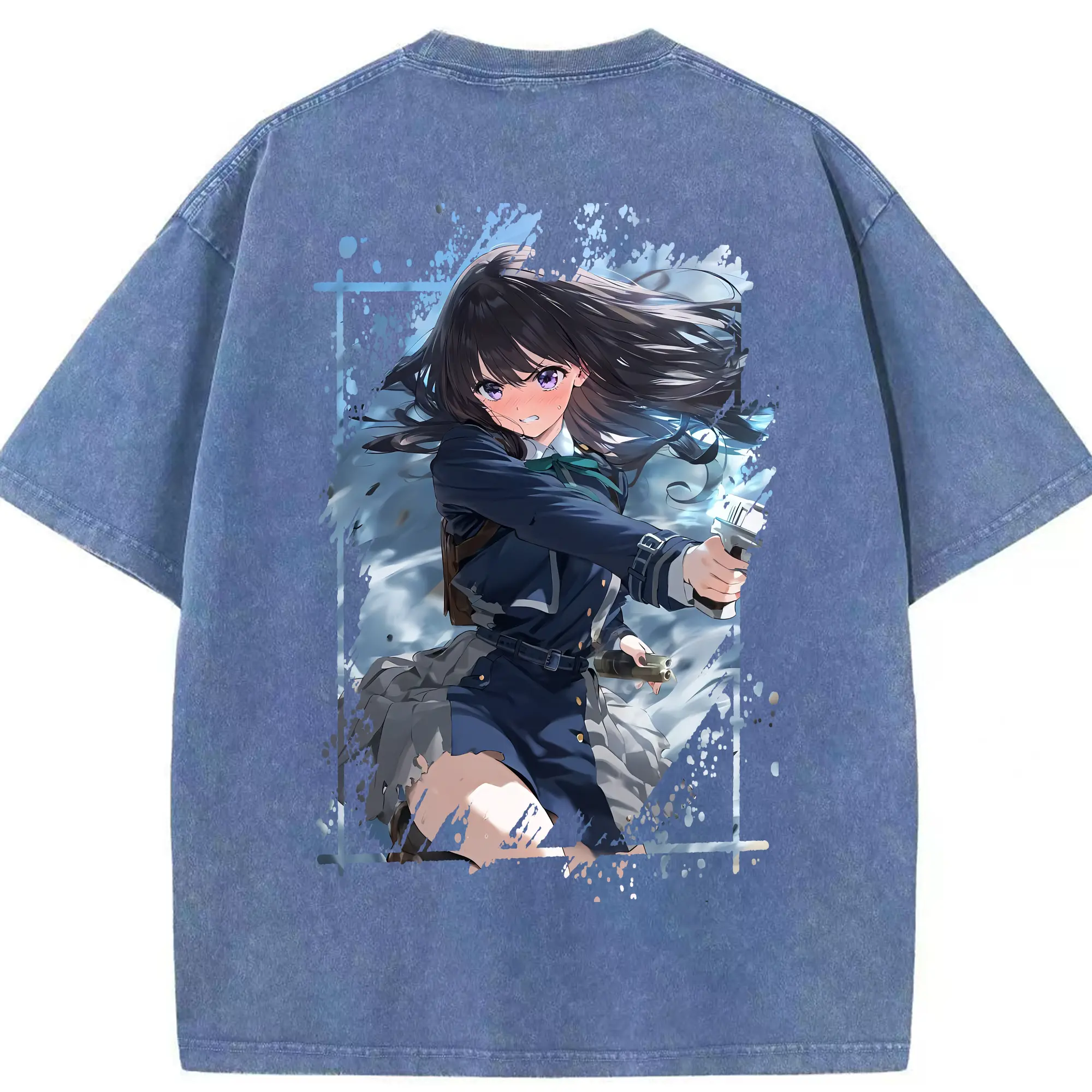 リコリス・リコイル グッズ,井ノ上たきな - 綿100% ヴィンテージ風 半袖Tシャツ ・ フロントプリント ・ 柔らか肌触り ・ 通気性 快適 ・ スポーツ カジュアル 外出用