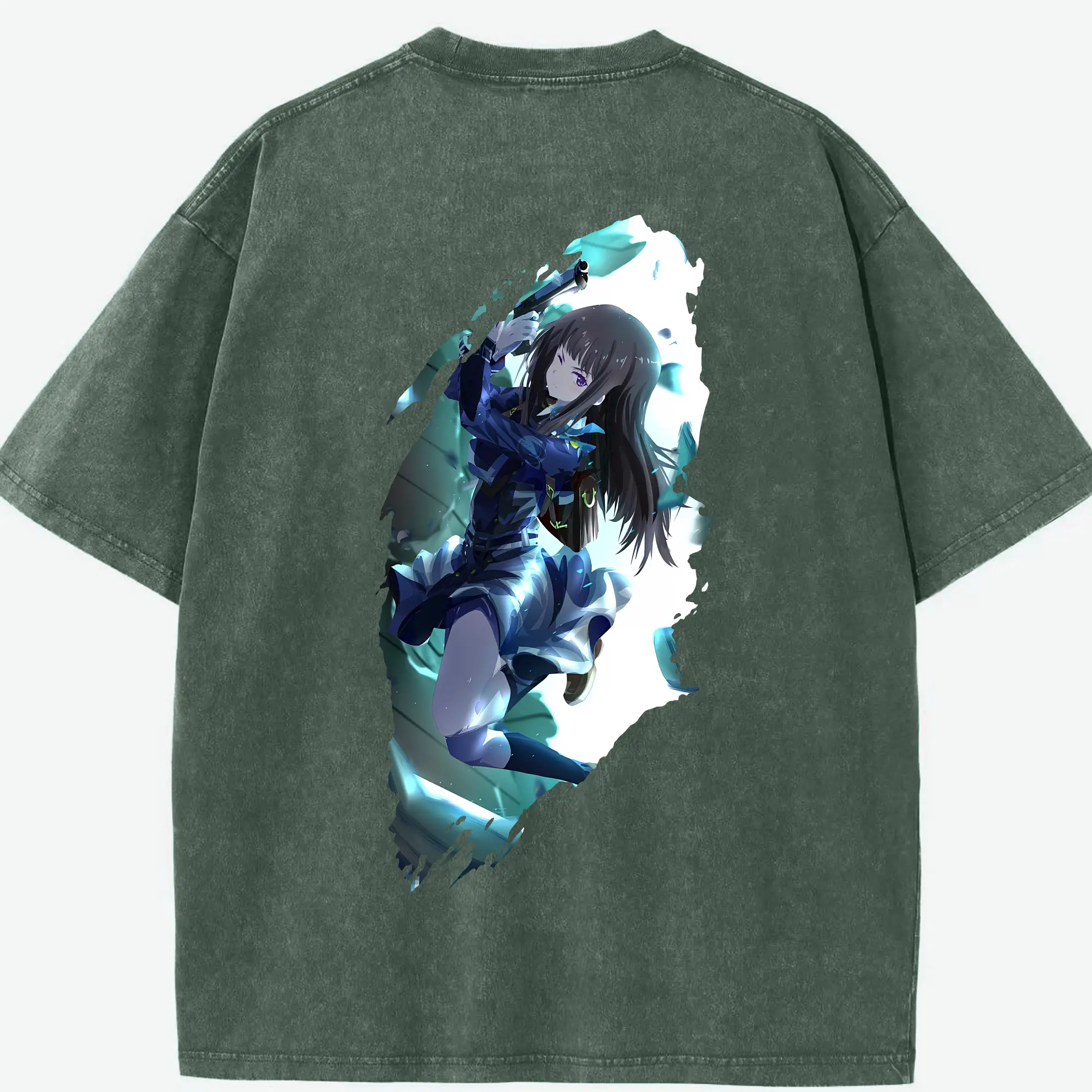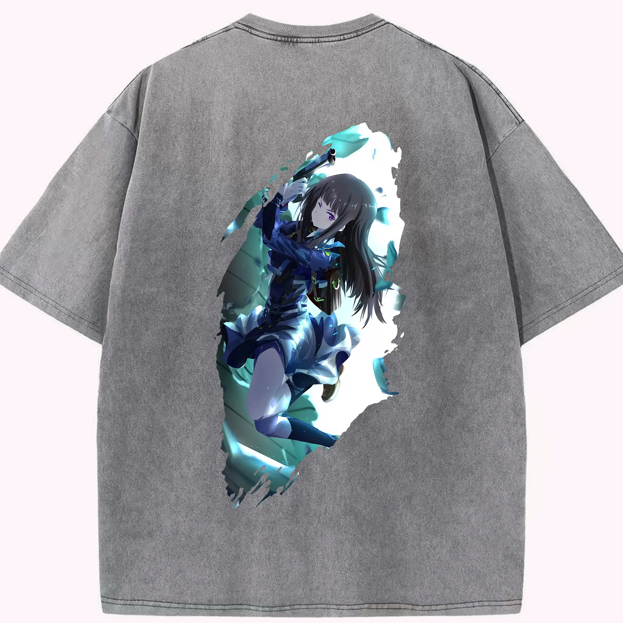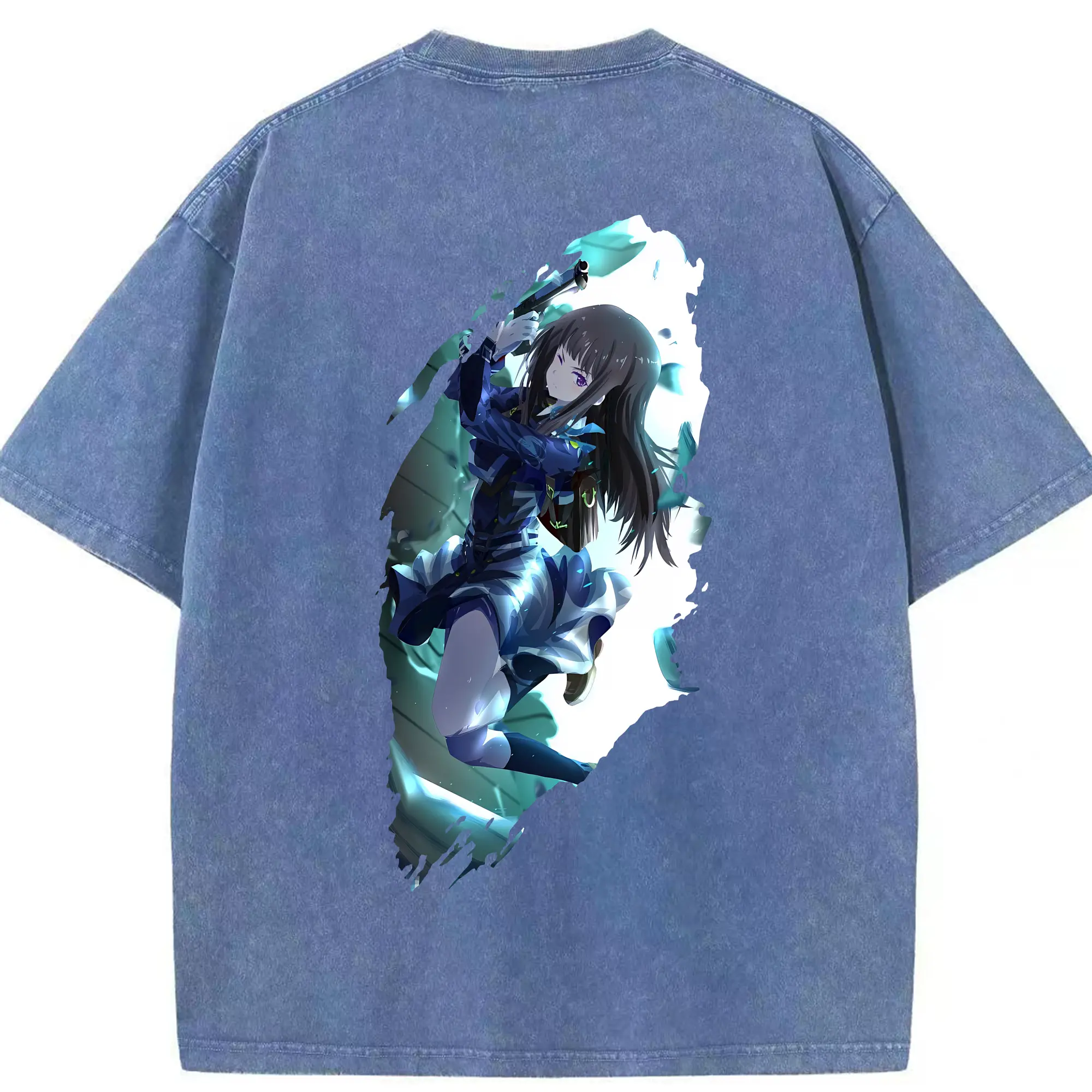 リコリス・リコイル グッズ,井ノ上たきな - 綿100% ヴィンテージ風 半袖Tシャツ ・ フロントプリント ・ 柔らか肌触り ・ 通気性 快適 ・ スポーツ カジュアル 外出用