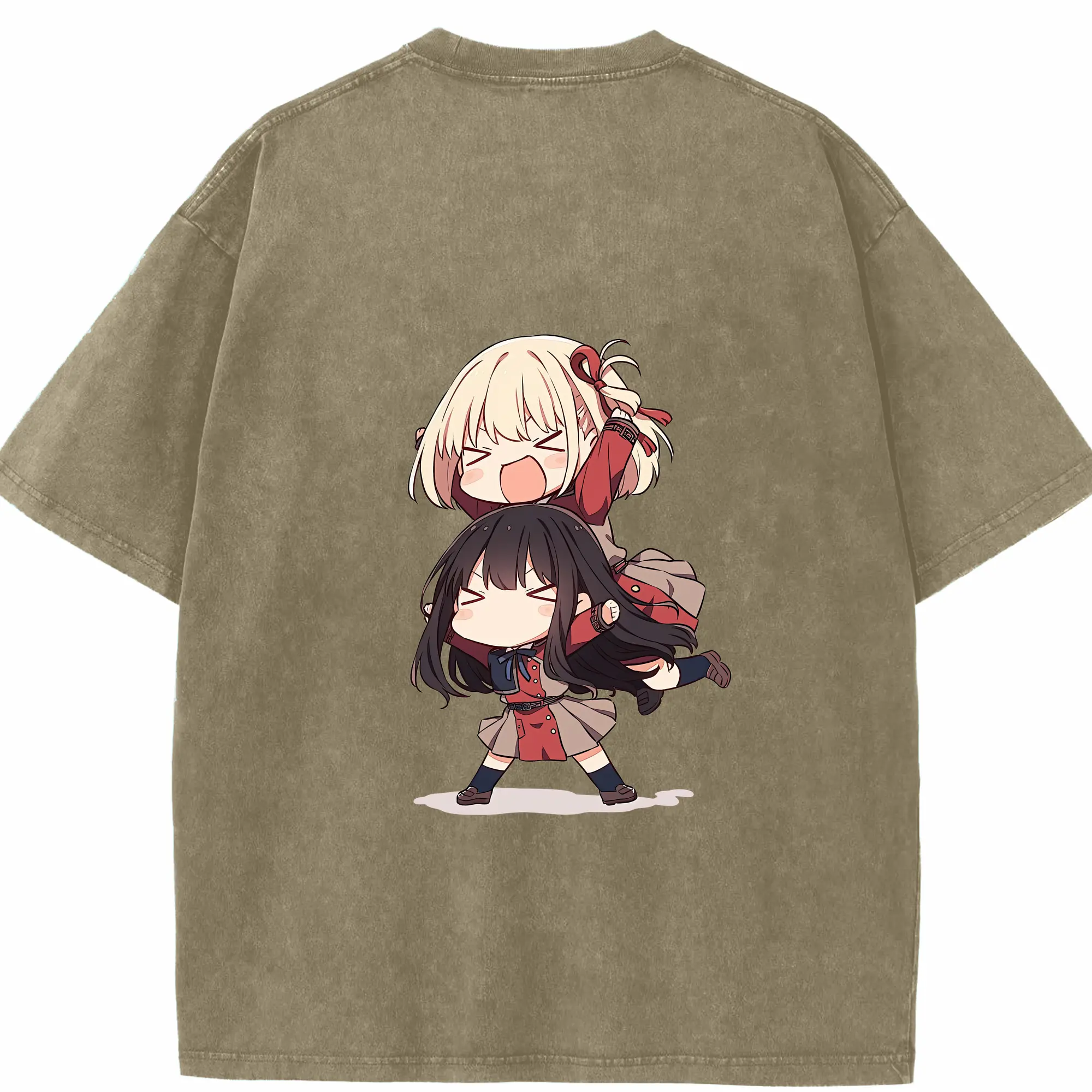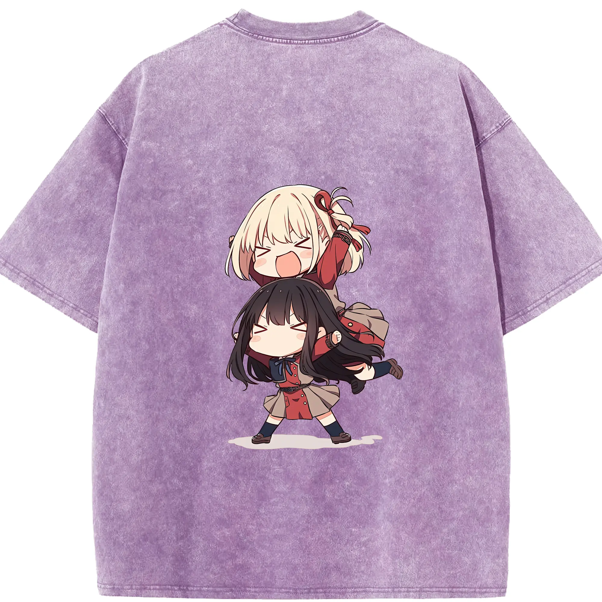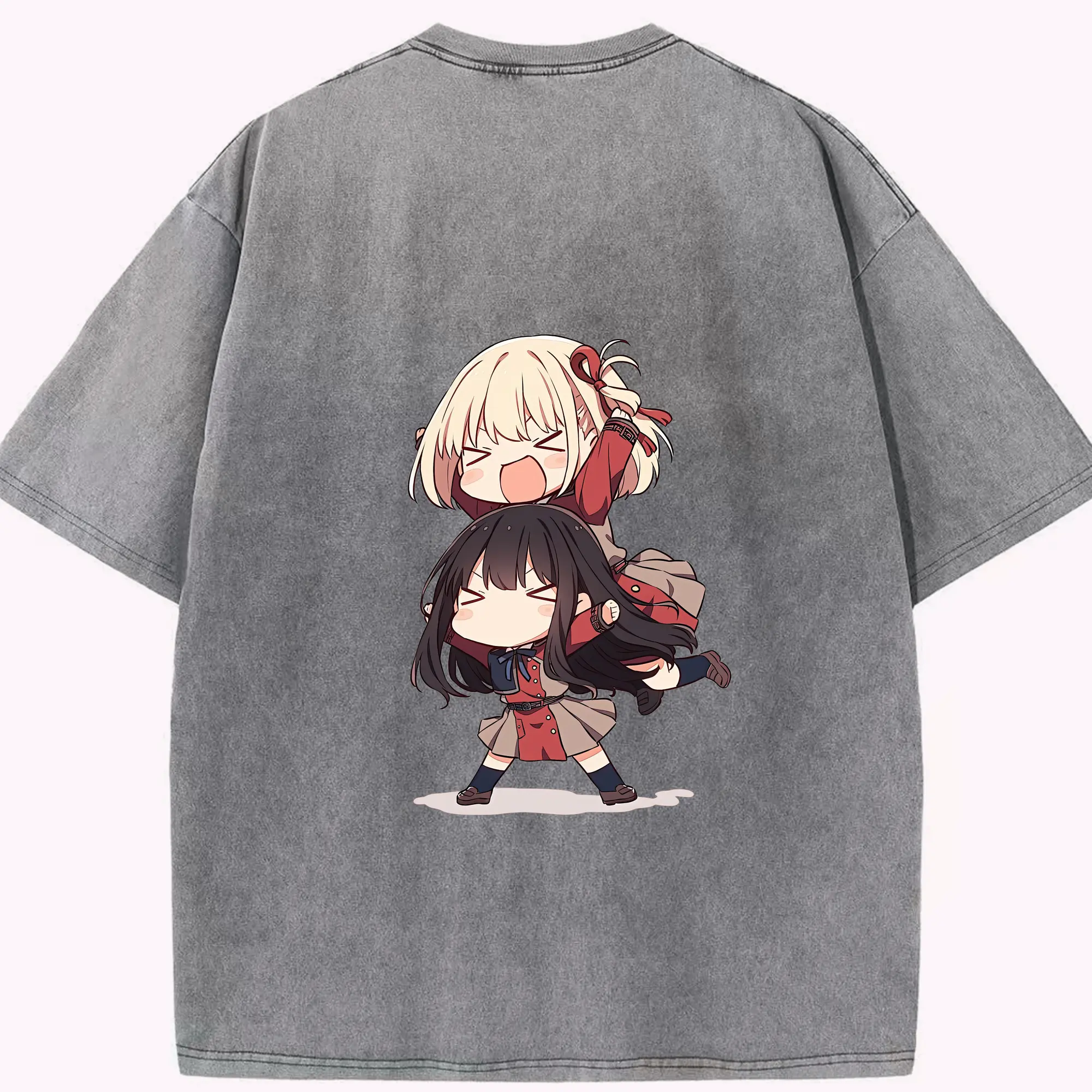 リコリス・リコイル グッズ,井ノ上たきな - 綿100% ヴィンテージ風 半袖Tシャツ ・ 背面プリント ・ 柔らか肌触り ・ 通気性 快適 ・ スポーツ カジュアル 外出用