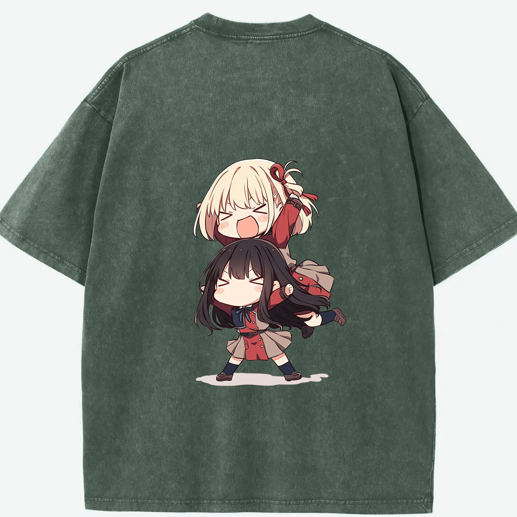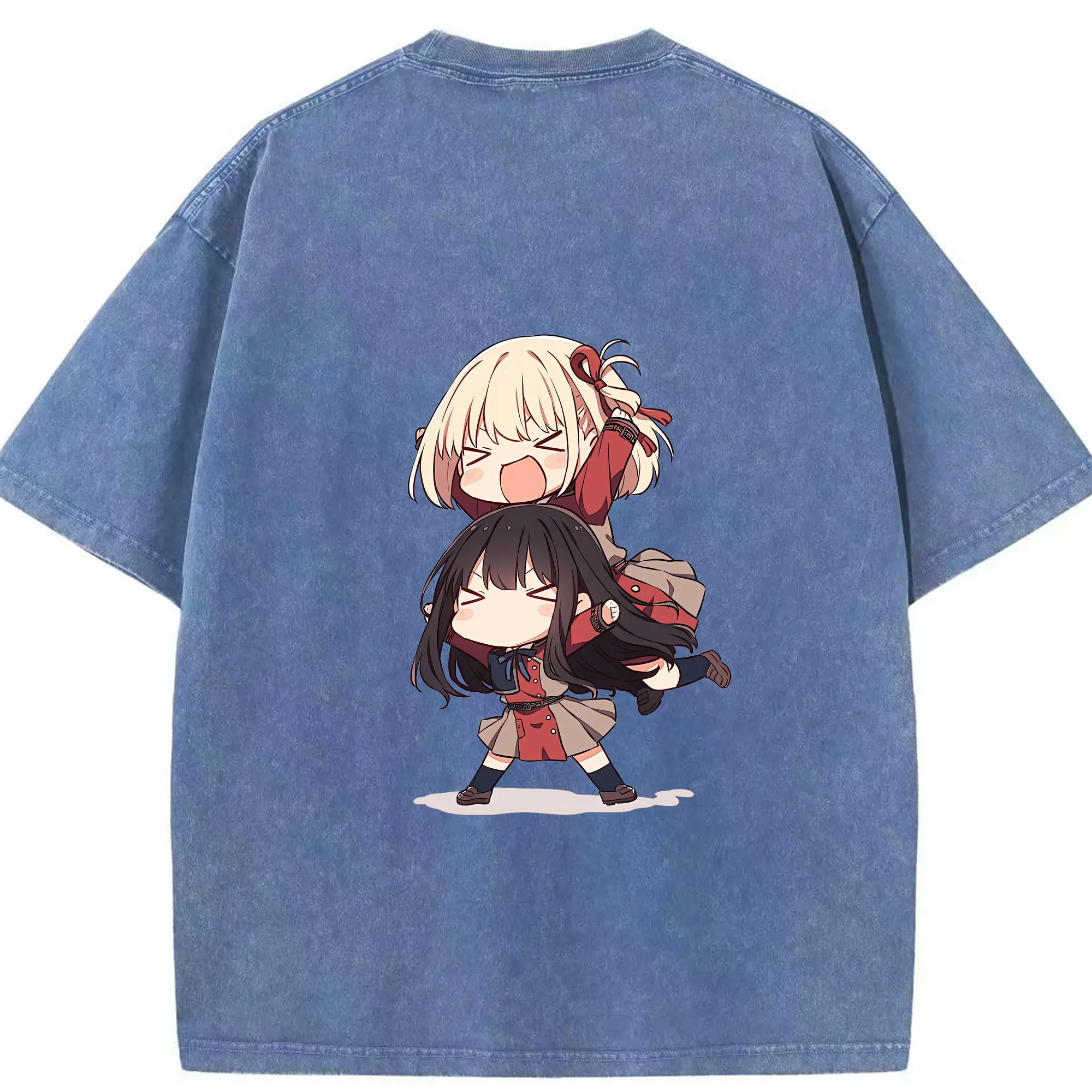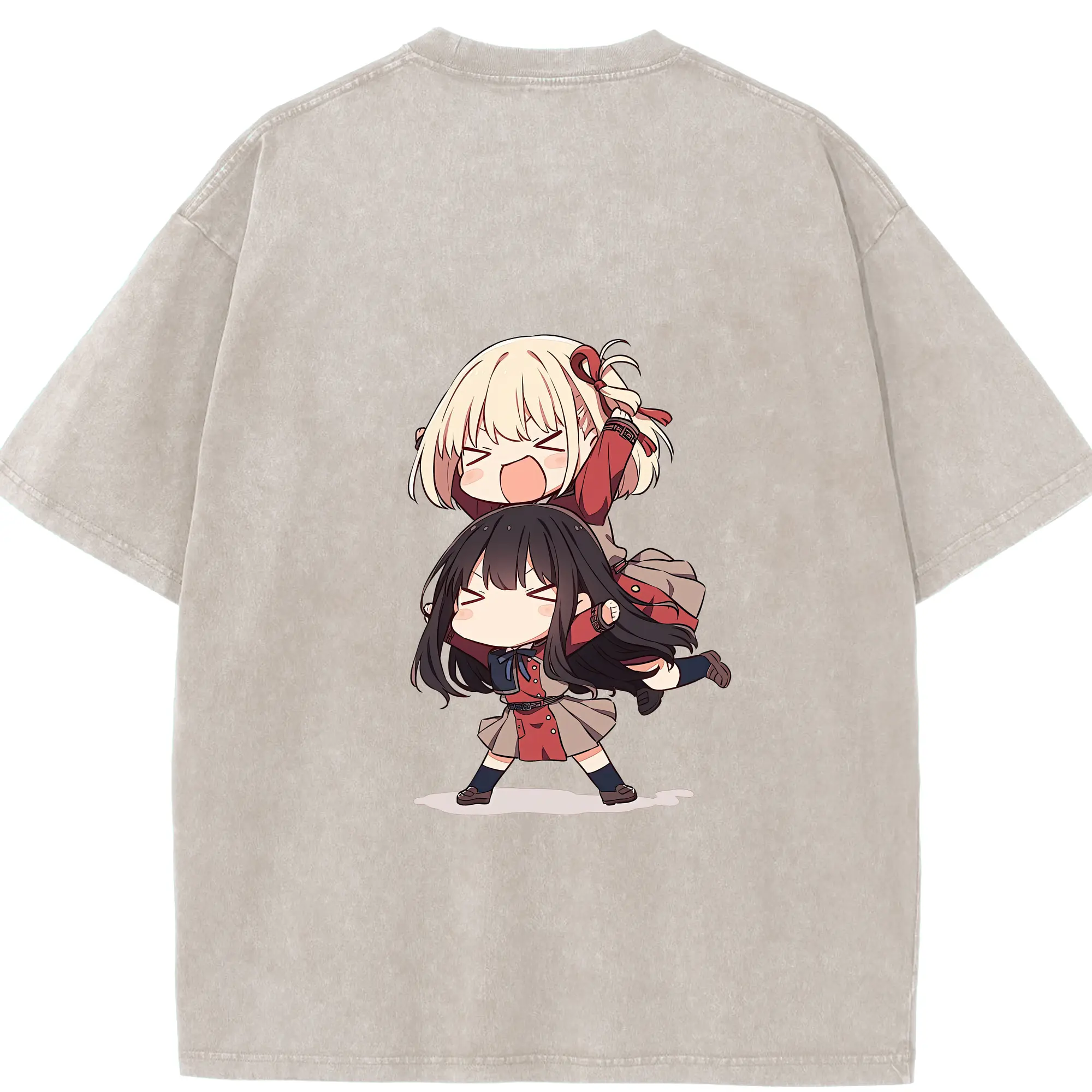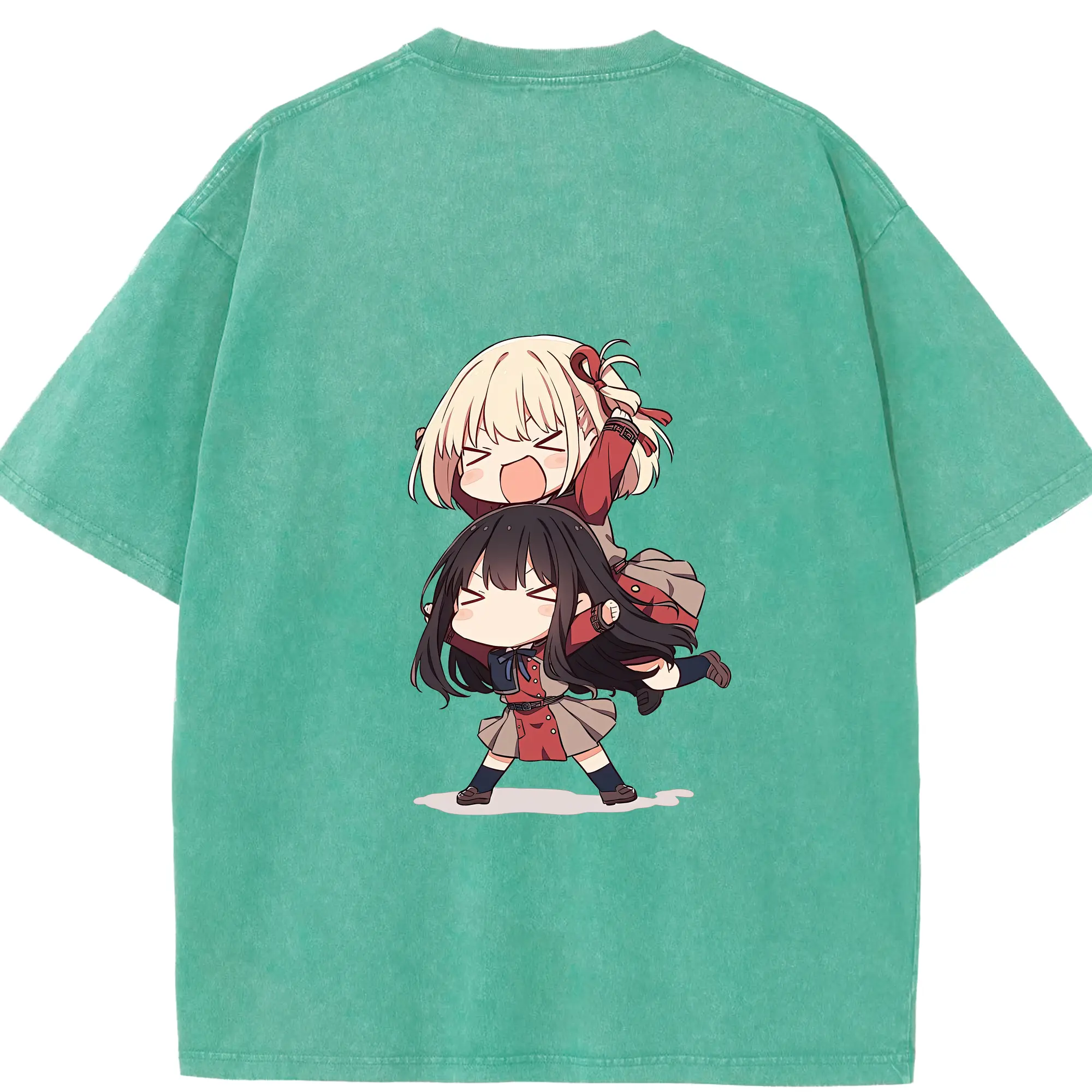リコリス・リコイル グッズ,井ノ上たきな - 綿100% ヴィンテージ風 半袖Tシャツ ・ 背面プリント ・ 柔らか肌触り ・ 通気性 快適 ・ スポーツ カジュアル 外出用