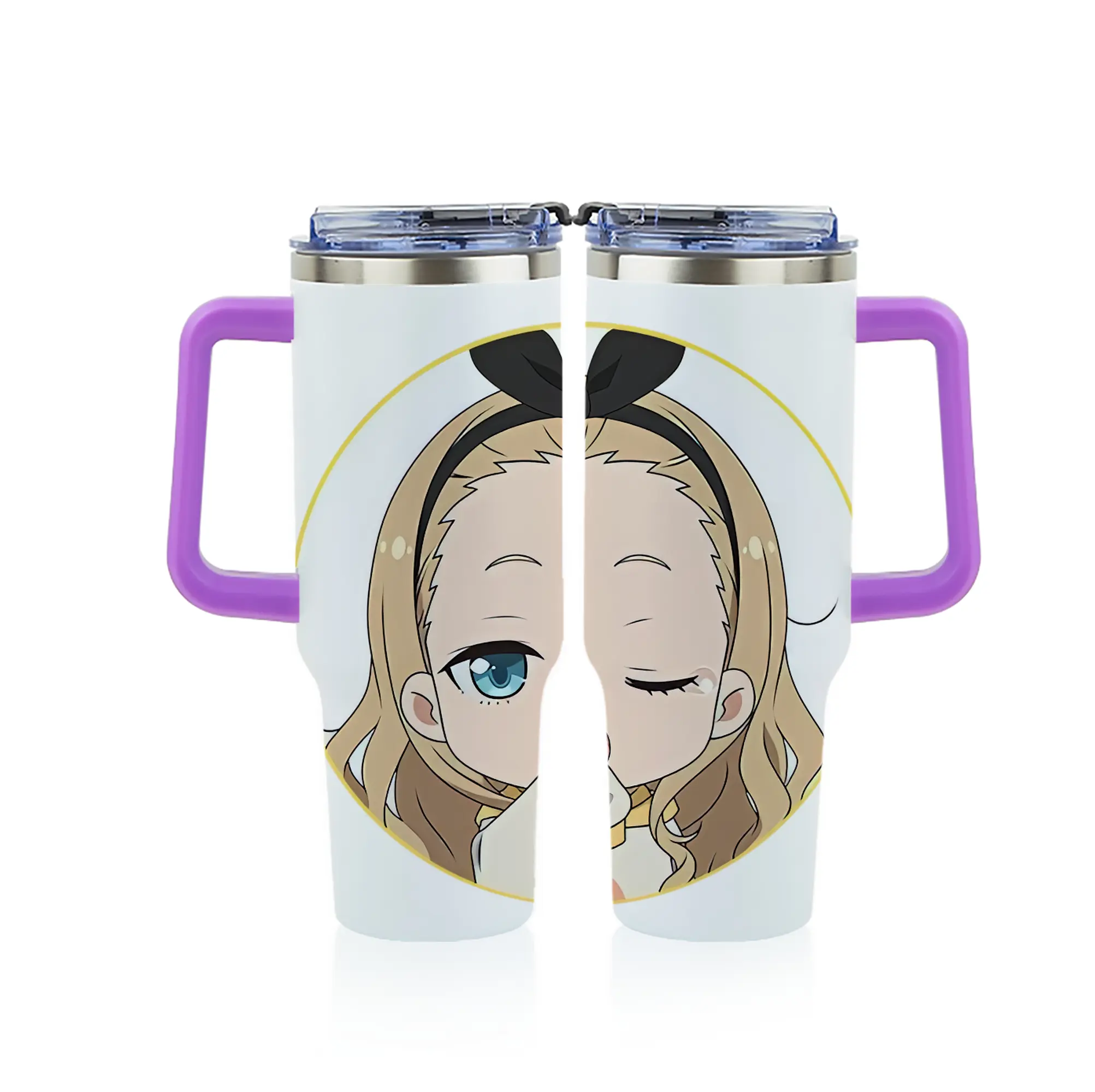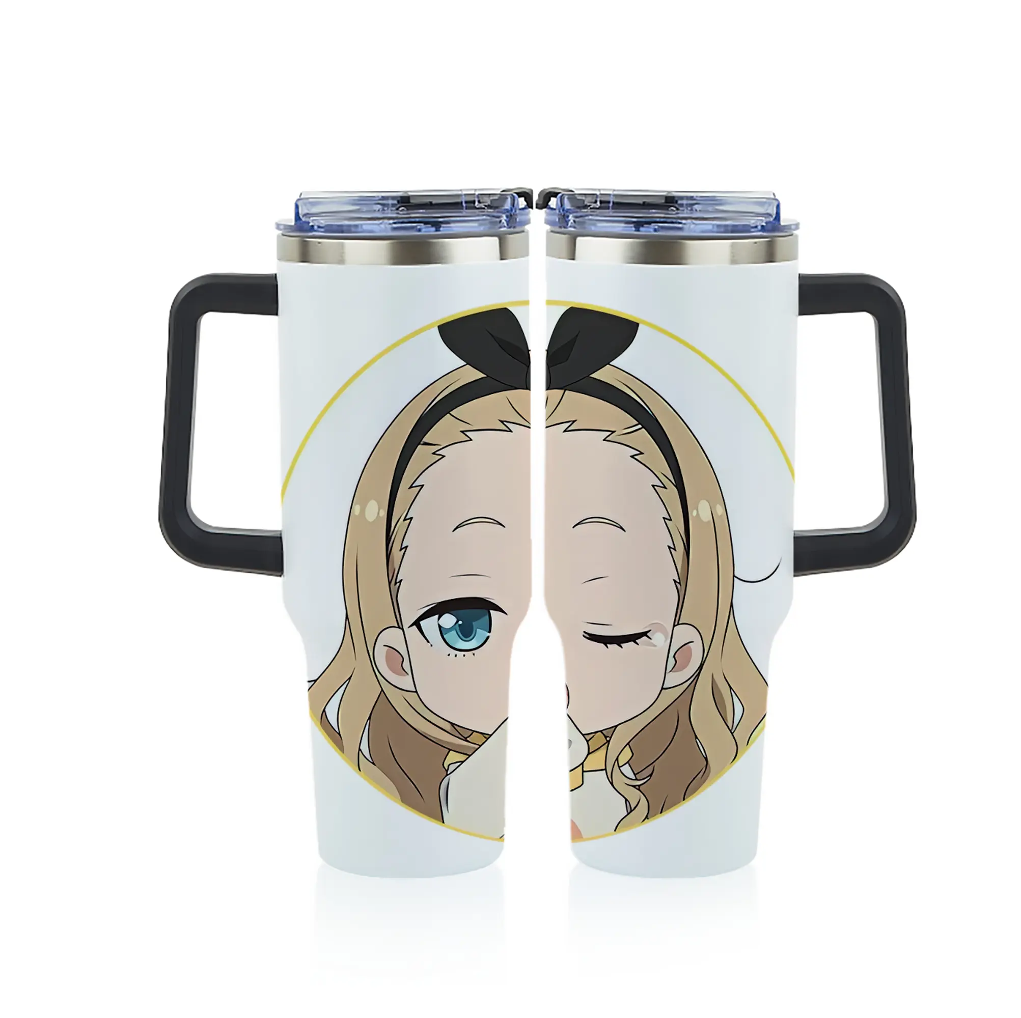 リコリス・リコイル グッズ,クルミ - 1200mL フルプリント車用タンブラー ・ 304ステンレス 内側 ・ 201ステンレス 外側 ・ 保温 保冷 ・ 通勤 ドライブ アウトドア用