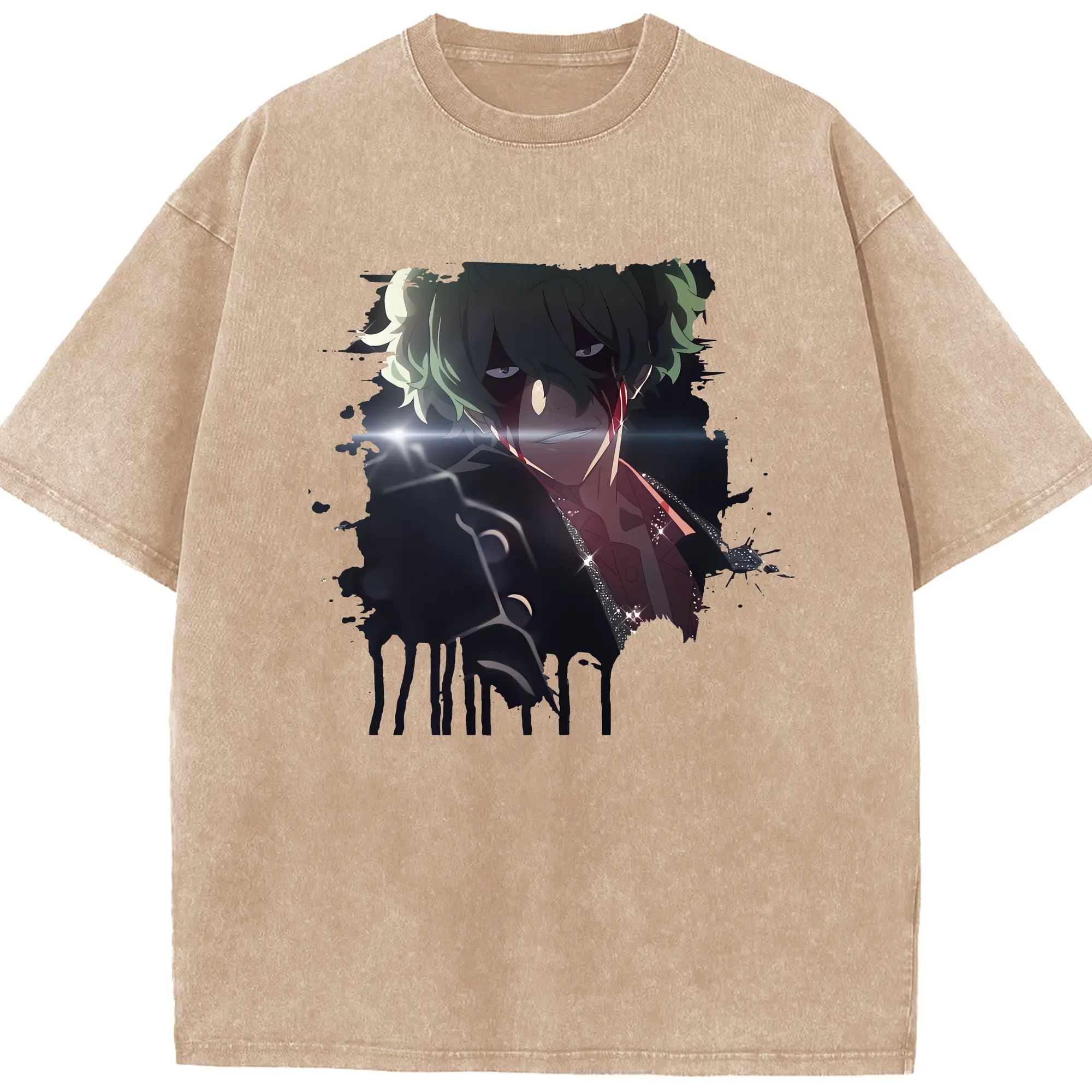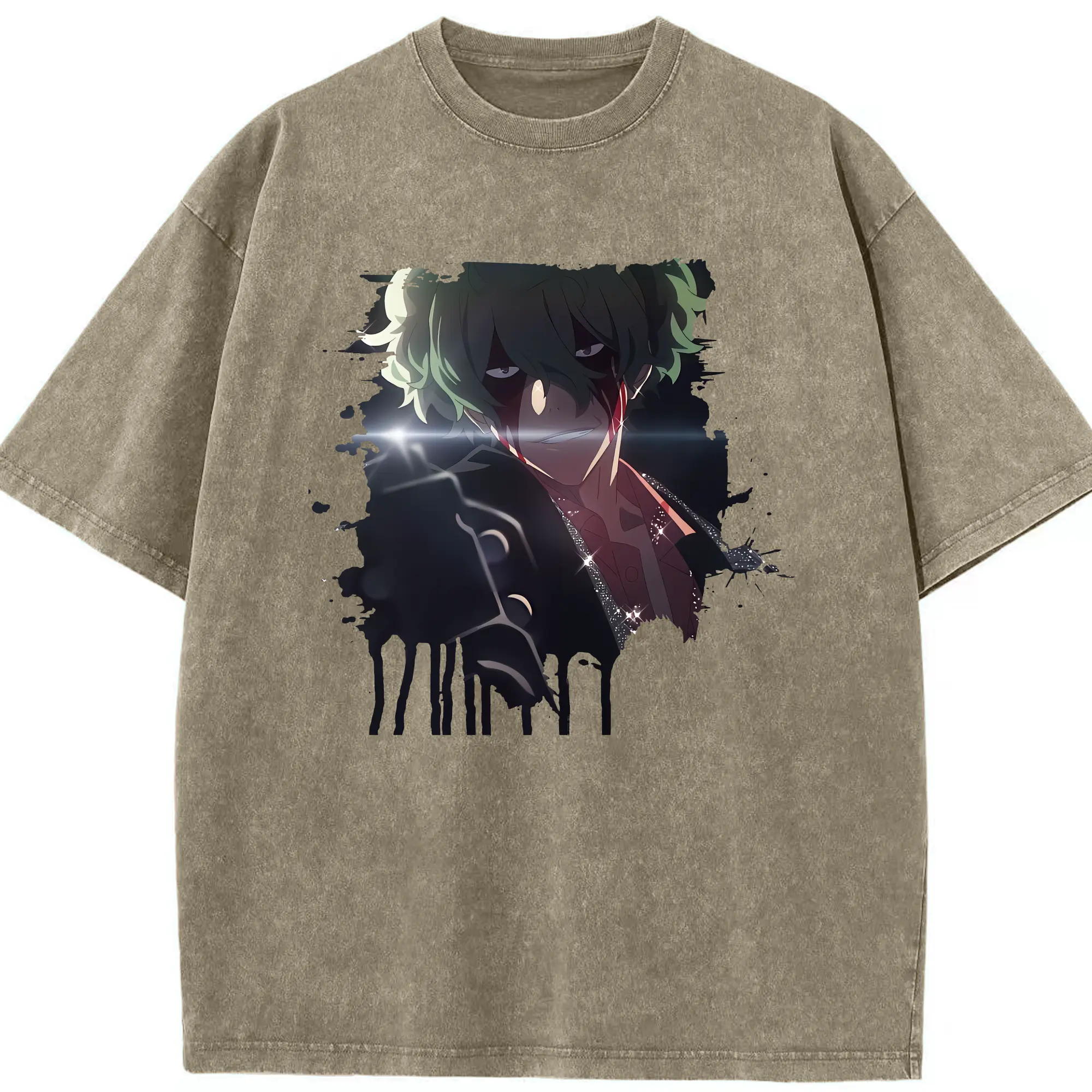 北斗の拳 グッズ,ジャギ - 綿100% ヴィンテージ風 半袖Tシャツ ・ フロントプリント ・ 柔らか肌触り ・ 通気性 快適 ・ スポーツ カジュアル 外出用