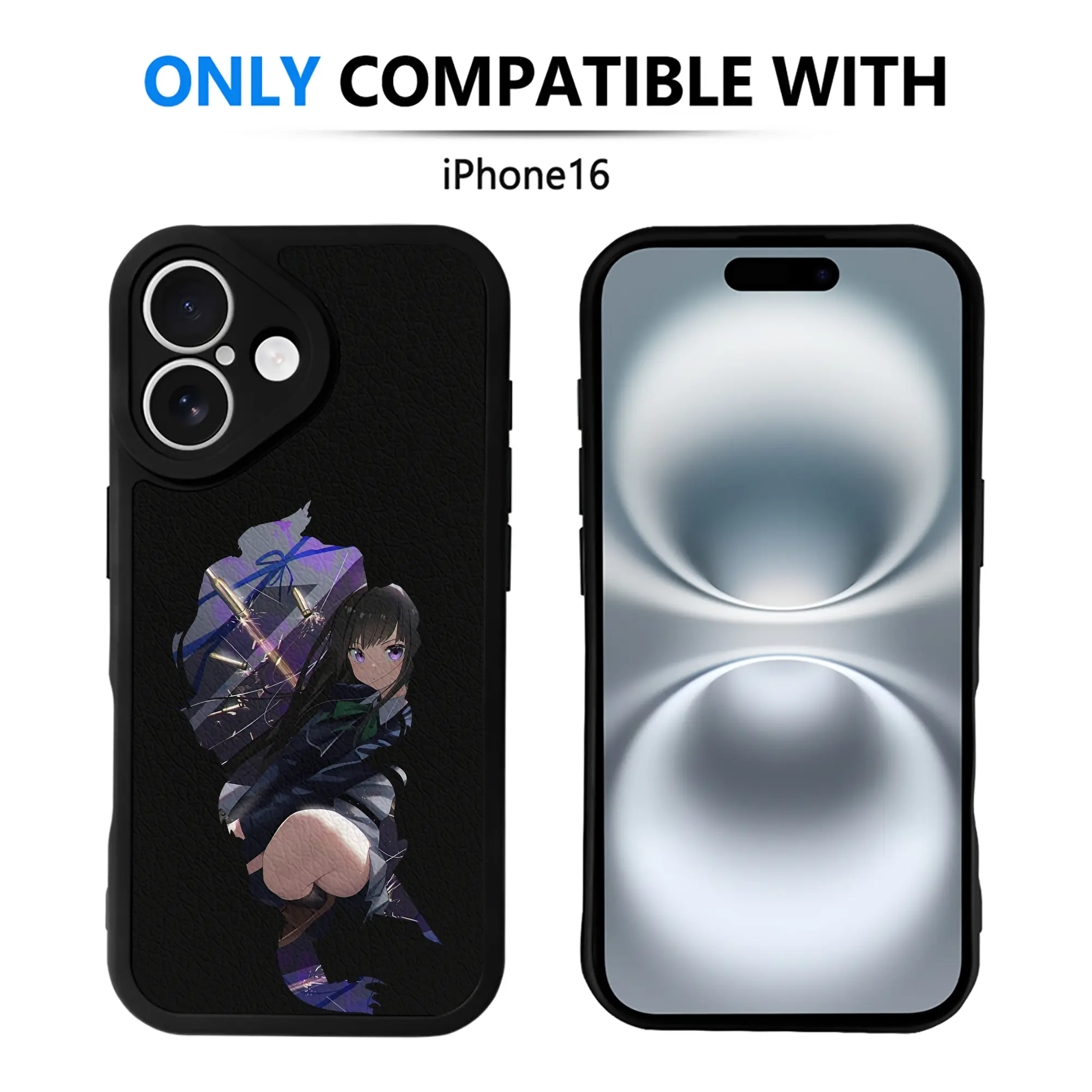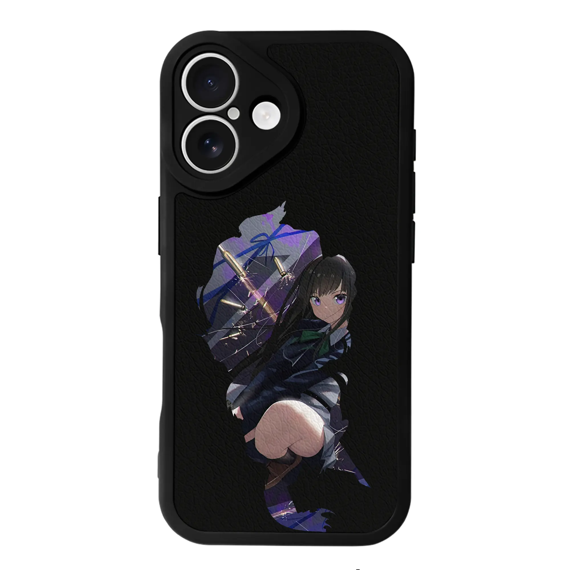 リコリス・リコイル グッズ,井ノ上たきな - IPhone 16シリーズ対応 ・ シリコンスマホケース ・ レザー調 ・ 高精度フィット ・ 耐衝撃 ・ ワイヤレス充電対応 ・ 精密カット