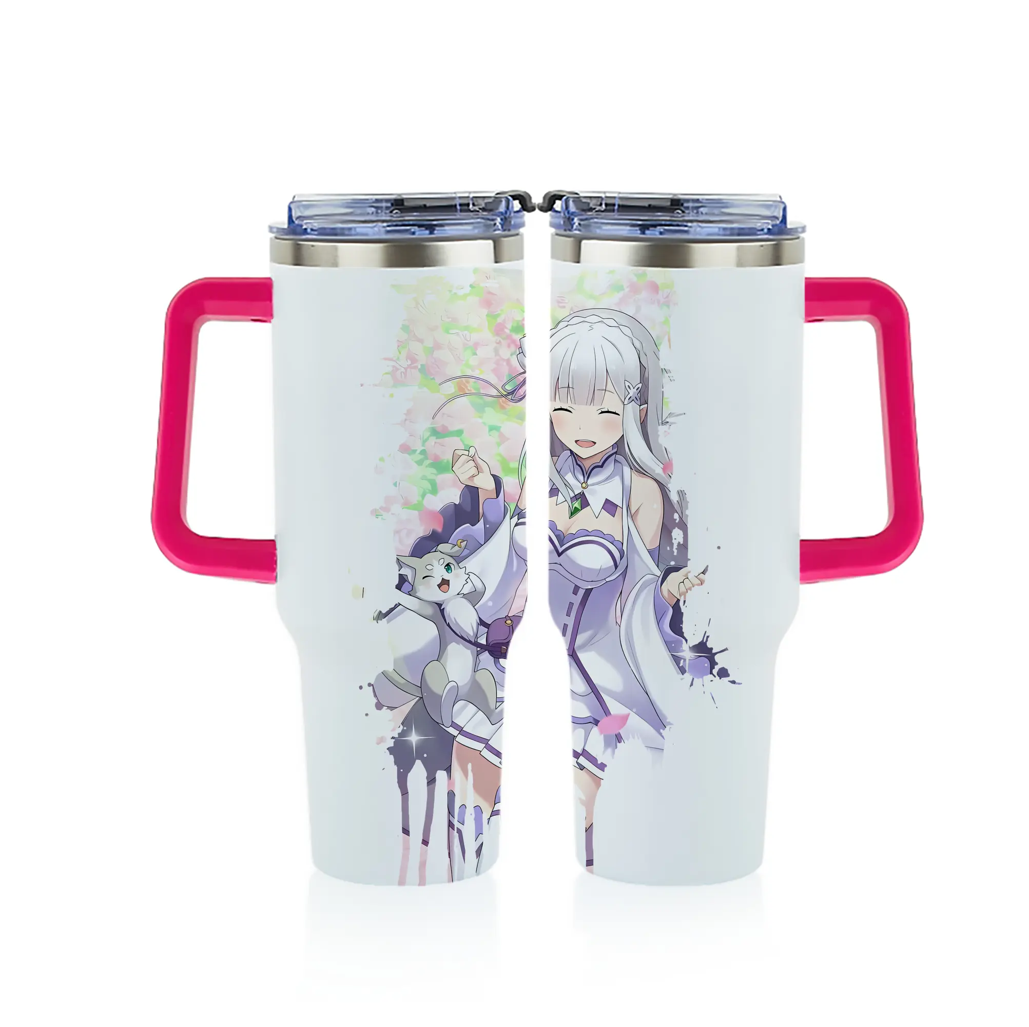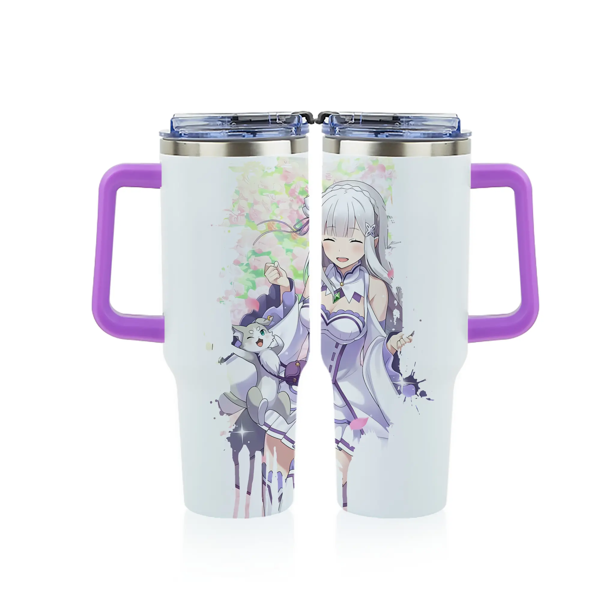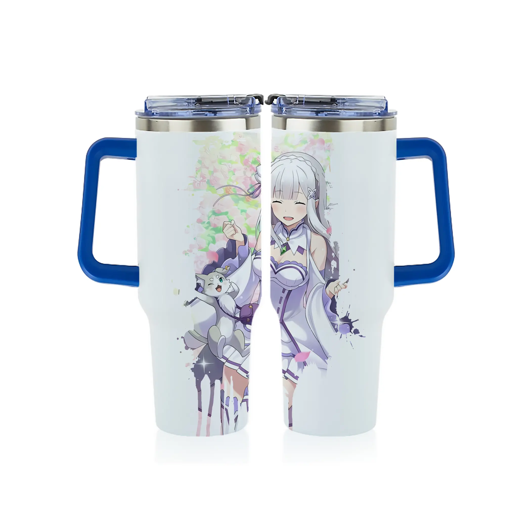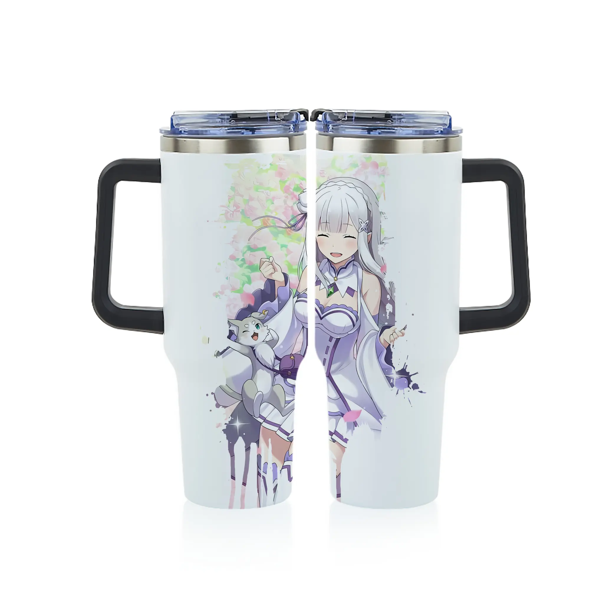 リゼロ グッズ エミリア - 1200mL フルプリント車用タンブラー ・ 304ステンレス 内側 ・ 201ステンレス 外側 ・ 保温 保冷 ・ 通勤 ドライブ アウトドア用