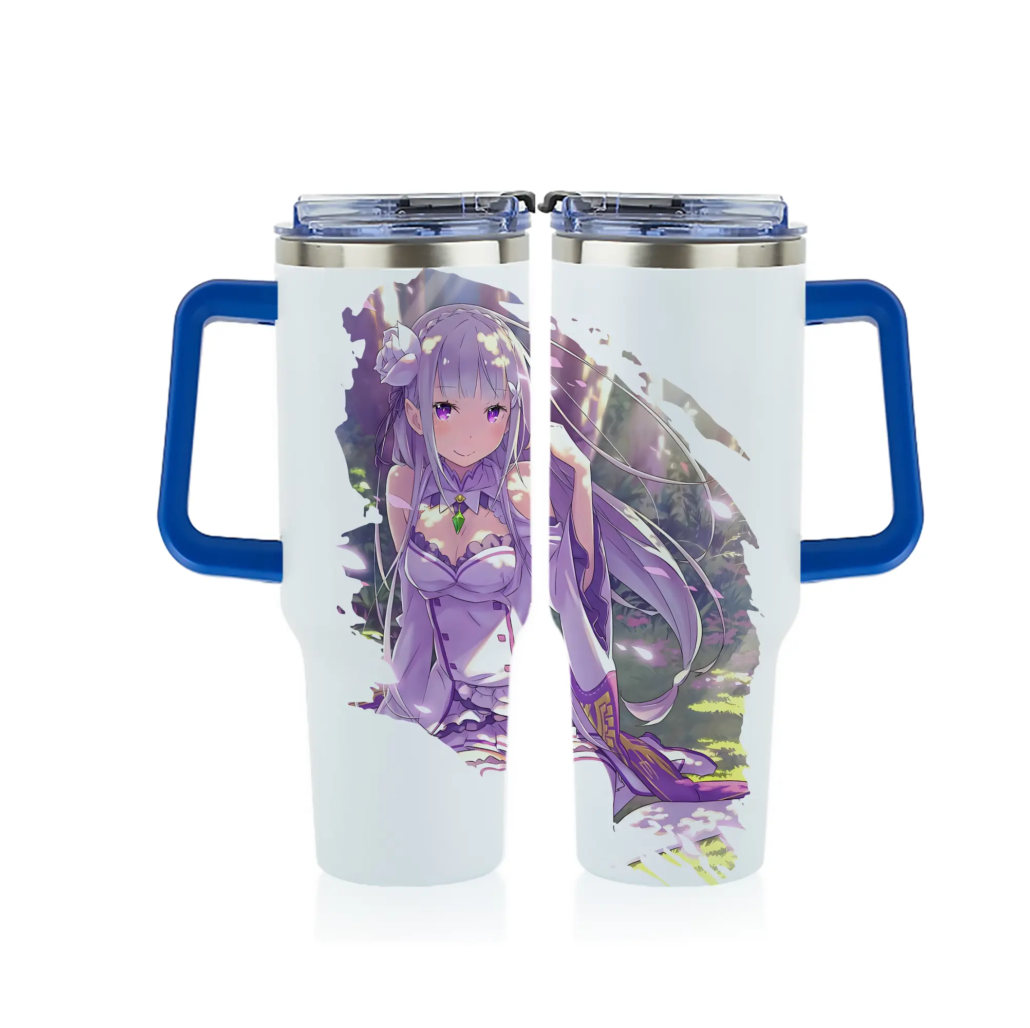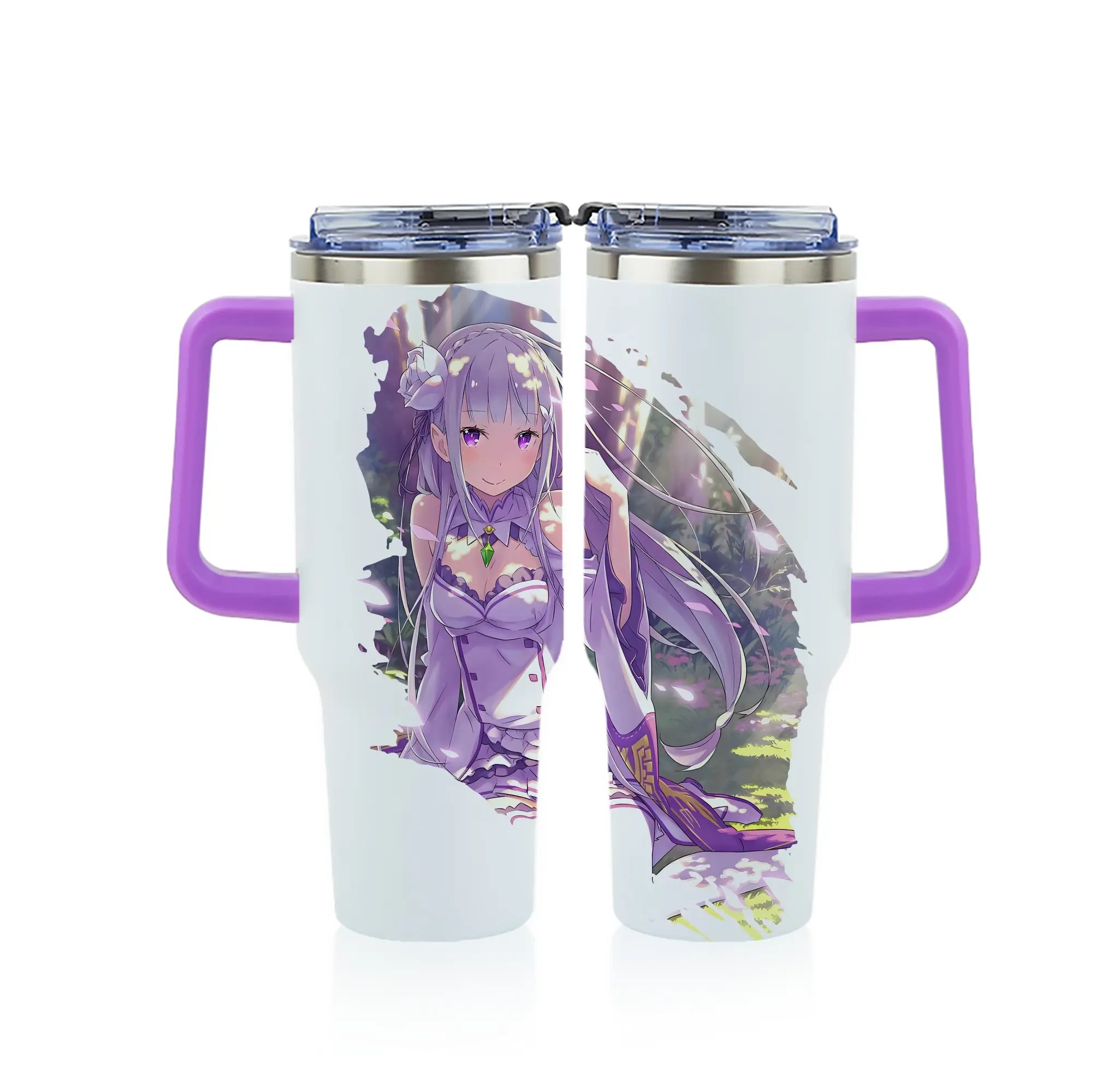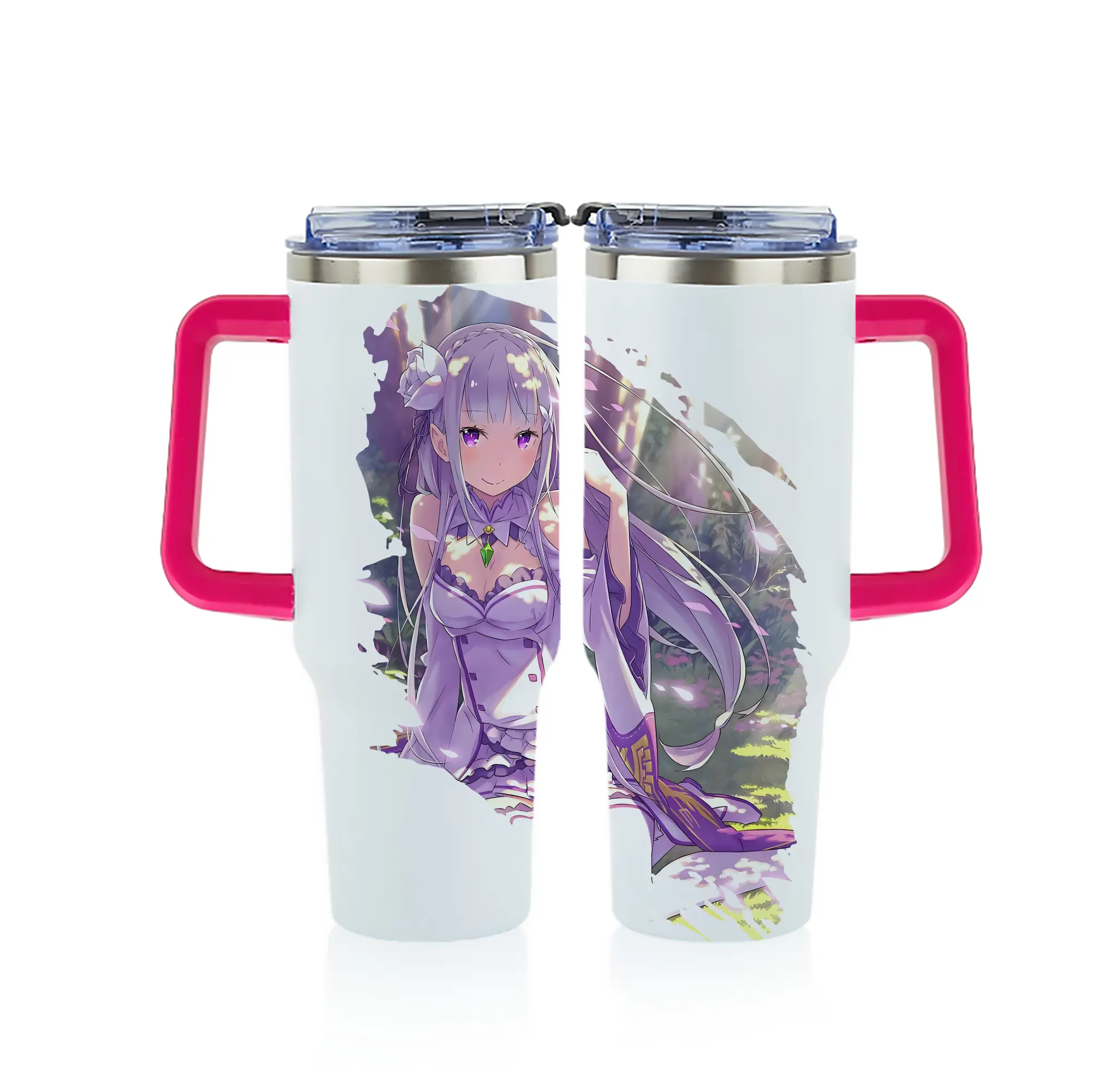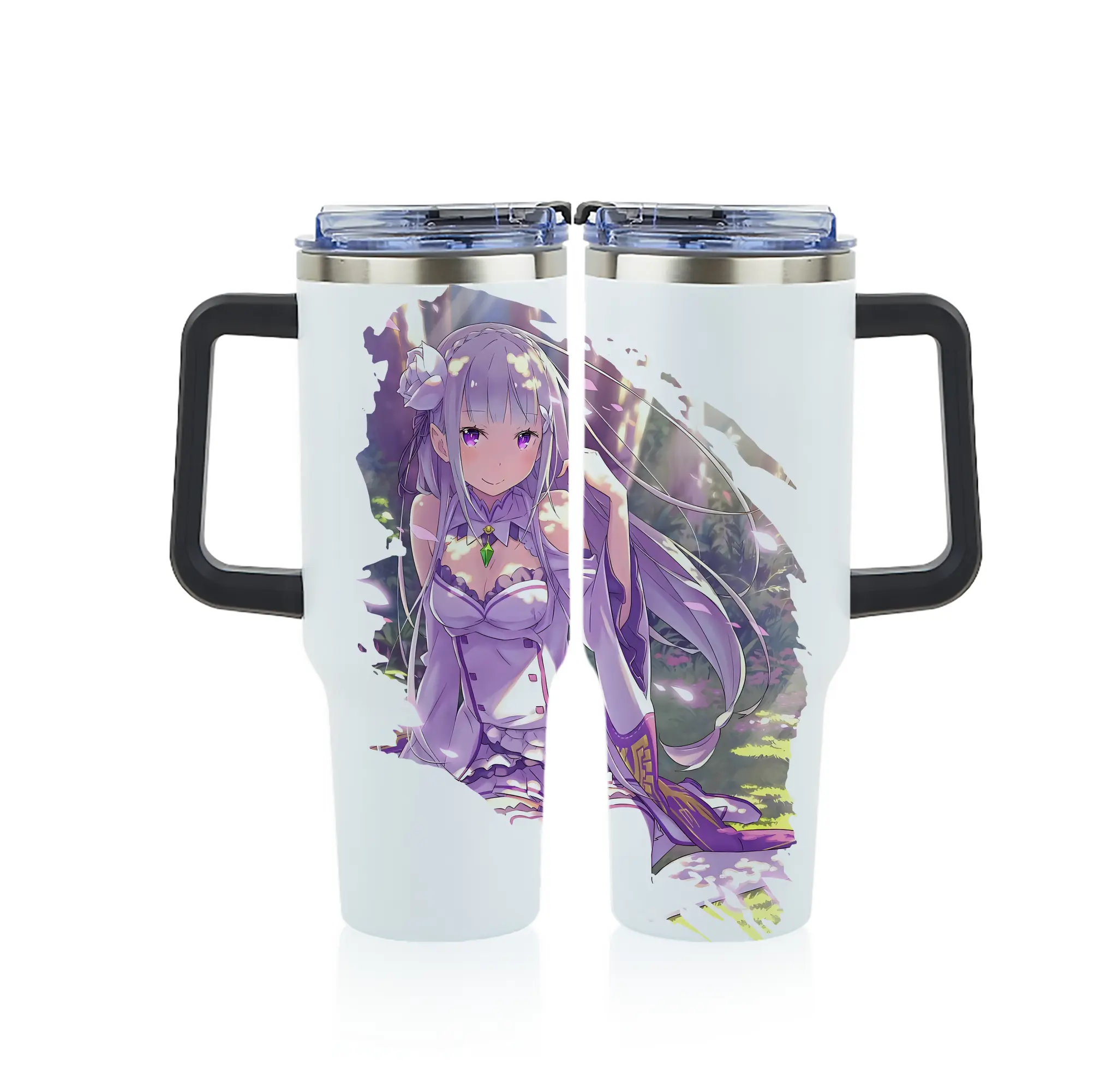 リゼロ グッズ エミリア - 1200mL フルプリント車用タンブラー ・ 304ステンレス 内側 ・ 201ステンレス 外側 ・ 保温 保冷 ・ 通勤 ドライブ アウトドア用