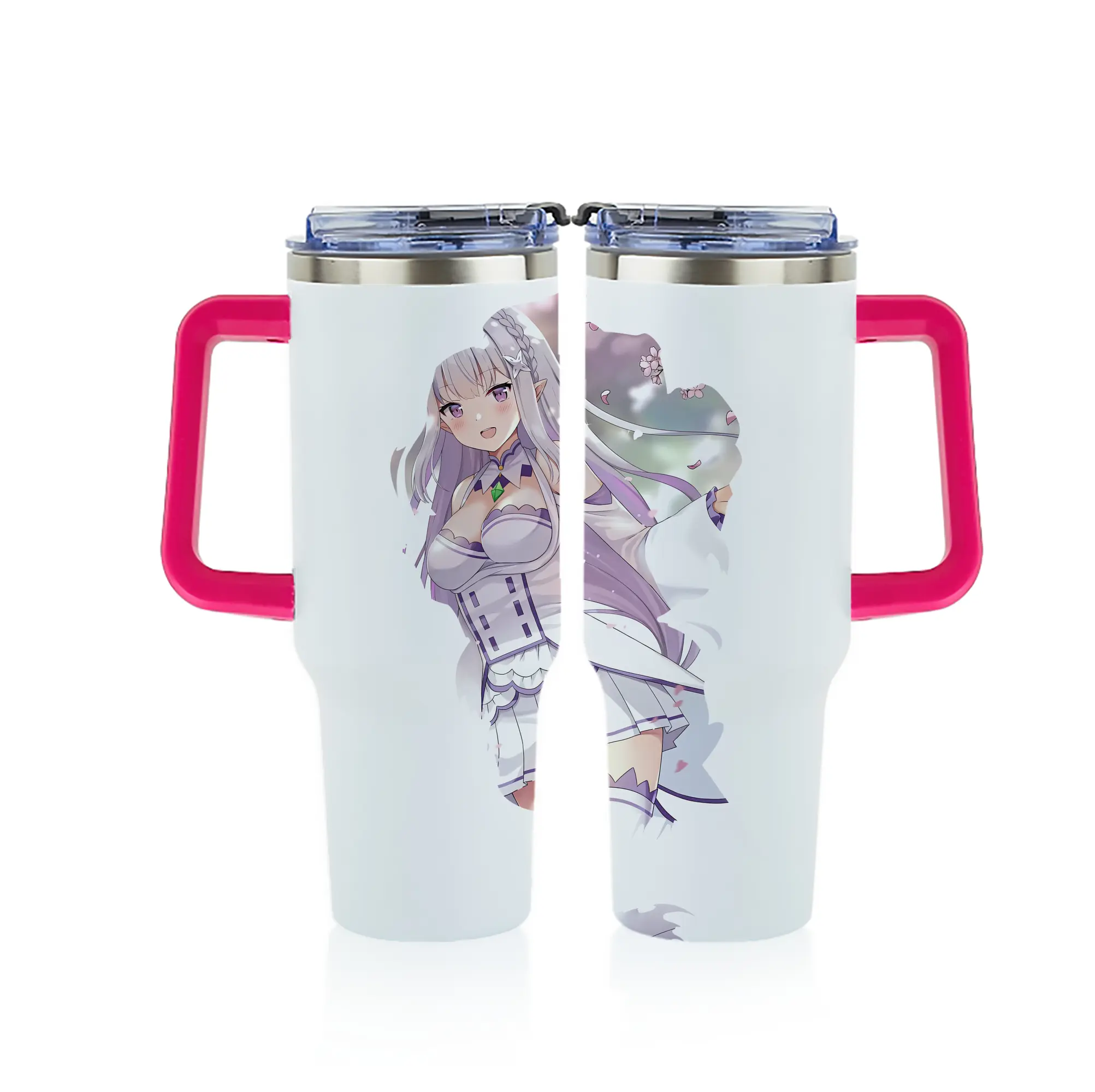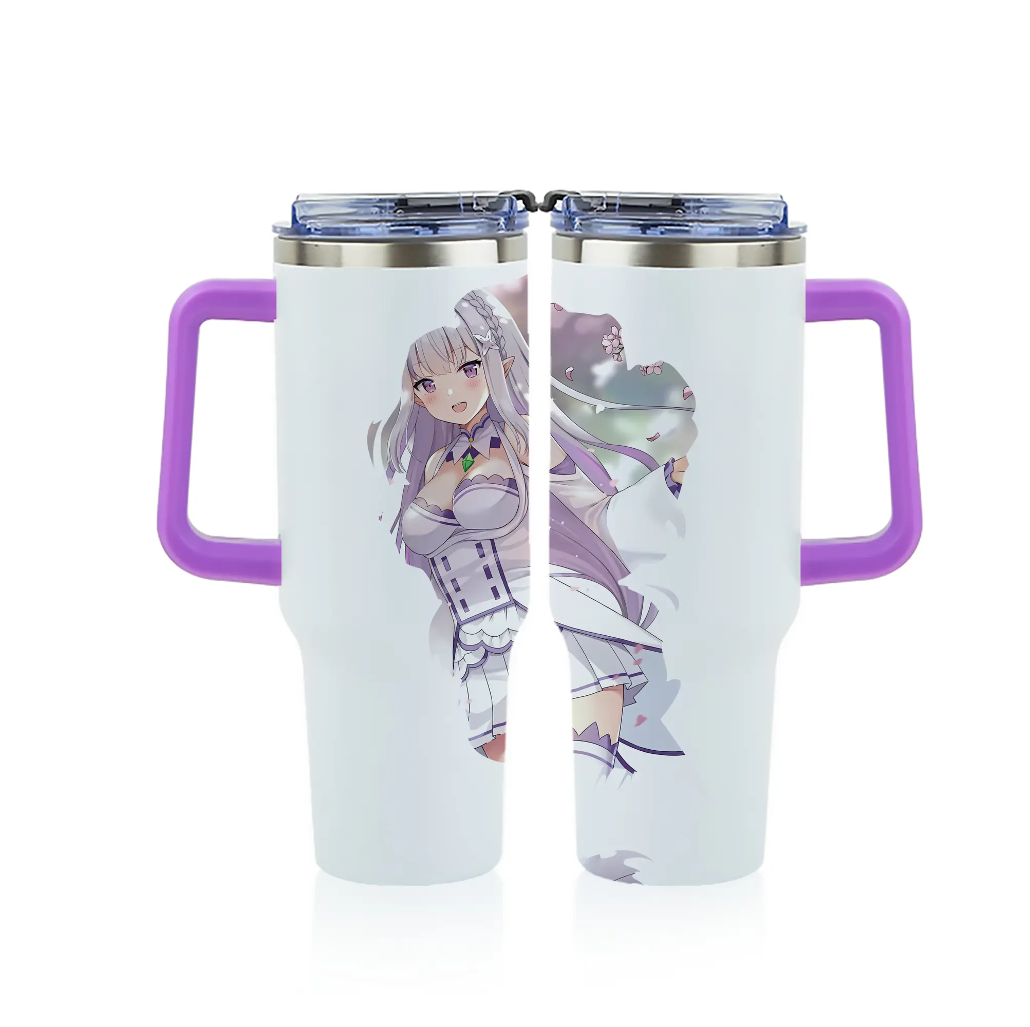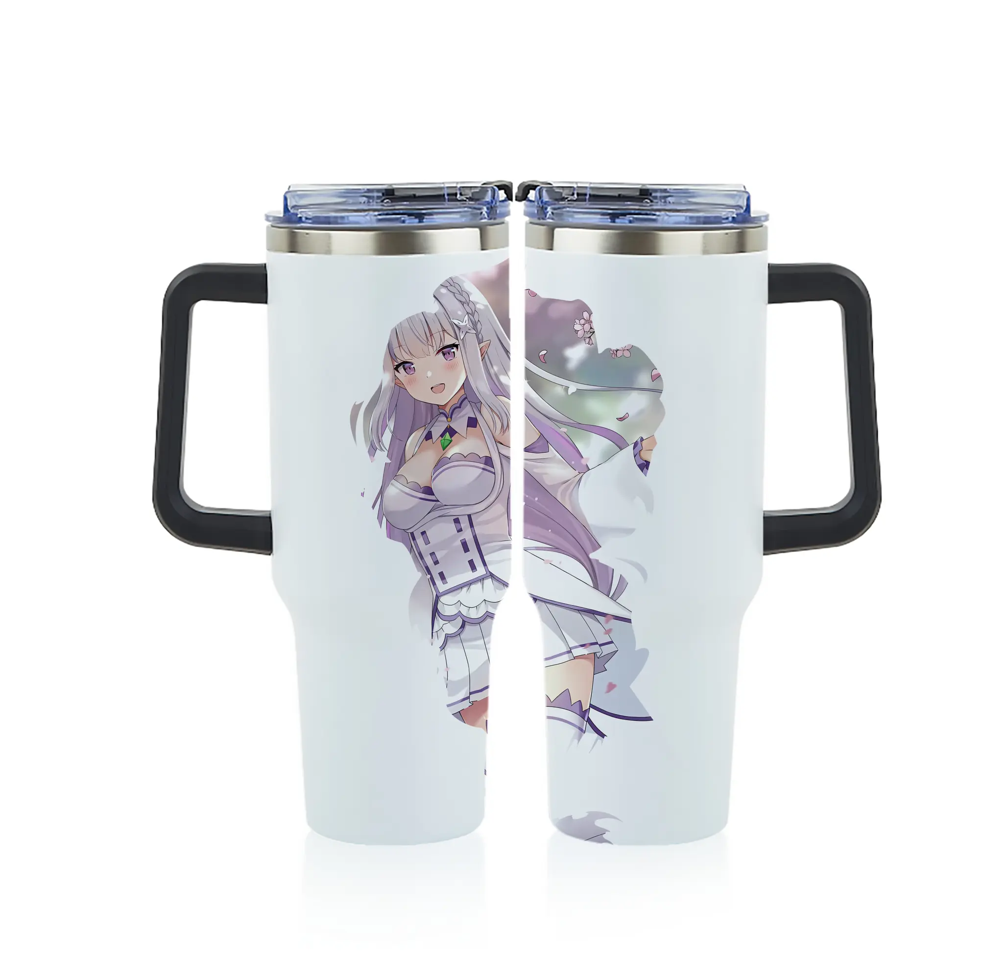 リゼロ グッズ エミリア - 1200mL フルプリント車用タンブラー ・ 304ステンレス 内側 ・ 201ステンレス 外側 ・ 保温 保冷 ・ 通勤 ドライブ アウトドア用