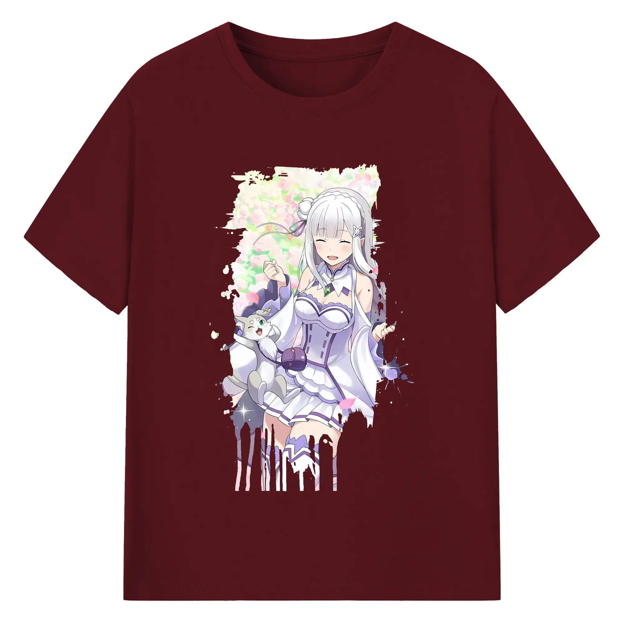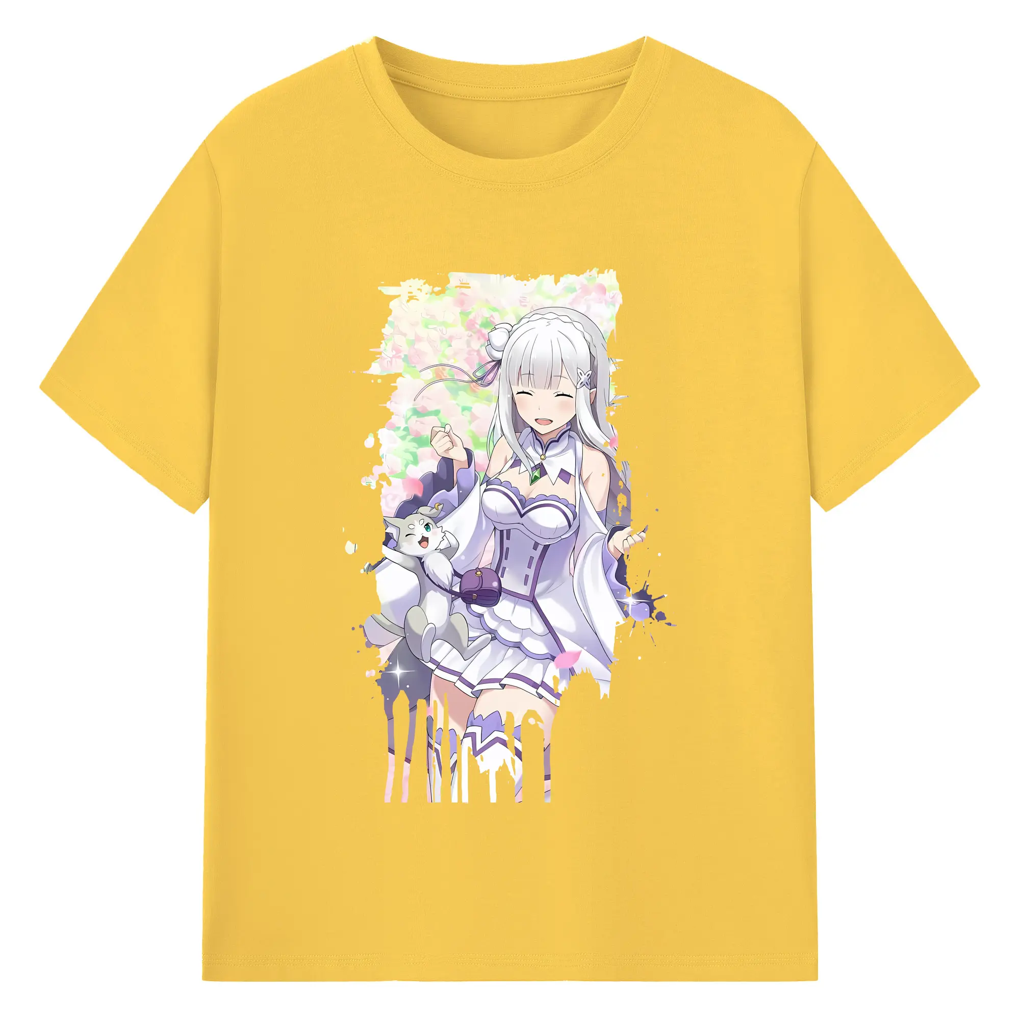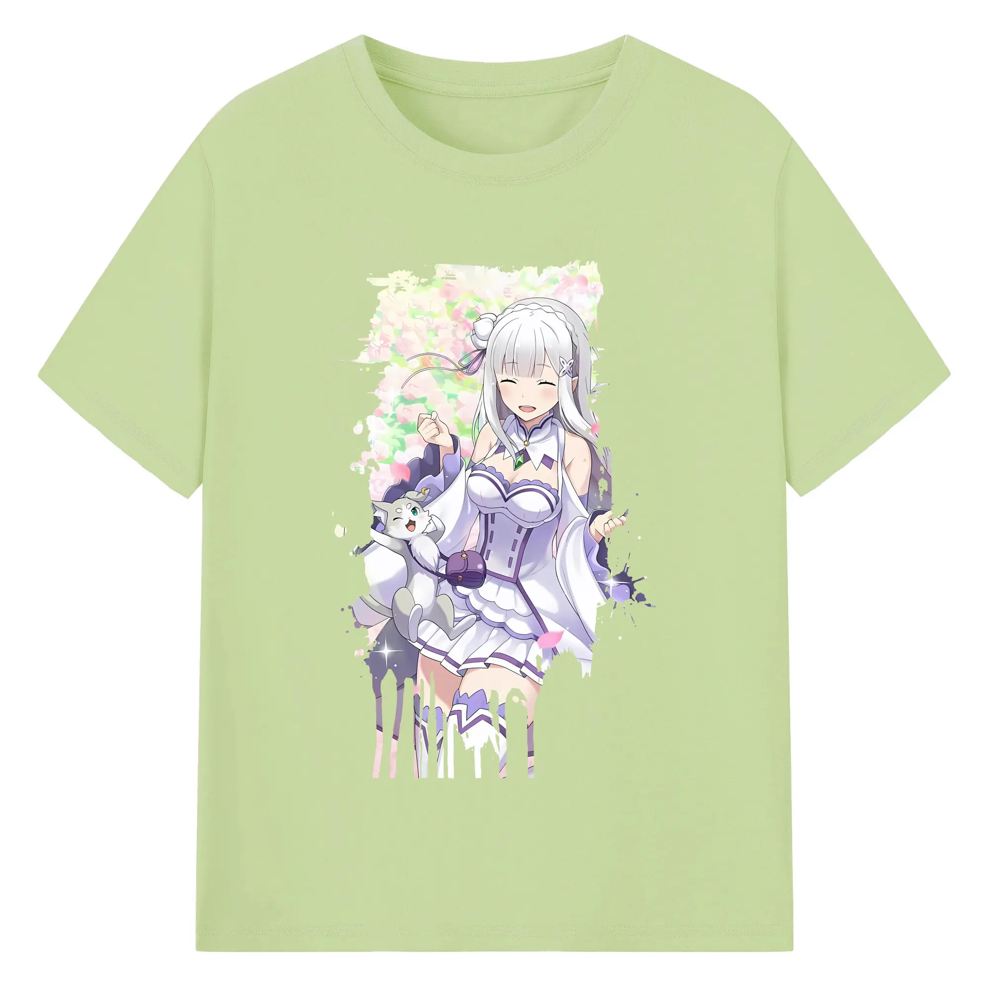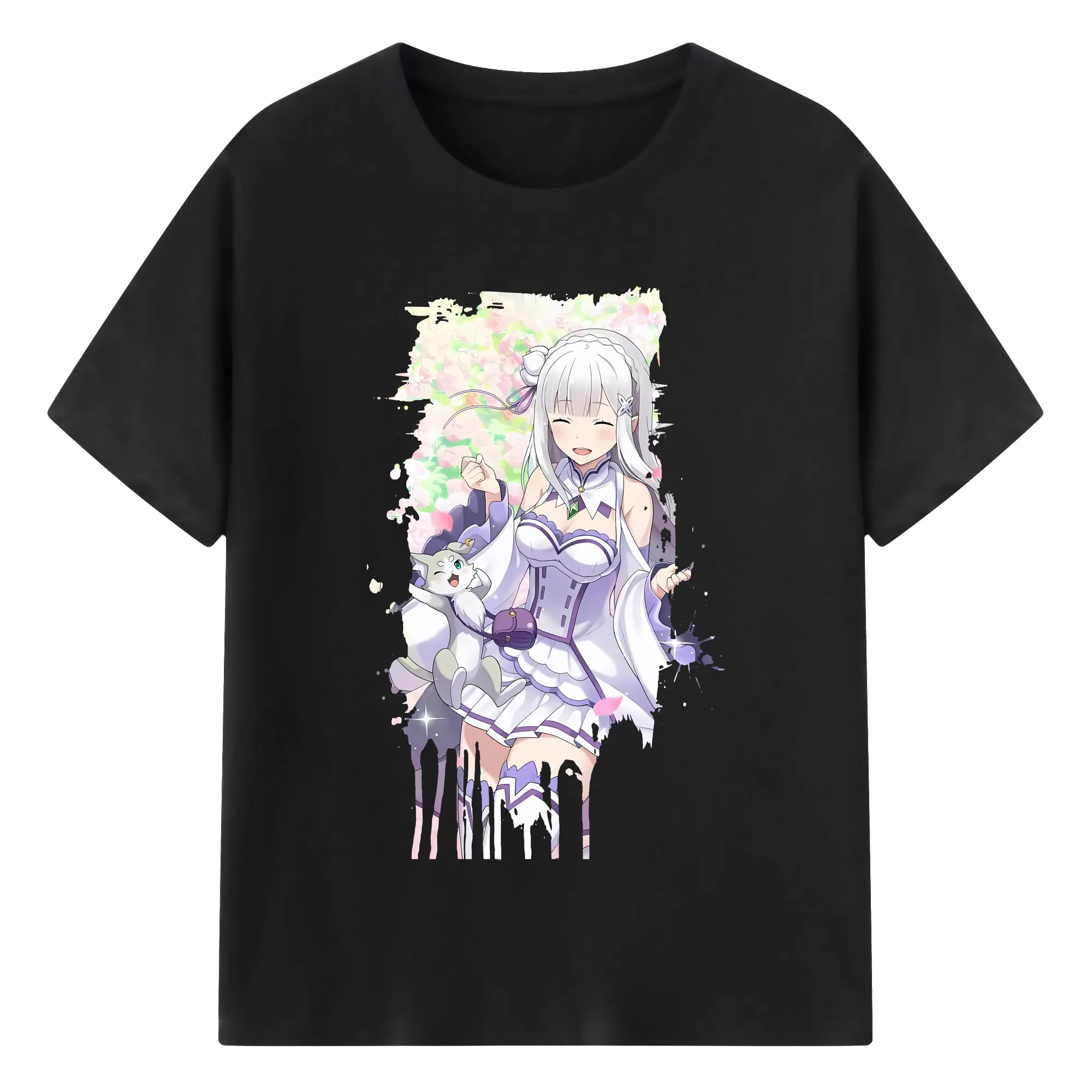 リゼロ グッズ エミリア - 綿100% 半袖Tシャツ ・ バックプリント ・ 快適 通気性 ・ 日常使い 散歩 スポーツ用
