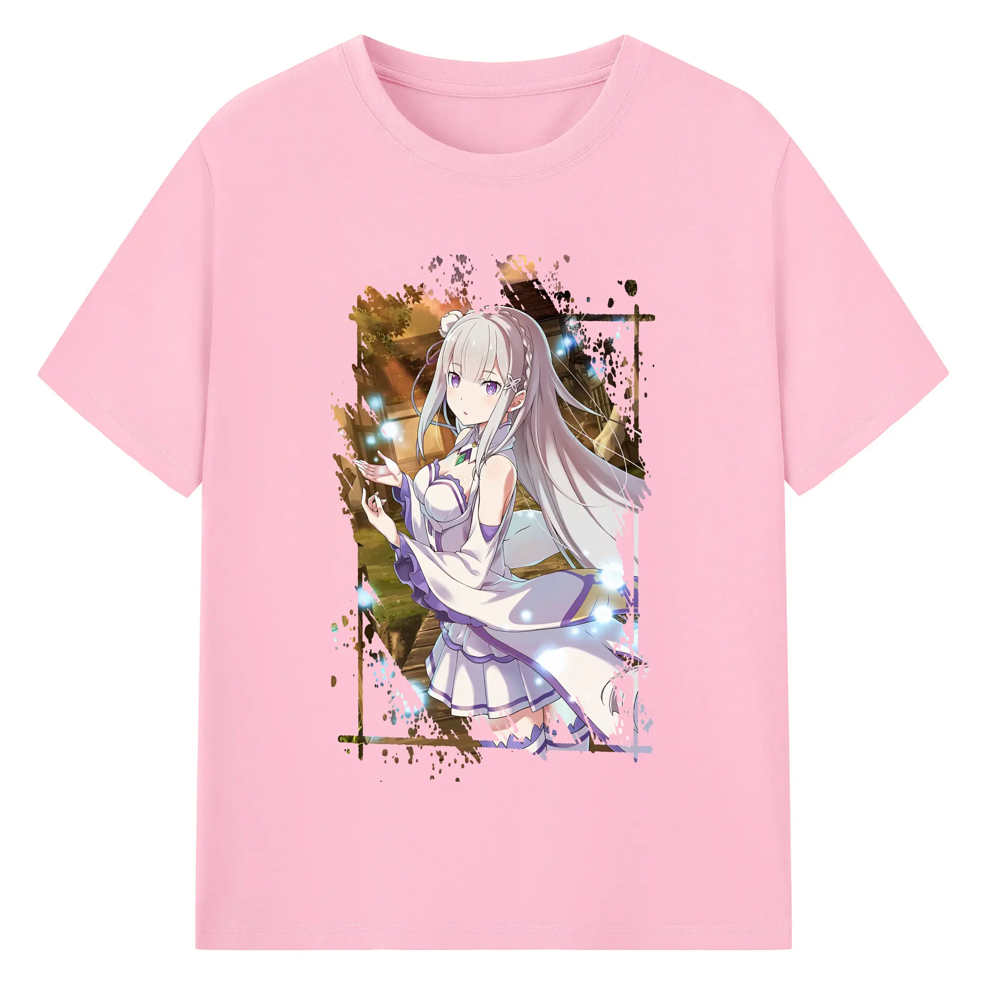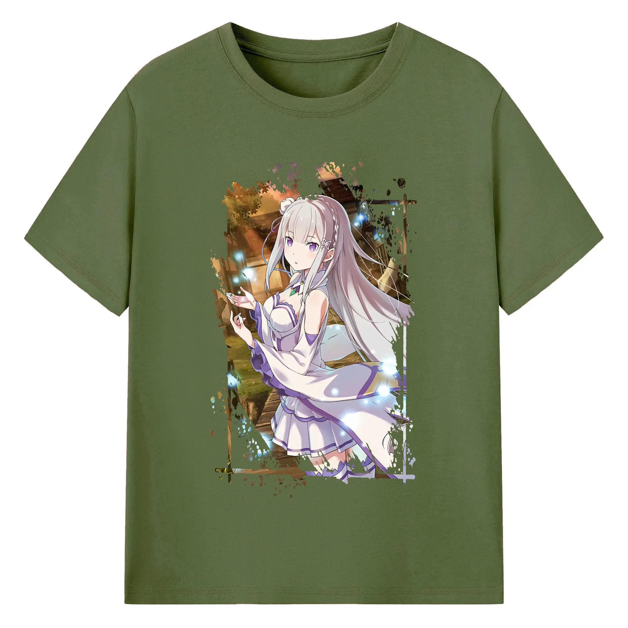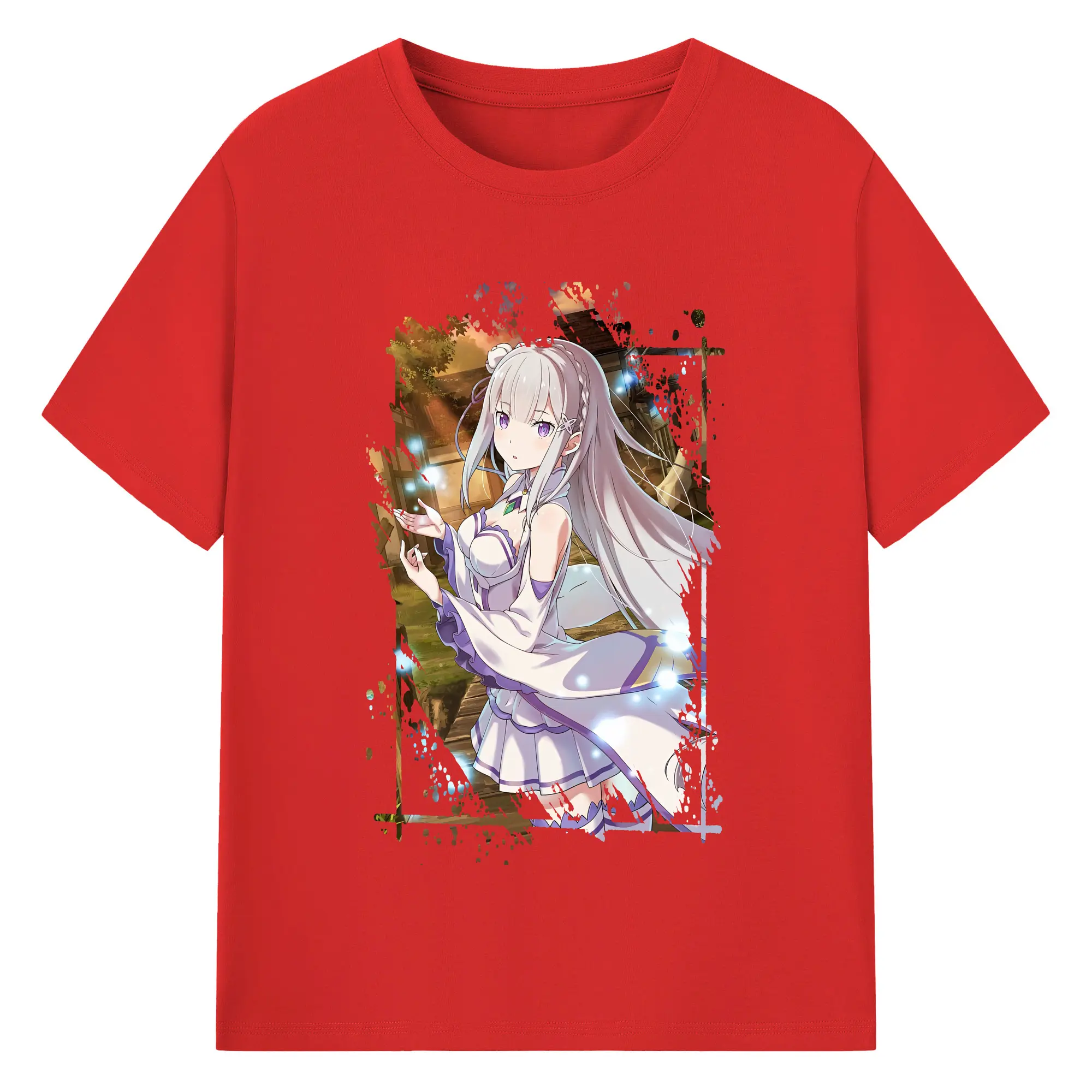 リゼロ グッズ エミリア - 綿100% 半袖Tシャツ ・ バックプリント ・ 快適 通気性 ・ 日常使い 散歩 スポーツ用