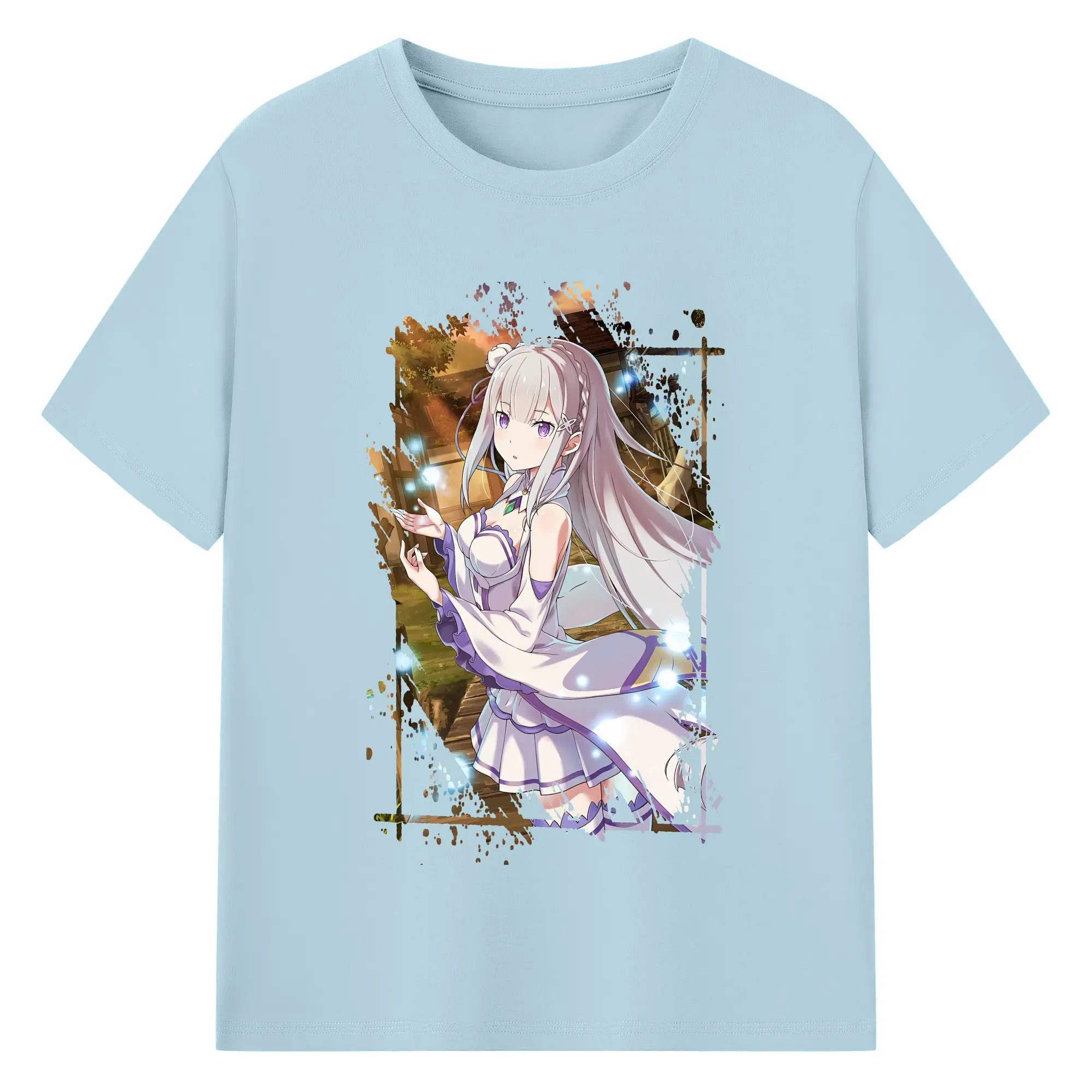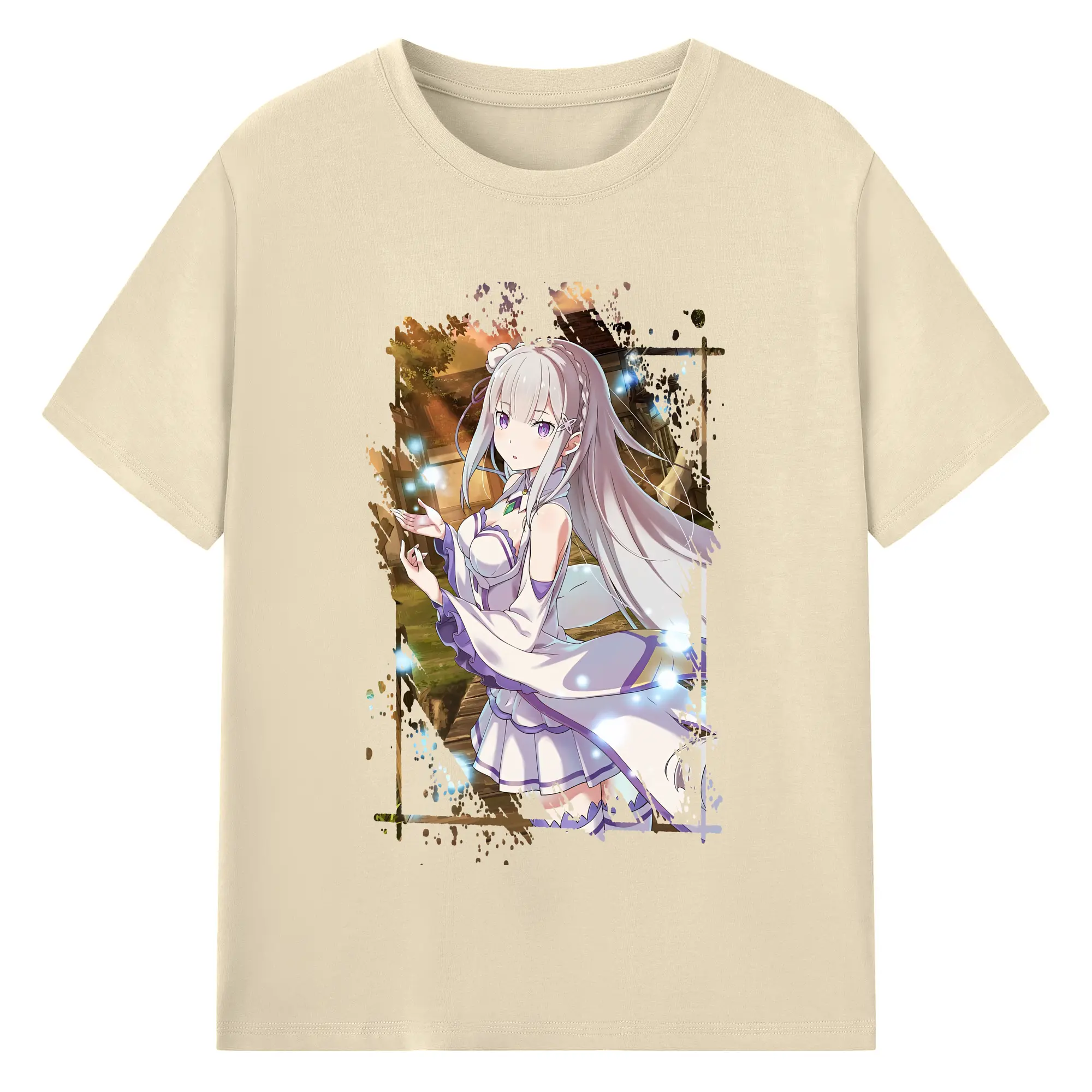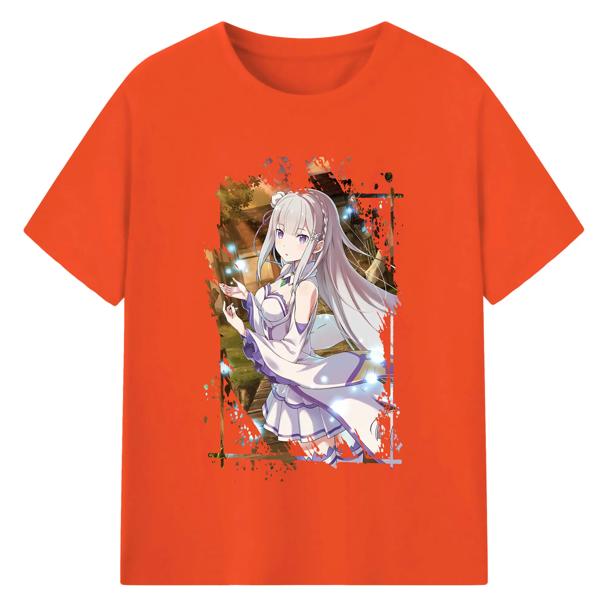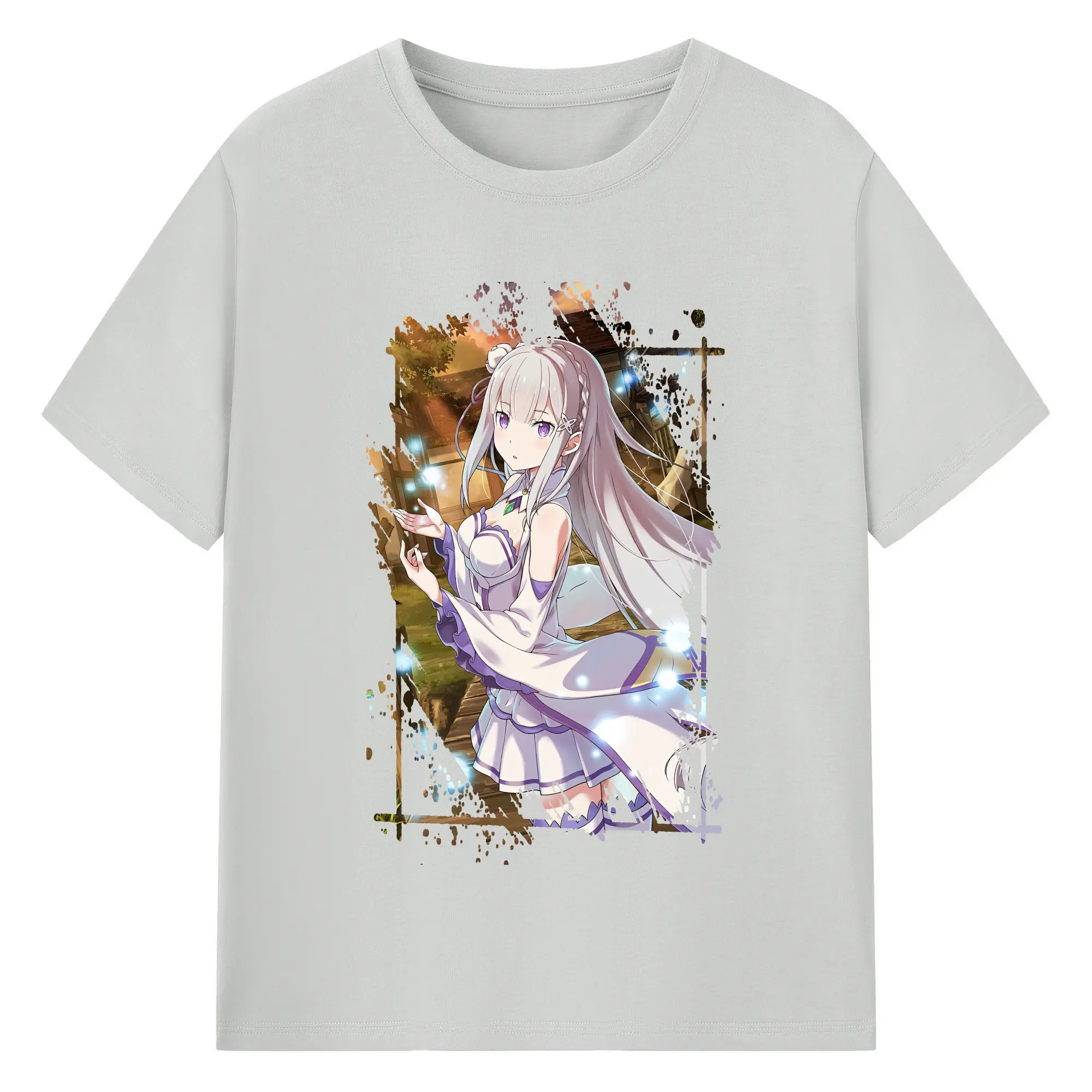 リゼロ グッズ エミリア - 綿100% 半袖Tシャツ ・ バックプリント ・ 快適 通気性 ・ 日常使い 散歩 スポーツ用