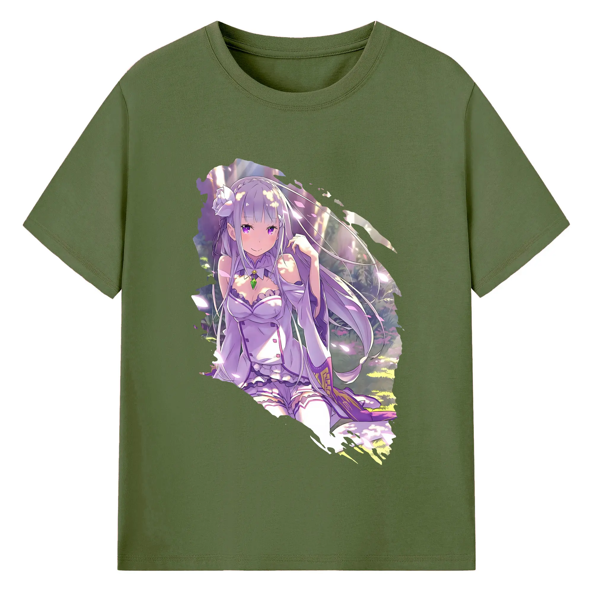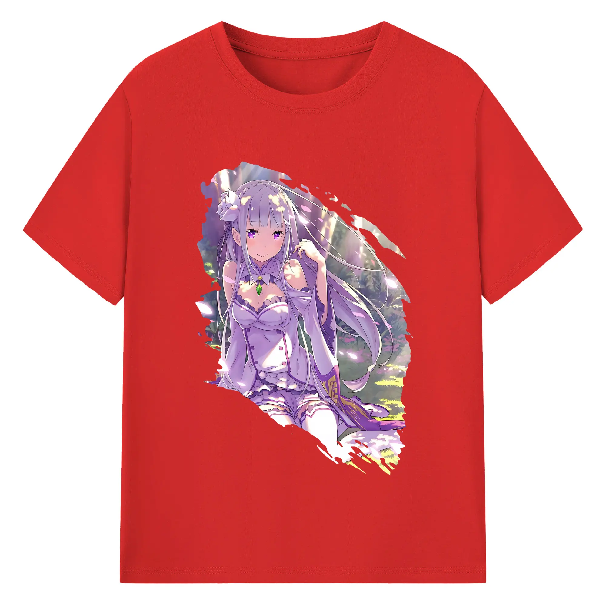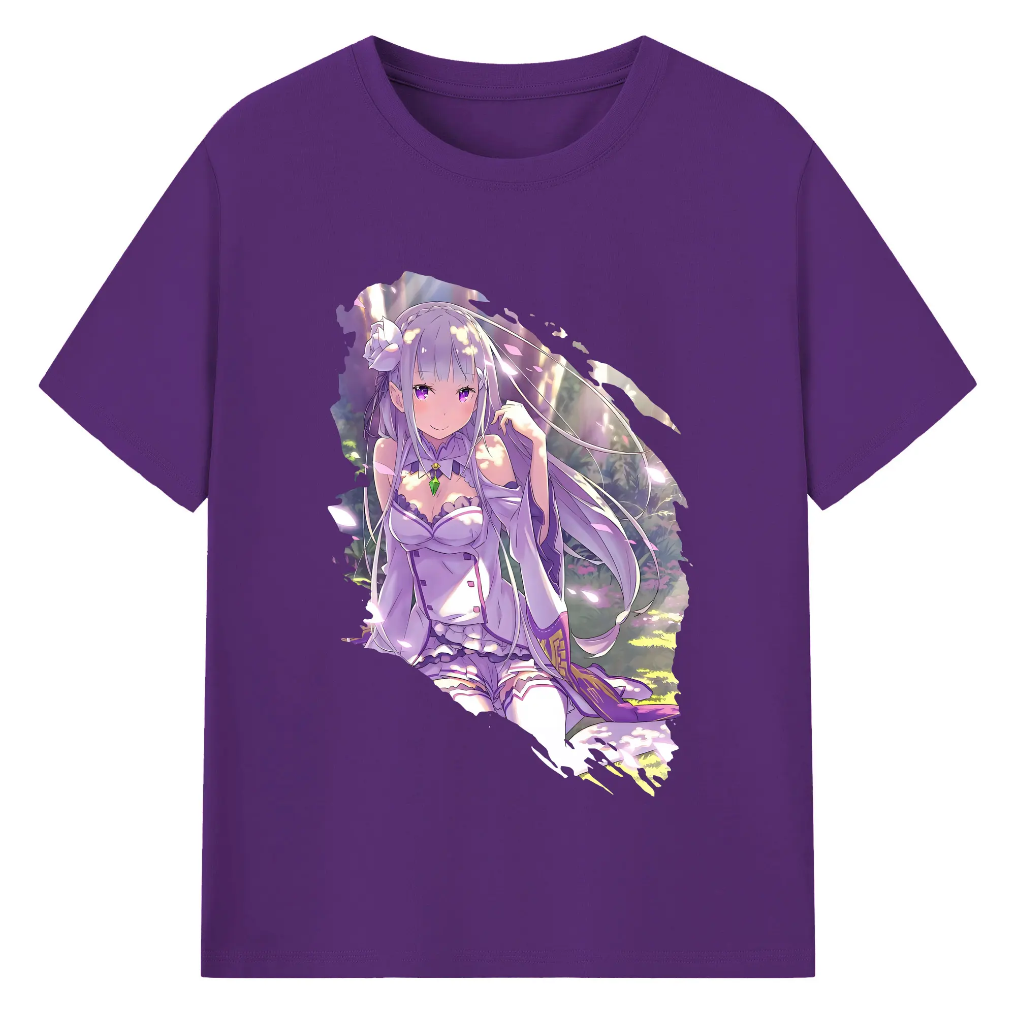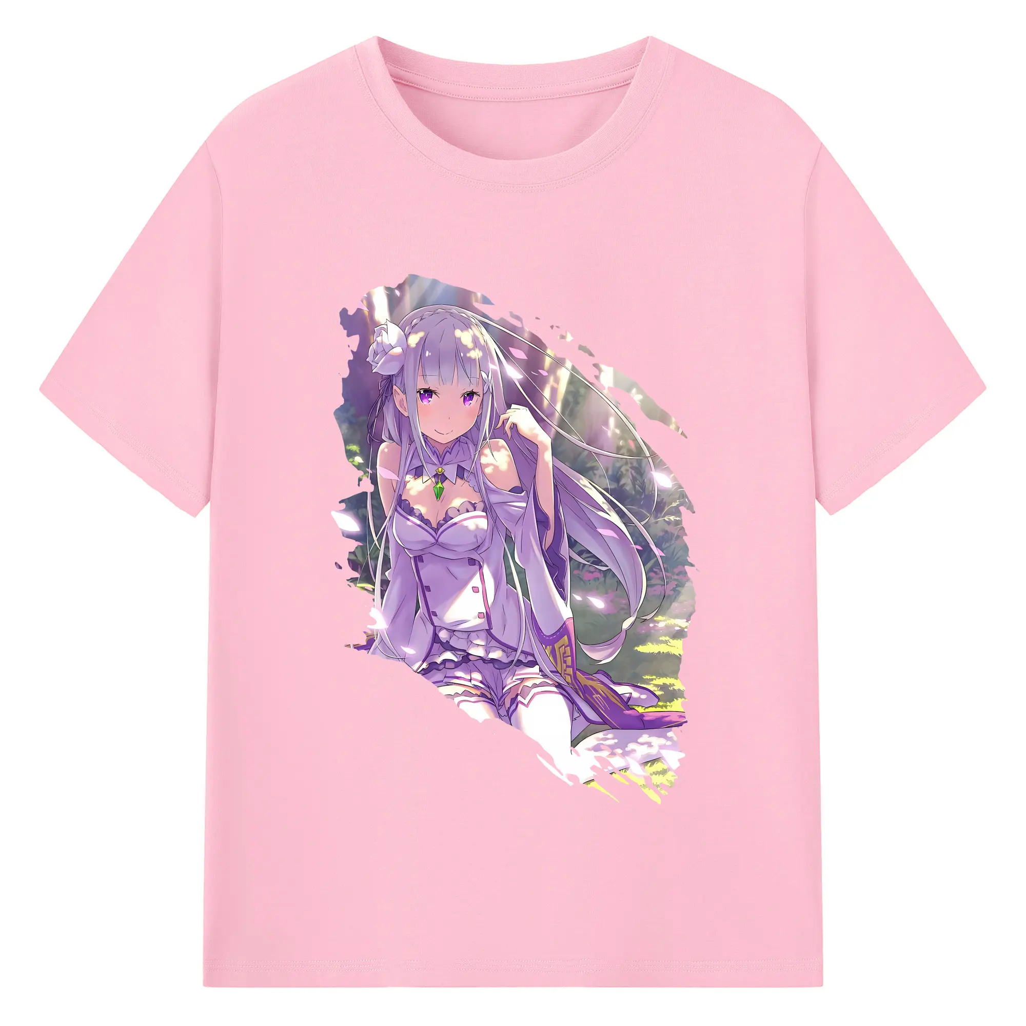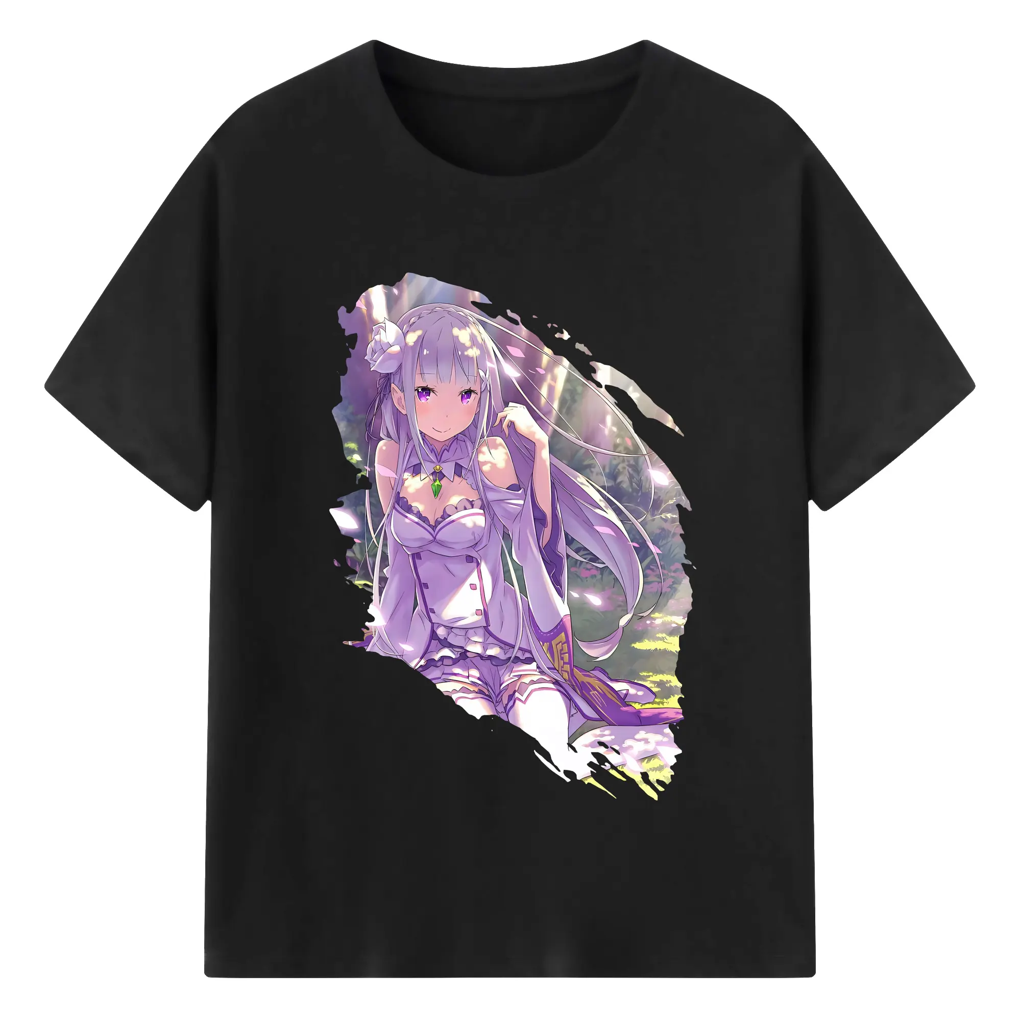 リゼロ グッズ エミリア - 綿100% 半袖Tシャツ ・ バックプリント ・ 快適 通気性 ・ 日常使い 散歩 スポーツ用