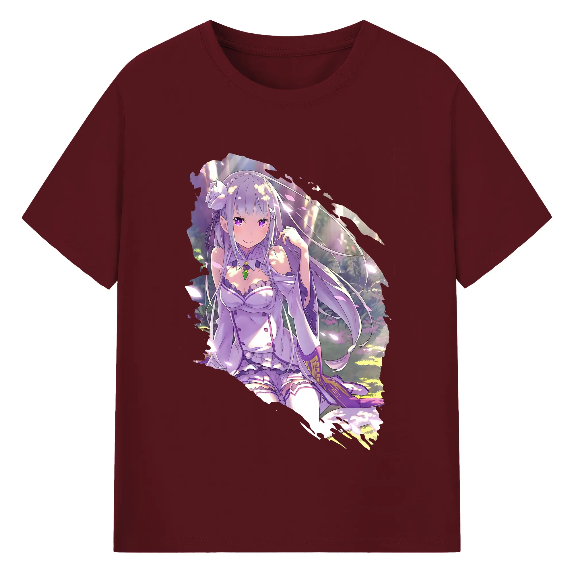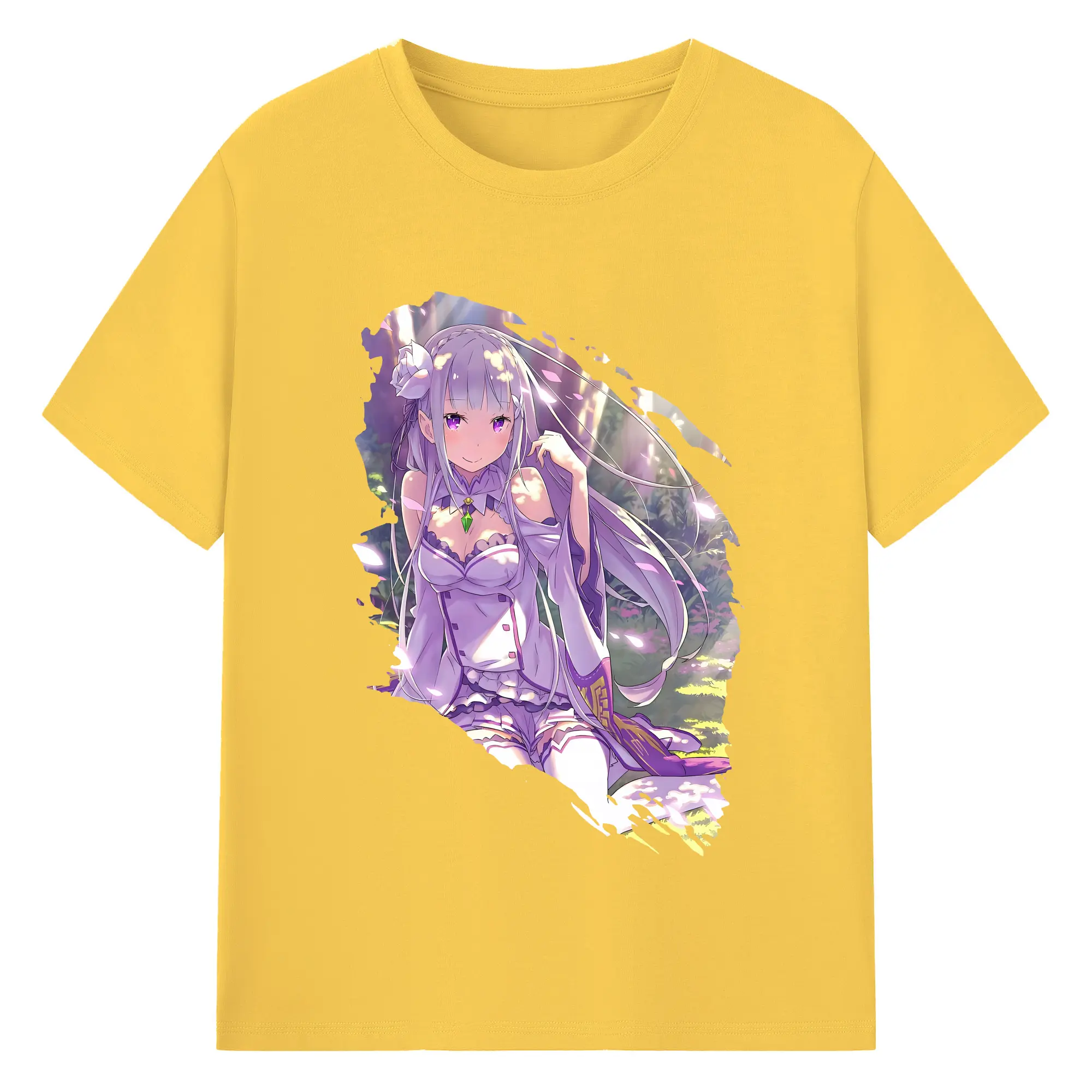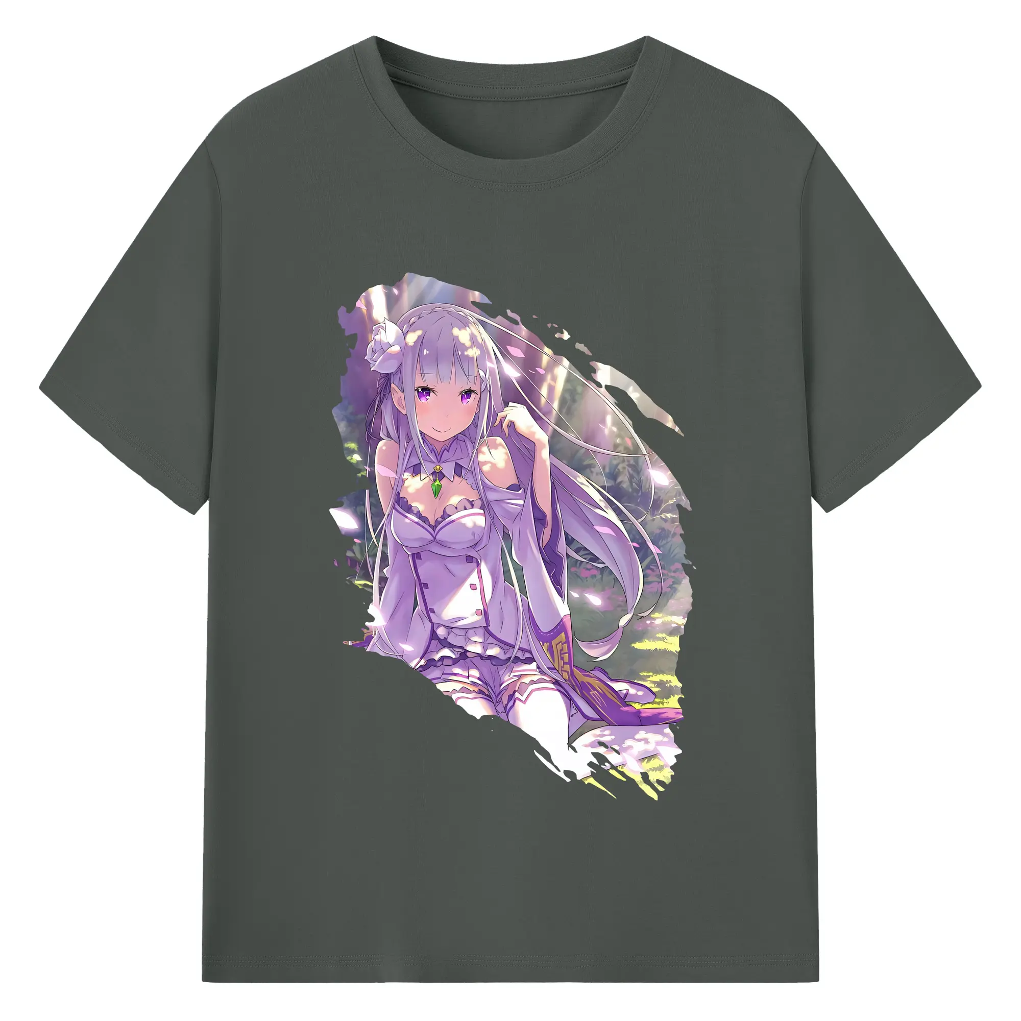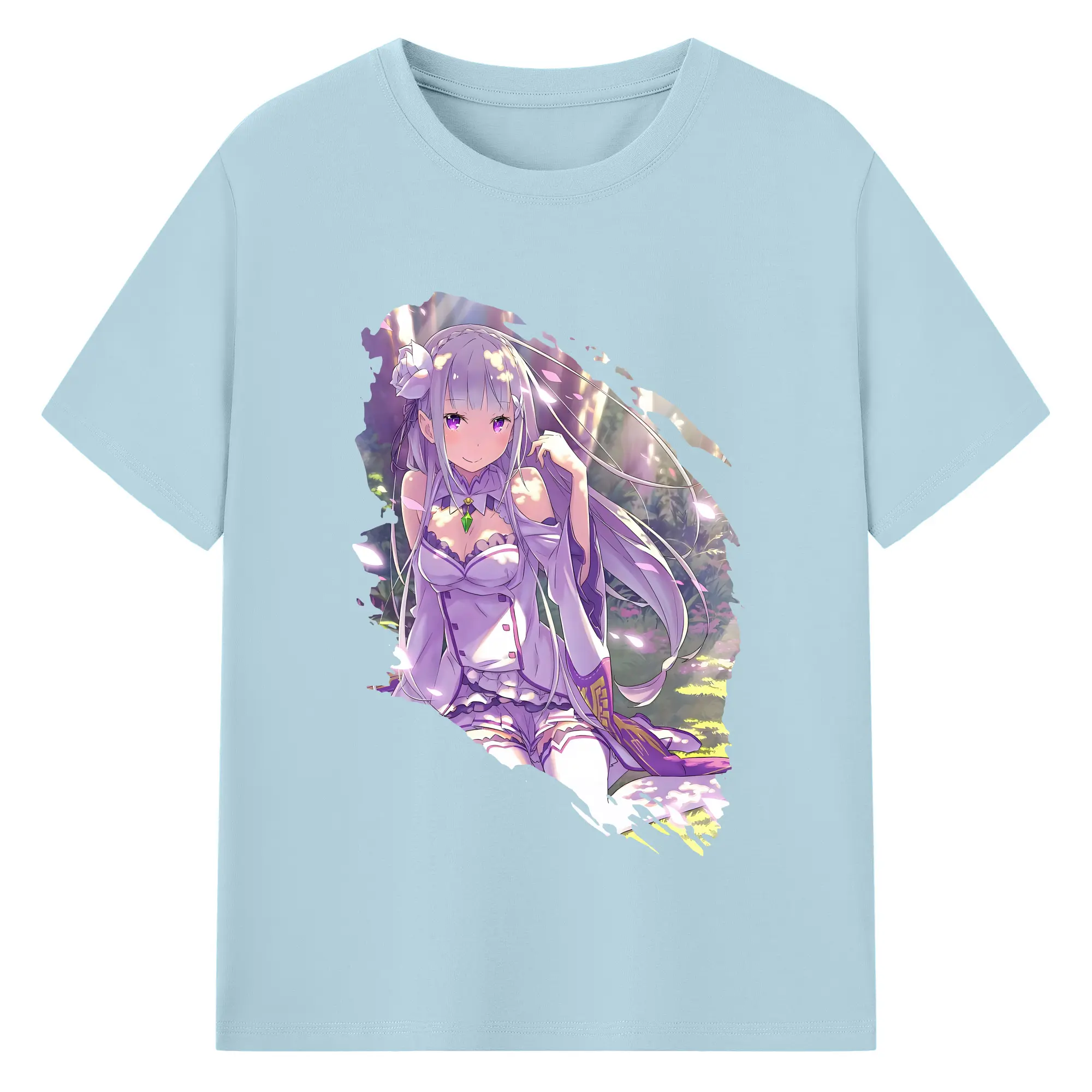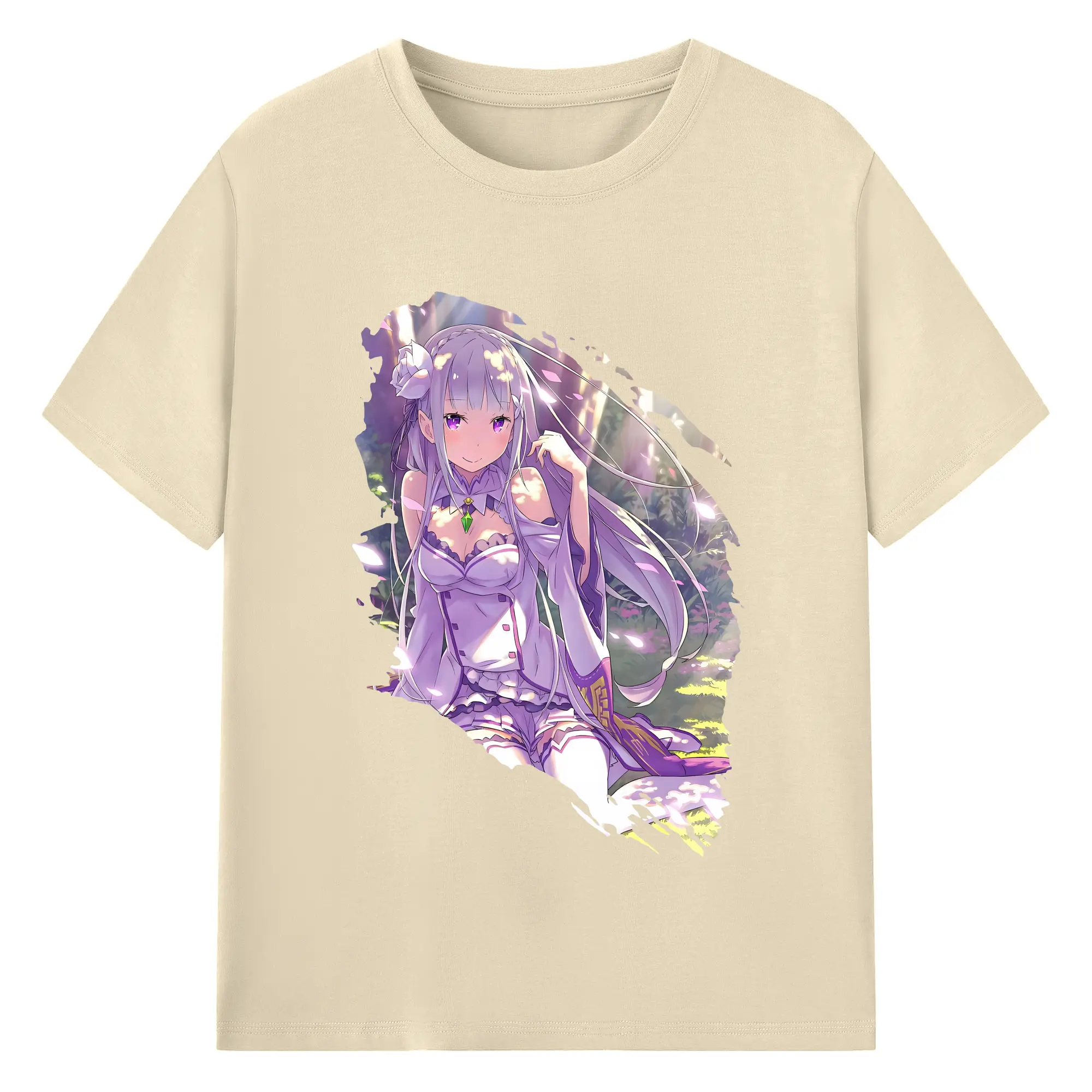 リゼロ グッズ エミリア - 綿100% 半袖Tシャツ ・ バックプリント ・ 快適 通気性 ・ 日常使い 散歩 スポーツ用