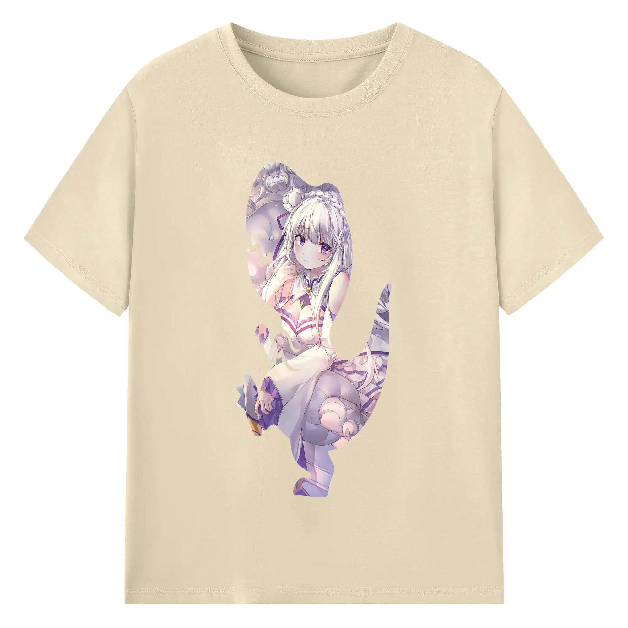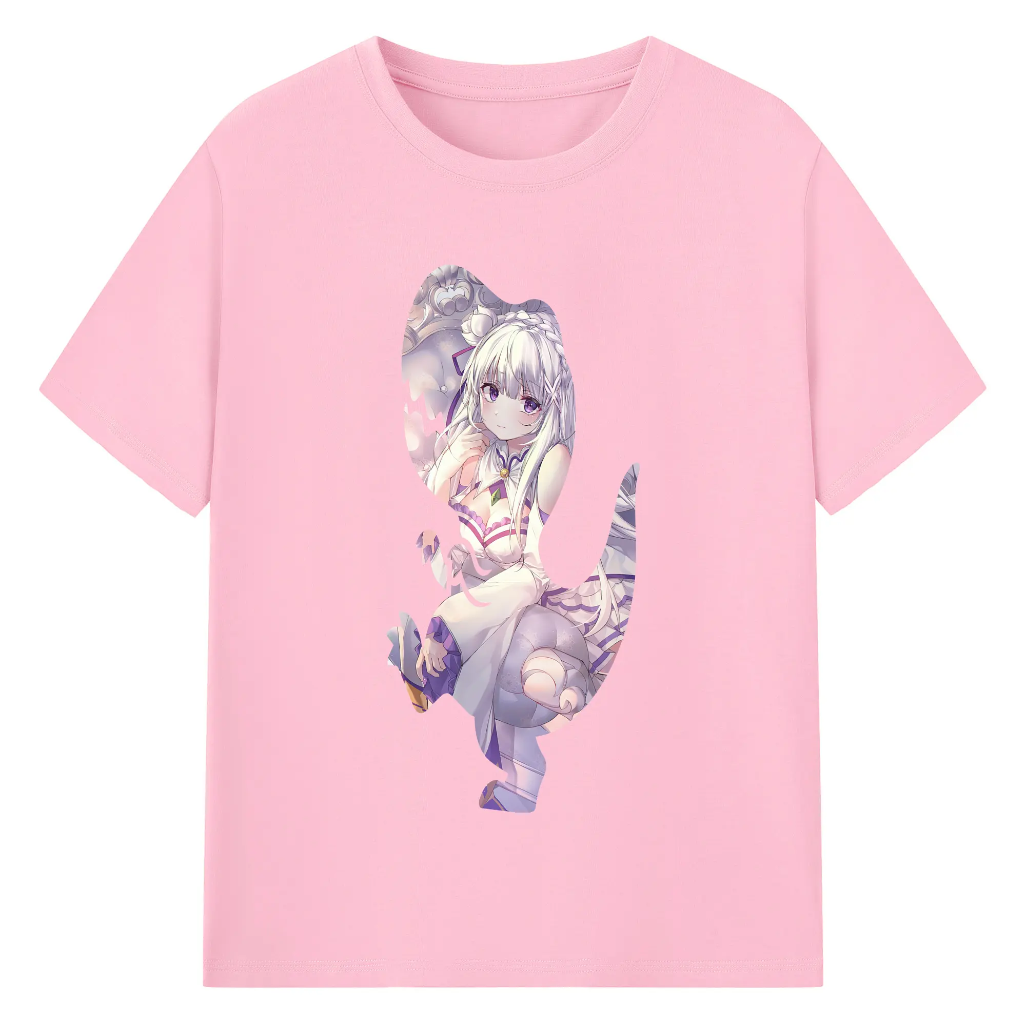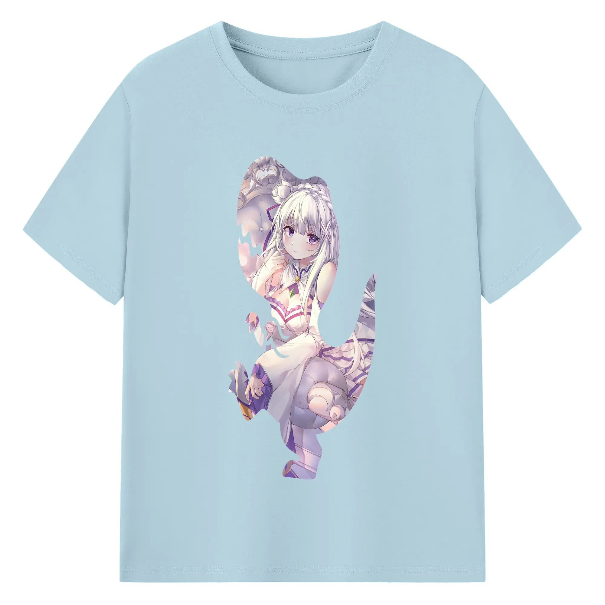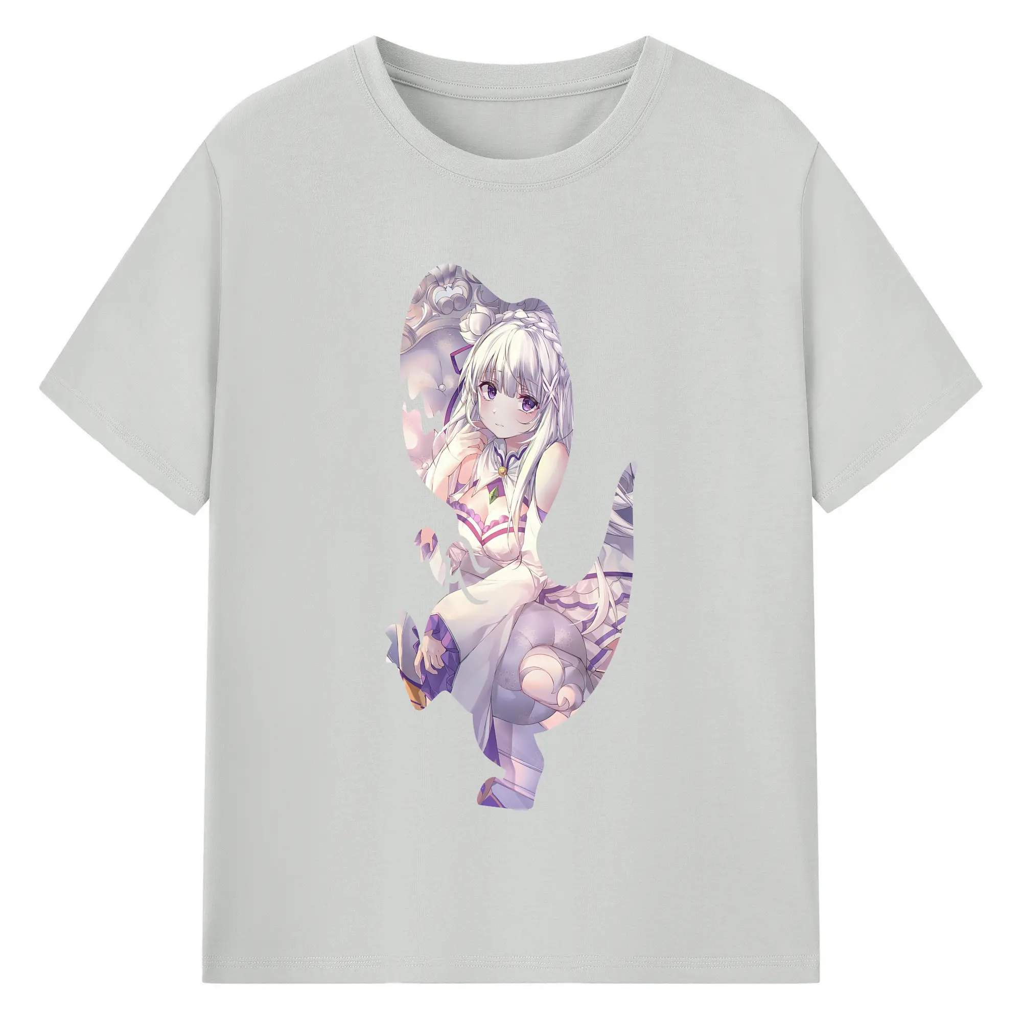 リゼロ グッズ エミリア - 綿100% 半袖Tシャツ ・ バックプリント ・ 快適 通気性 ・ 日常使い 散歩 スポーツ用