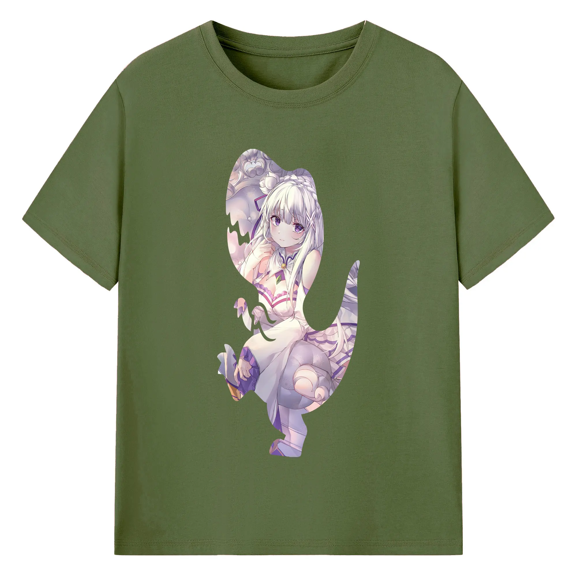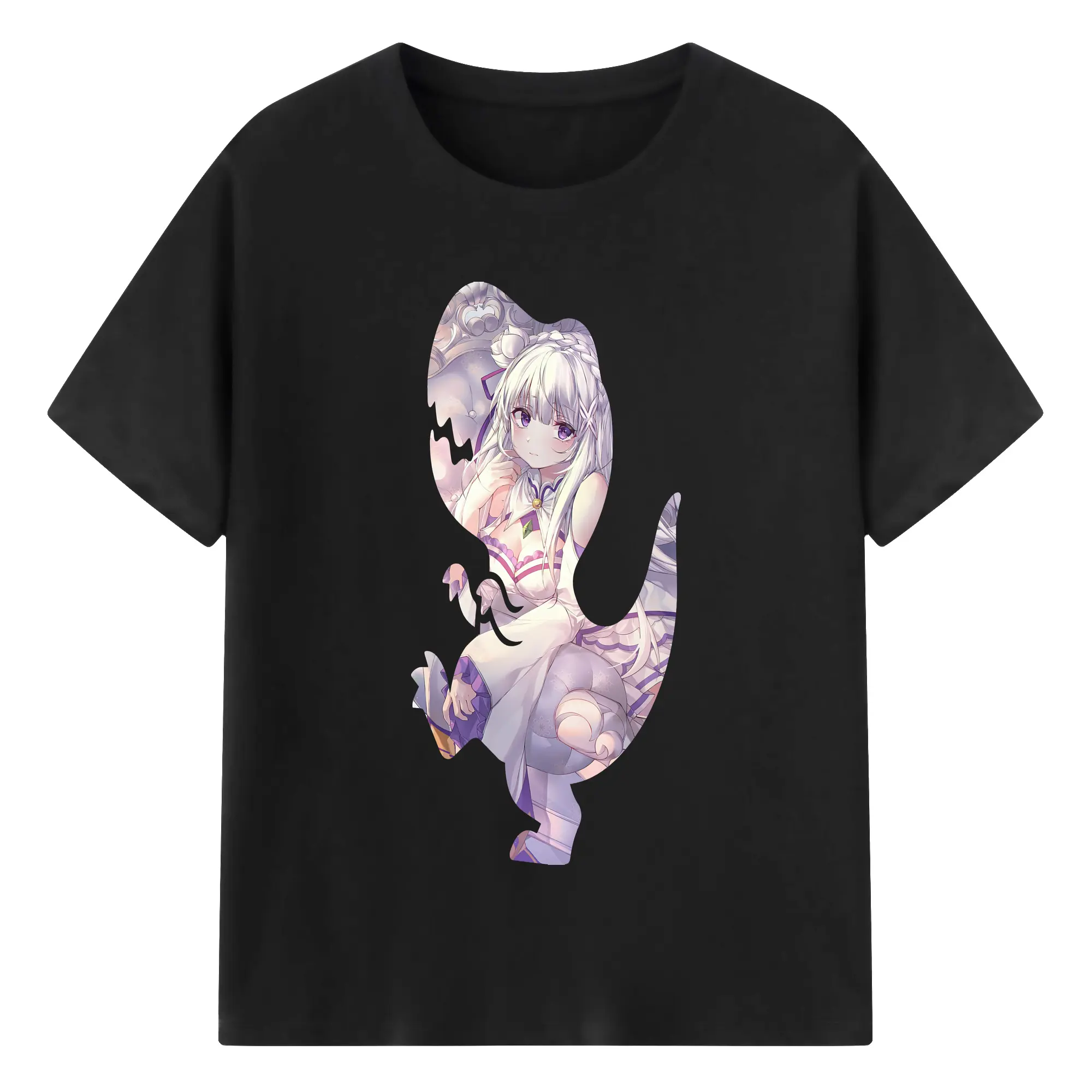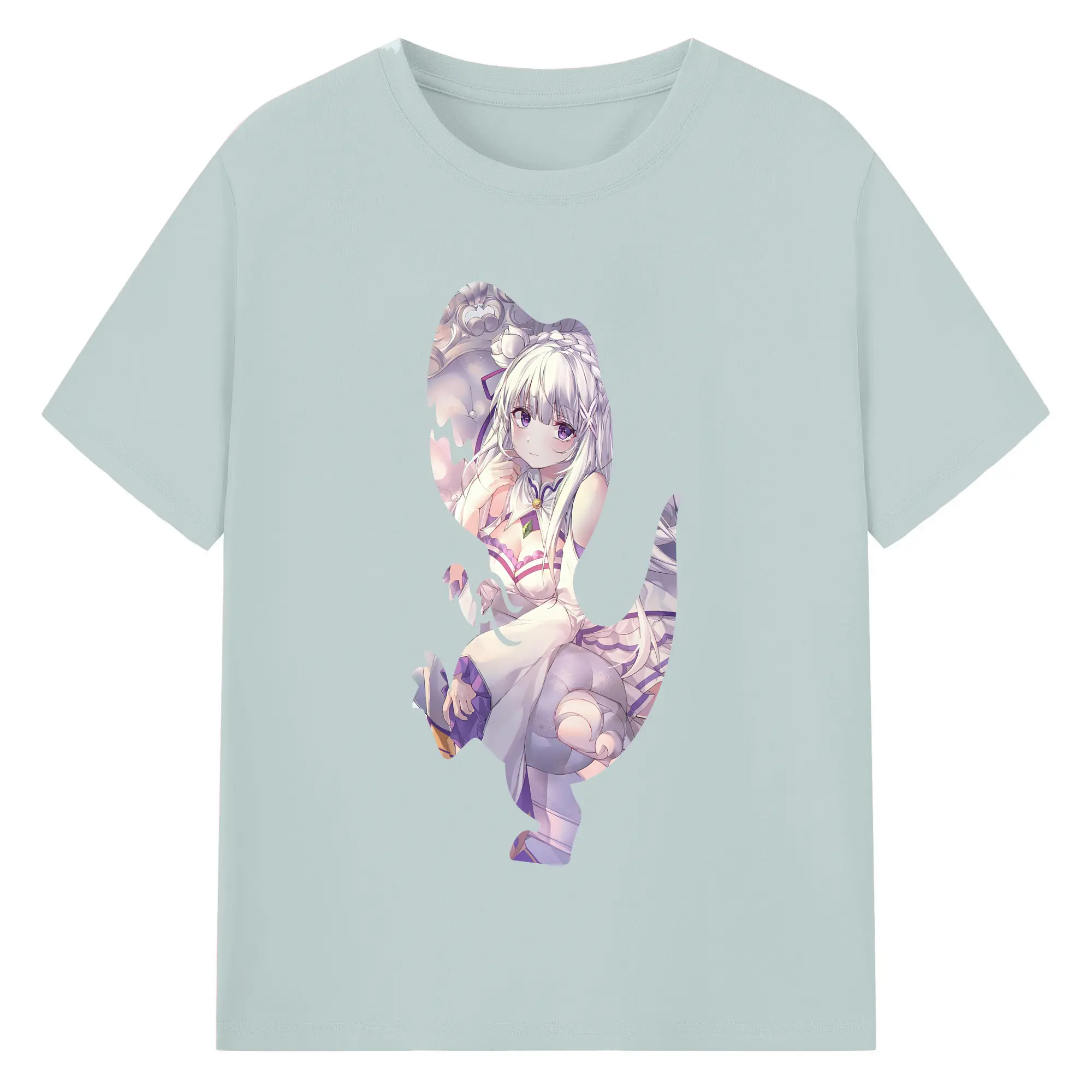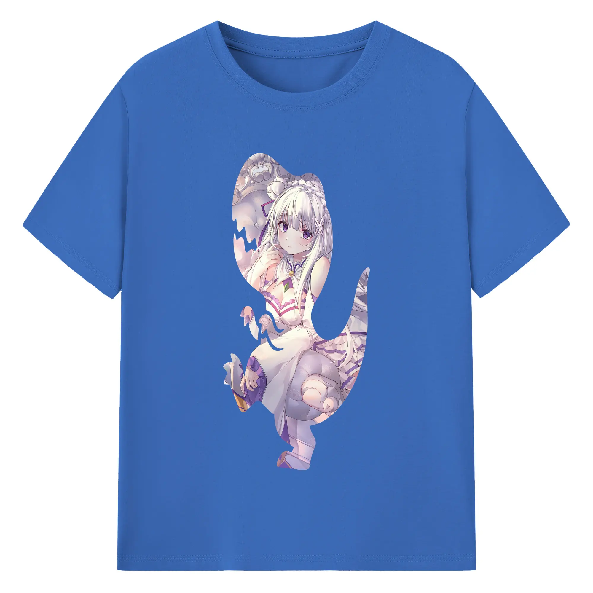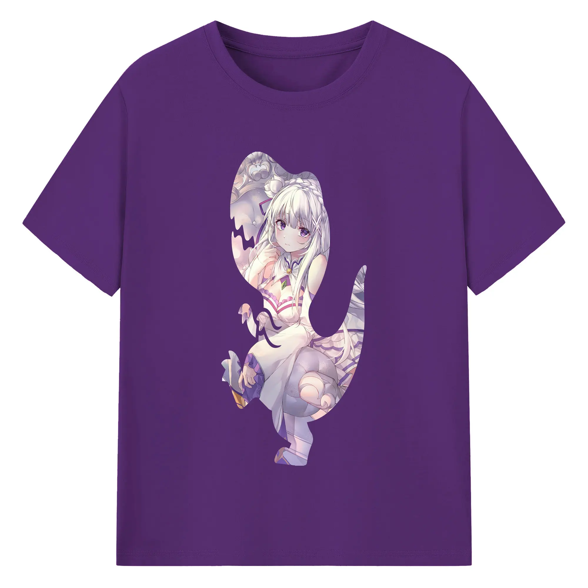 リゼロ グッズ エミリア - 綿100% 半袖Tシャツ ・ バックプリント ・ 快適 通気性 ・ 日常使い 散歩 スポーツ用