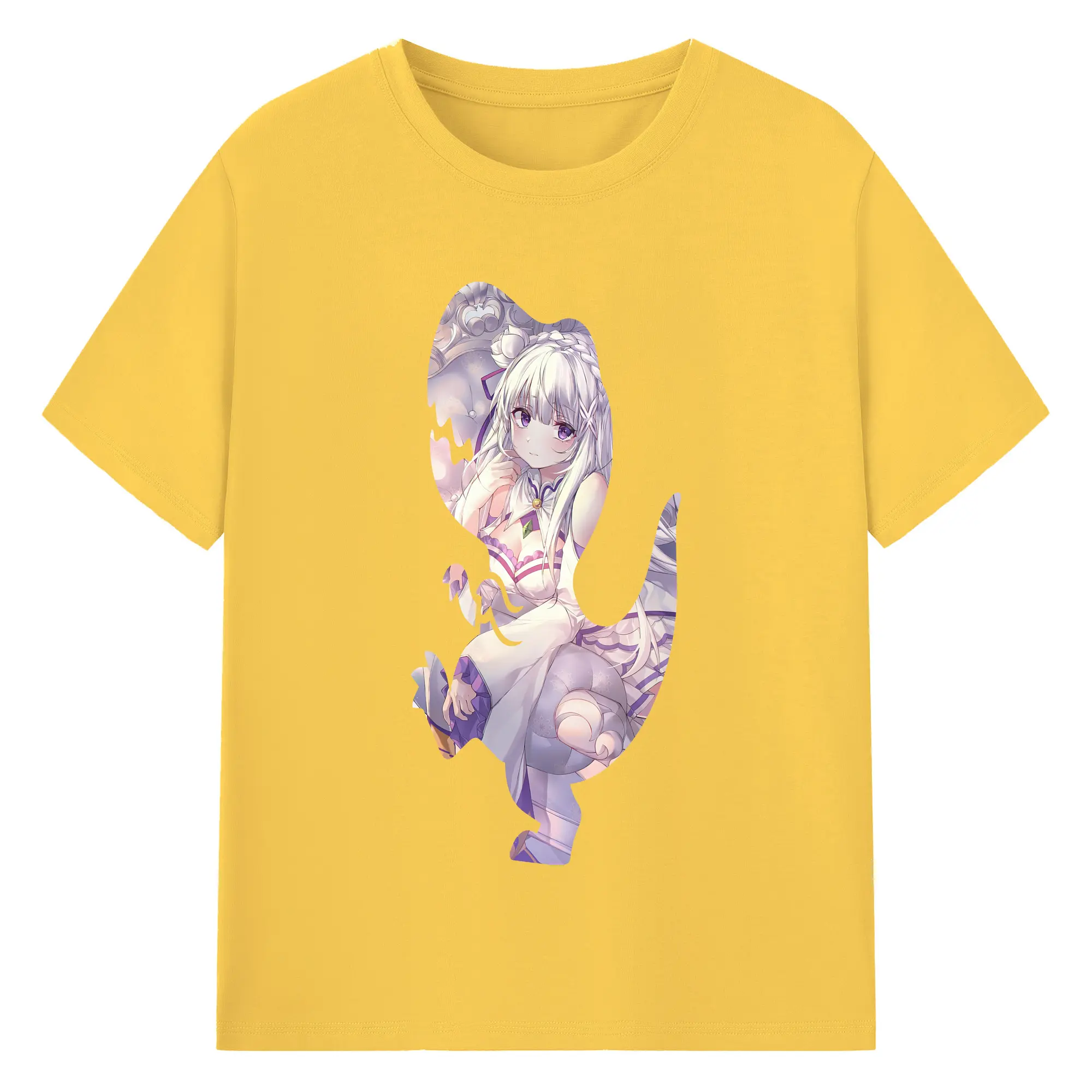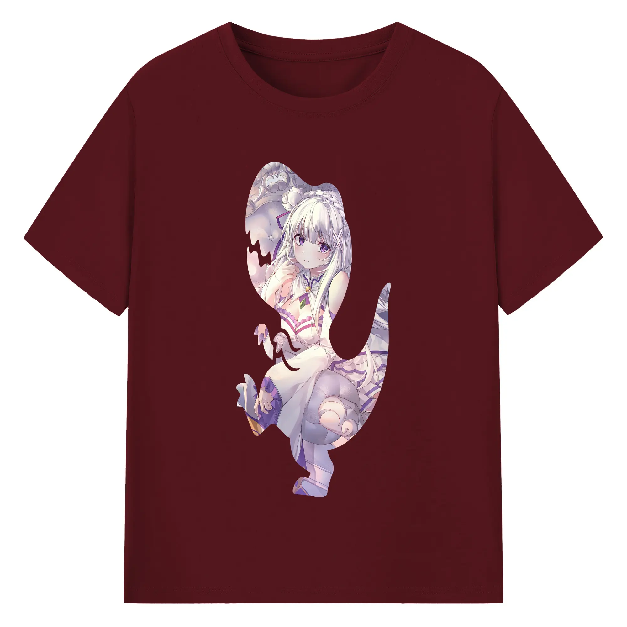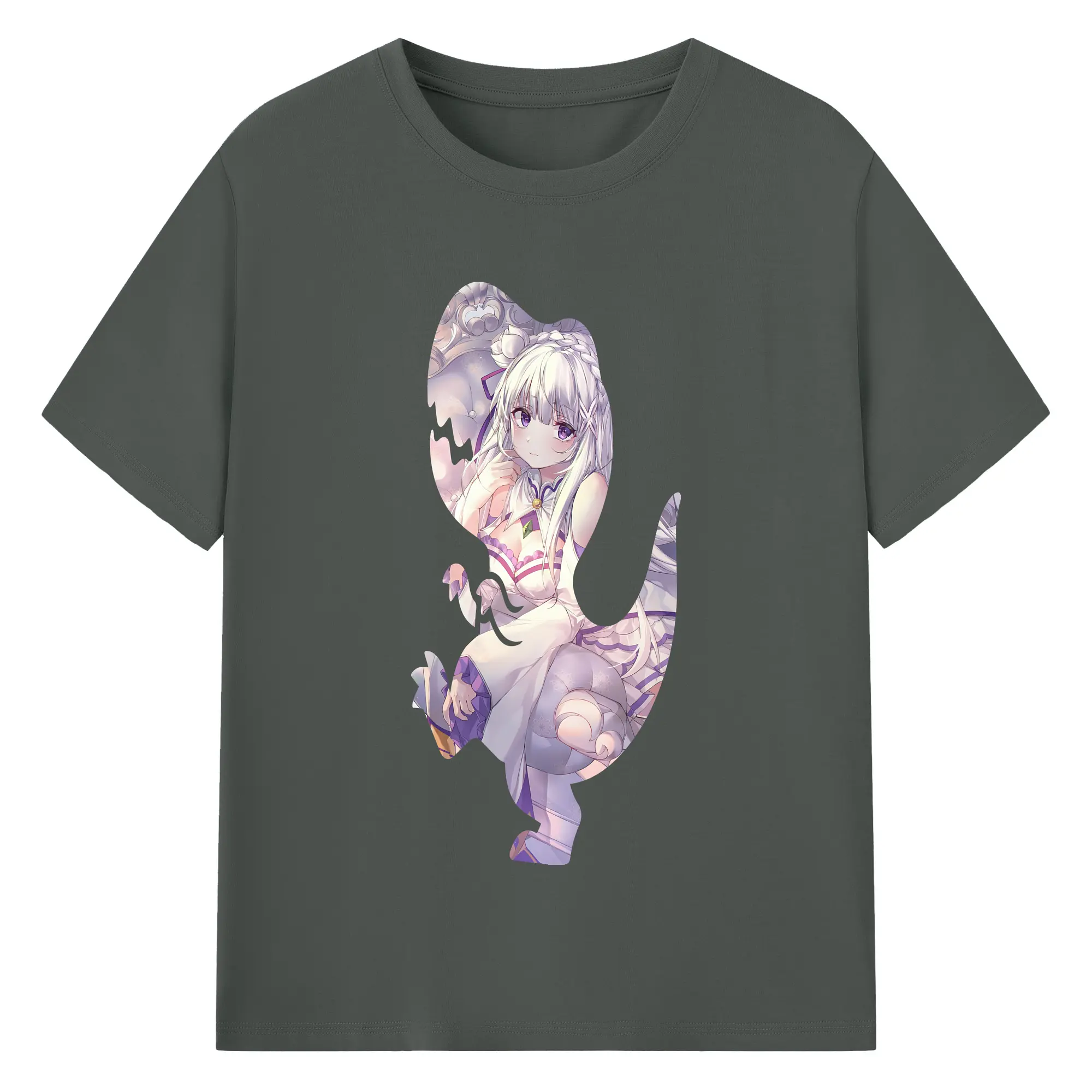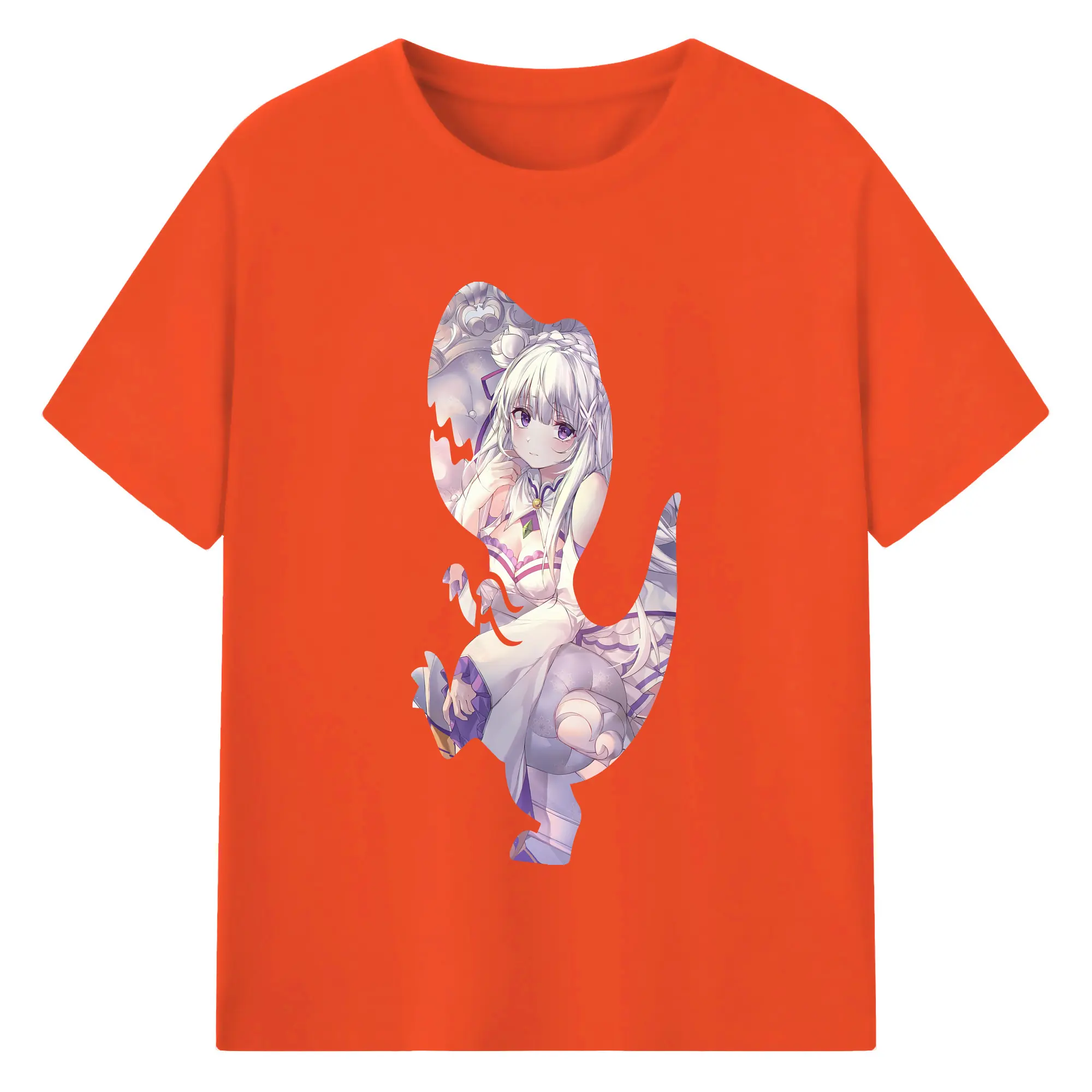 リゼロ グッズ エミリア - 綿100% 半袖Tシャツ ・ バックプリント ・ 快適 通気性 ・ 日常使い 散歩 スポーツ用