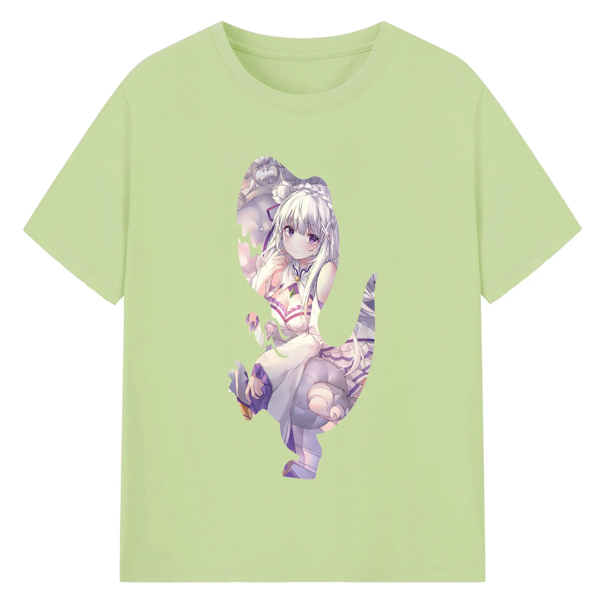 リゼロ グッズ エミリア - 綿100% キッズTシャツ ・ フロントプリント ・ 快適 通気性 ・ スポーツ カジュアル 散歩用
