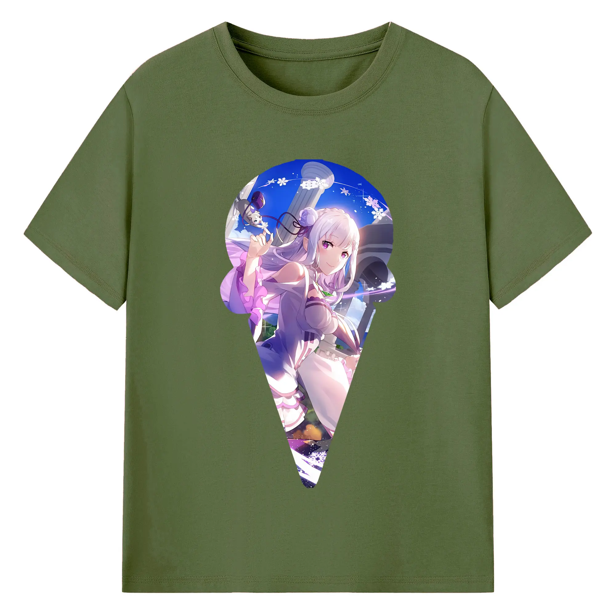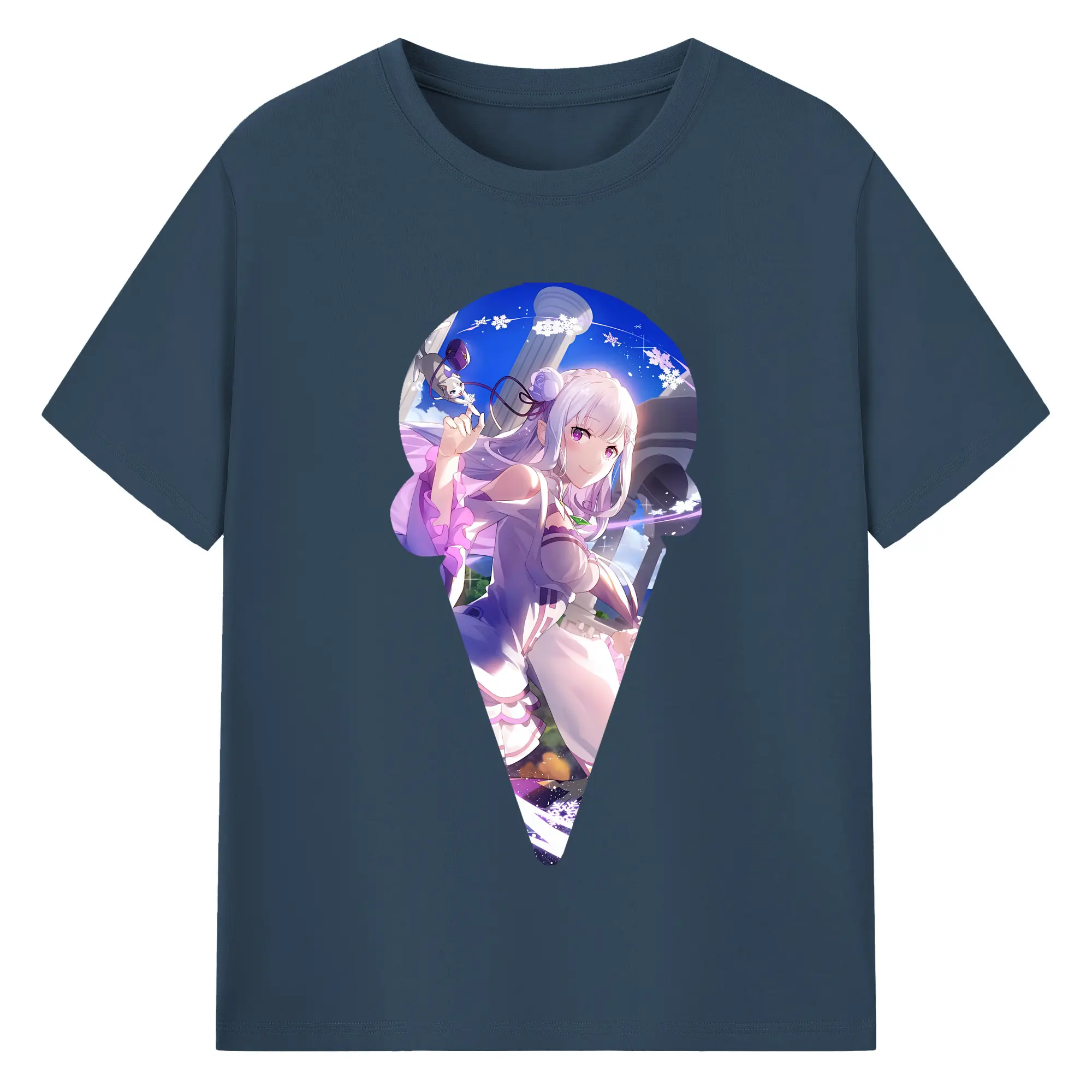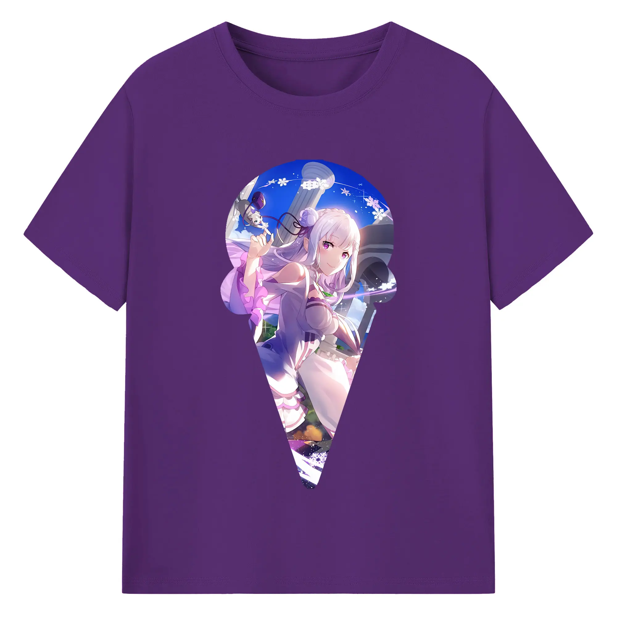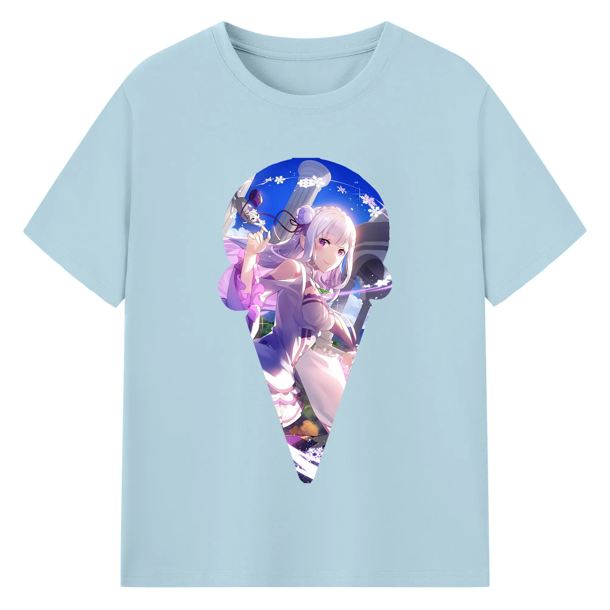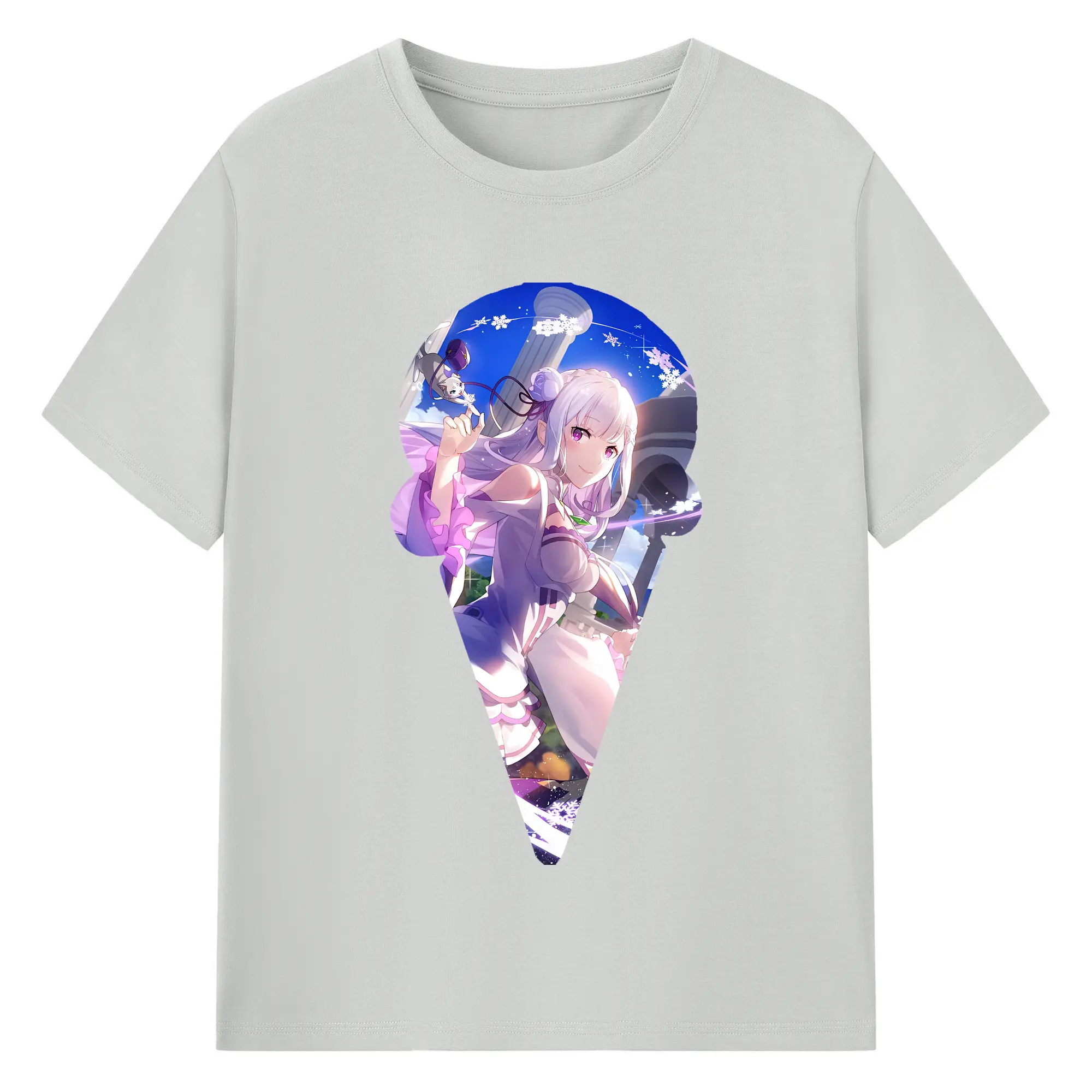 リゼロ グッズ エミリア - 綿100% 半袖Tシャツ ・ バックプリント ・ 快適 通気性 ・ 日常使い 散歩 スポーツ用