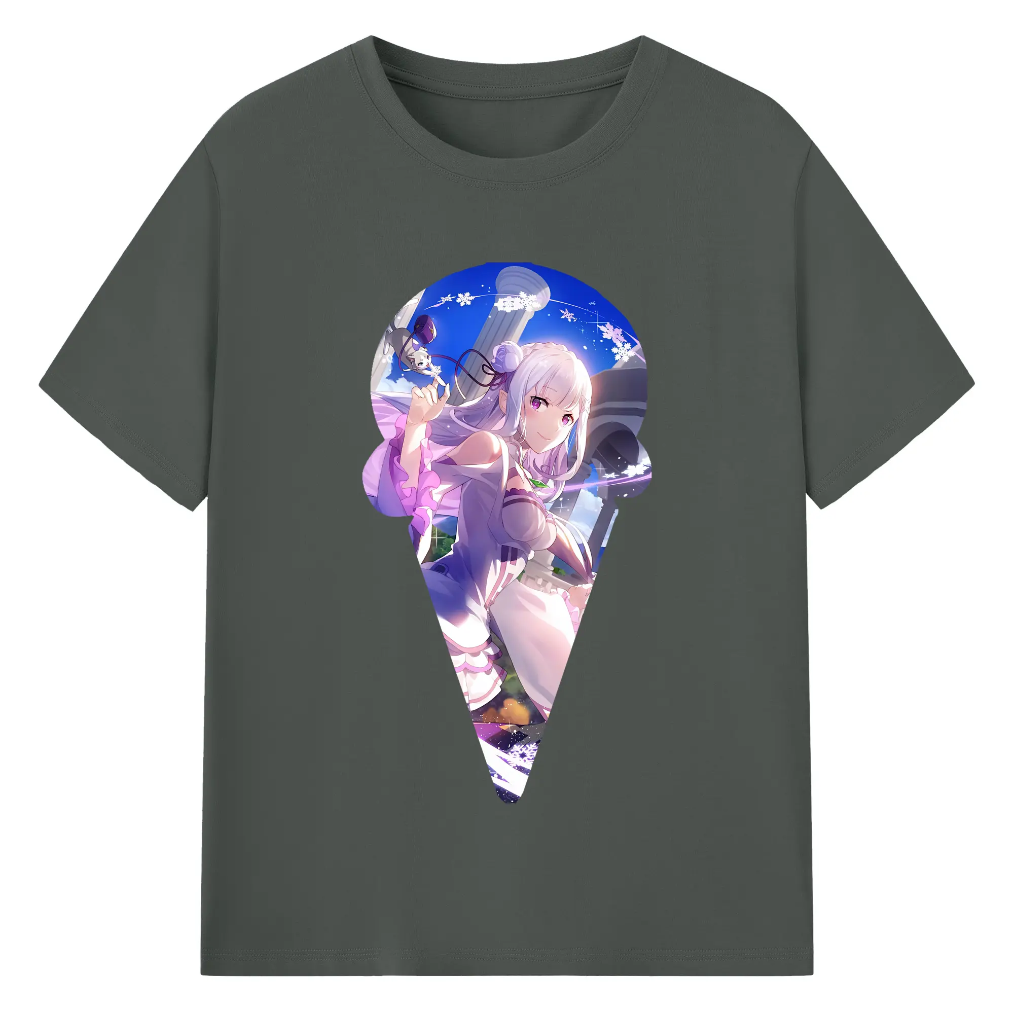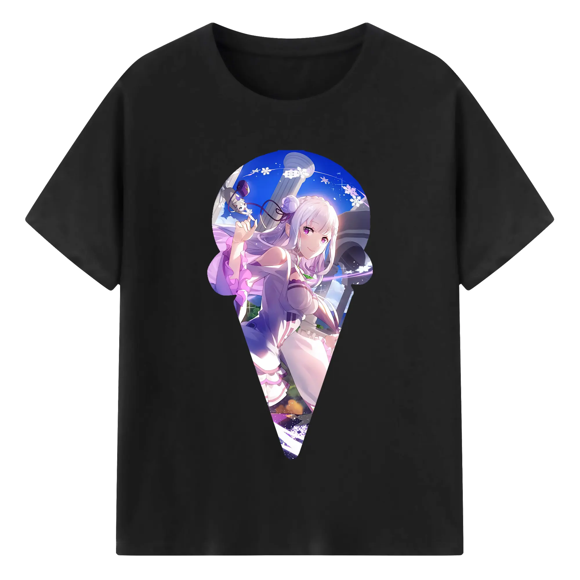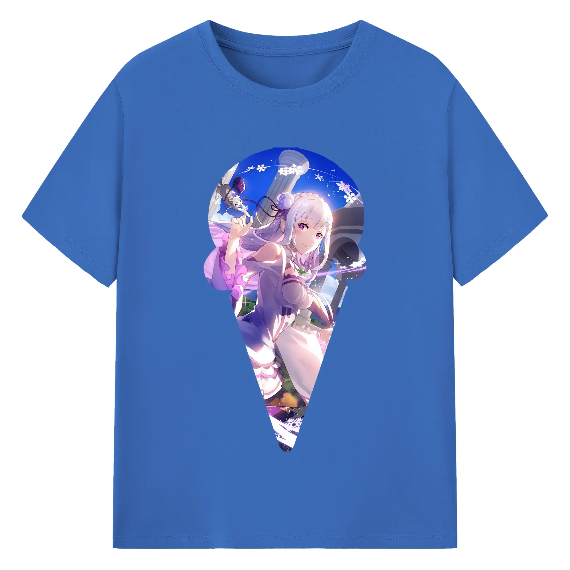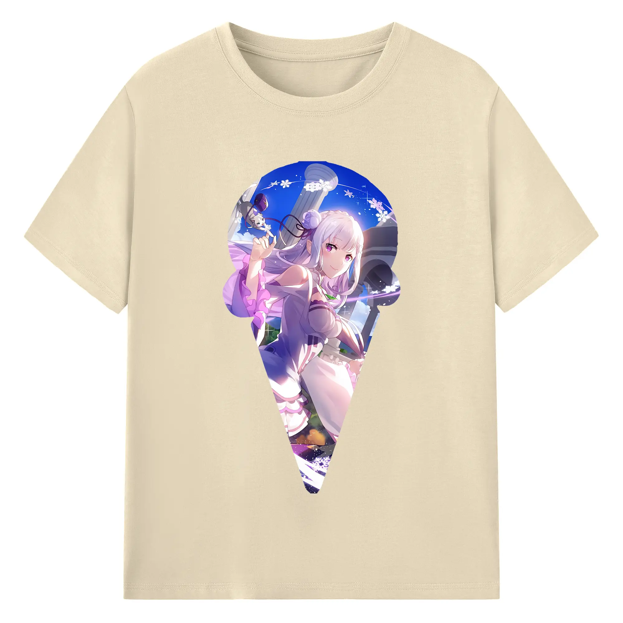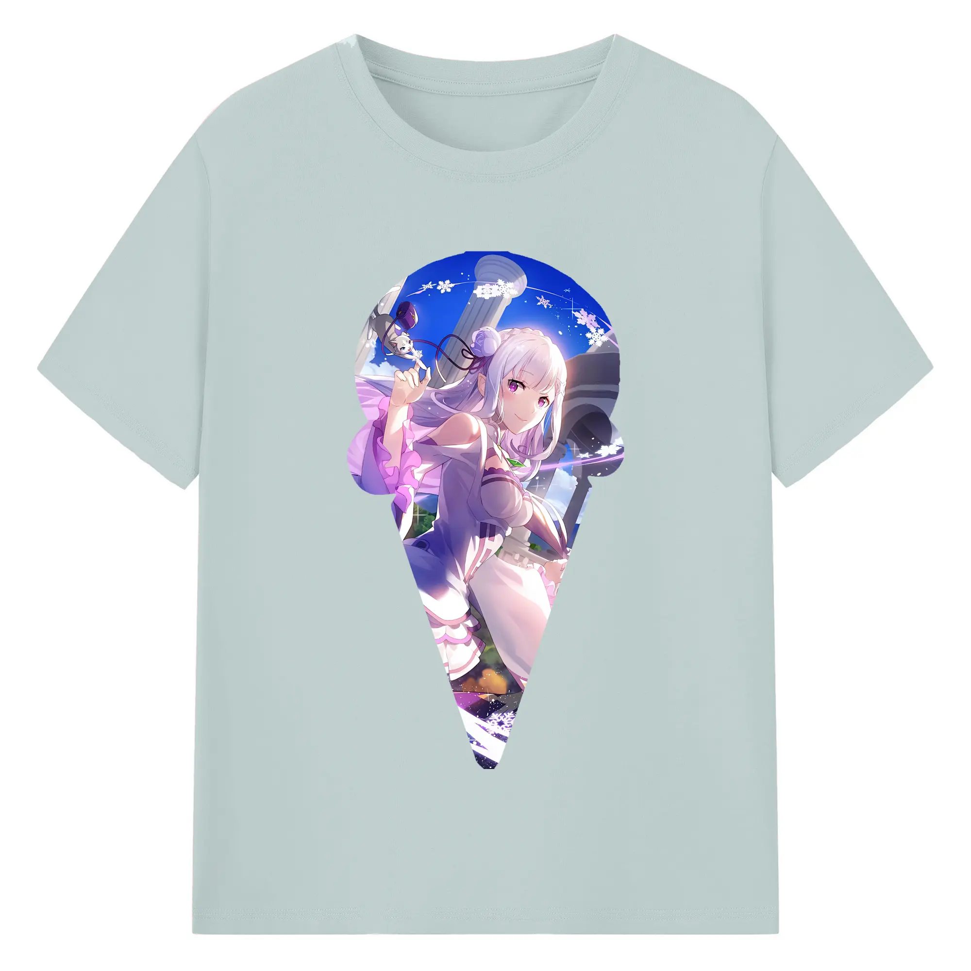 リゼロ グッズ エミリア - 綿100% 半袖Tシャツ ・ バックプリント ・ 快適 通気性 ・ 日常使い 散歩 スポーツ用