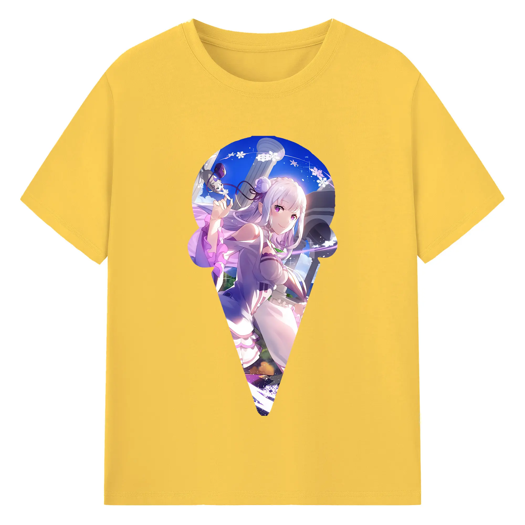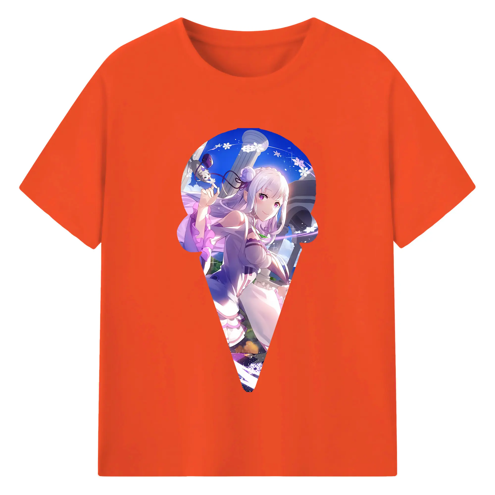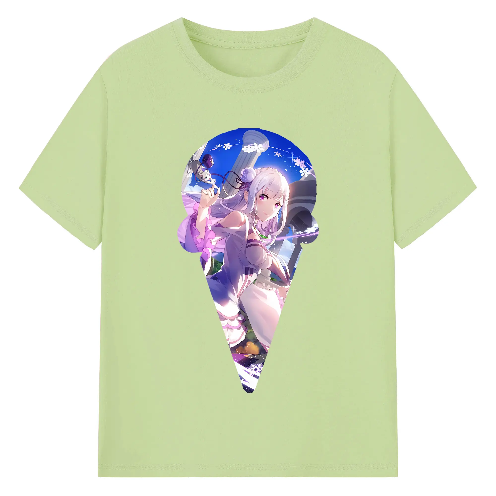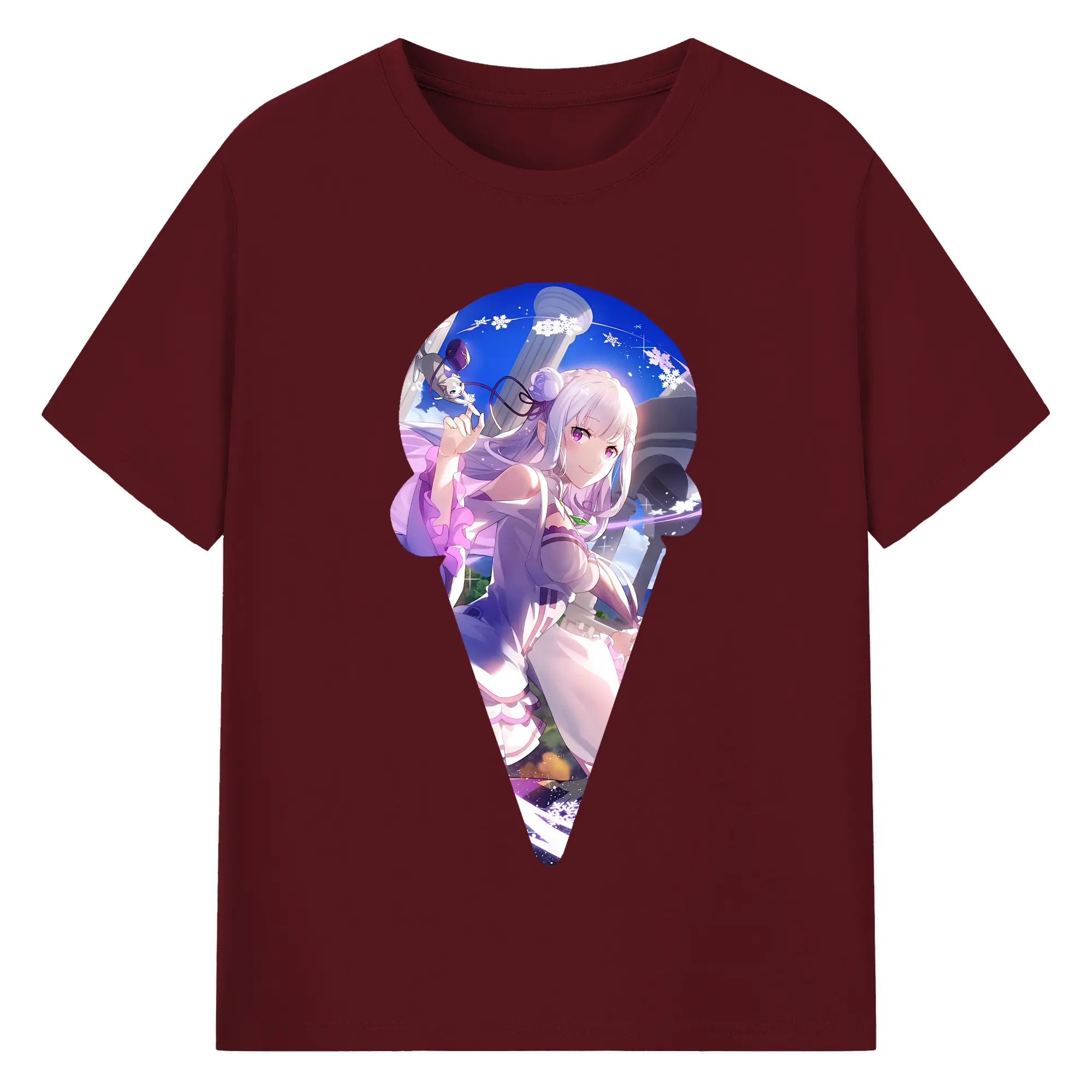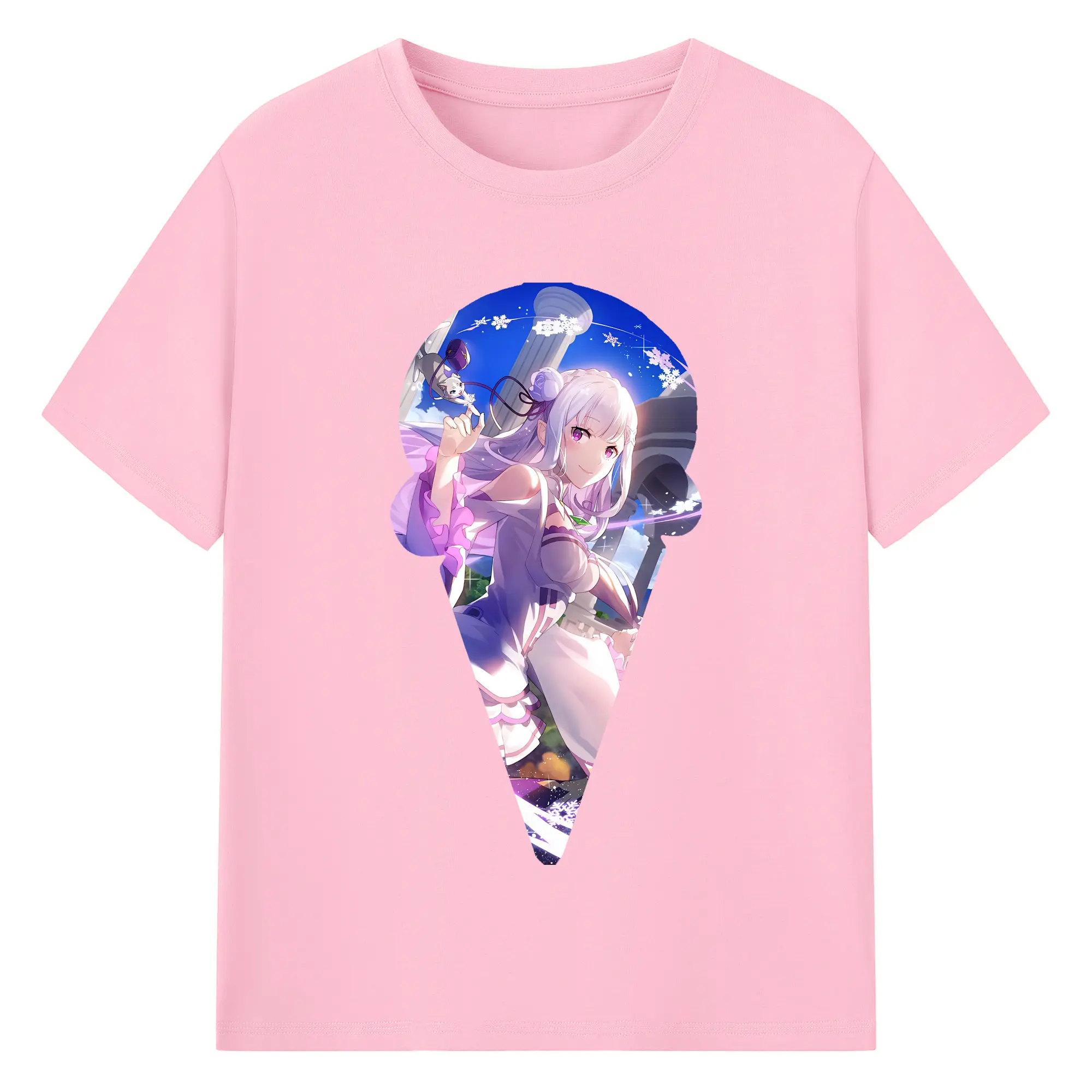 リゼロ グッズ エミリア - 綿100% 半袖Tシャツ ・ バックプリント ・ 快適 通気性 ・ 日常使い 散歩 スポーツ用