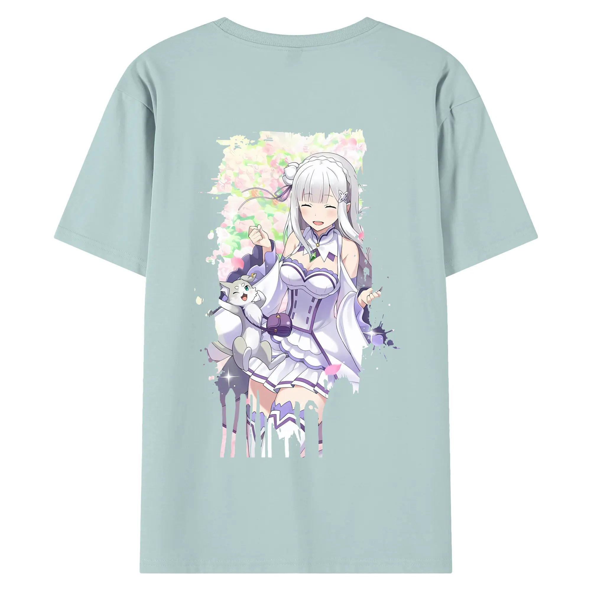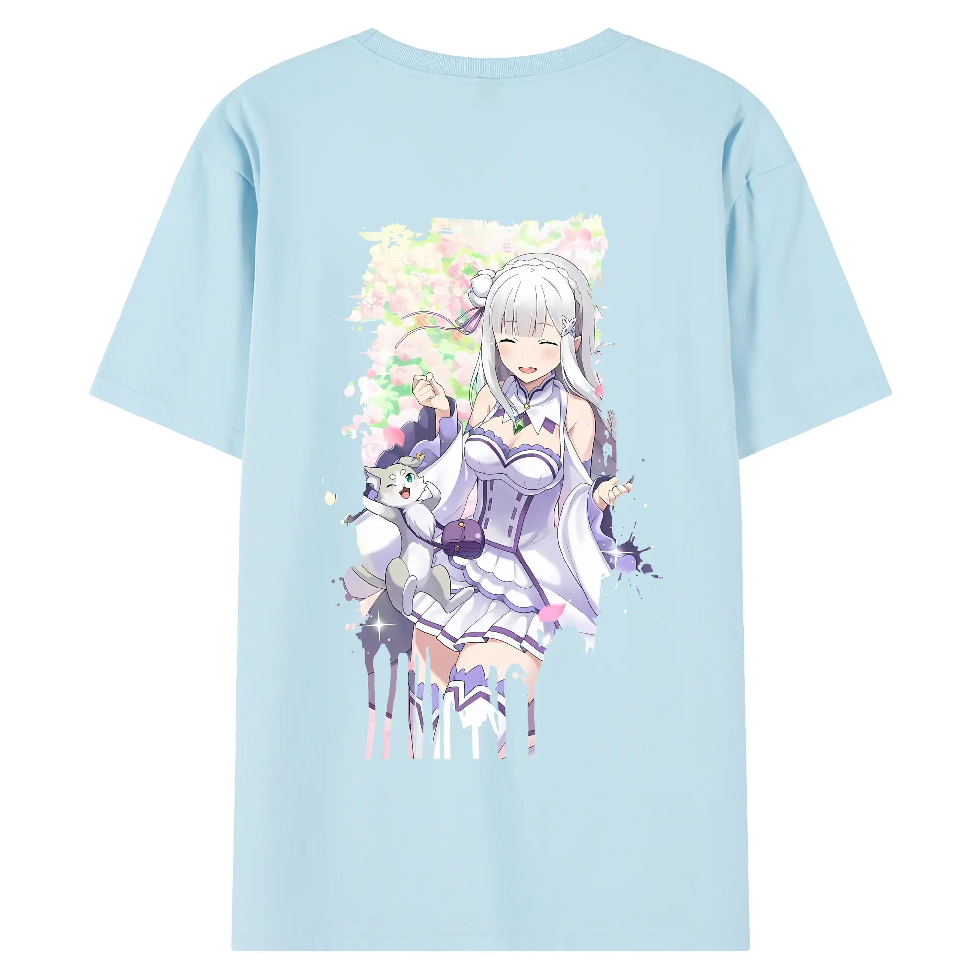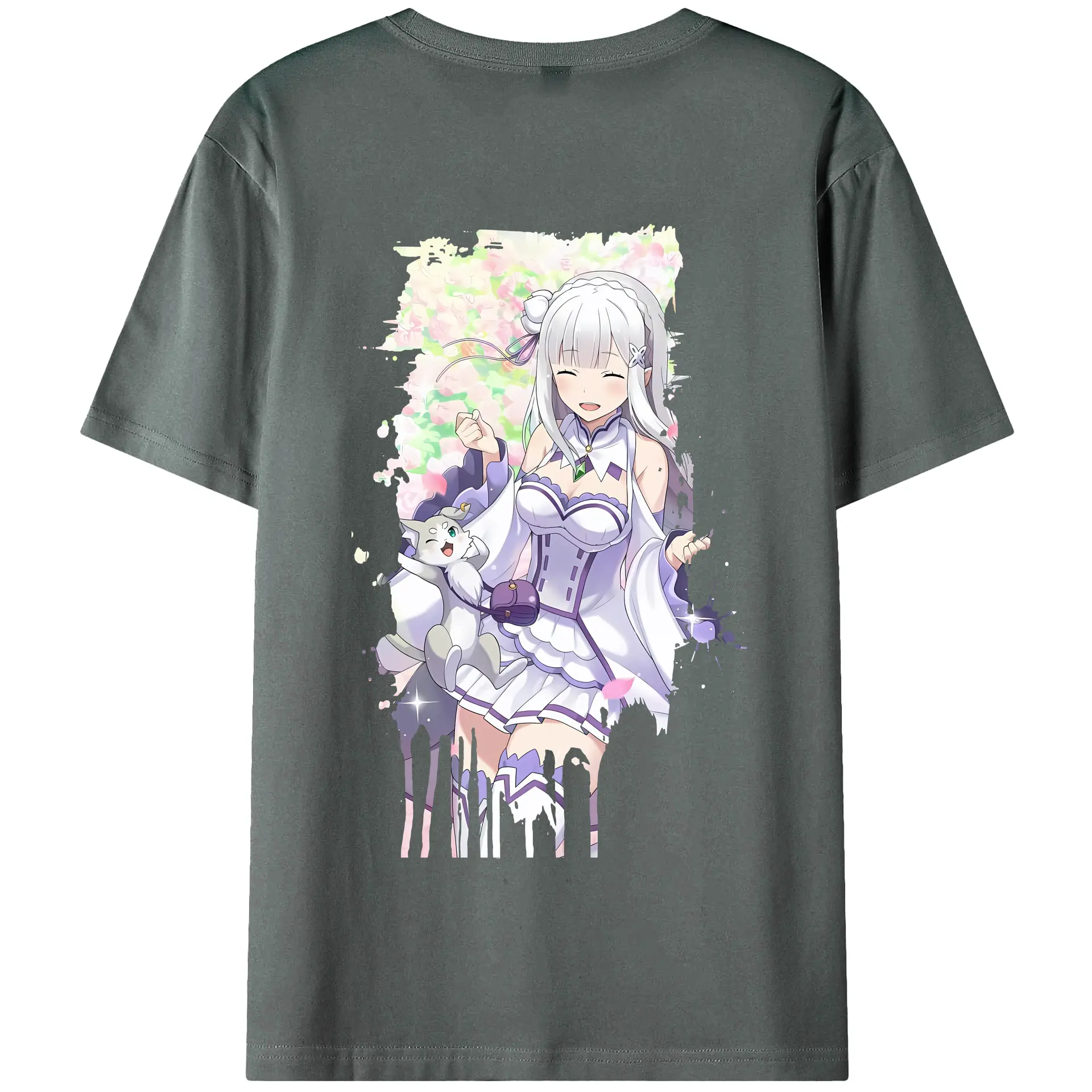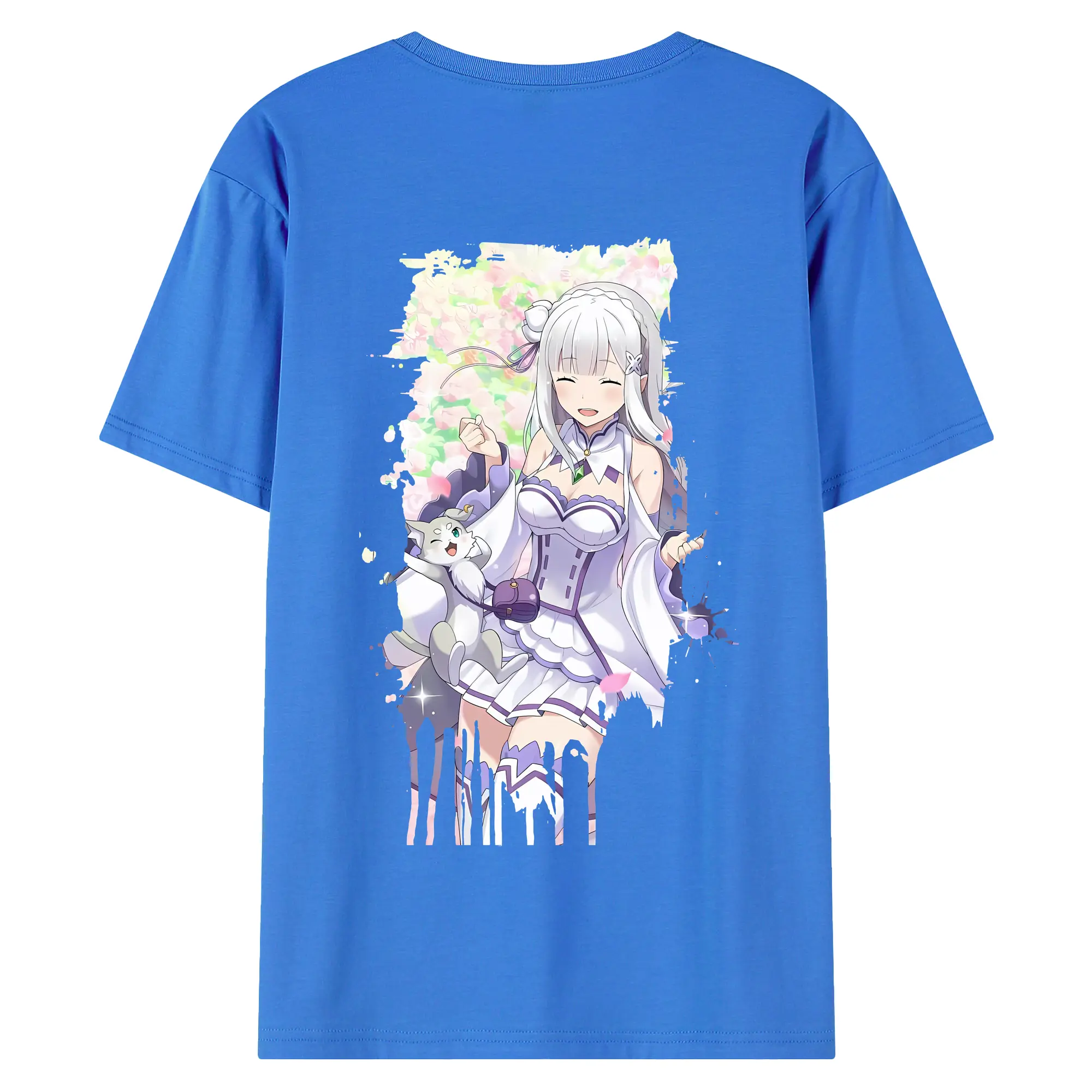 リゼロ グッズ エミリア - 綿100% 半袖Tシャツ ・ フロントプリント ・ 快適 通気性 ・ 日常使い 散歩 スポーツ用