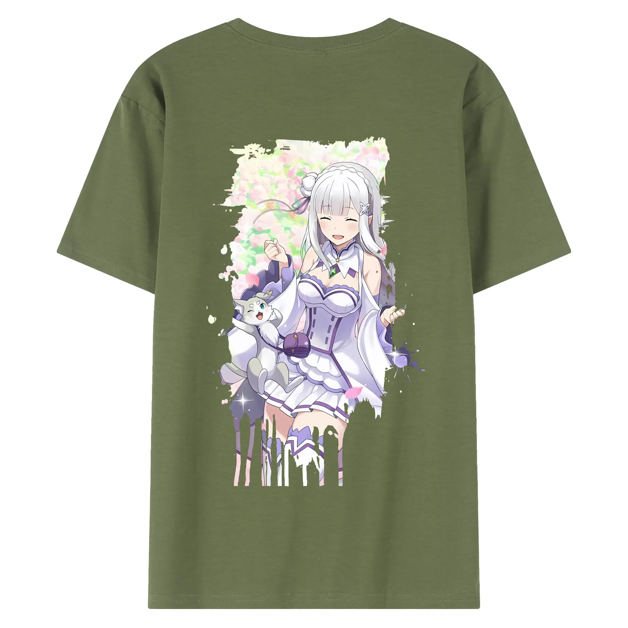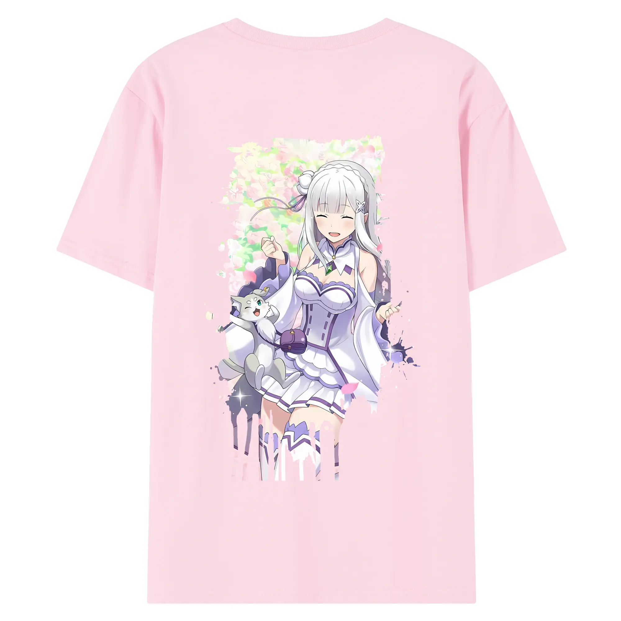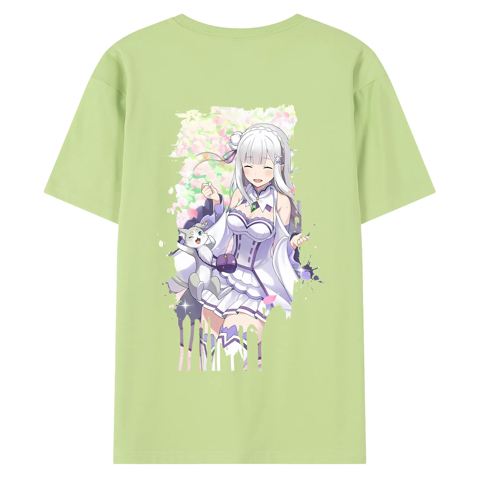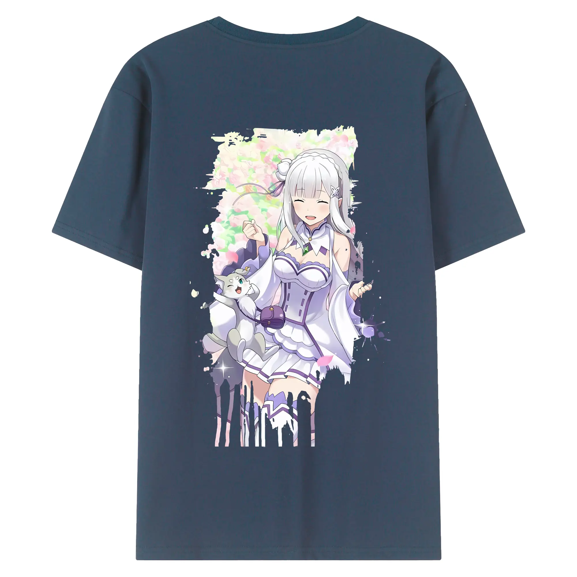 リゼロ グッズ エミリア - 綿100% 半袖Tシャツ ・ フロントプリント ・ 快適 通気性 ・ 日常使い 散歩 スポーツ用