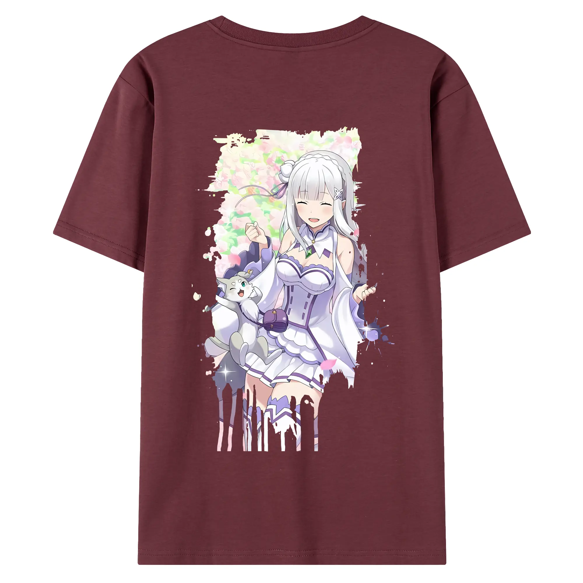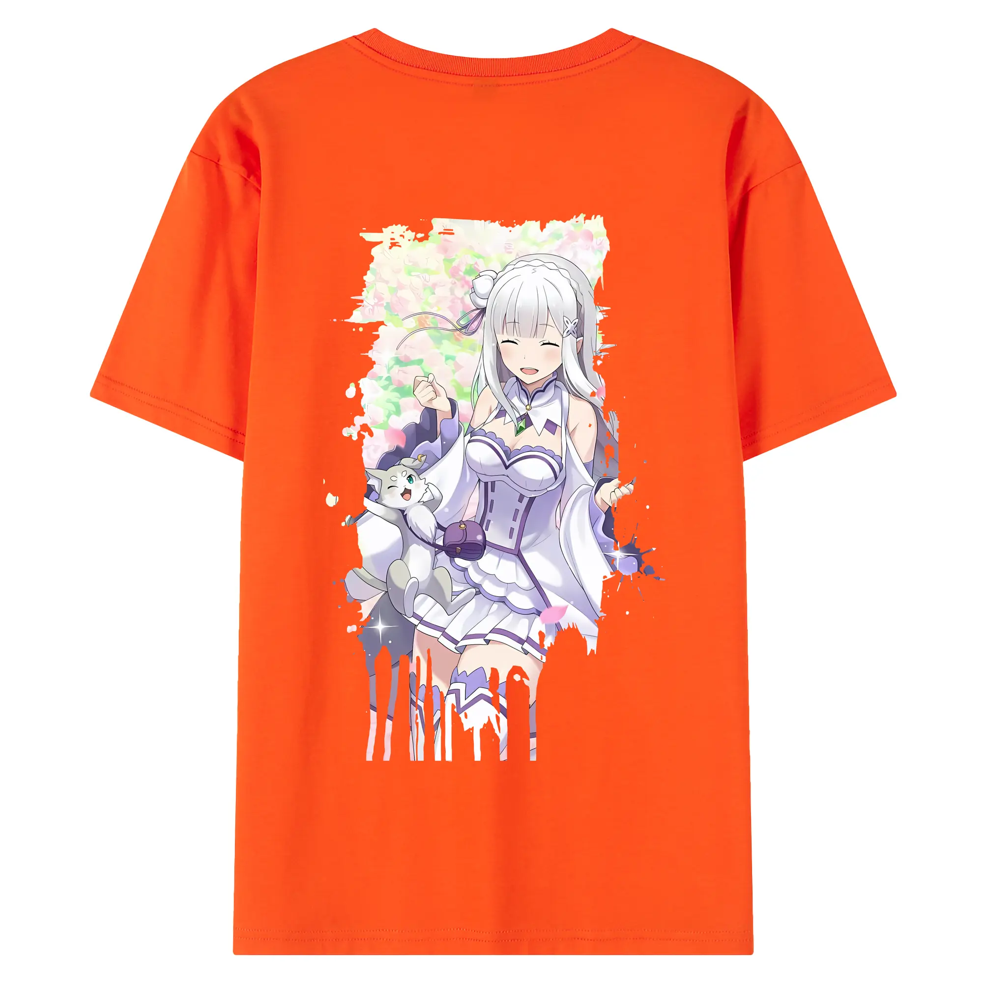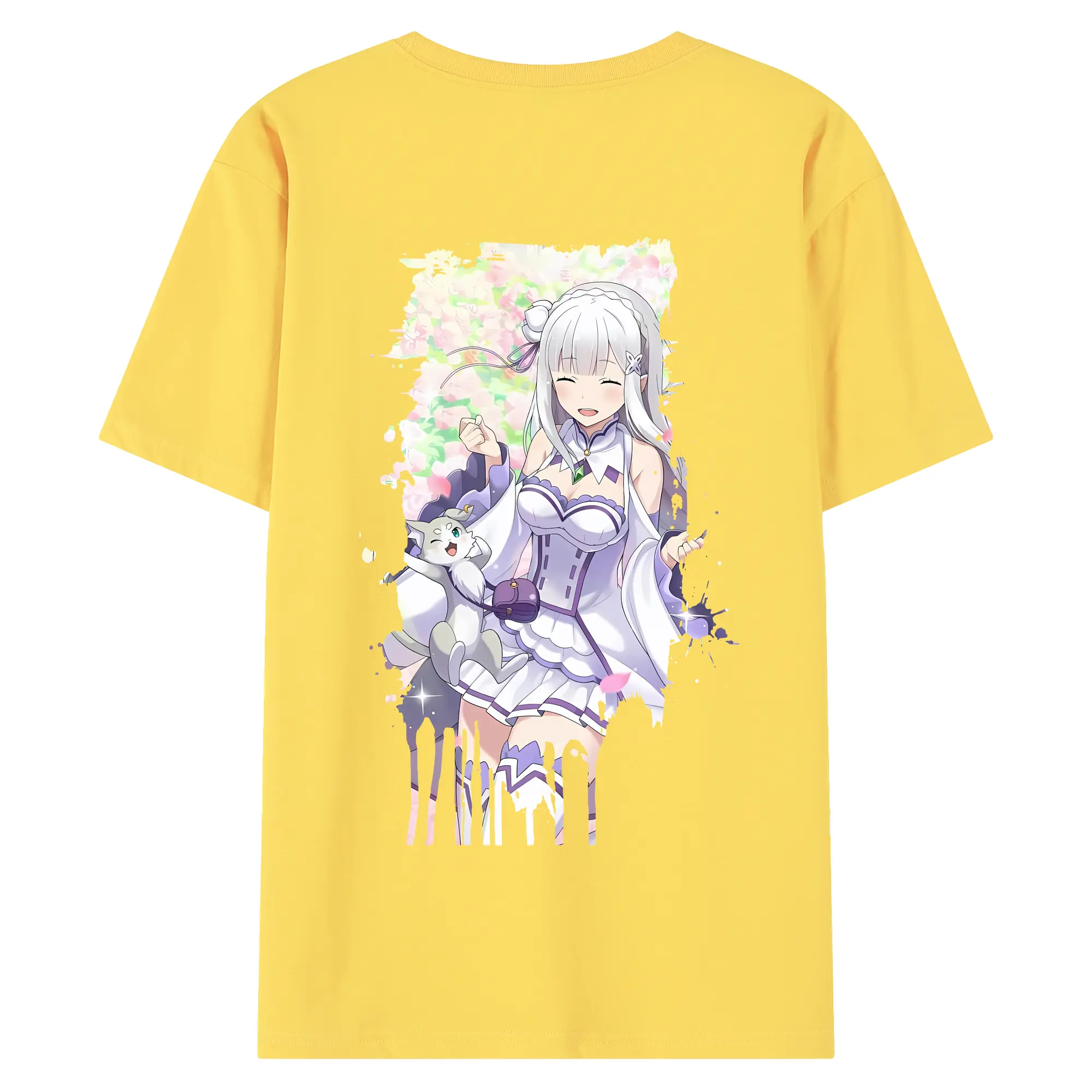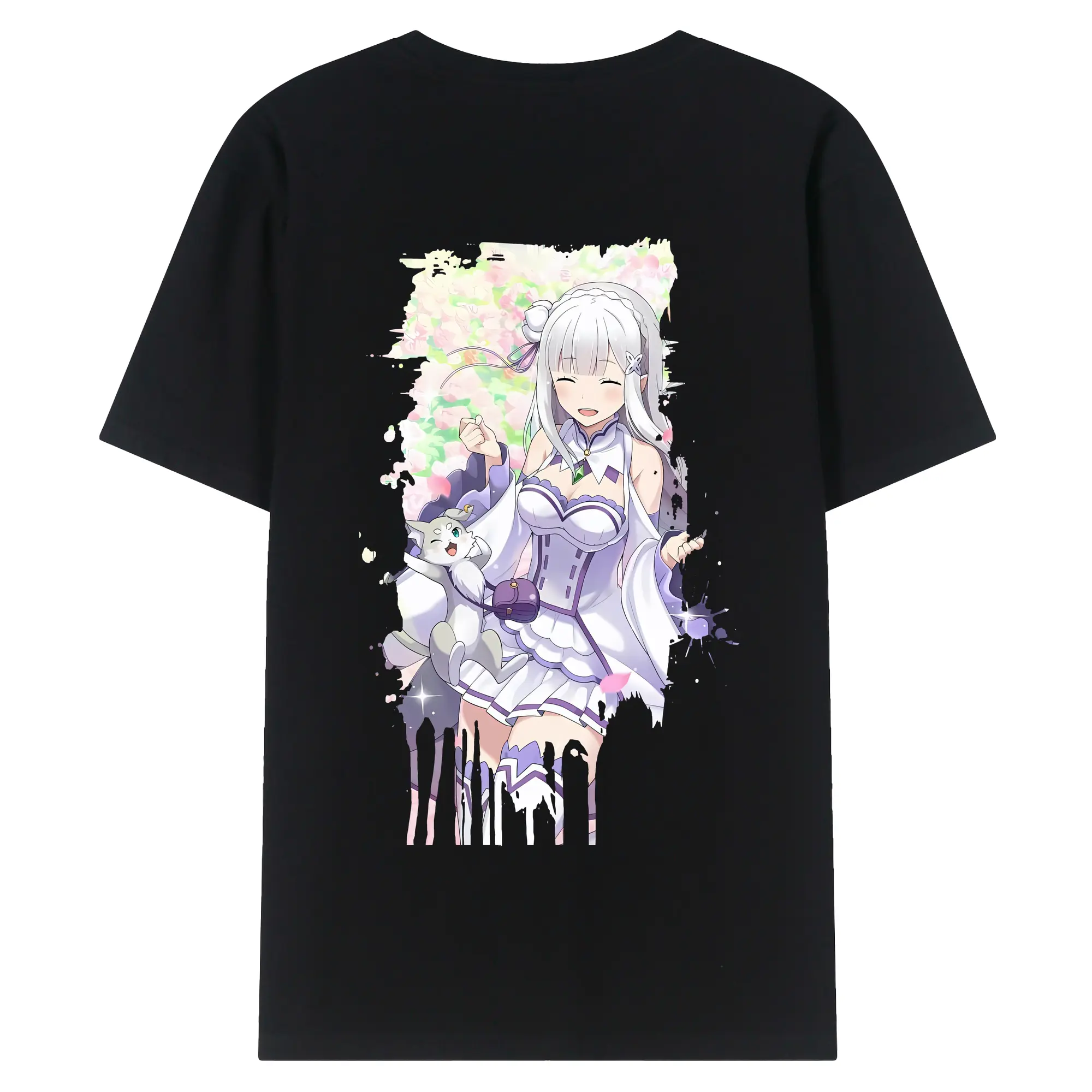 リゼロ グッズ エミリア - 綿100% 半袖Tシャツ ・ フロントプリント ・ 快適 通気性 ・ 日常使い 散歩 スポーツ用