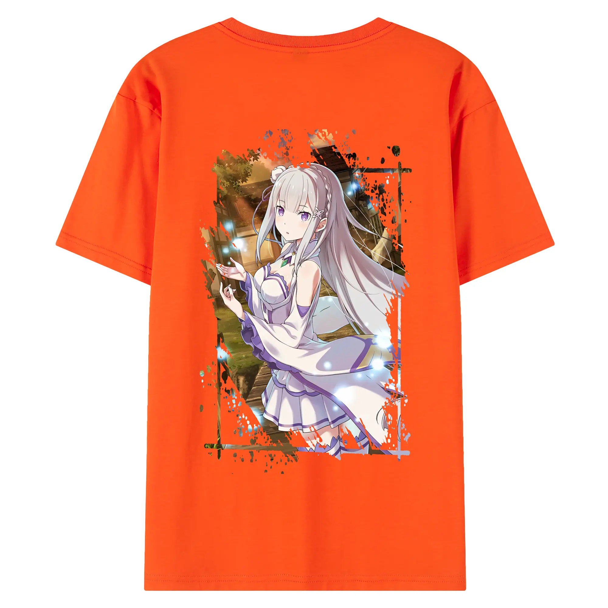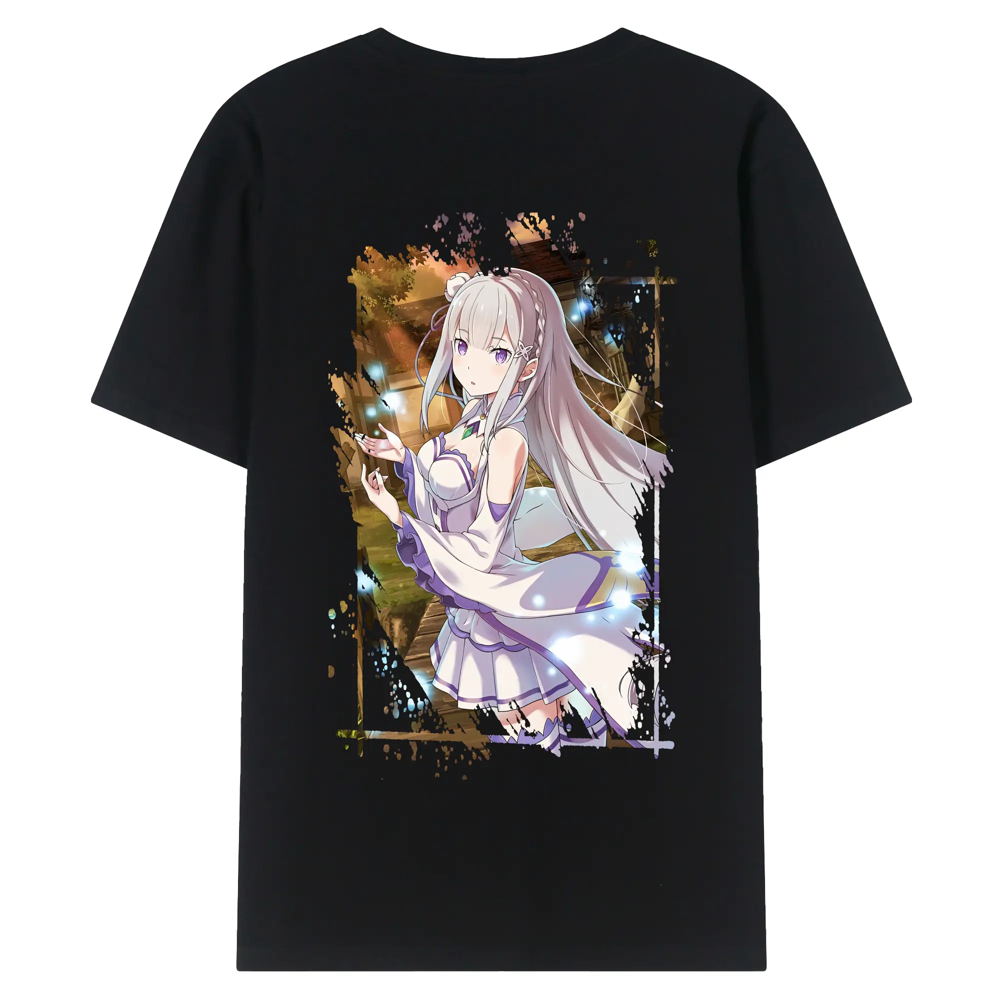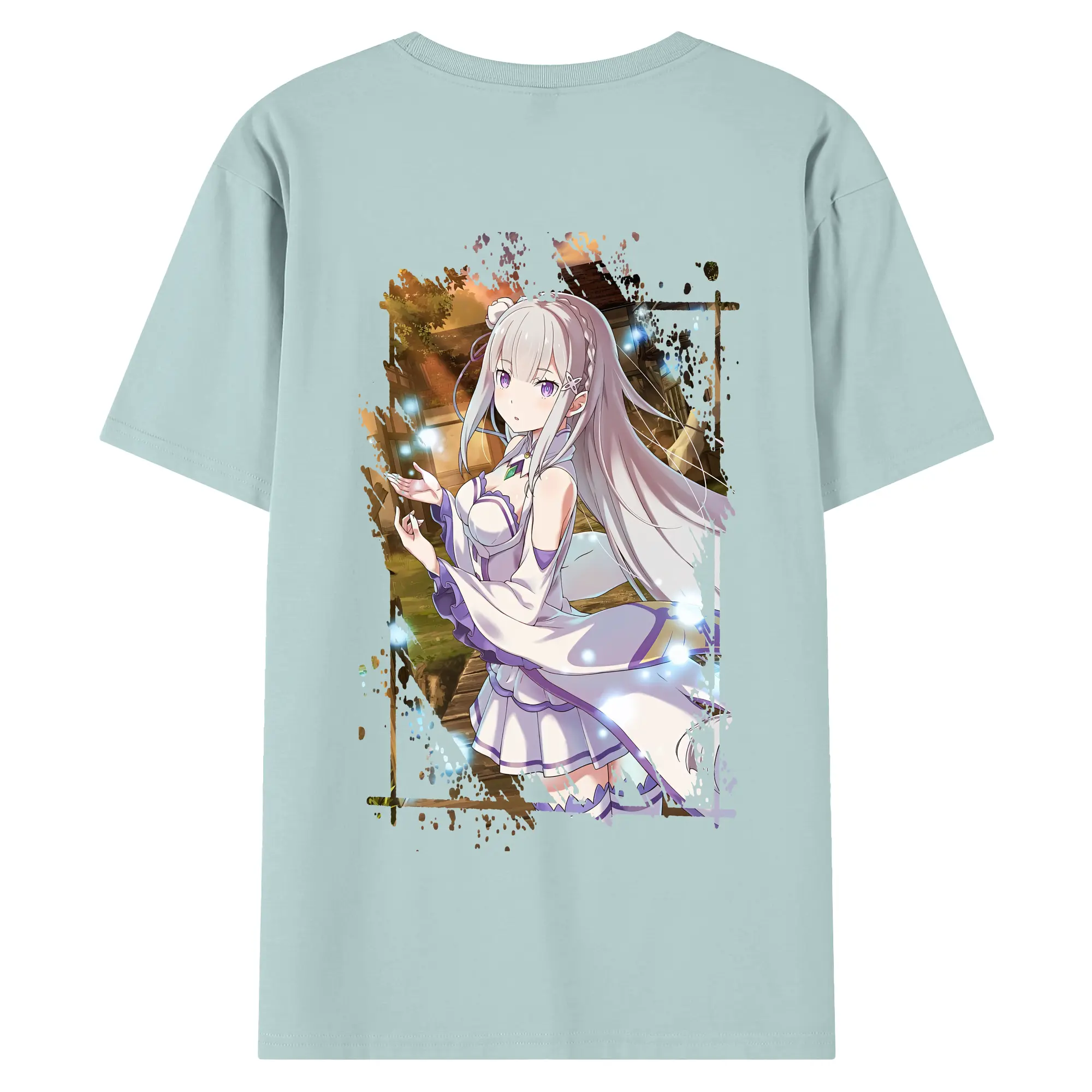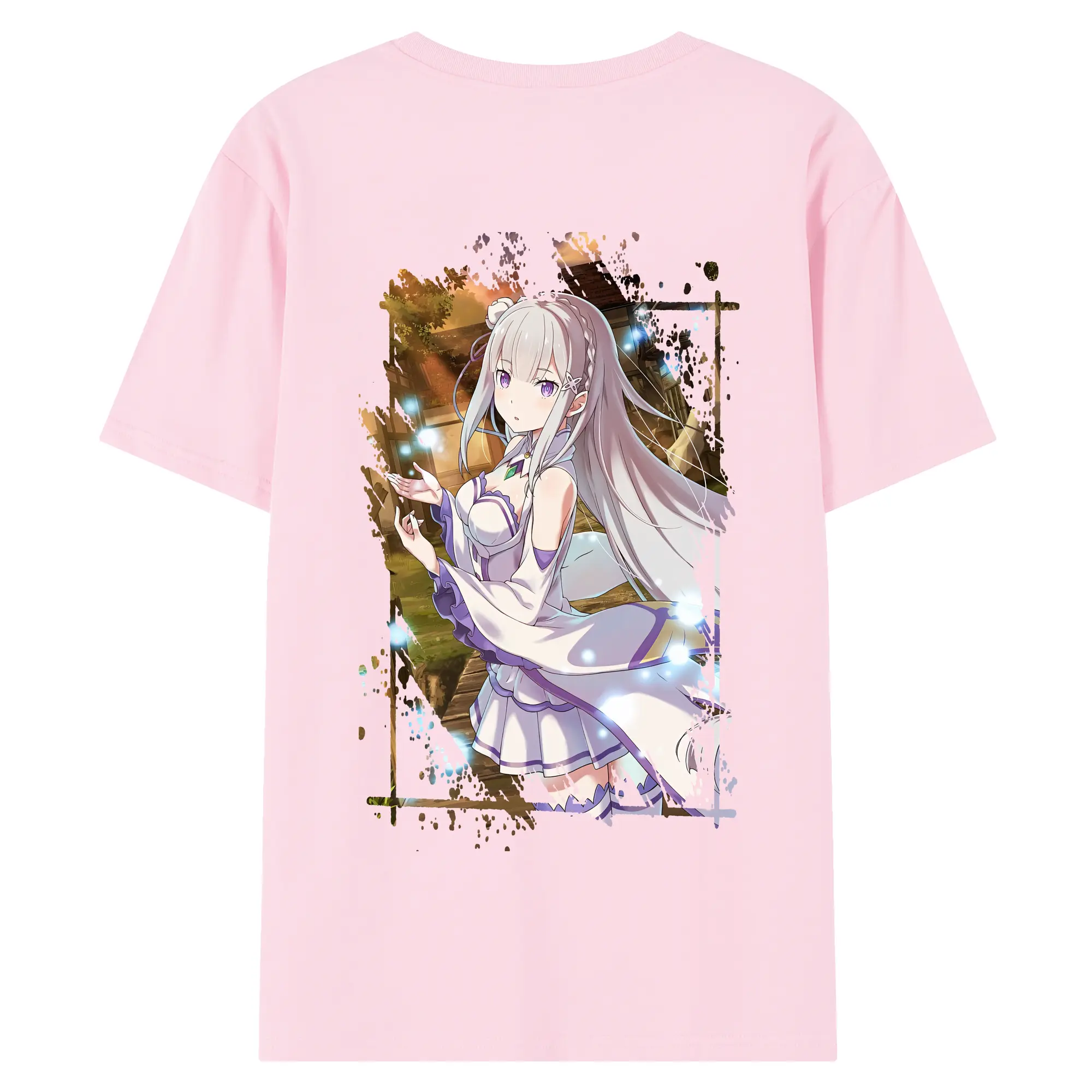 リゼロ グッズ エミリア - 綿100% 半袖Tシャツ ・ フロントプリント ・ 快適 通気性 ・ 日常使い 散歩 スポーツ用
