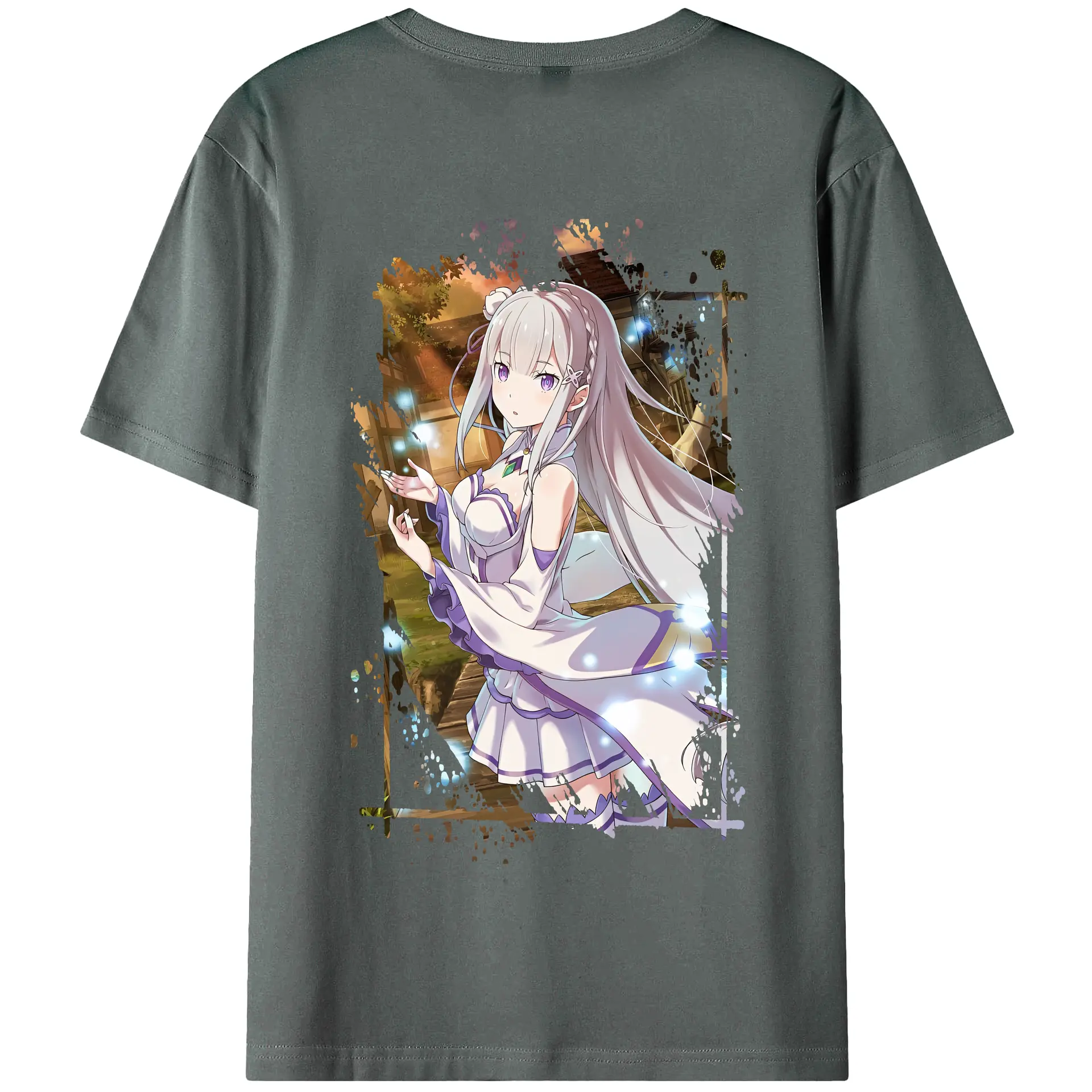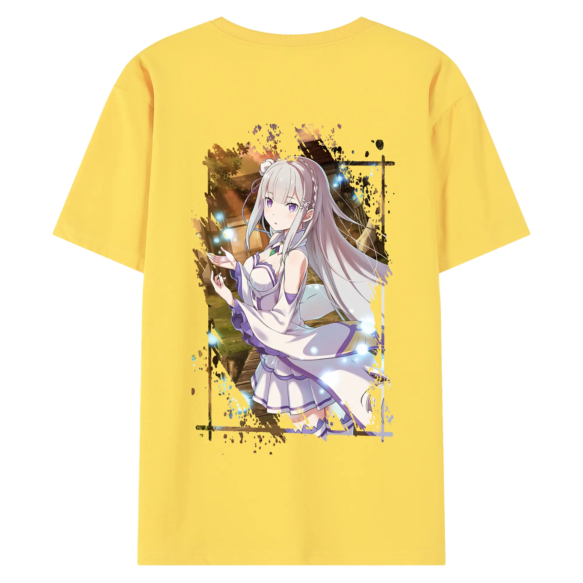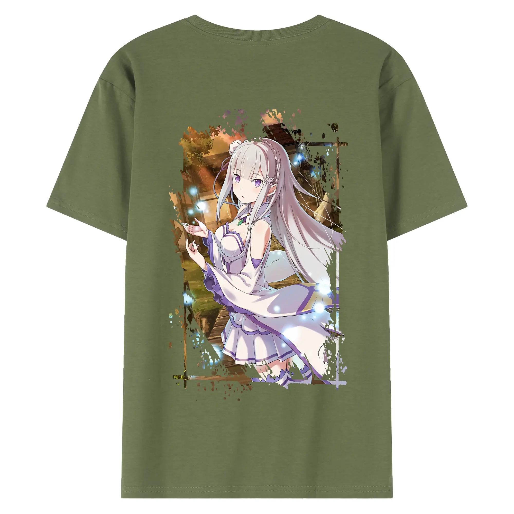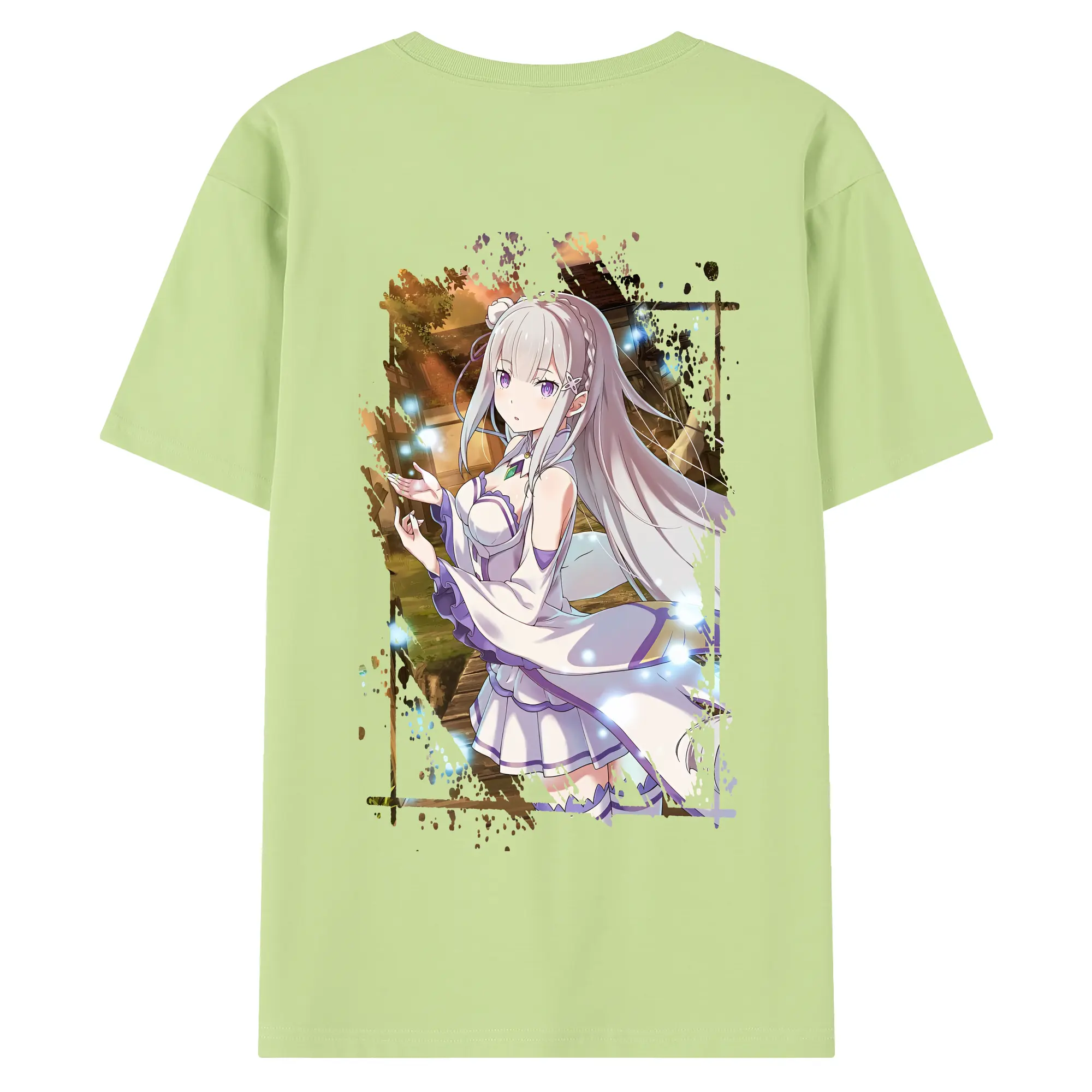 リゼロ グッズ エミリア - 綿100% 半袖Tシャツ ・ フロントプリント ・ 快適 通気性 ・ 日常使い 散歩 スポーツ用