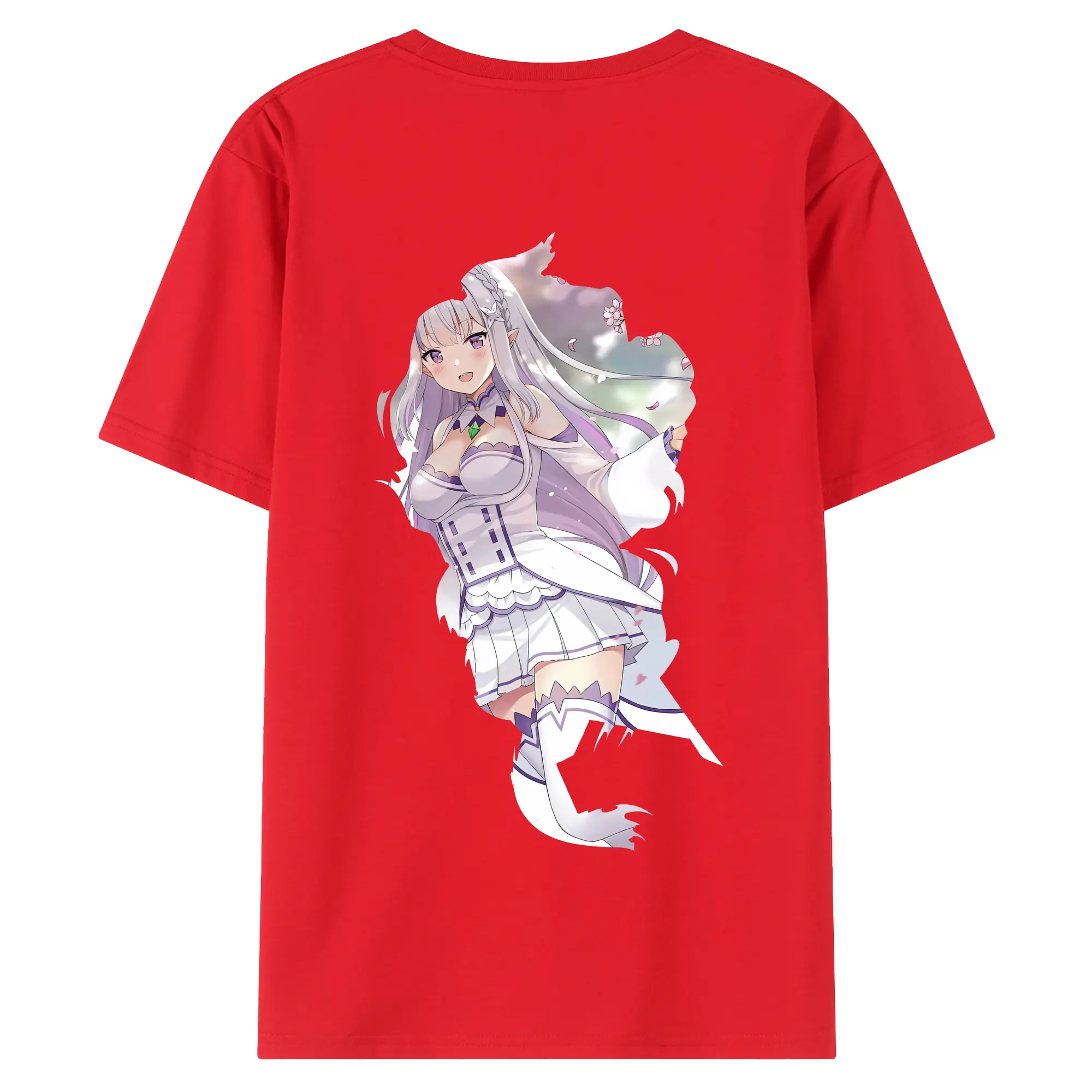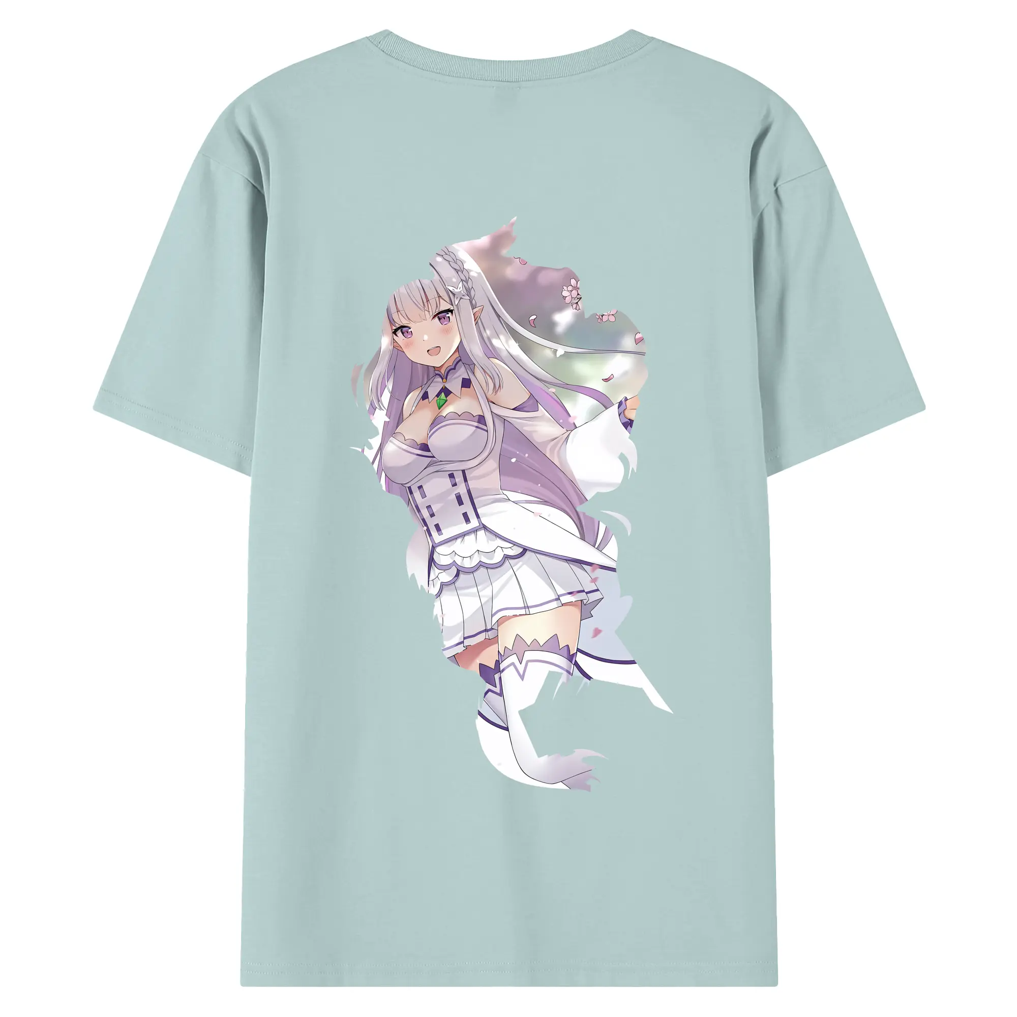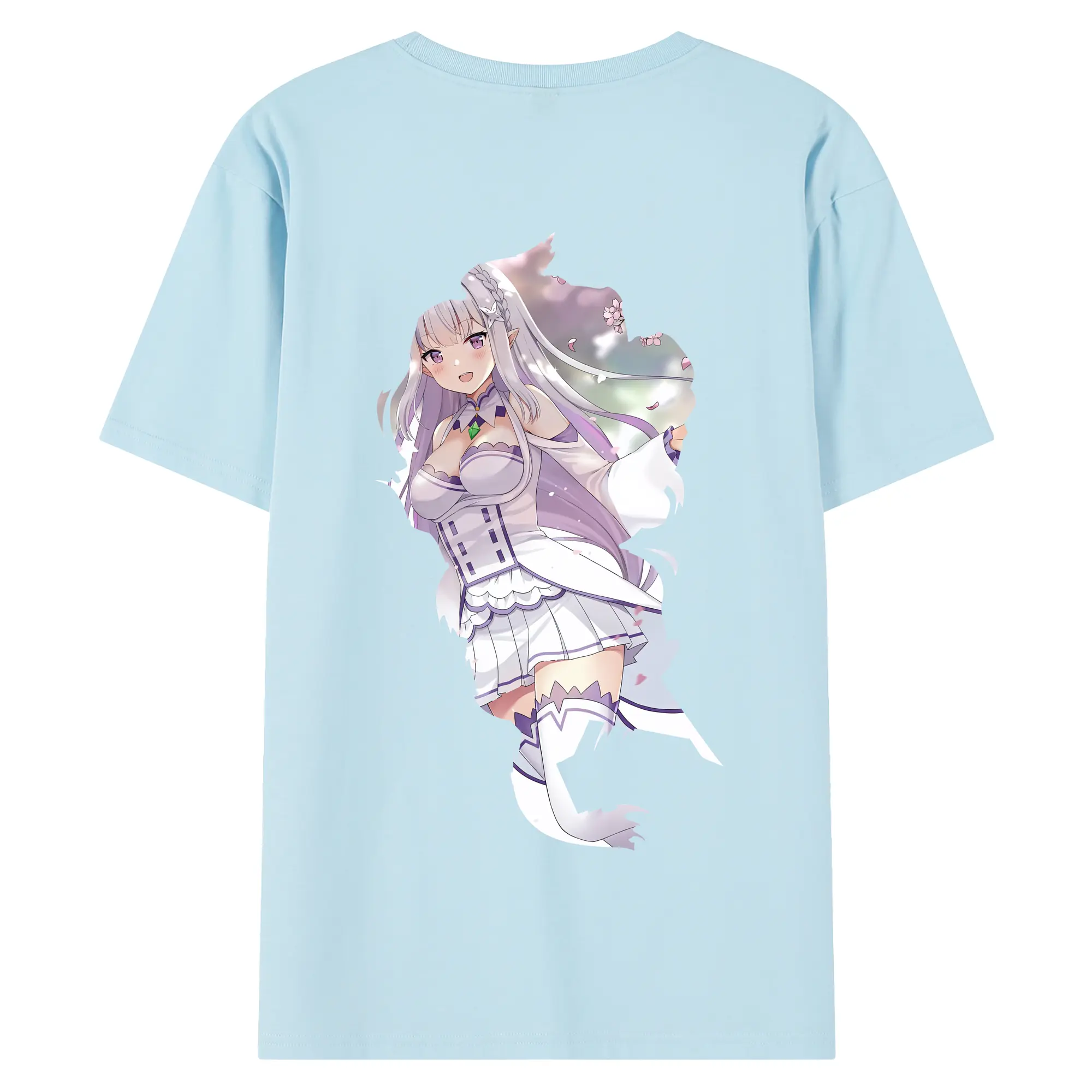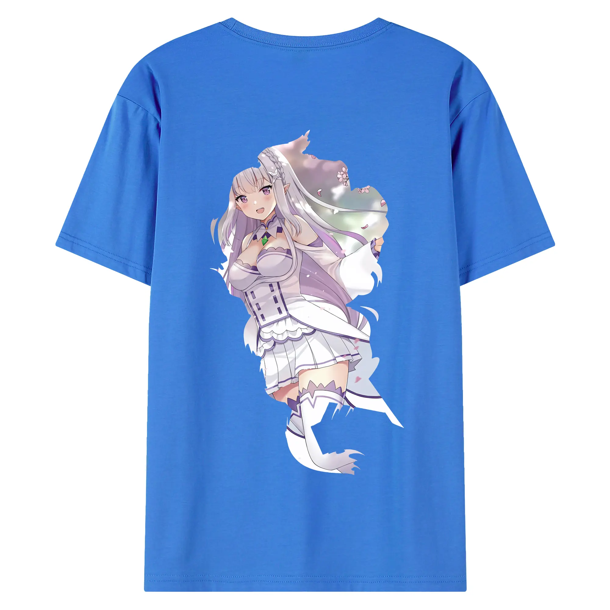 リゼロ グッズ エミリア - 綿100% 半袖Tシャツ ・ フロントプリント ・ 快適 通気性 ・ 日常使い 散歩 スポーツ用