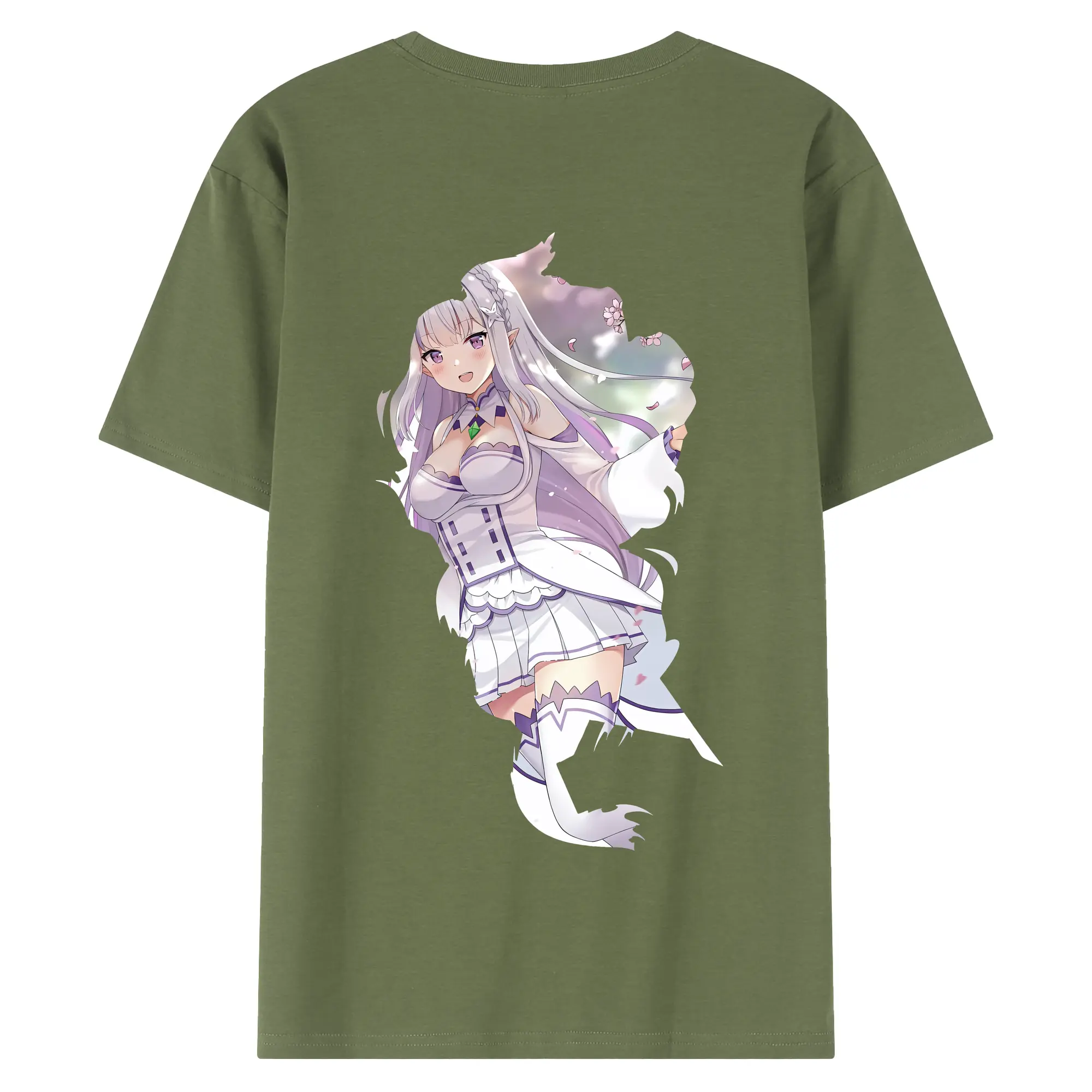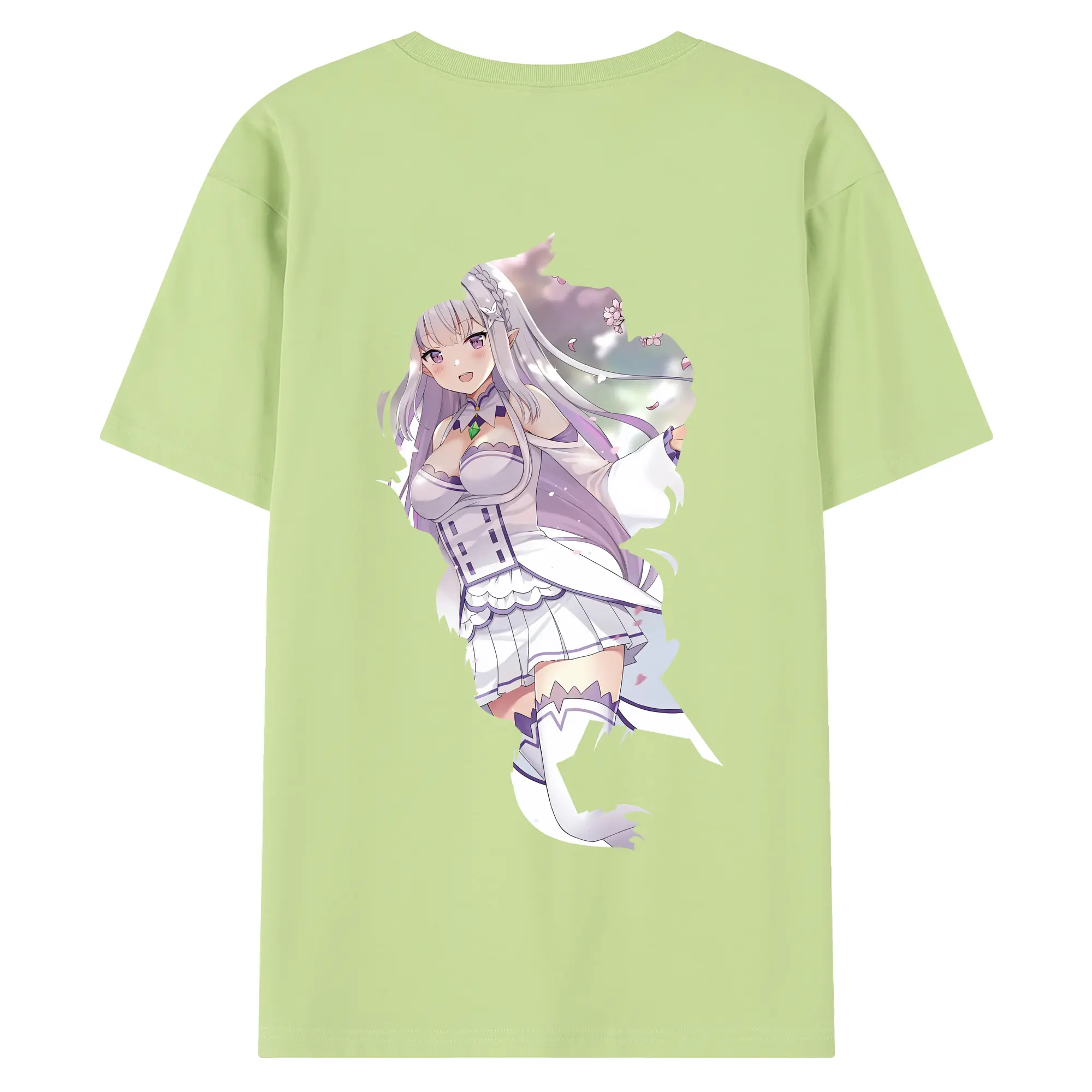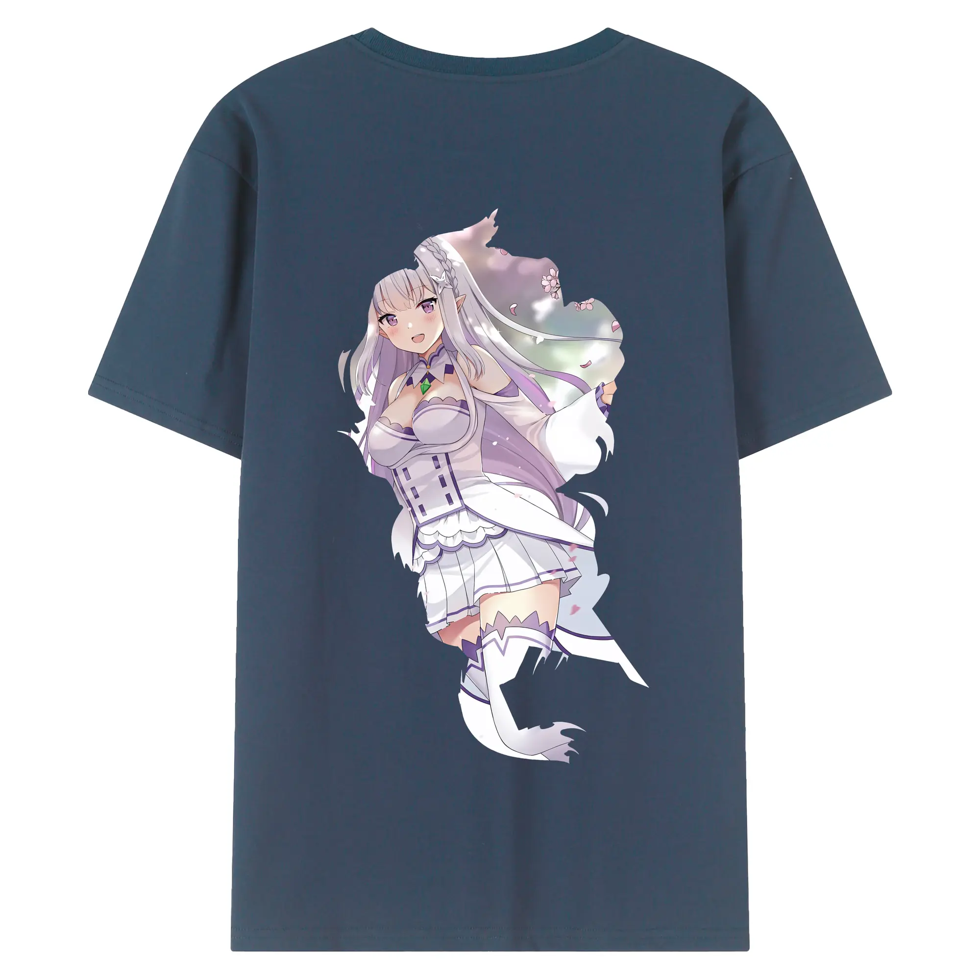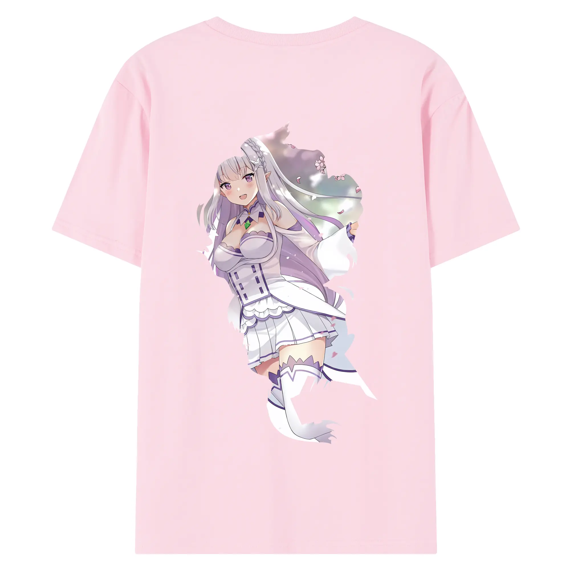 リゼロ グッズ エミリア - 綿100% 半袖Tシャツ ・ フロントプリント ・ 快適 通気性 ・ 日常使い 散歩 スポーツ用