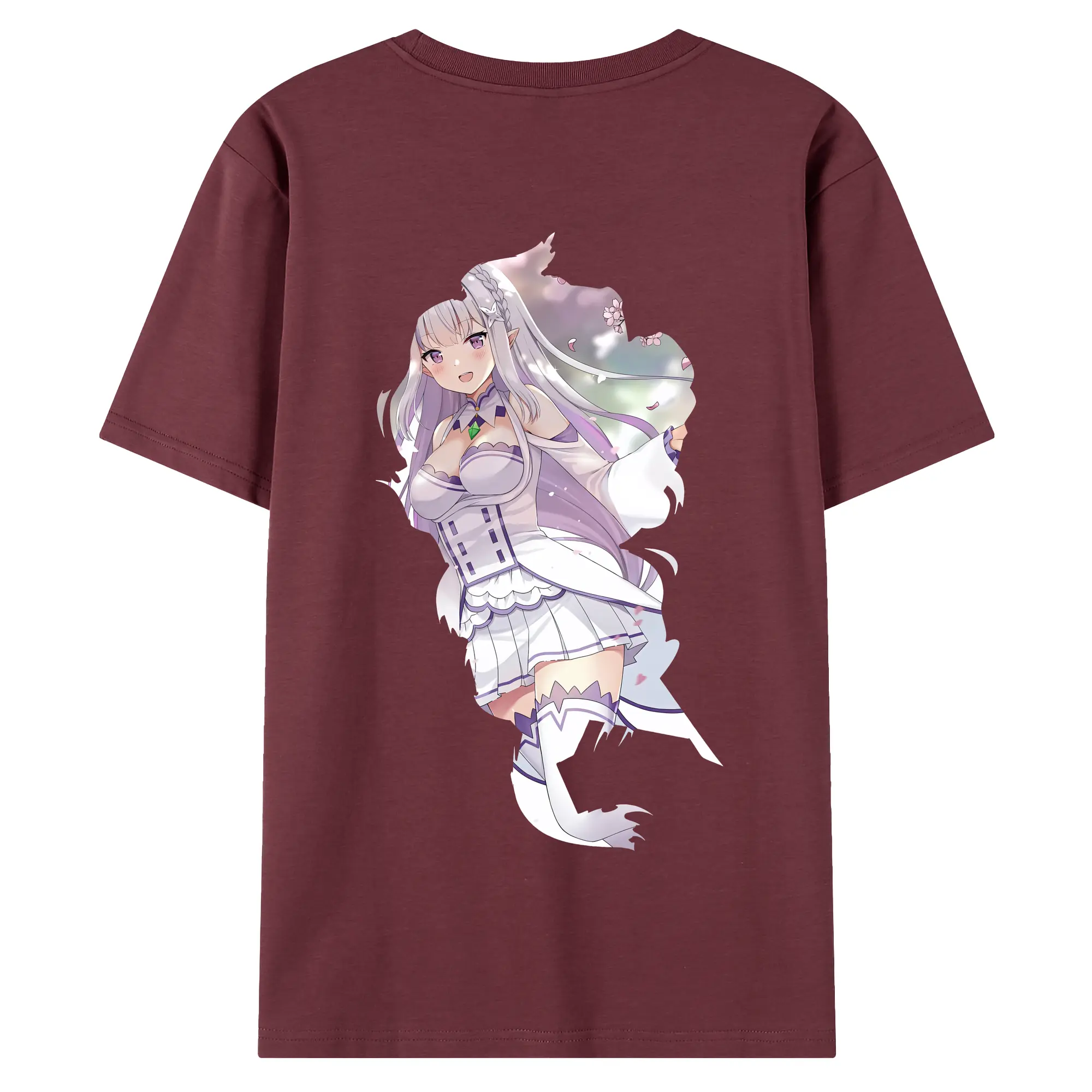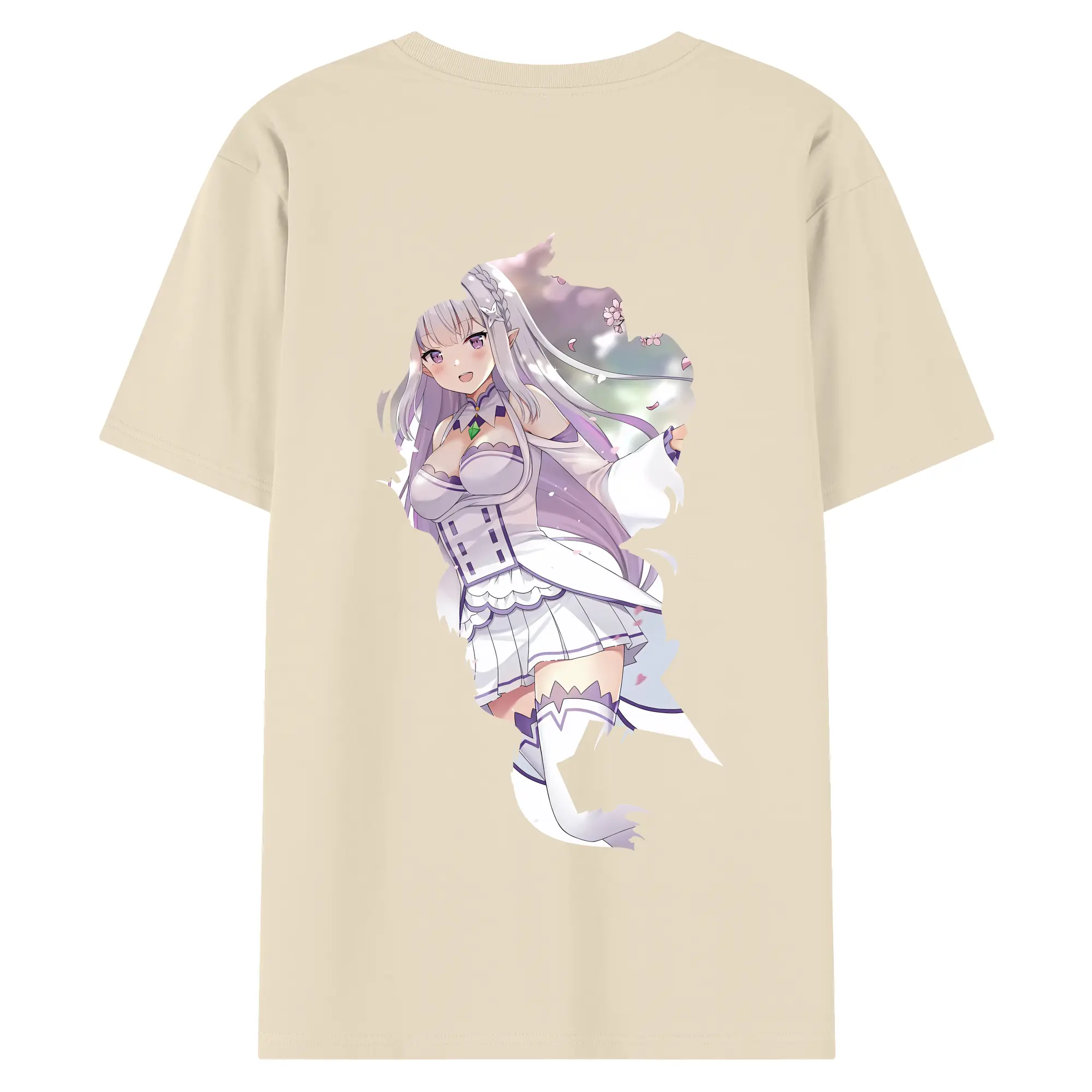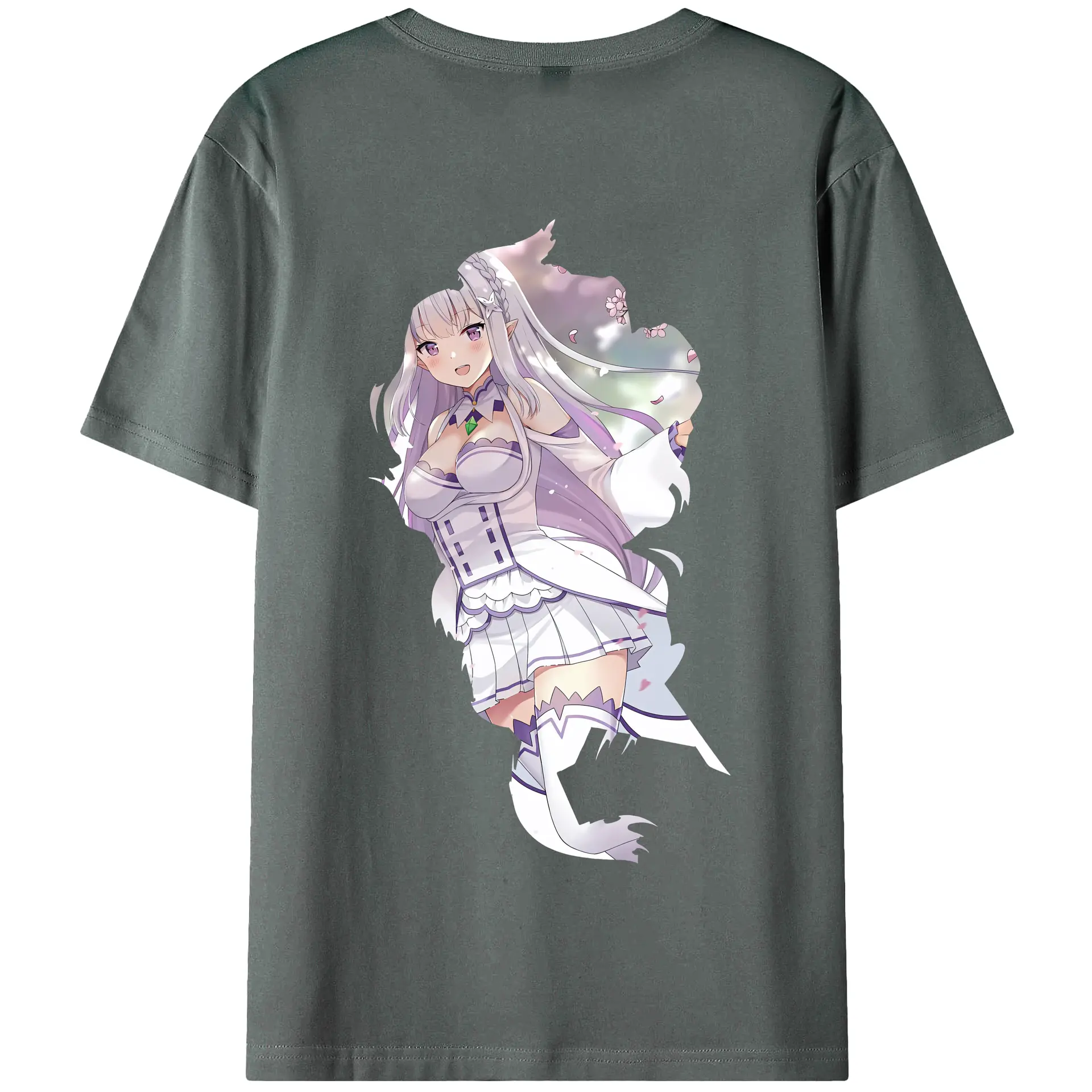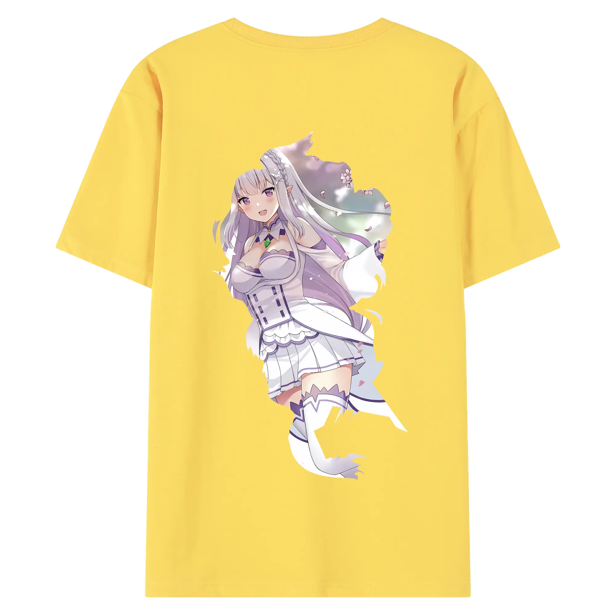 リゼロ グッズ エミリア - 綿100% 半袖Tシャツ ・ フロントプリント ・ 快適 通気性 ・ 日常使い 散歩 スポーツ用