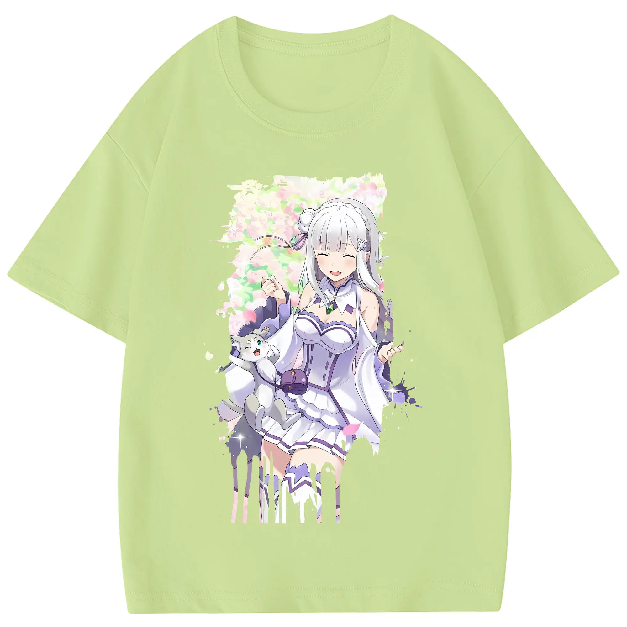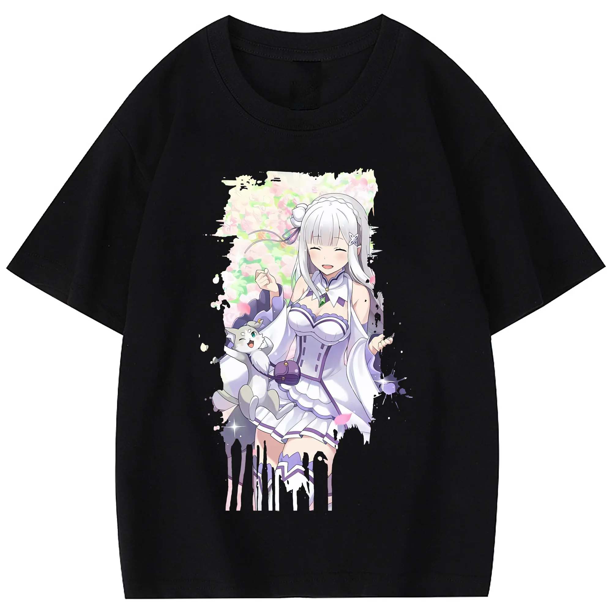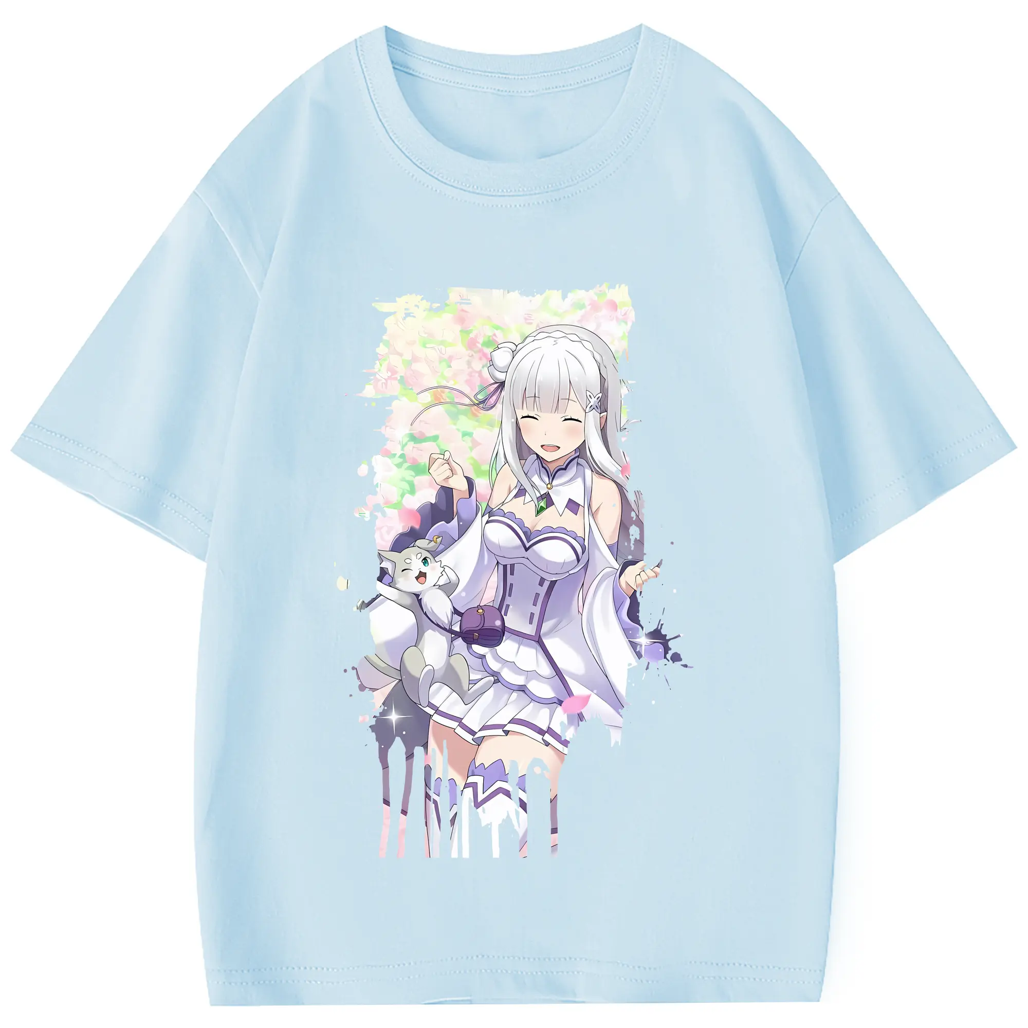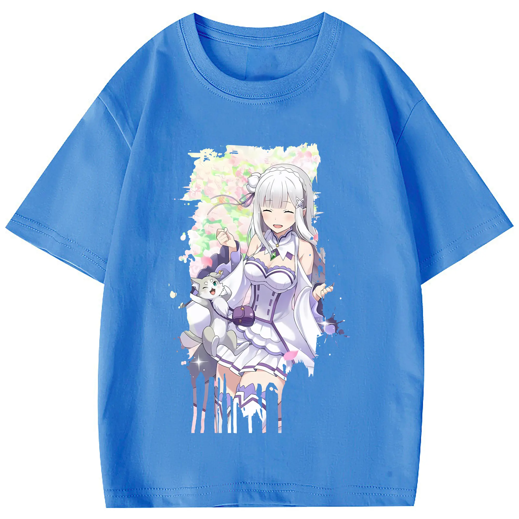 リゼロ グッズ エミリア - 綿100% 半袖Tシャツ ・ フロントプリント ・ 快適 通気性 ・ 日常使い 散歩 スポーツ用
