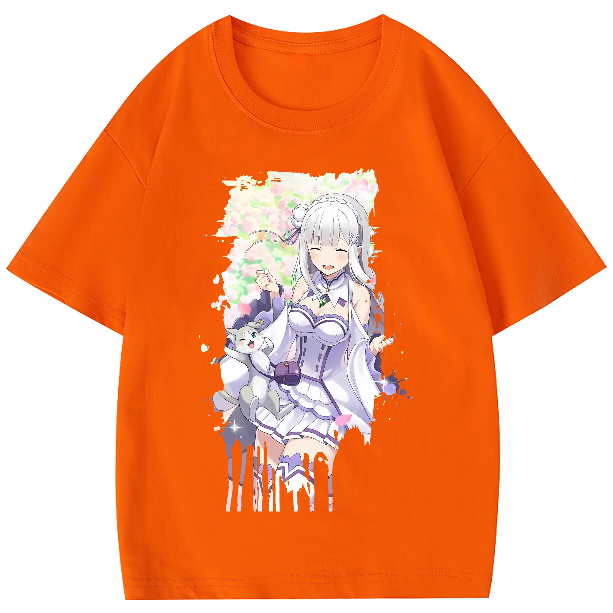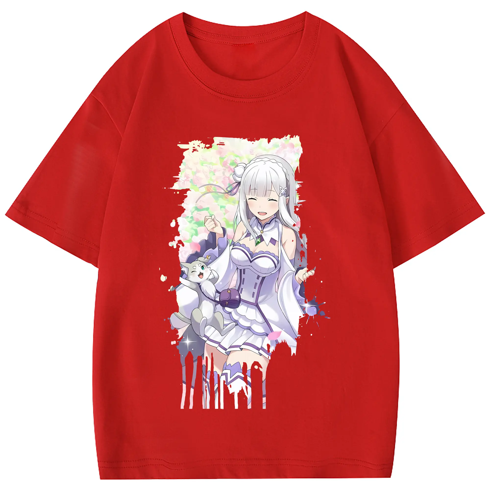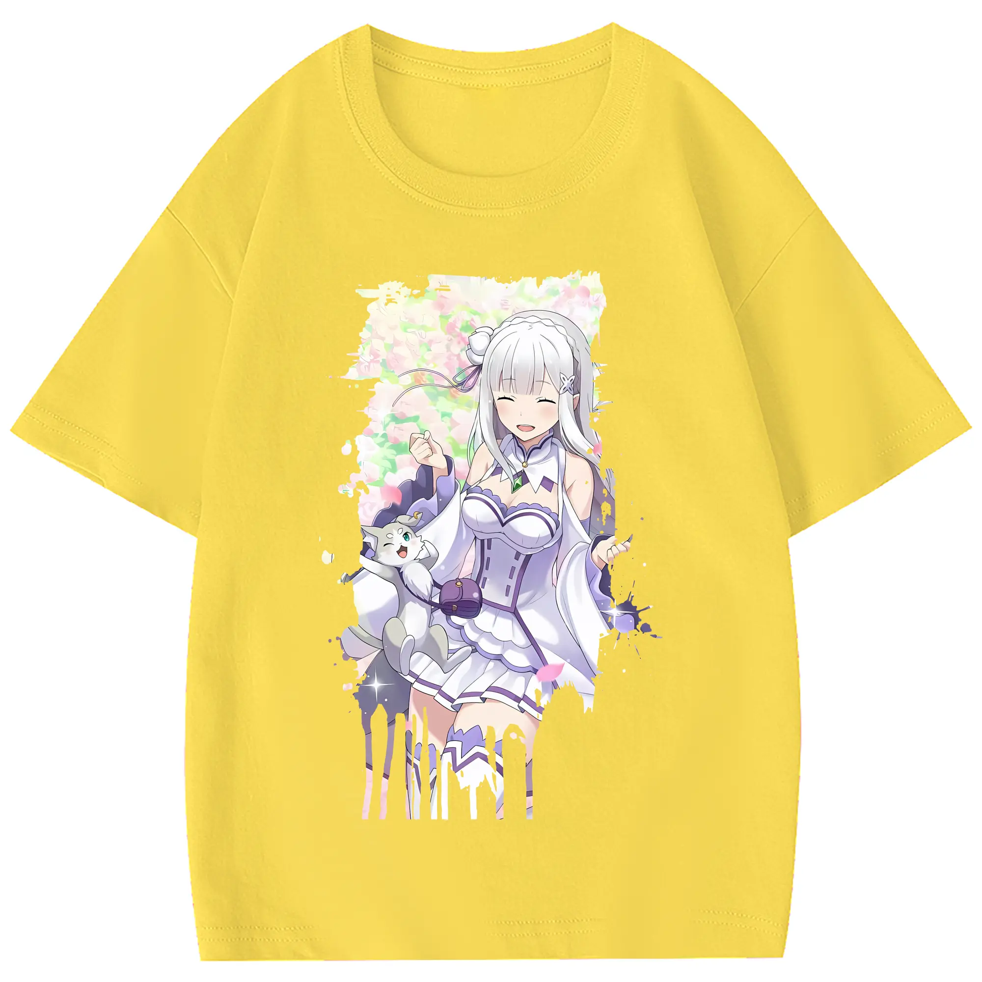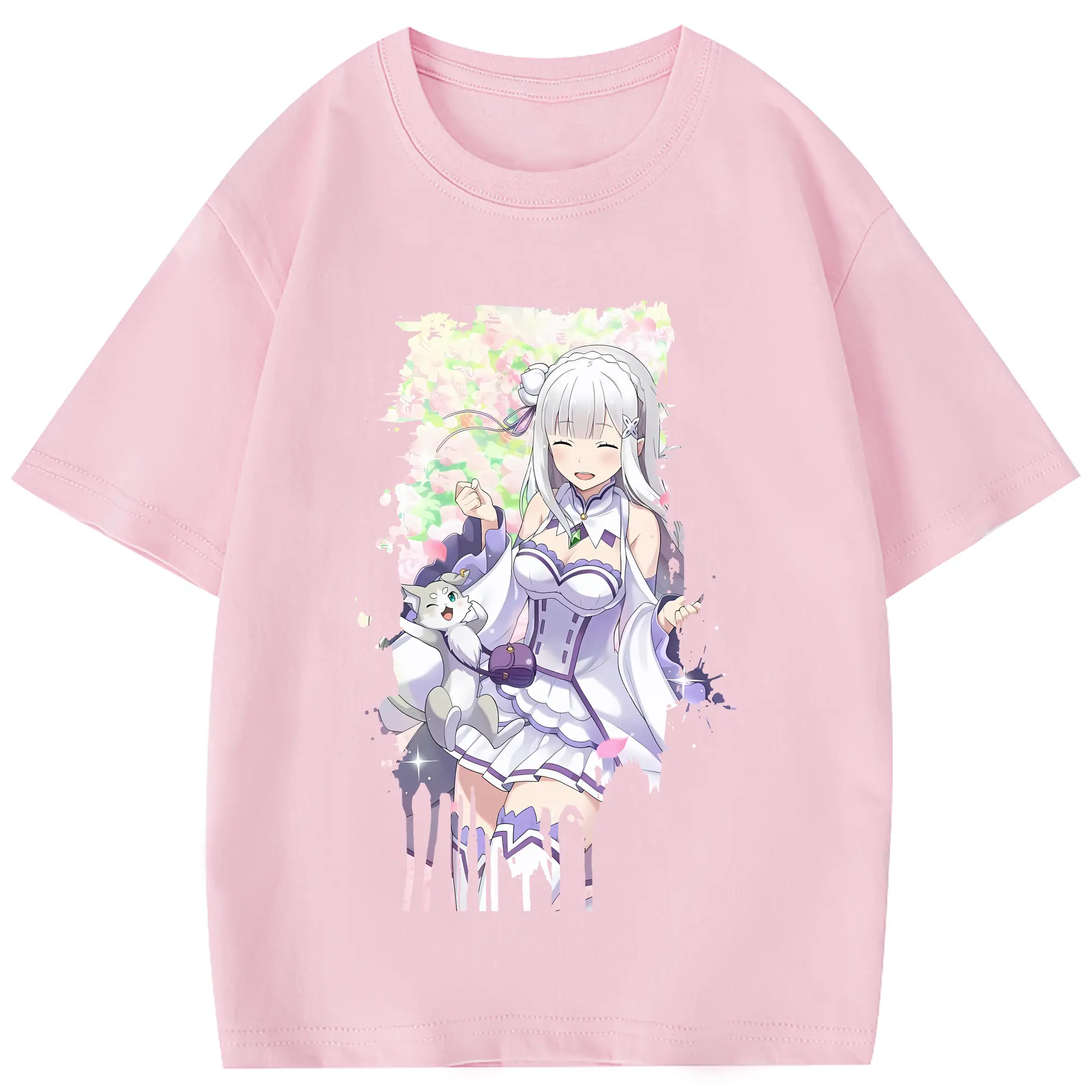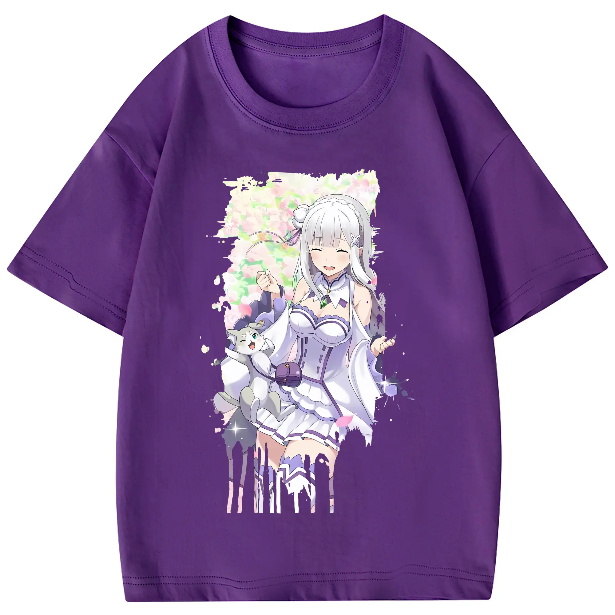 リゼロ グッズ エミリア - 綿100% 半袖Tシャツ ・ フロントプリント ・ 快適 通気性 ・ 日常使い 散歩 スポーツ用