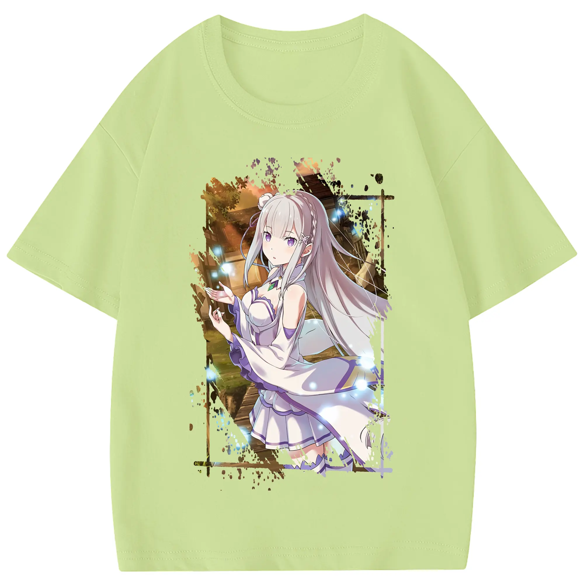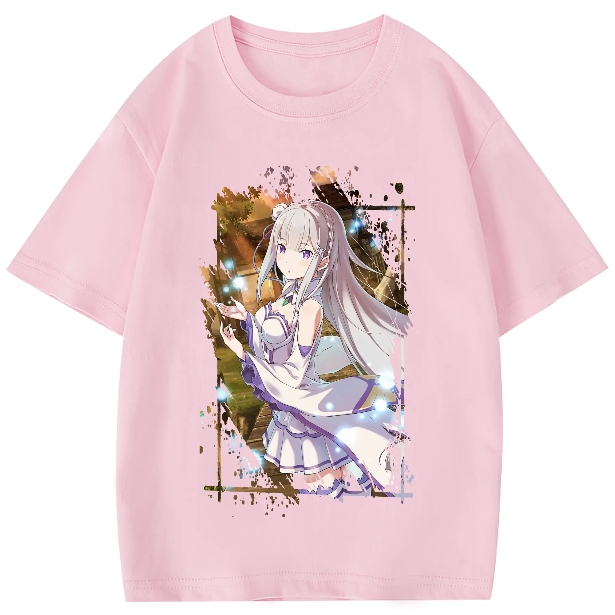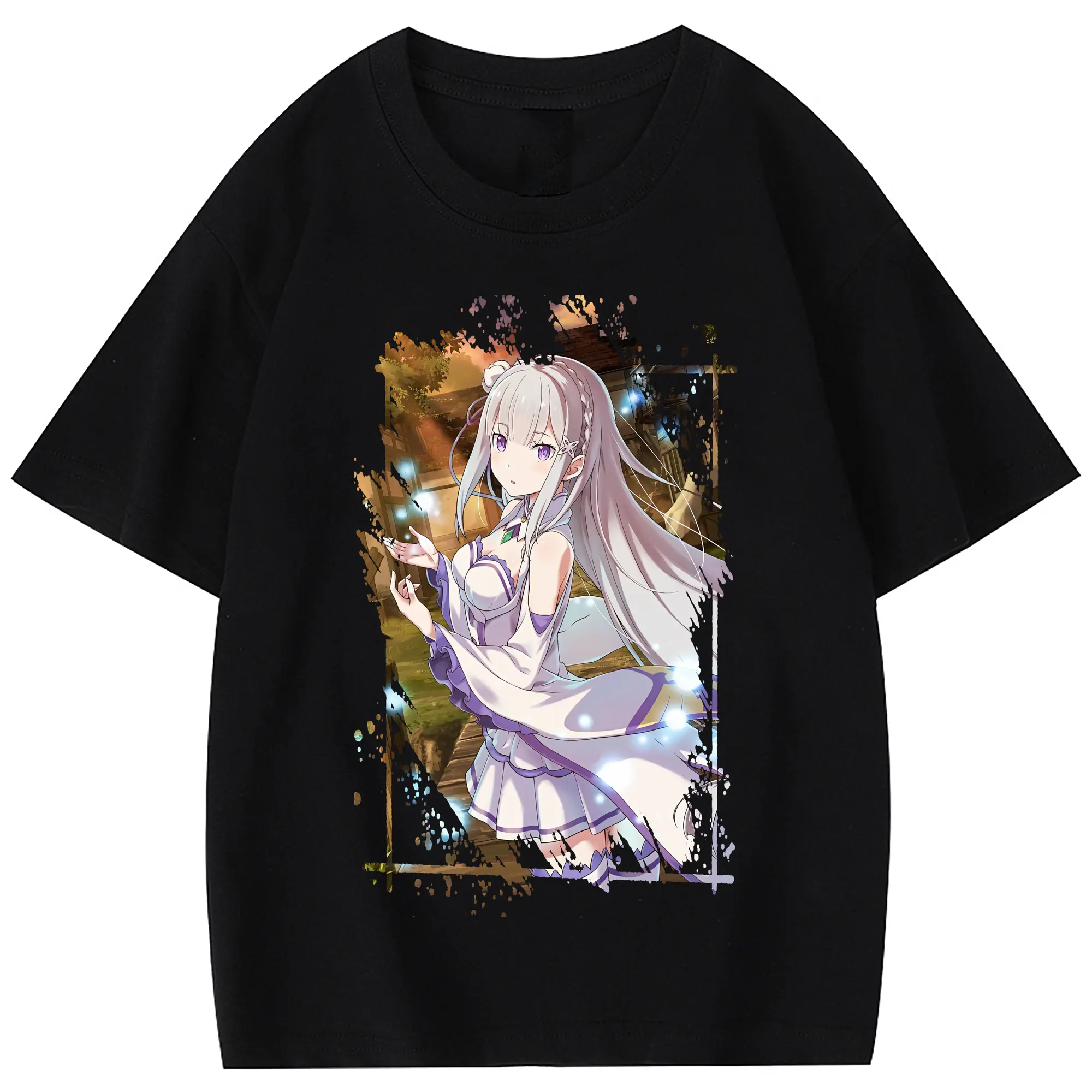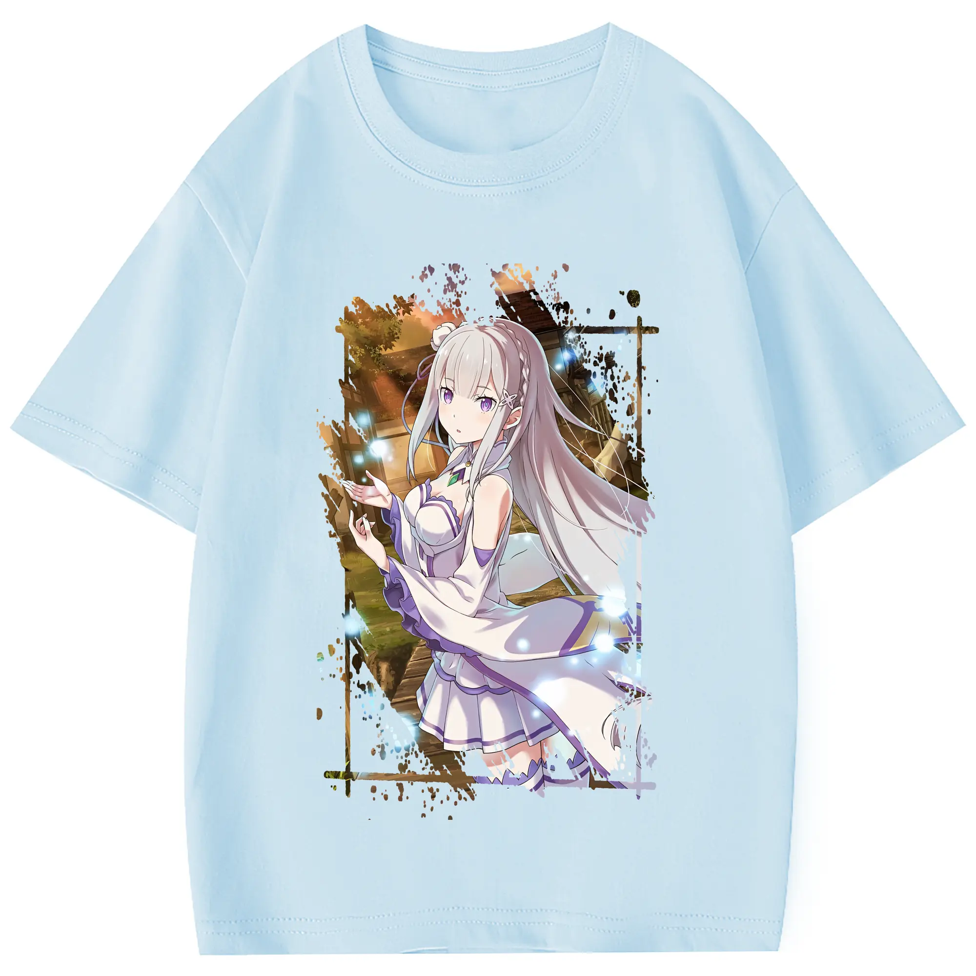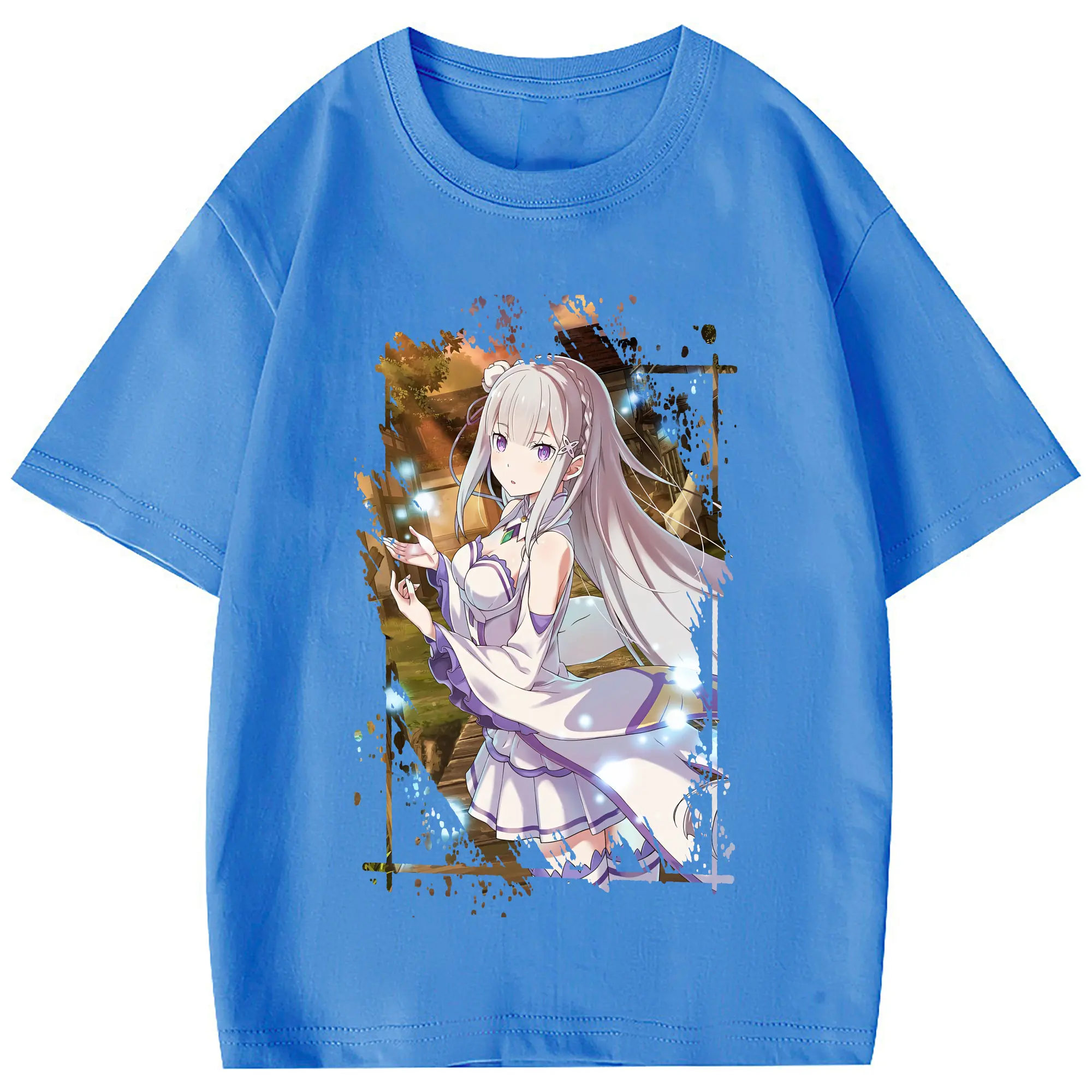 リゼロ グッズ エミリア - 綿100% 半袖Tシャツ ・ フロントプリント ・ 快適 通気性 ・ 日常使い 散歩 スポーツ用