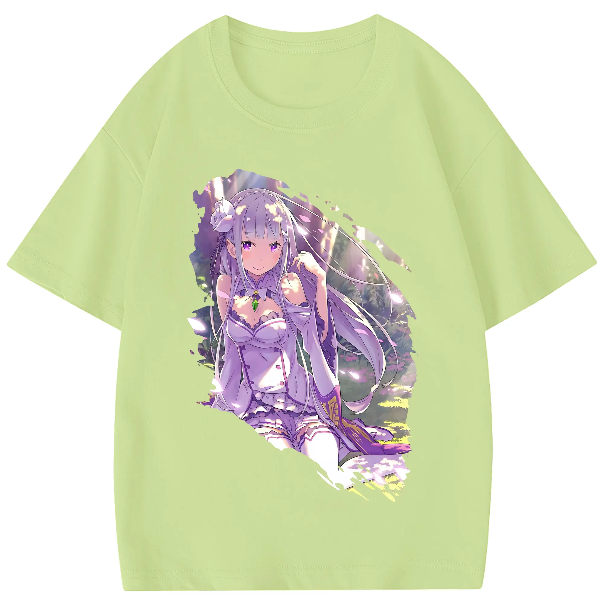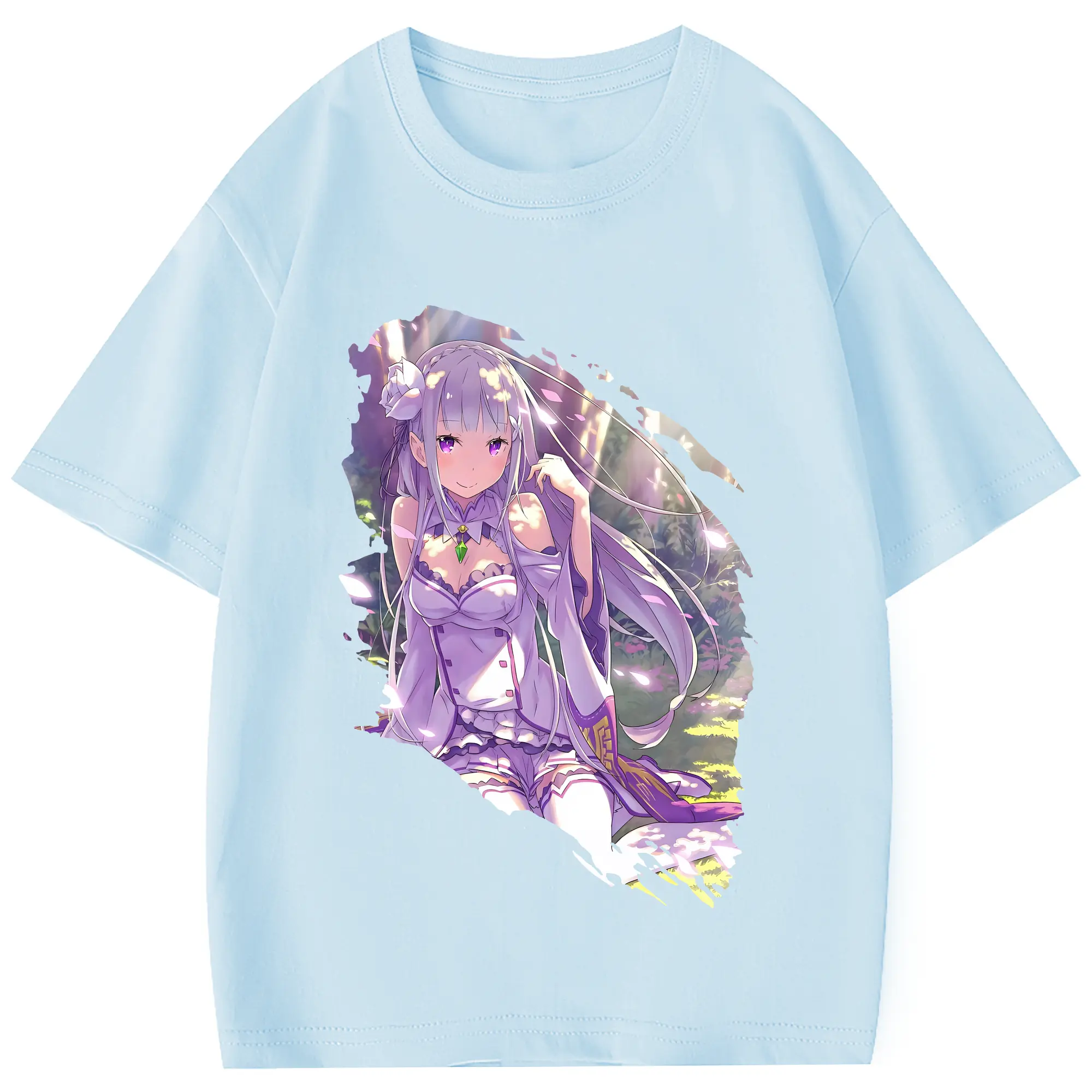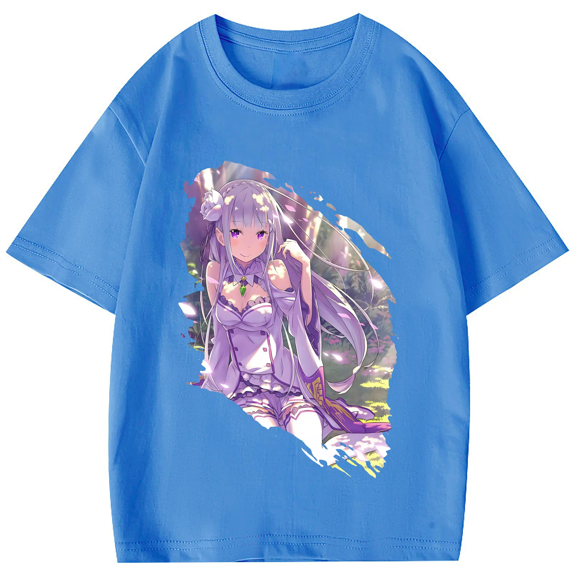 リゼロ グッズ エミリア - 綿100% 半袖Tシャツ ・ フロントプリント ・ 快適 通気性 ・ 日常使い 散歩 スポーツ用
