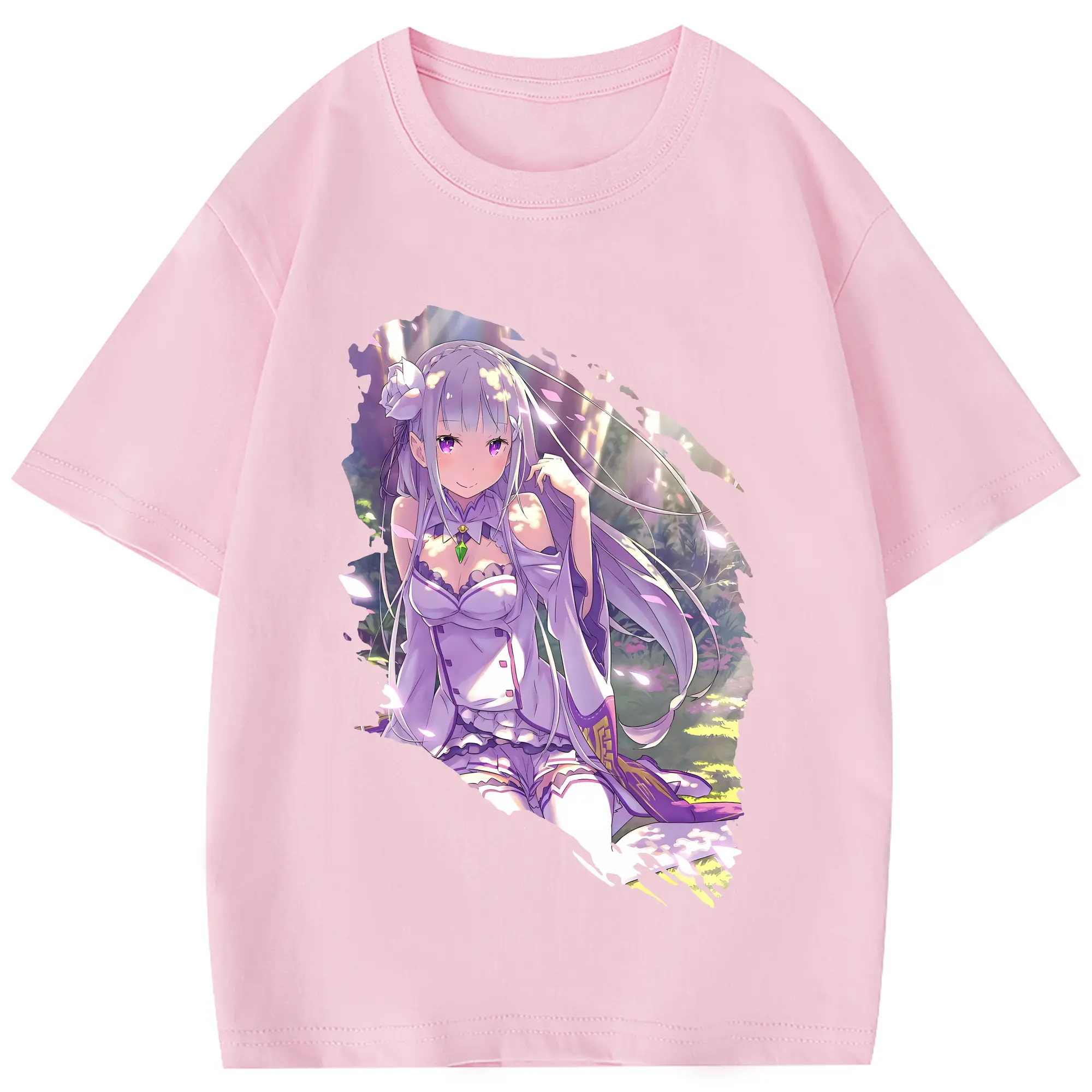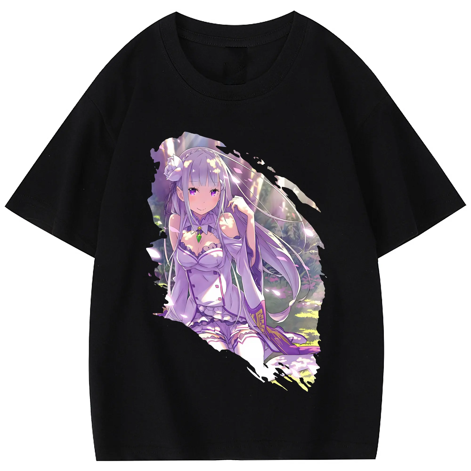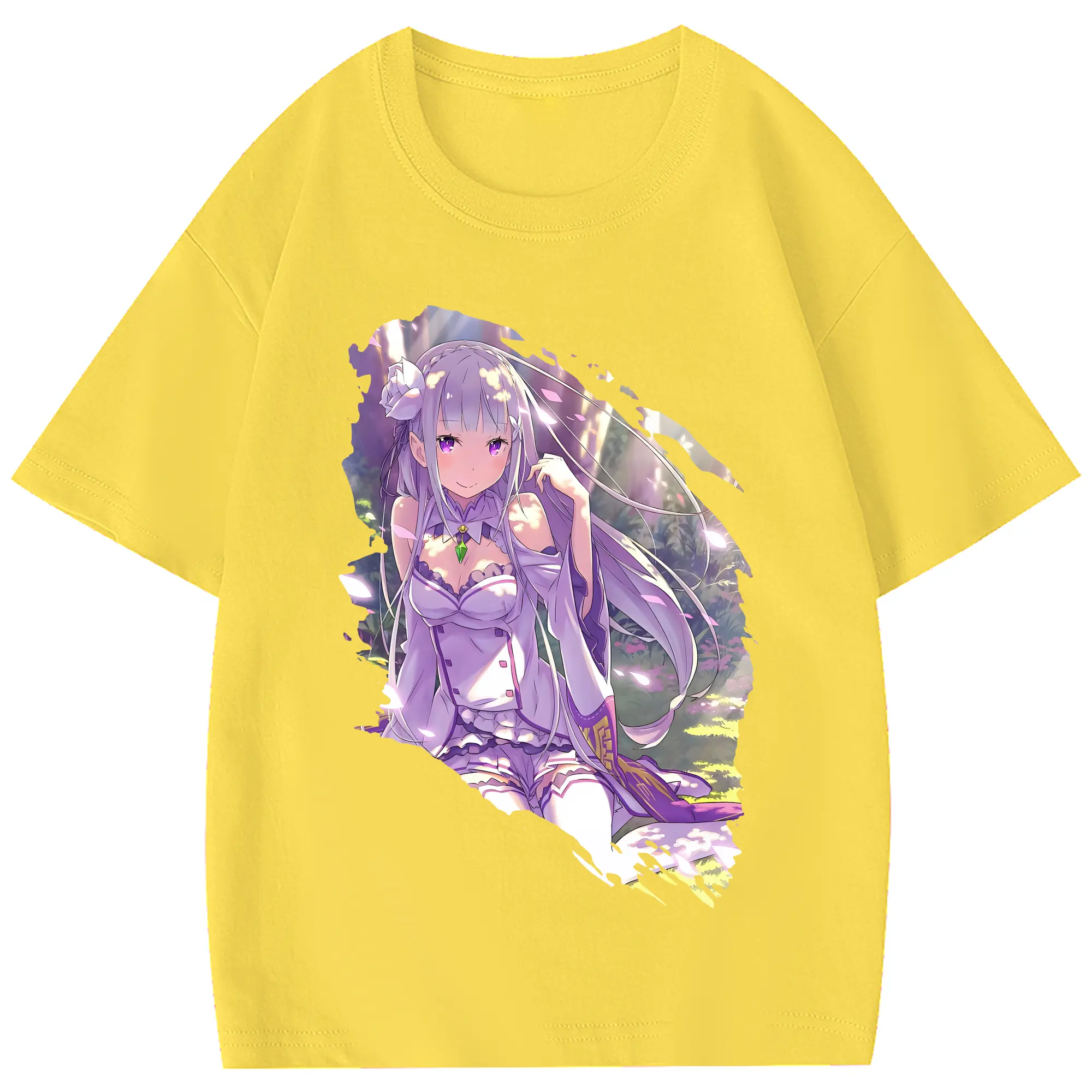 リゼロ グッズ エミリア - 綿100% 半袖Tシャツ ・ フロントプリント ・ 快適 通気性 ・ 日常使い 散歩 スポーツ用