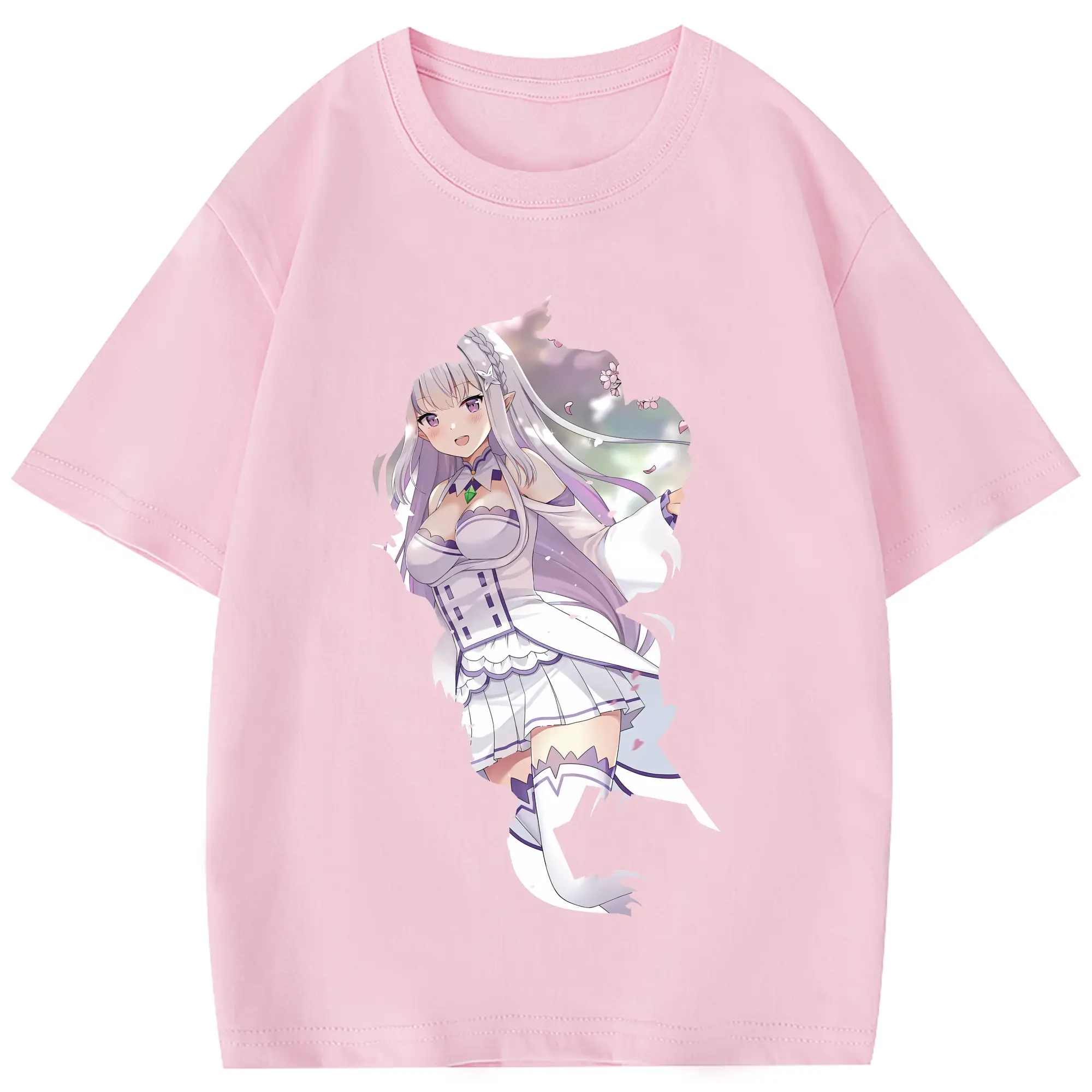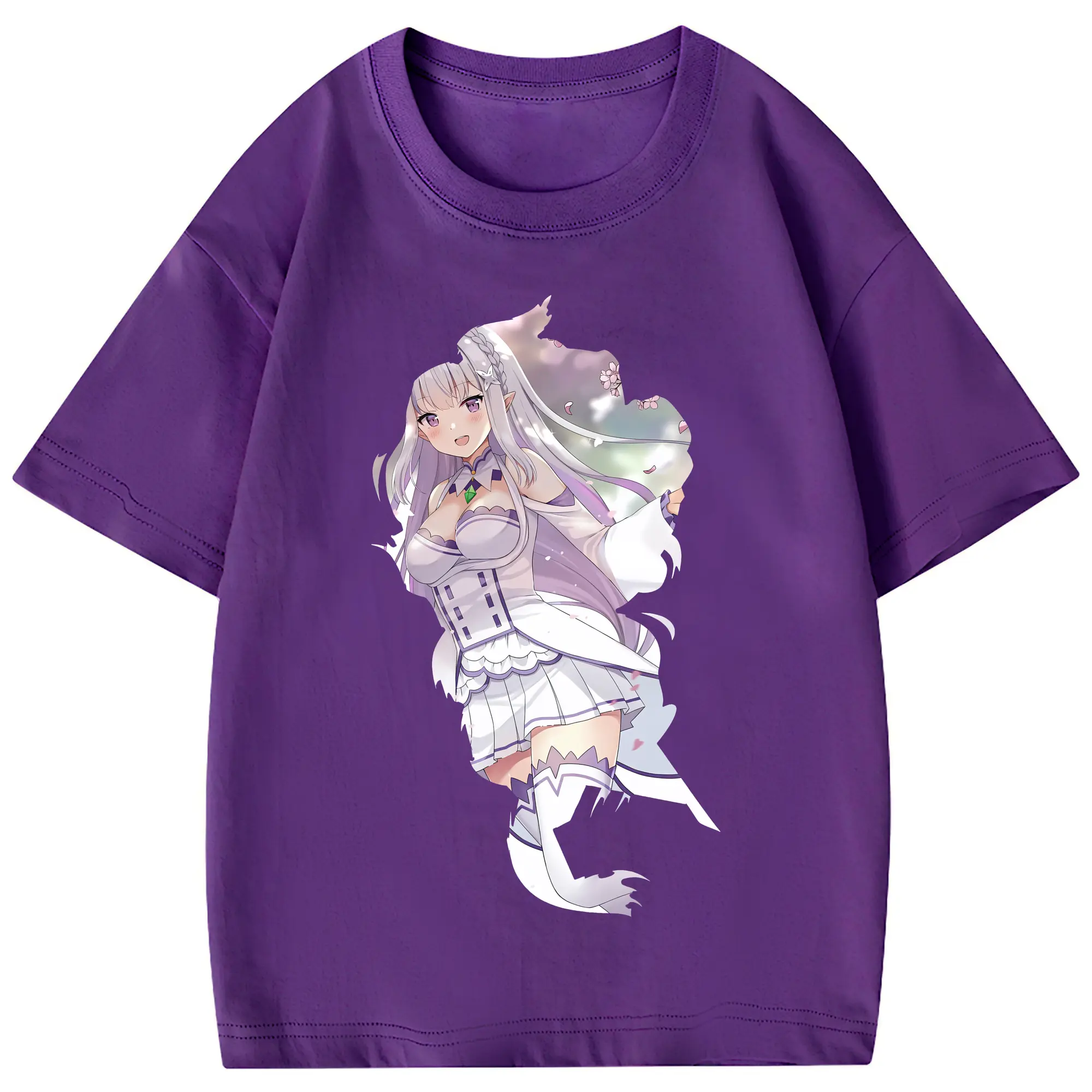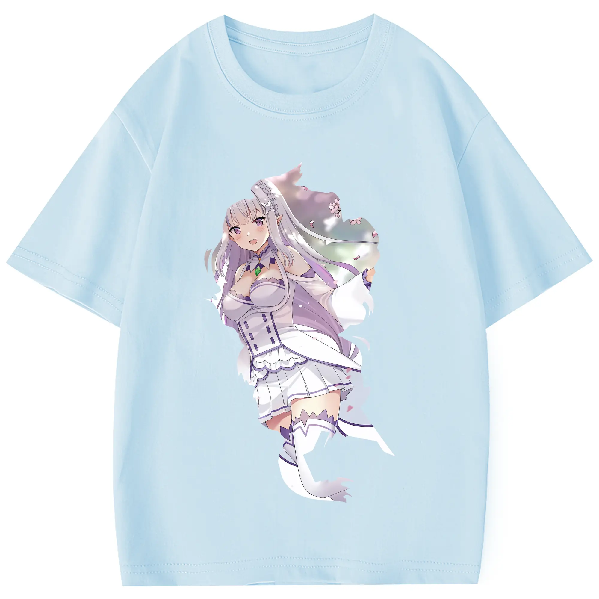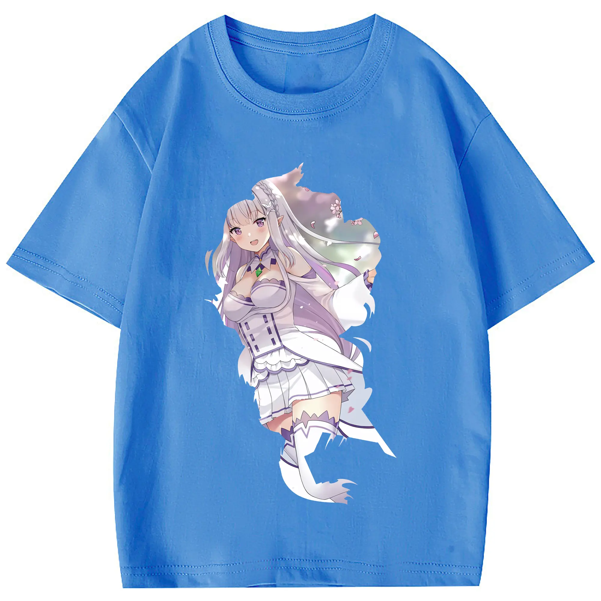 リゼロ グッズ エミリア - 綿100% 半袖Tシャツ ・ フロントプリント ・ 快適 通気性 ・ 日常使い 散歩 スポーツ用