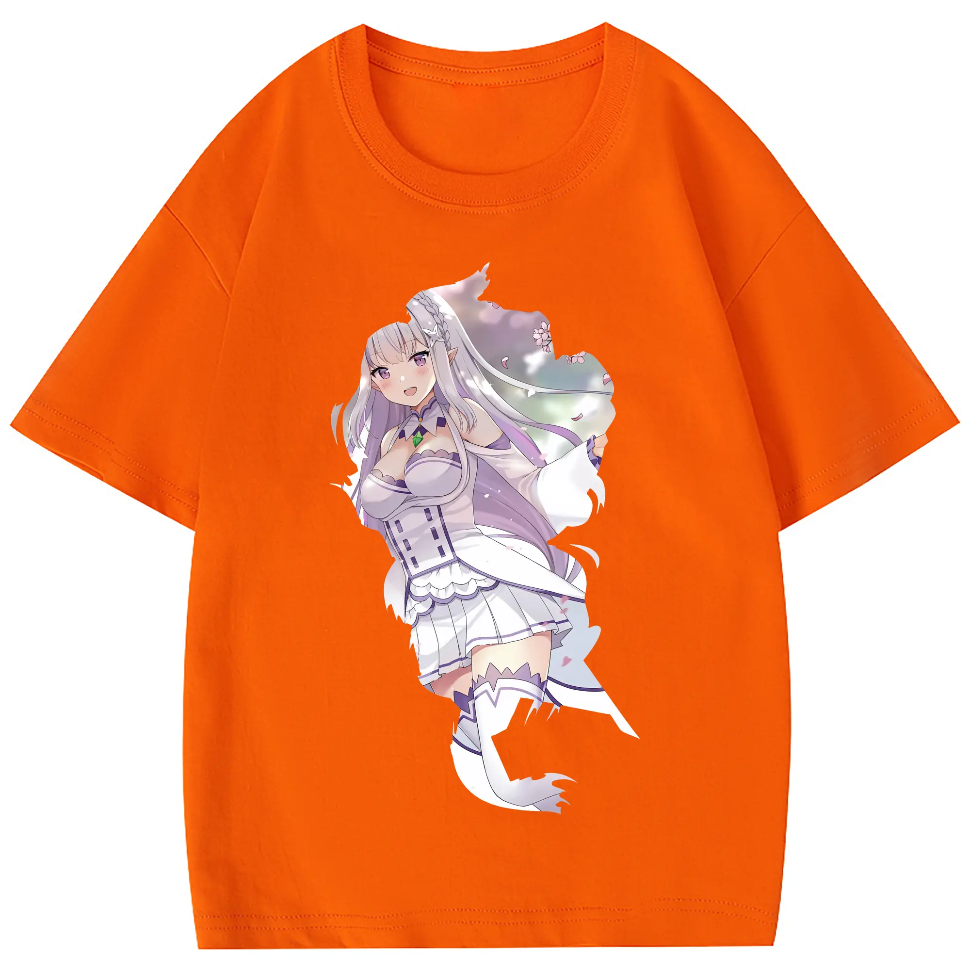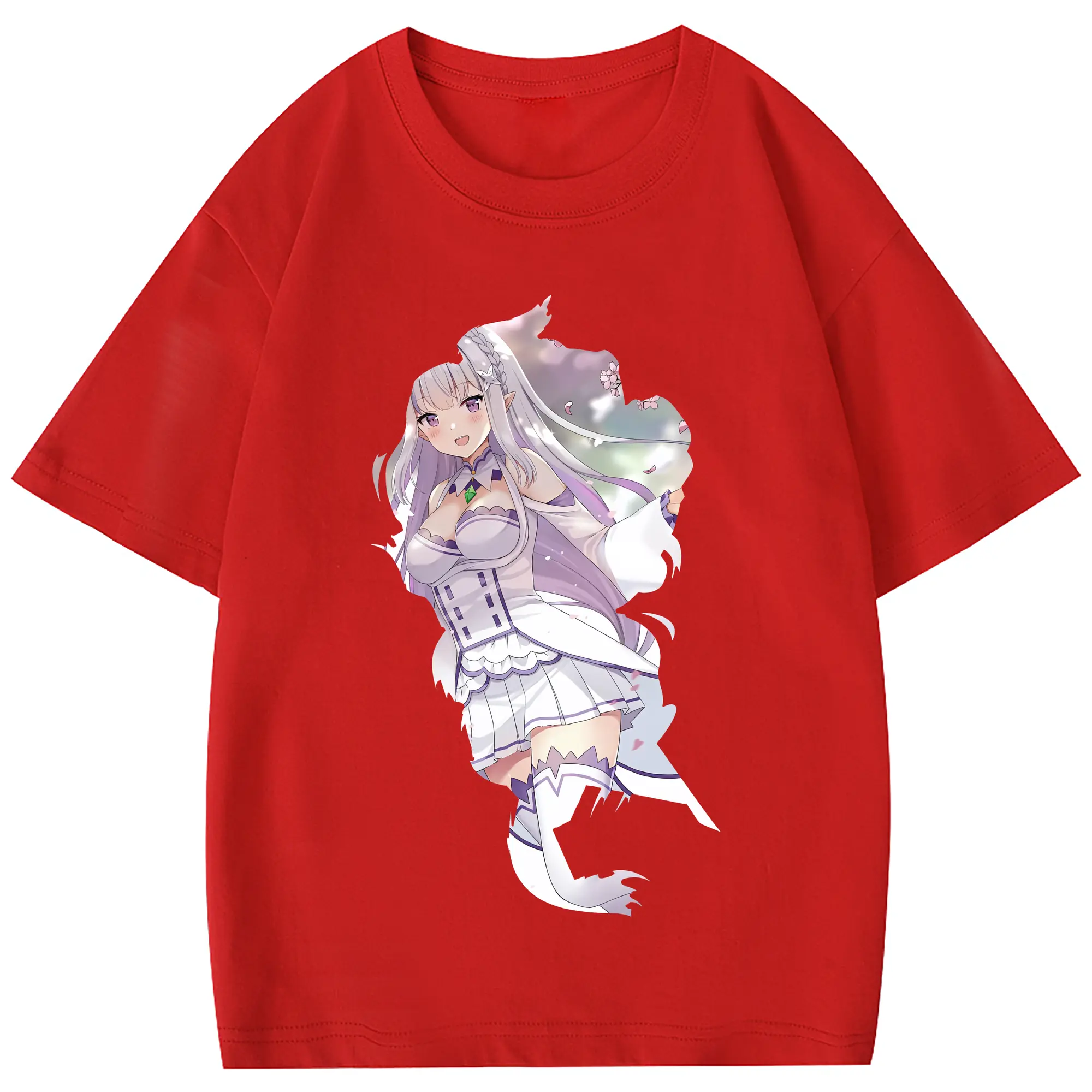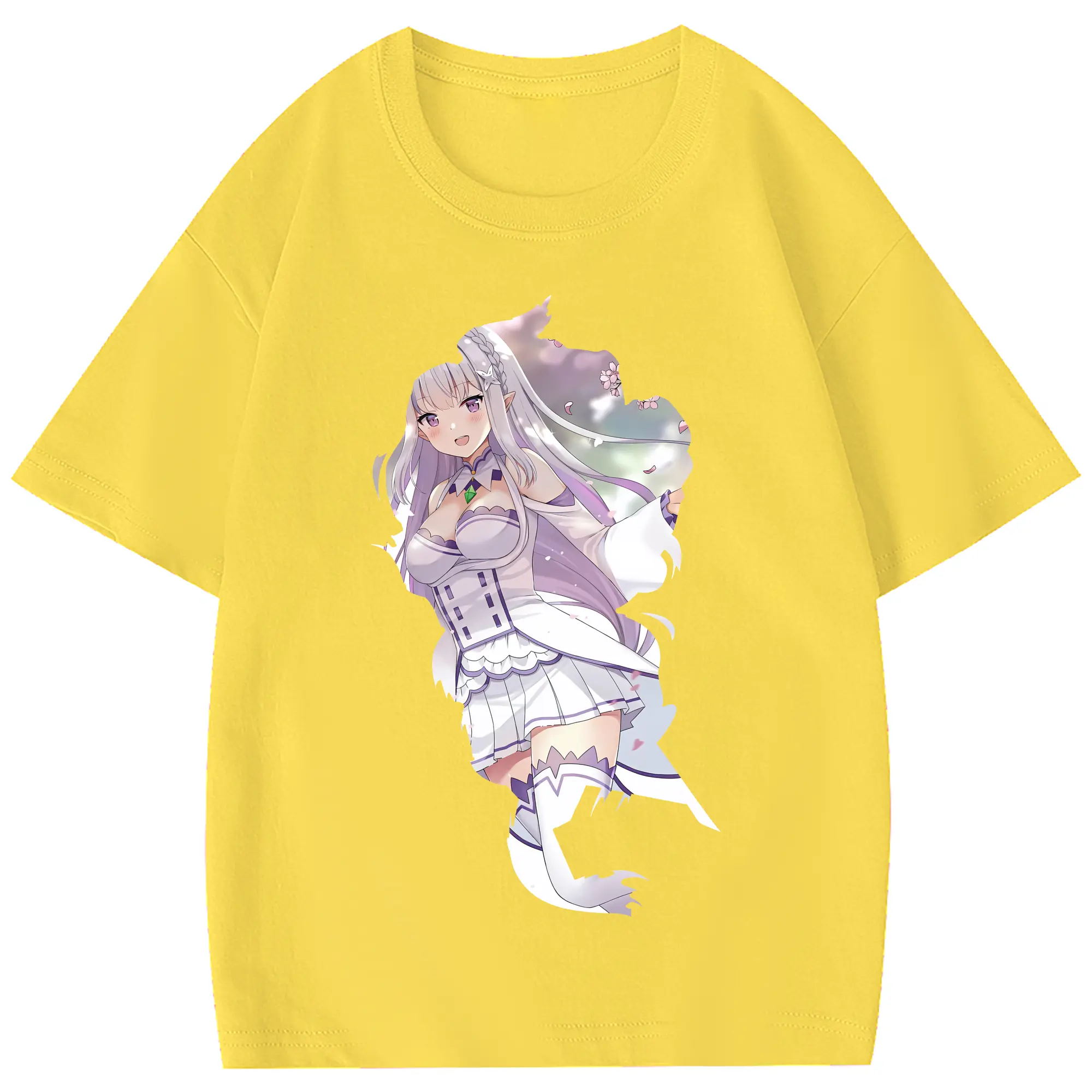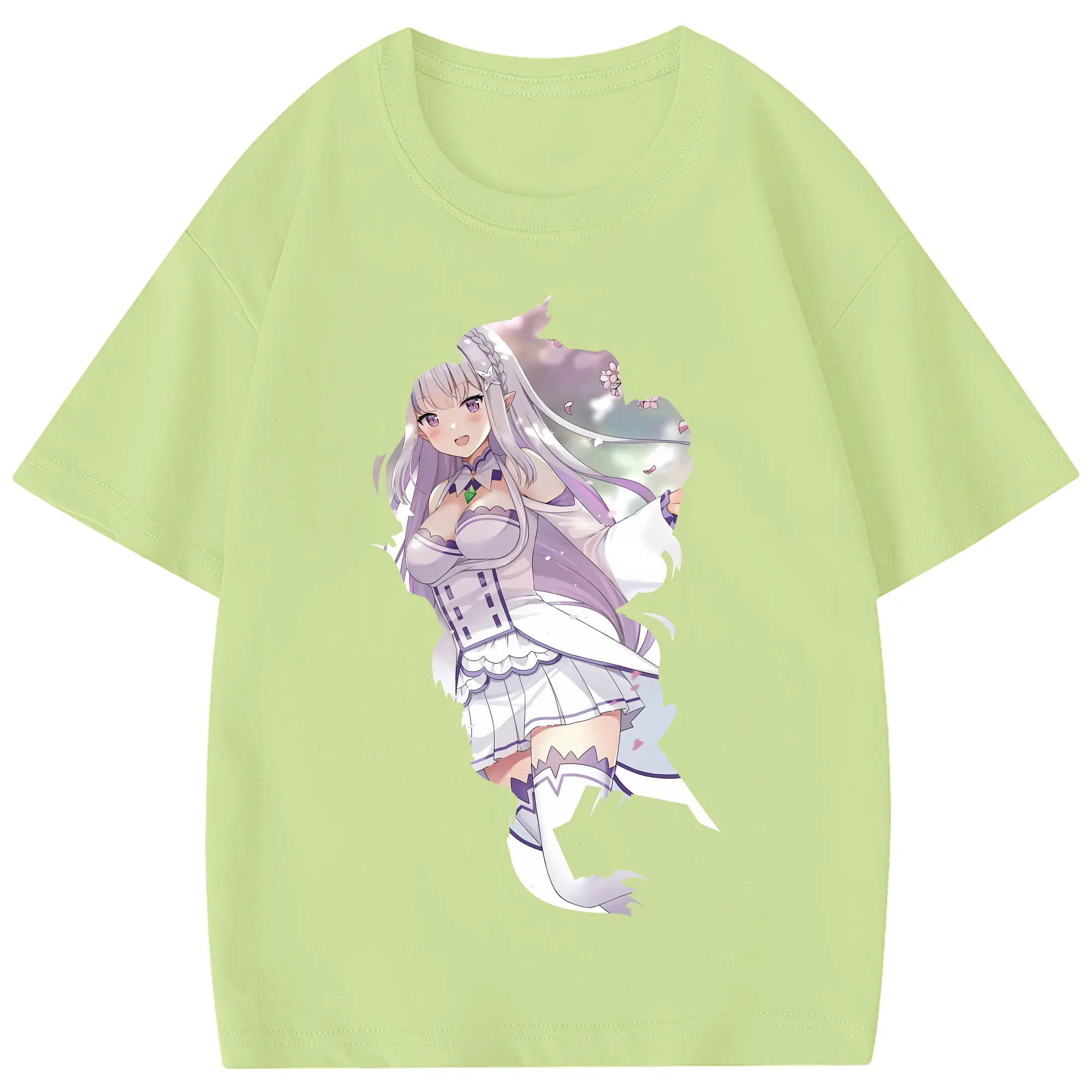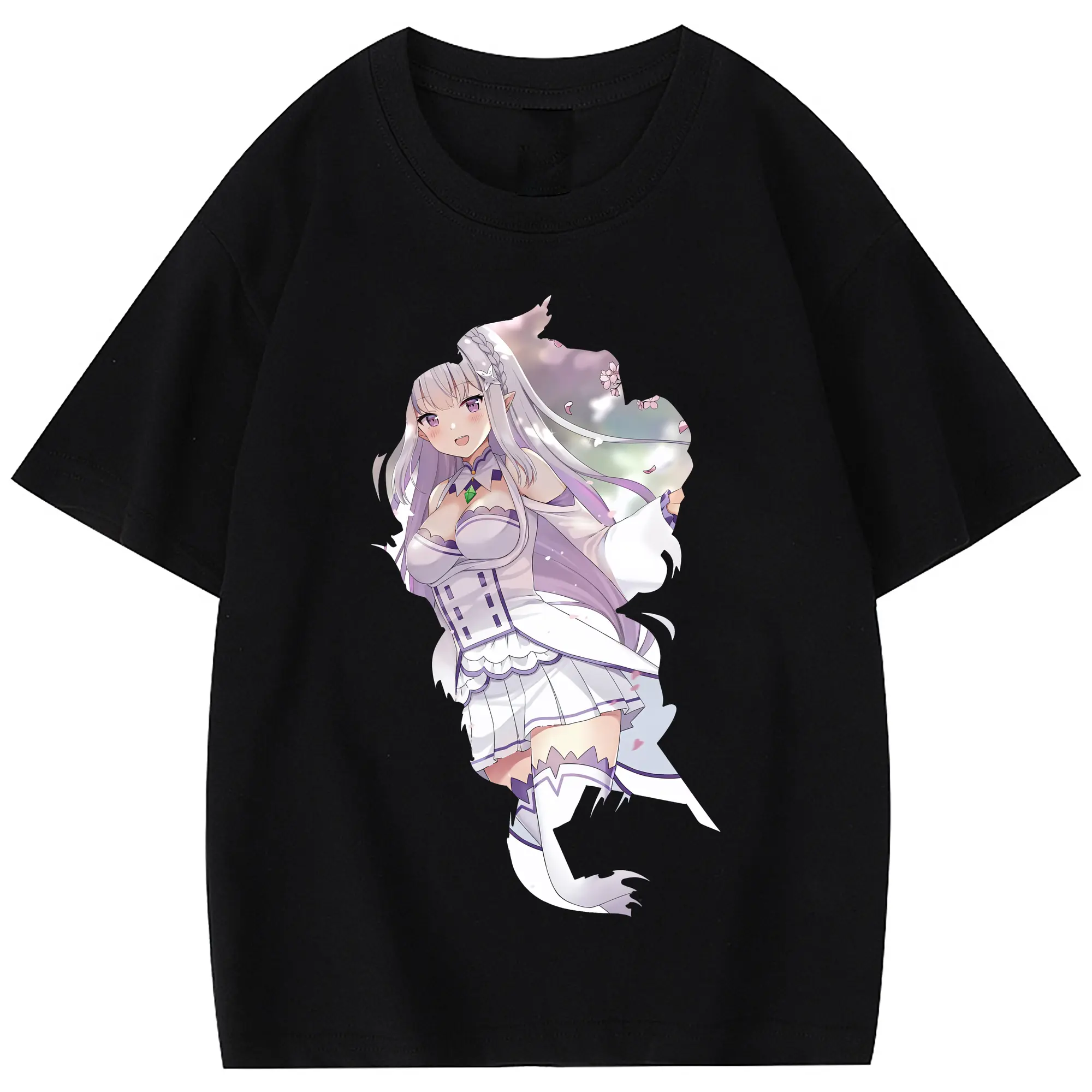 リゼロ グッズ エミリア - 綿100% 半袖Tシャツ ・ フロントプリント ・ 快適 通気性 ・ 日常使い 散歩 スポーツ用